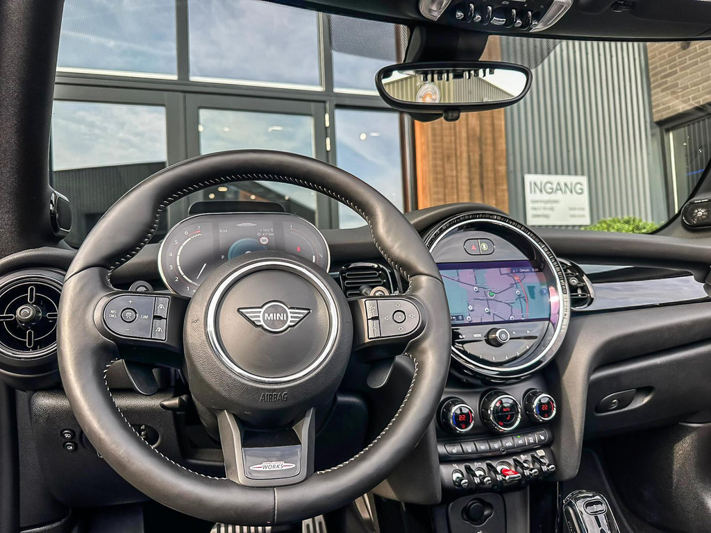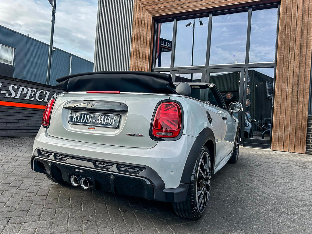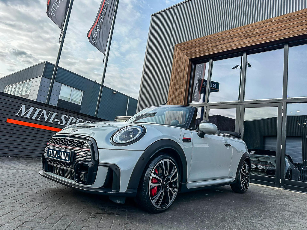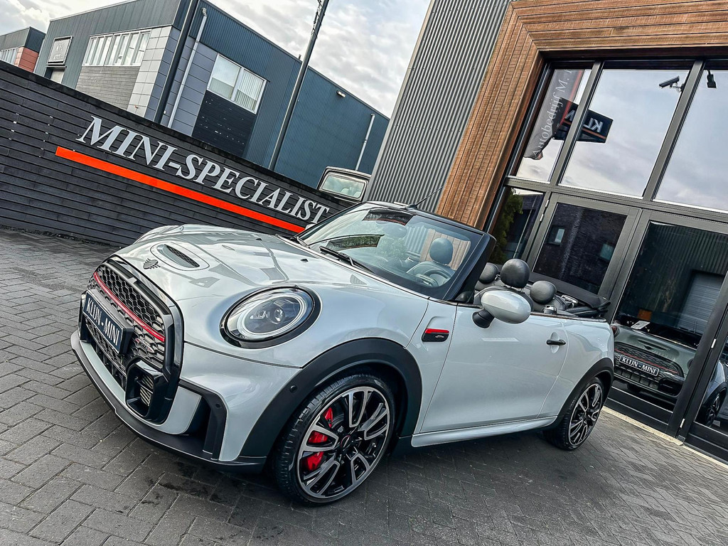 Unieke facelift Mini John Cooper Works cabrio Blackline F1 sportautomaat met een 231pk motor in de prachtige kleur whitesilver metallic.Deze schitterende Mini is uitgerust met alle maar dan ook alle denkbare opties:Climate control,vollederen interieur Yours lounge carbon black,sportstoelen,stoelverwarming,verwarmd stuurwiel,digitaal dashbord,breedbeeld navigatie,Mini connected,achteruitrijcamera,Harman Kardon soundsystem,head up display,adaptieve cruise control,dab tuner,tel,usb,performence control,apple carplay,Mini driving modus,elektrische cabriokap,lederen Jcw sportstuur met flipperschakel,mf stuur,automatisch dimmende binnenspiegel, regensensor,verwarmde voorruit,facelift,blackline, voetgangersbeveiliging,dtc,elektrisch inklapbare spiegels, parkeersensoren voor en achter,parkassist(Mini parkeert zelf in),union Jack achterlichten,led koplampen met uitgebreide functies,18 inch JCW Circuit Spoke velgen,lichtpakket met Mini logo's,gezichtspakket,64.000km origineel,nieuwprijs 63.000euro.Prachtig uitgevoerde Mini Jcw in concoursstaat voor de echte liefhebber