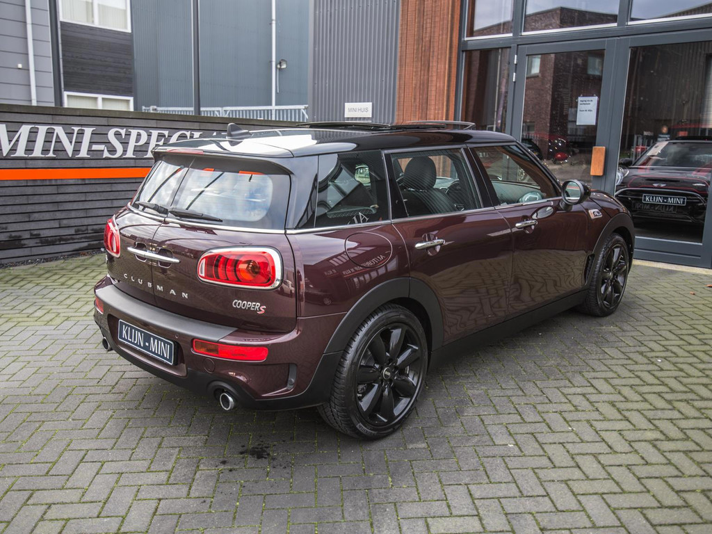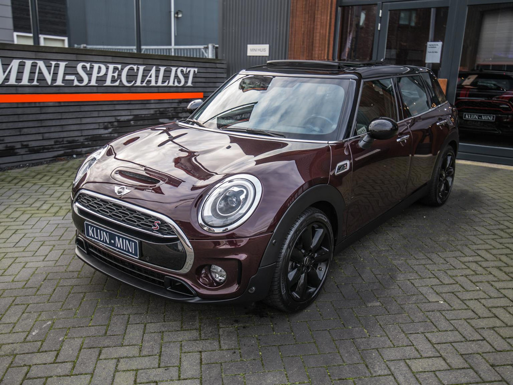 Unieke Mini Cooper S Clubman automaat met een 192pk motor uitgevoerd in de prachtige kleur Burgundy red met een zwarte dak en spiegels. Deze in werkelijk nieuwstaat verkerende Mini is voorzien van alle denkbare opties oa:Climate control,vollederen interieur carbon black,sportstoelen,stoelverwarming,breedbeeld navigatie,Mini Connected XL,keyless go,18” S velgen zwart,head up display,led verlichting,elektrisch bedienbare glazen panoramadak,5 persoons,parkassist(auto parkeert zelf in)lederen sporstuur,lichtpakket,Harman Kardon soundsystem,parkeersensoren voor en achter,actieve voetgangersbeveiliging, adaptive cruise control,Mini driving modus,donker dakhemel,mf stuur,boordcomputer,regensensor,97.000km origineel.N.p. 53.000euro.Schitterende en unieke Mini Clubman in topstaat voor de echte liefhebber.