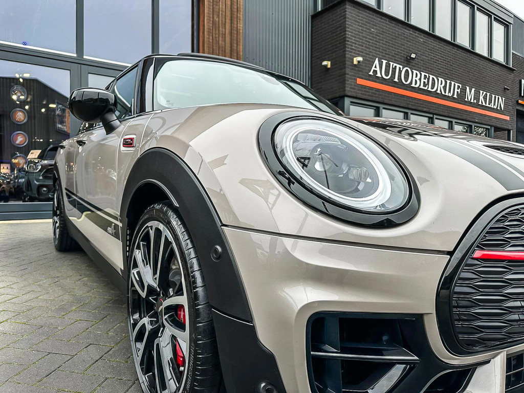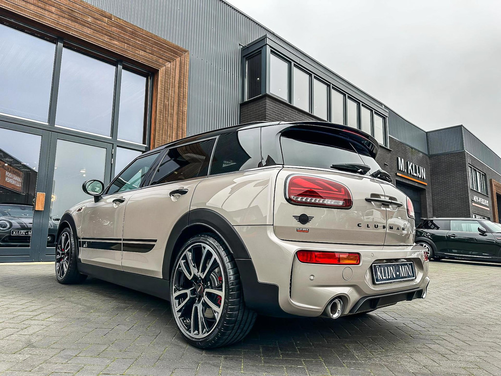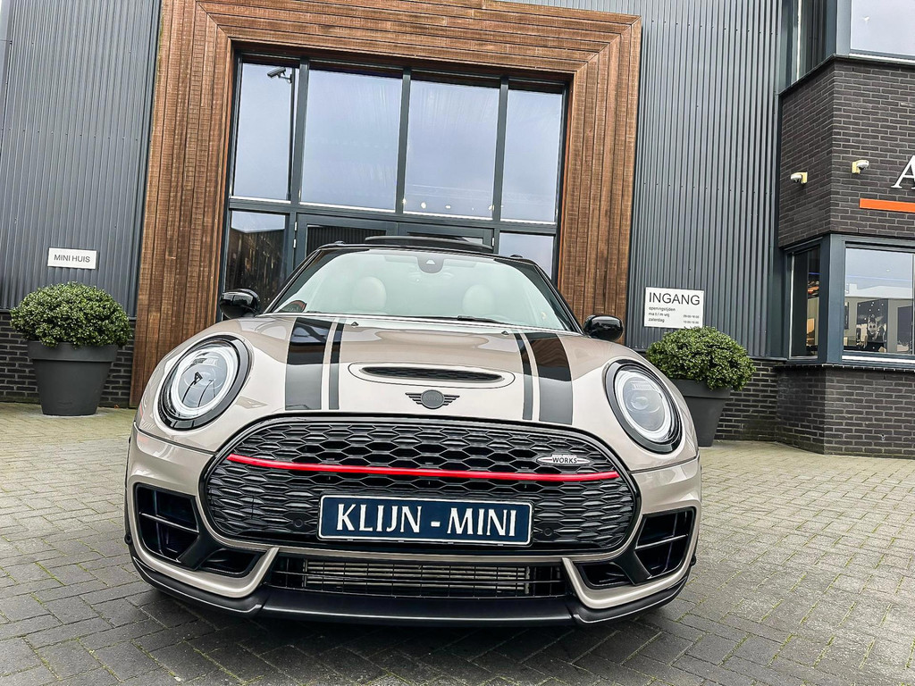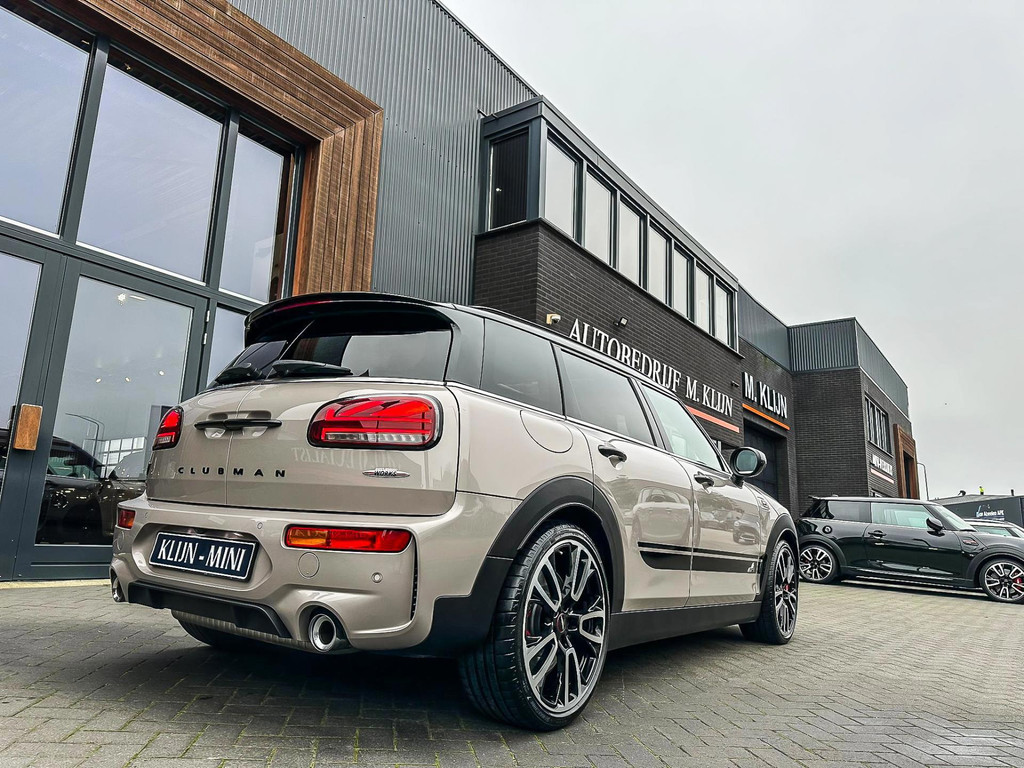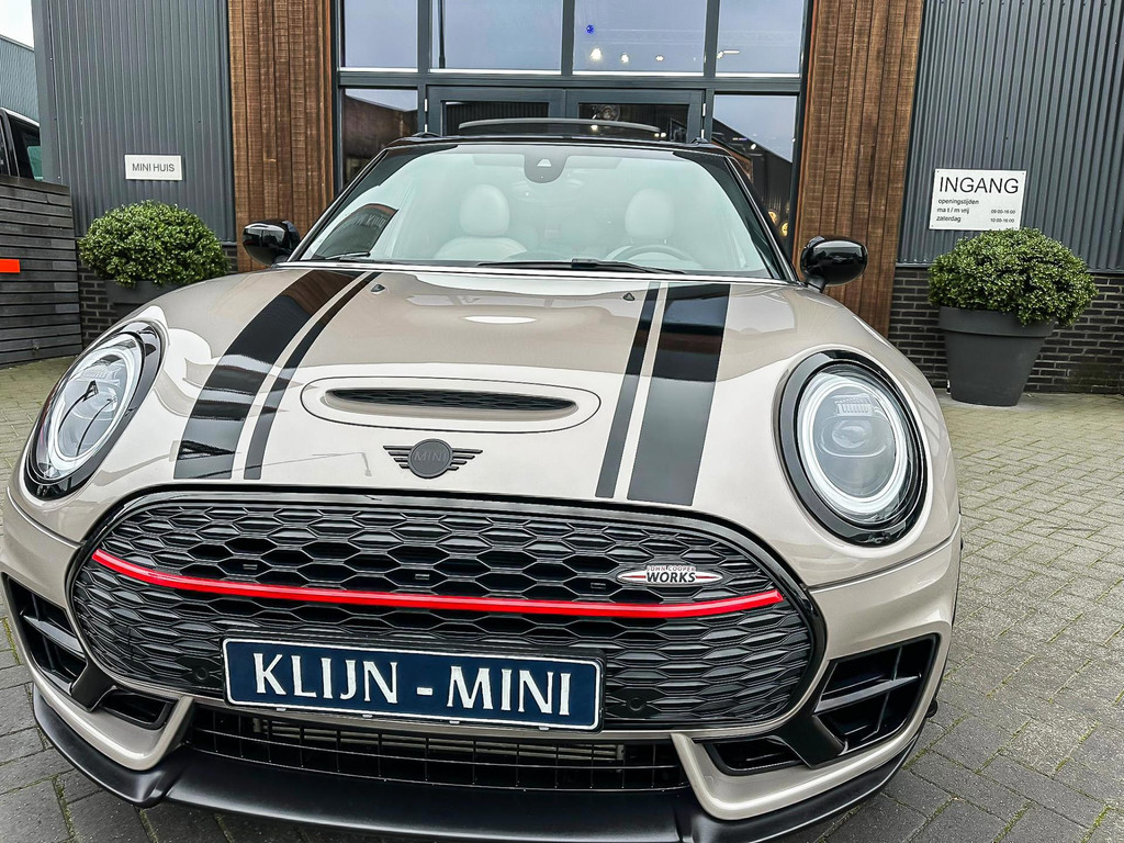 Zeer exclusieve facelift(nieuwste model) Mini Clubman John Cooper Works ALL4 F1 sportautomaat met een 306pk motor uitgevoerd in de prachtige kleurencombinatie van Rooftopgrey metallic en Satelittegrey lederen interieur.Deze in werkelijk nieuwstaat verkerende Mini is uitgerust met alle maar dan ook alle denkbare opties oa:Climate control,vollederen interieur satelitte grey,elektrische stoelen met memory,sportstoelen, stoelverwarming,verwarmd stuurwiel,digital cockpit,breedbeeld dvd navigatie XL,Mini Connected XL,keyless go,achteruitrijcamera,19” Jcw cup velgen,head up display,adaptieve cruise control,sportpakket,vierwielaandrijving,led verlichting,elektrisch bedienbare glazen panoramadak,5 persoons,privacyglass,lederen Jcw sportstuur met F1 flipperschakel,lichtpakket met Mini logo's,welcome pakket,parkeersensoren voor en achter,parkassist(auto parkeert zelf in),F1 schakel op stuur,actieve voetgangersbeveiliging,lc scherm,alarm,Mini driving modus,donker dakhemel,dakrailing zwart,mf stuur,Apple Carplay,dab radio,boordcomputer,blackline,nieuw model,regensensor,Union Jack achterlichten,vierwielaandrijving,armsteun,chili 2 pakket,alle boekjes+originele sleutels,1e eigenaar,67.000km origineel,,nieuwprijs 71.800,-.Schitterende en unieke Mini Clubman Works in concoursstaat voor de echte liefhebber.