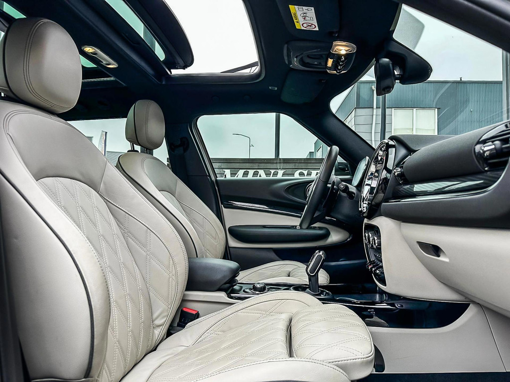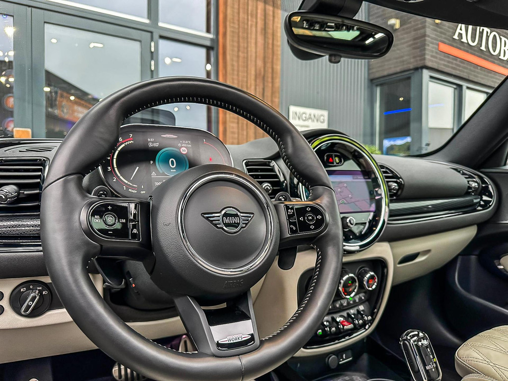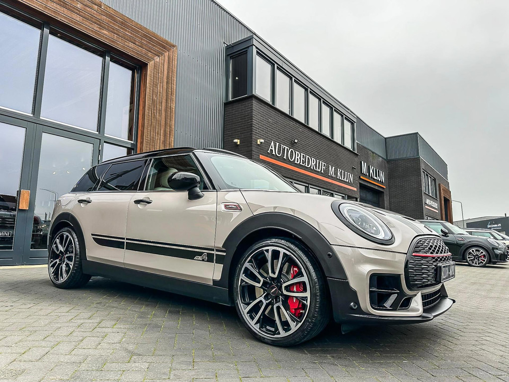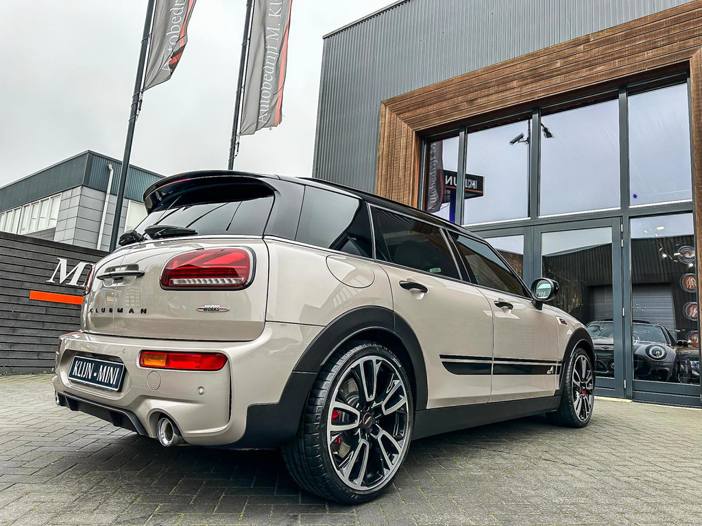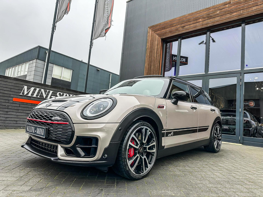 Zeer exclusieve facelift(nieuwste model) Mini Clubman John Cooper Works ALL4 F1 sportautomaat met een 306pk motor uitgevoerd in de prachtige kleurencombinatie van Rooftopgrey metallic en Satelittegrey lederen interieur.Deze in werkelijk nieuwstaat verkerende Mini is uitgerust met alle maar dan ook alle denkbare opties oa:Climate control,vollederen interieur satelitte grey,elektrische stoelen met memory,sportstoelen, stoelverwarming,verwarmd stuurwiel,digital cockpit,breedbeeld dvd navigatie XL,Mini Connected XL,keyless go,achteruitrijcamera,19” Jcw cup velgen,head up display,adaptieve cruise control,sportpakket,vierwielaandrijving,led verlichting,elektrisch bedienbare glazen panoramadak,5 persoons,privacyglass,lederen Jcw sportstuur met F1 flipperschakel,lichtpakket met Mini logo's,welcome pakket,parkeersensoren voor en achter,parkassist(auto parkeert zelf in),F1 schakel op stuur,actieve voetgangersbeveiliging,lc scherm,alarm,Mini driving modus,donker dakhemel,dakrailing zwart,mf stuur,Apple Carplay,dab radio,boordcomputer,blackline,nieuw model,regensensor,Union Jack achterlichten,vierwielaandrijving,armsteun,chili 2 pakket,alle boekjes+originele sleutels,1e eigenaar,67.000km origineel,,nieuwprijs 71.800,-.Schitterende en unieke Mini Clubman Works in concoursstaat voor de echte liefhebber.