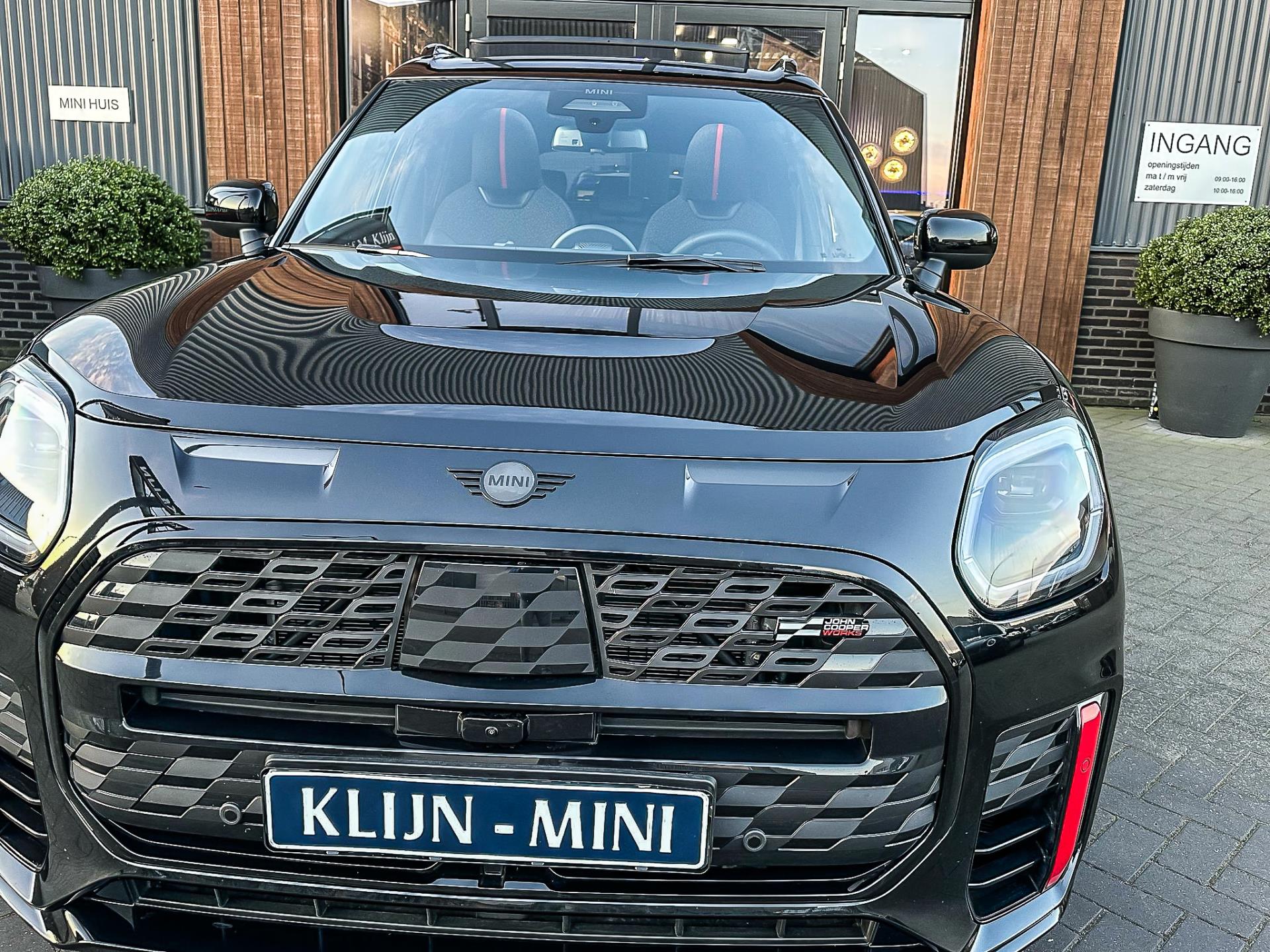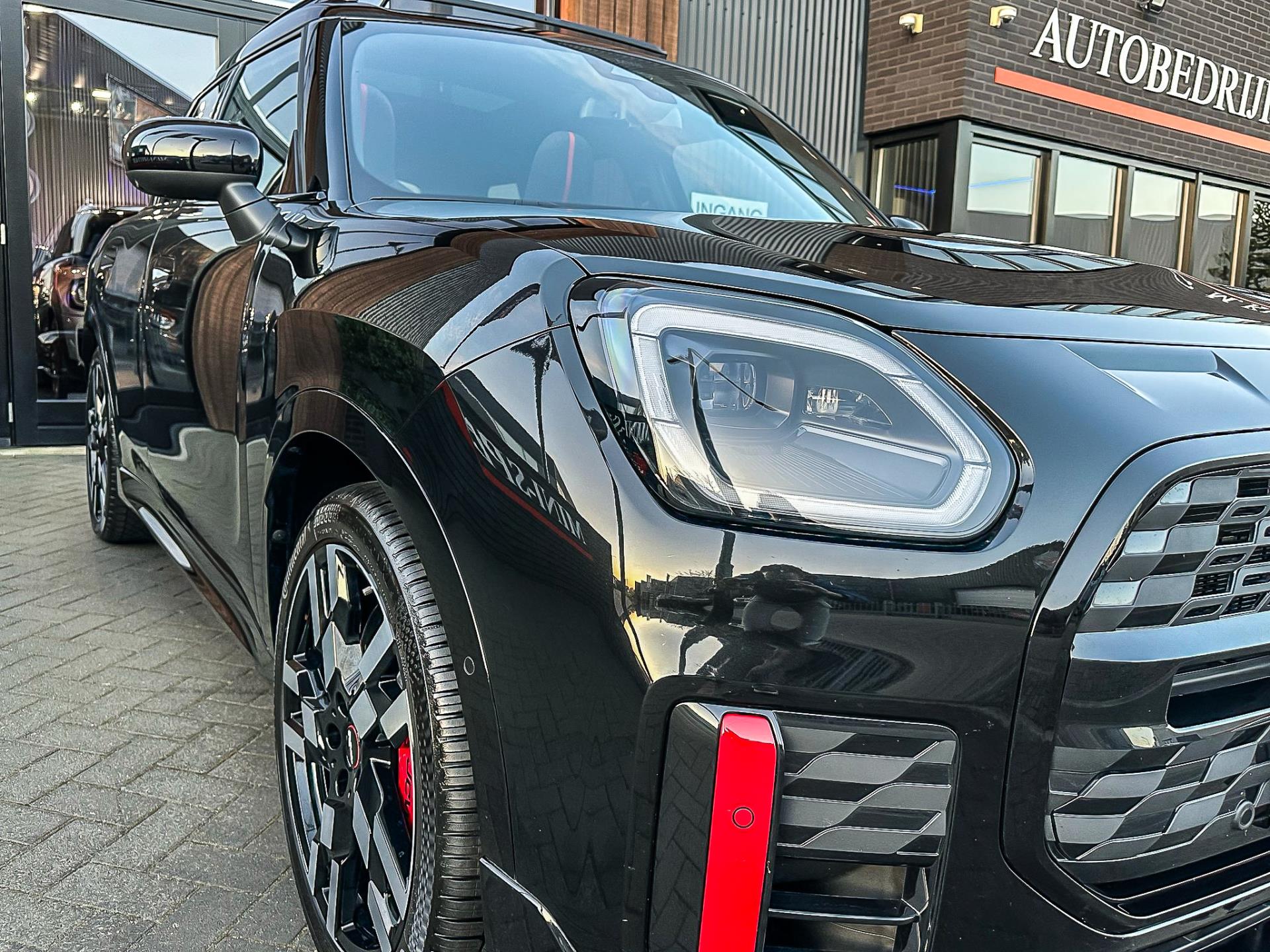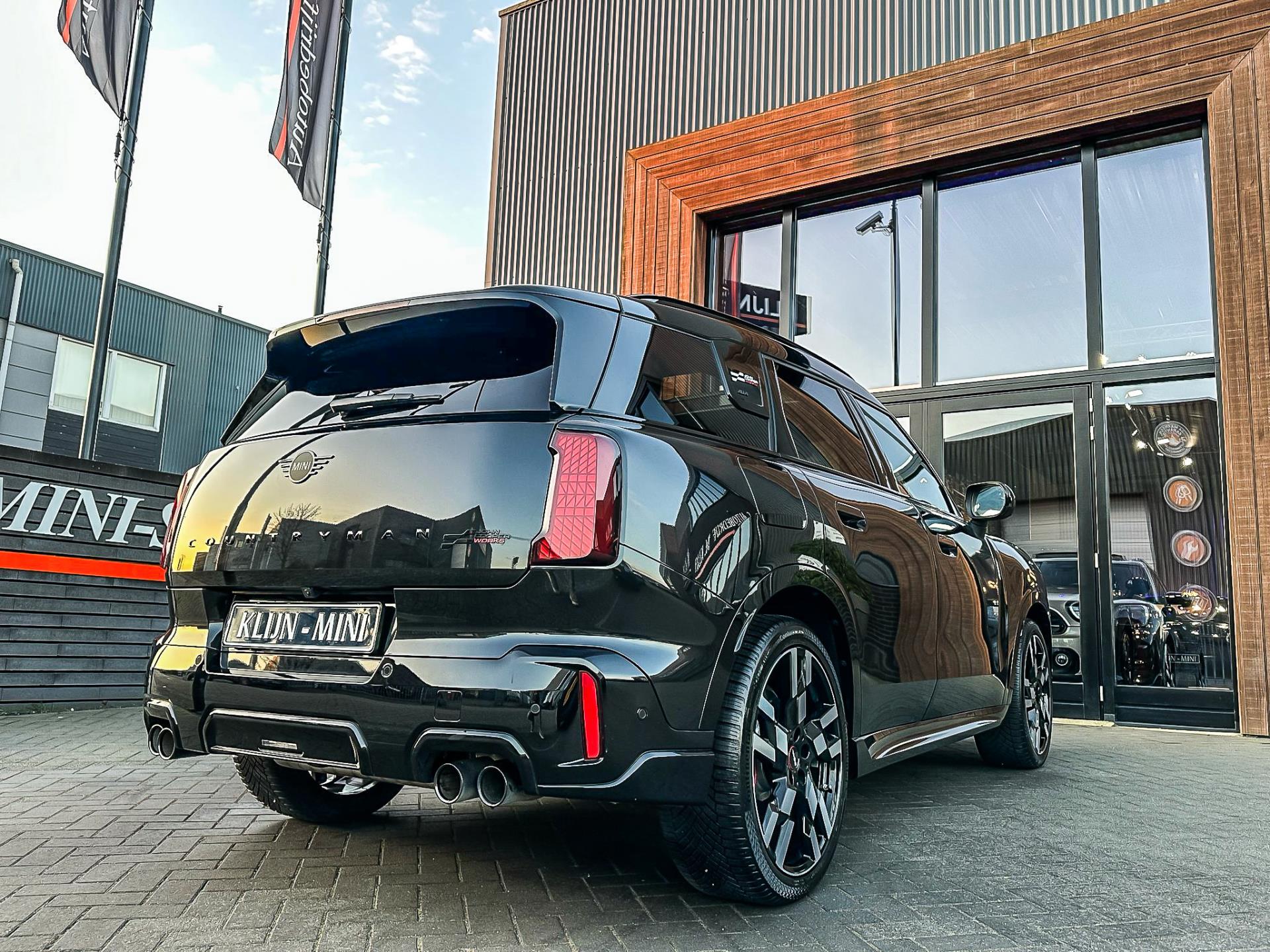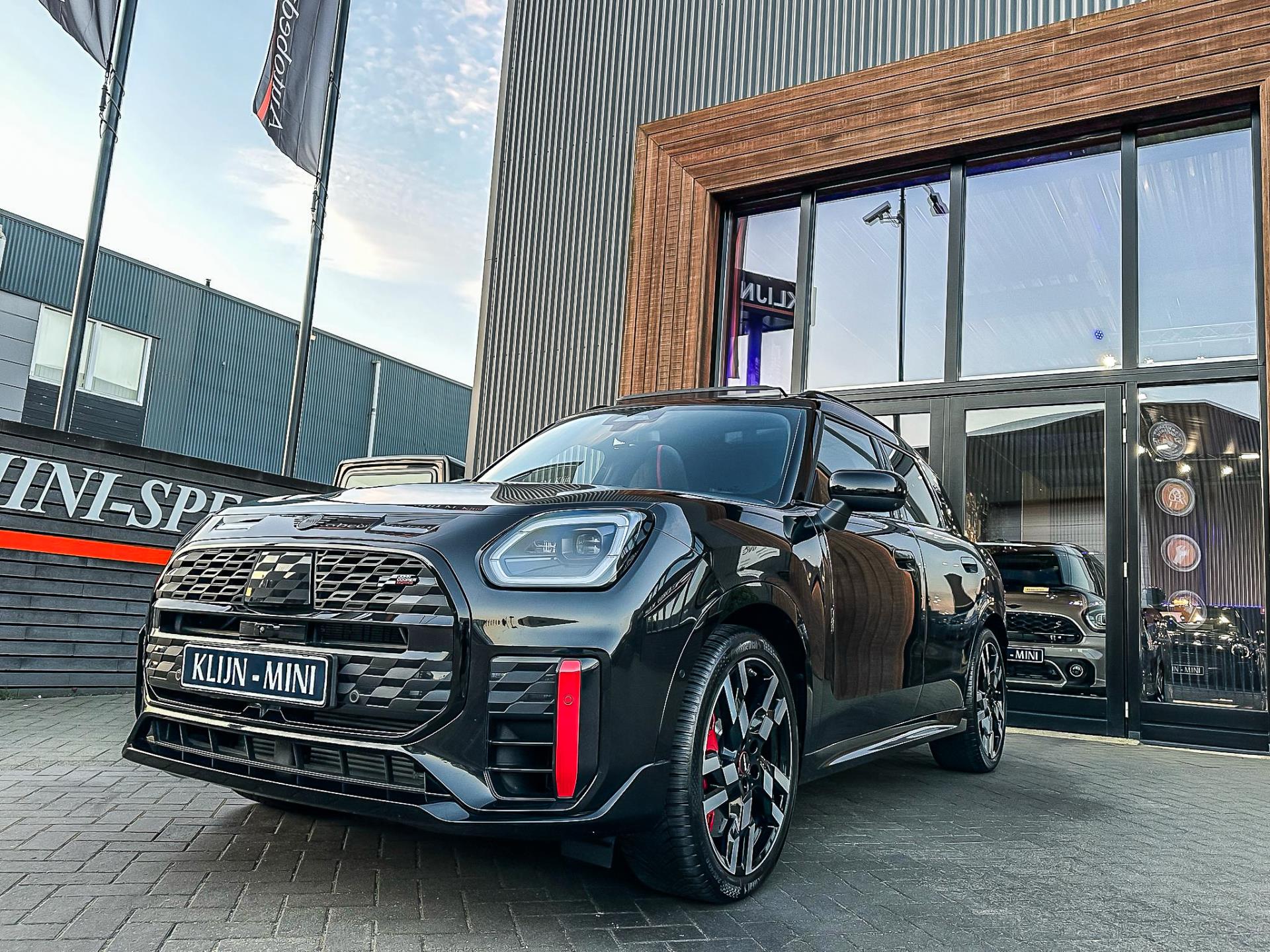 Zeer exclusieve en unieke facelift(nieuwste model) Mini Countryman John Cooper Works ALL4 F1 sportautomaat met een 300pk motor in de prachtige kleur Midnightblack en uitgevoerd met een elektrische inklapbare trekhaak.Deze in werkelijk nieuwstaat verkerende Mini is uitgerust met alle maar dan ook alle denkbare opties oa:Climate control,vollederen interieur,sportstoelen,elektrische stoelen met memory,massage stoelen,stoelverwarming,stuurverwarming,virtual cockpit,breedbeeld dvd navigatie XL,Mini Connected XL,head up display,keyless go,rondomzicht camera 360,Harman Kardon soundsystem,20” Jcw flag spoke velgen,sportpakket,ddc(verstelbaar onderstel),vierwielaandrijving,trekhaak elektrisch(fietsendrager),led verlichting,elektrisch bedienbare glazen panoramadak,zwart dak+spiegels,5 persoons,privacyglass,lederen Jcw sportstuur met F1 flipperschakel,lichtpakket met Mini logo's,welcome pakket,parkeersensoren voor en achter,parkassist(auto parkeert zelf in),F1 schakel op stuur,actieve voetgangersbeveiliging,lc scherm,Mini driving modus,donker dakhemel,mf stuur,Apple Carplay,dab radio,boordcomputer,full black pack,nieuw model,regensensor,Union Jack achterlichten,vierwielaandrijving,armsteun,chili 2 pakket,alle boekjes+originele sleutels,1e eigenaar,22.000km origineel,nieuwprijs 92.500,-.Schitterende en unieke Mini Works in concoursstaat voor de echte liefhebber.