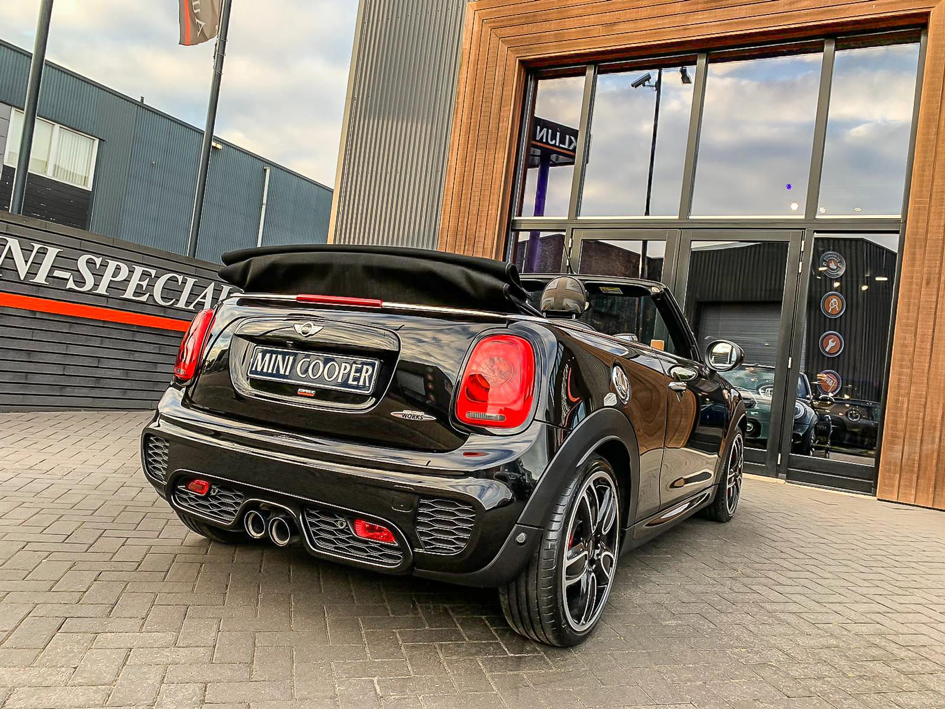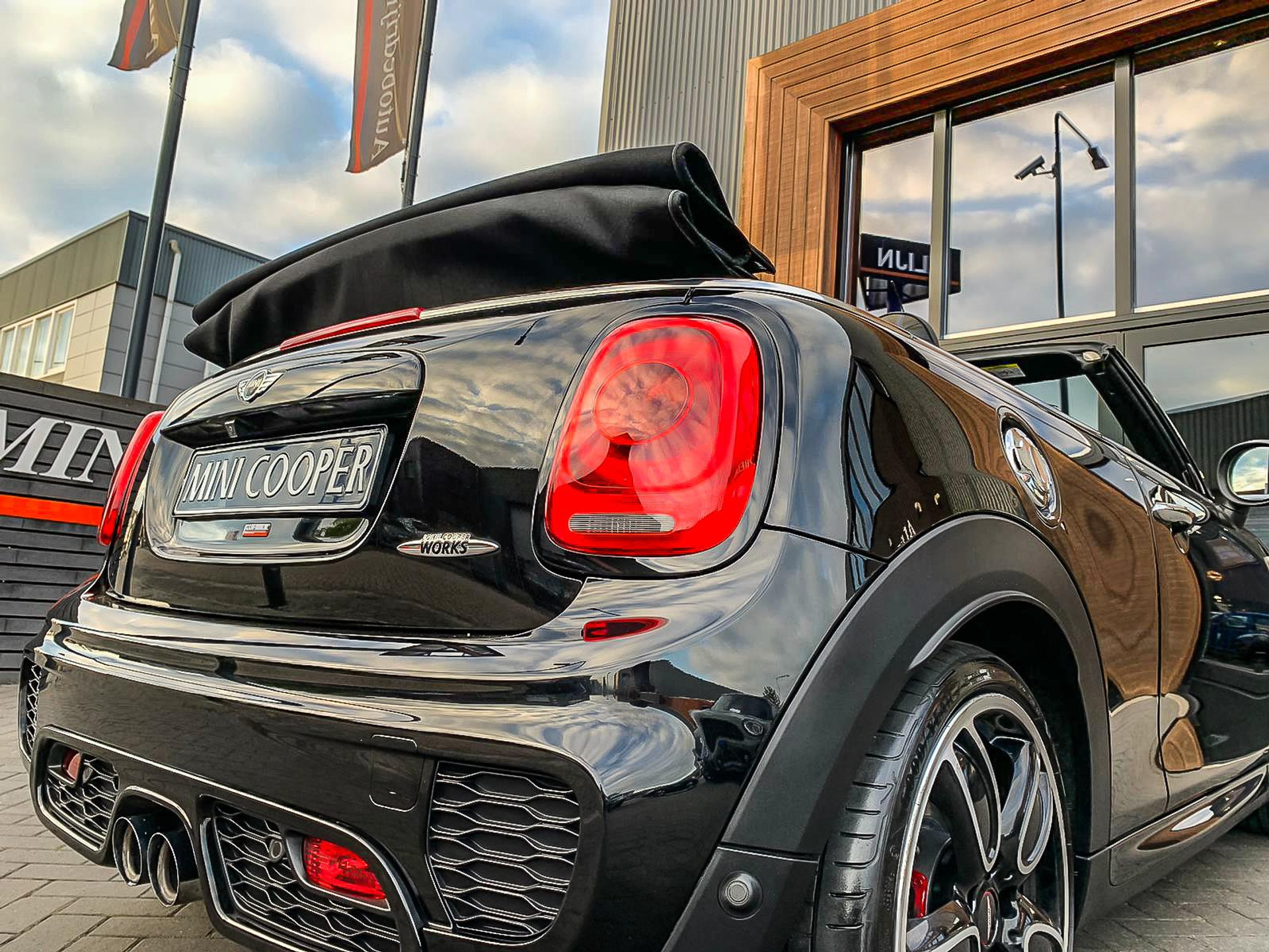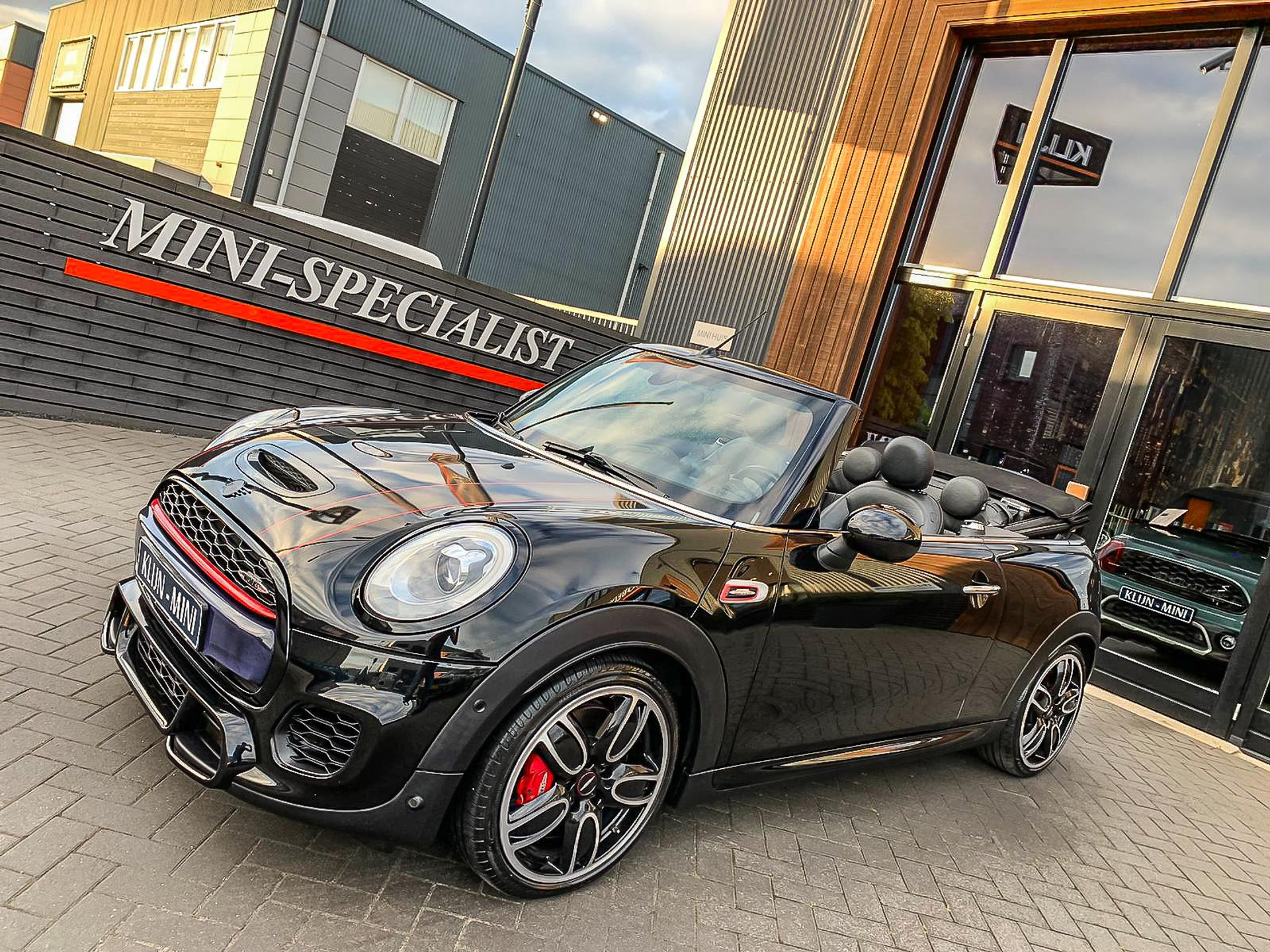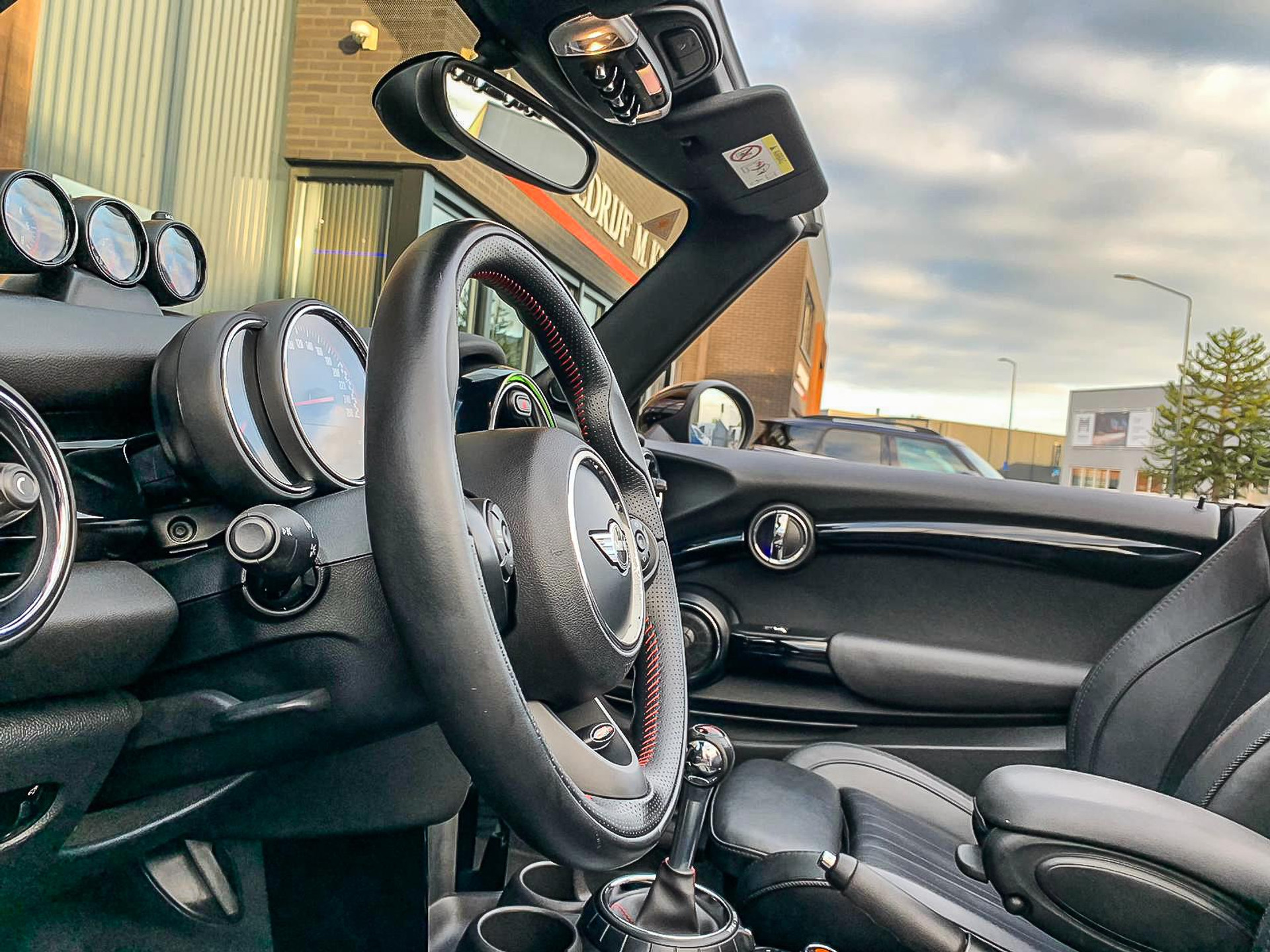 Unieke handgeschakelde Mini John Cooper Works cabrio met een 231pk motor in de prachtige kleur Midnightblack metallic.Deze schitterende Mini is uitgerust met alle denkbare opties:Climate control,vollederen interieur Yours lounge,sportstoelen,stoelverwarming,navigatie,Mini connected XL,Harman Kardon soundsystem,dab tuner,achteruitrijcamera,cockpitchrono pakket,tel,usb,performence control,Mini driving modus,elektrische cabriokap,lederen Jcw sportstuur,mf stuur,automatisch dimmende binnenspiegel, regensensor,blackline, voetgangersbeveiliging,dtc,elektrisch inklapbare spiegels,parkeersensoren voor en achter,park assist(Mini parkeert zelf in),led koplampen met uitgebreide functies,18 inch JCW cup velgen,lichtpakket met Mini logo's,gezichtspakket,chili 2 pakket,51.000km origineel,nieuwprijs 56.000euro.Prachtig uitgevoerde Mini Jcw in concoursstaat voor de echte liefhebber.