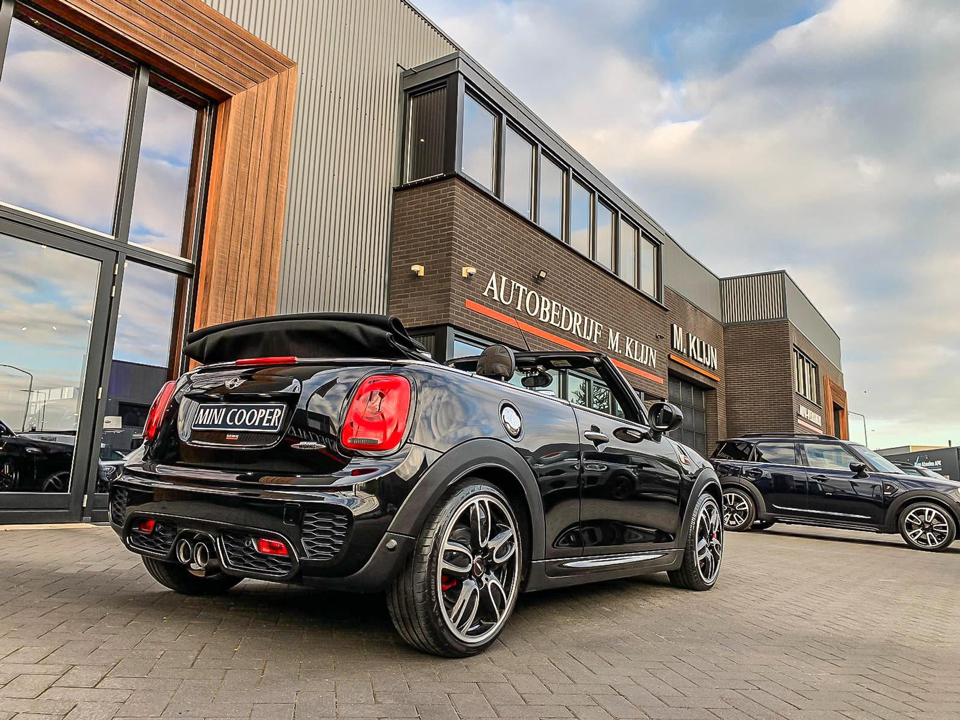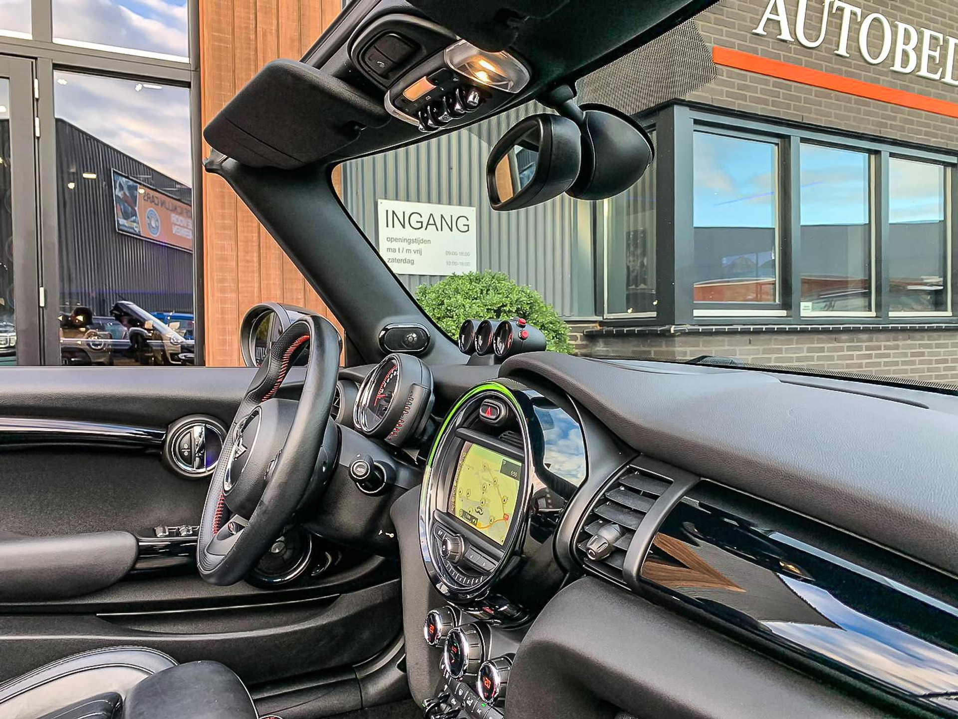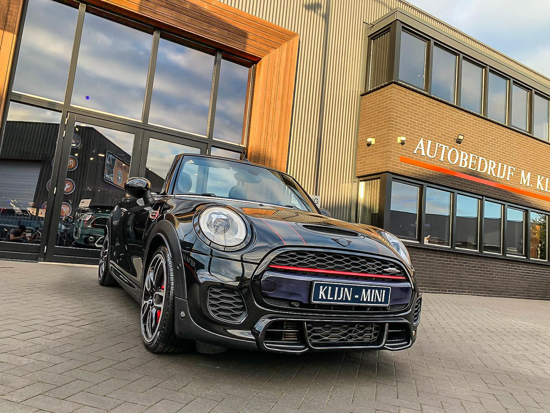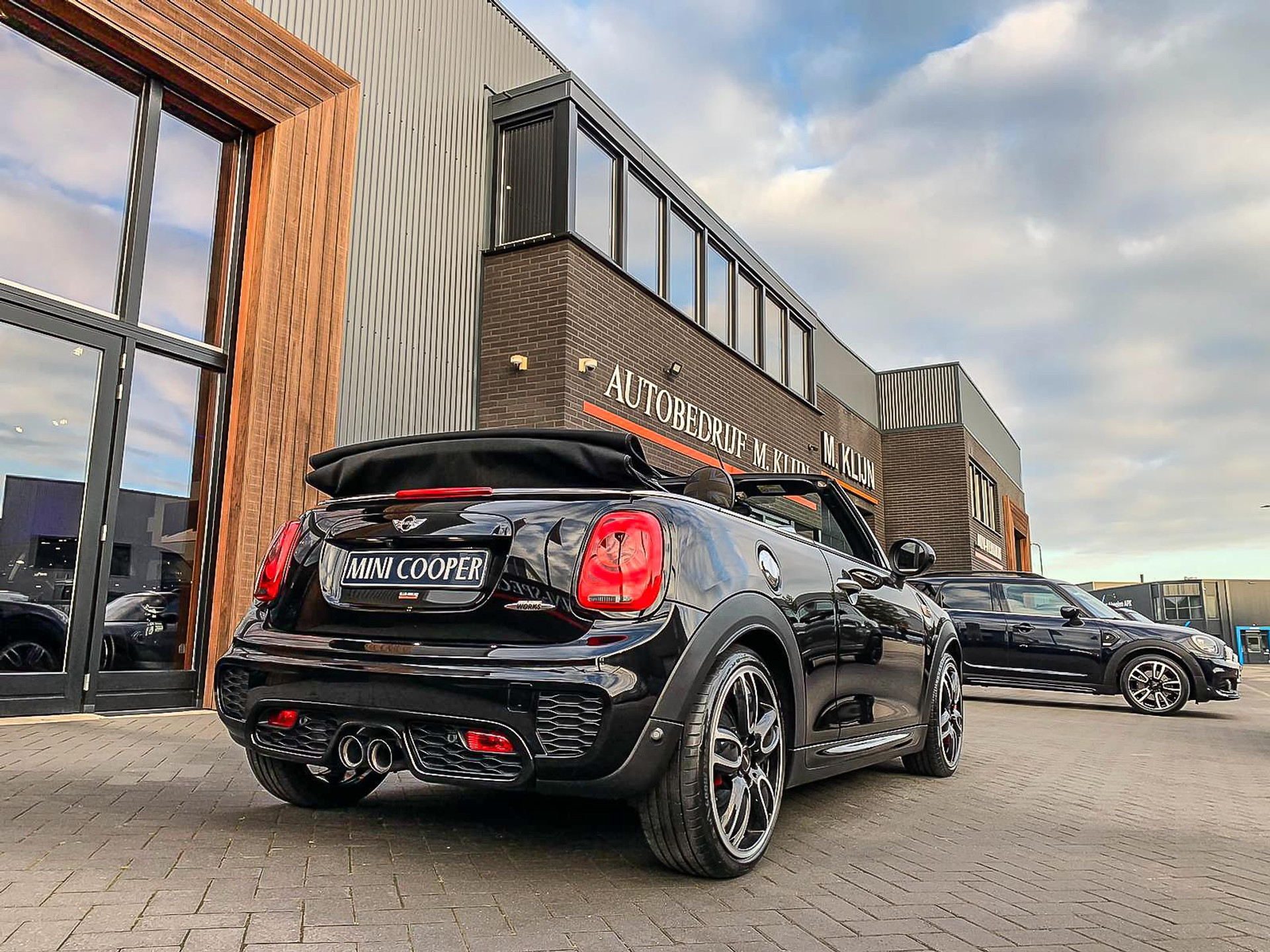 Unieke handgeschakelde Mini John Cooper Works cabrio met een 231pk motor in de prachtige kleur Midnightblack metallic.Deze schitterende Mini is uitgerust met alle denkbare opties:Climate control,vollederen interieur Yours lounge,sportstoelen,stoelverwarming,navigatie,Mini connected XL,Harman Kardon soundsystem,dab tuner,achteruitrijcamera,cockpitchrono pakket,tel,usb,performence control,Mini driving modus,elektrische cabriokap,lederen Jcw sportstuur,mf stuur,automatisch dimmende binnenspiegel, regensensor,blackline, voetgangersbeveiliging,dtc,elektrisch inklapbare spiegels,parkeersensoren voor en achter,park assist(Mini parkeert zelf in),led koplampen met uitgebreide functies,18 inch JCW cup velgen,lichtpakket met Mini logo's,gezichtspakket,chili 2 pakket,51.000km origineel,nieuwprijs 56.000euro.Prachtig uitgevoerde Mini Jcw in concoursstaat voor de echte liefhebber.