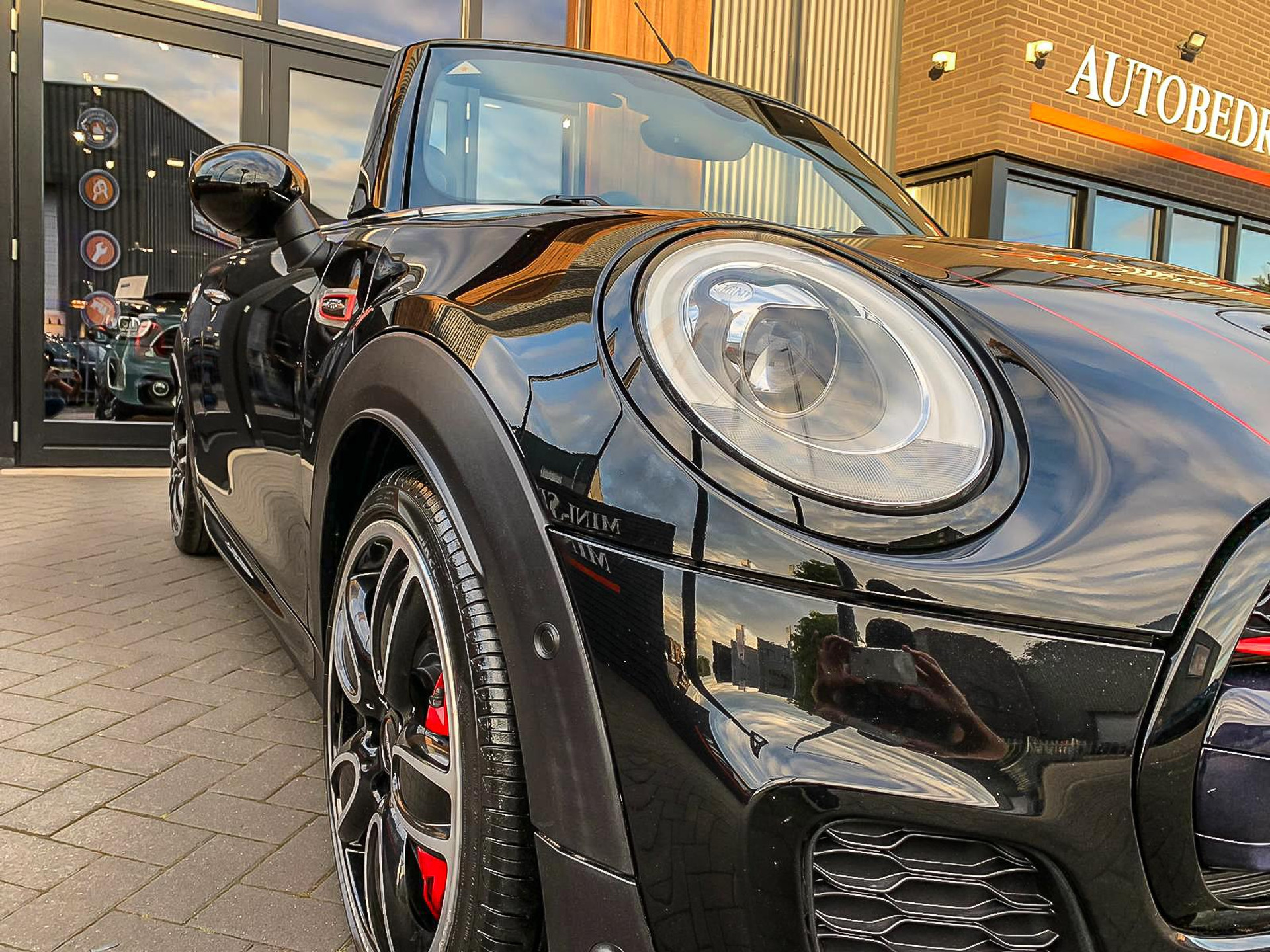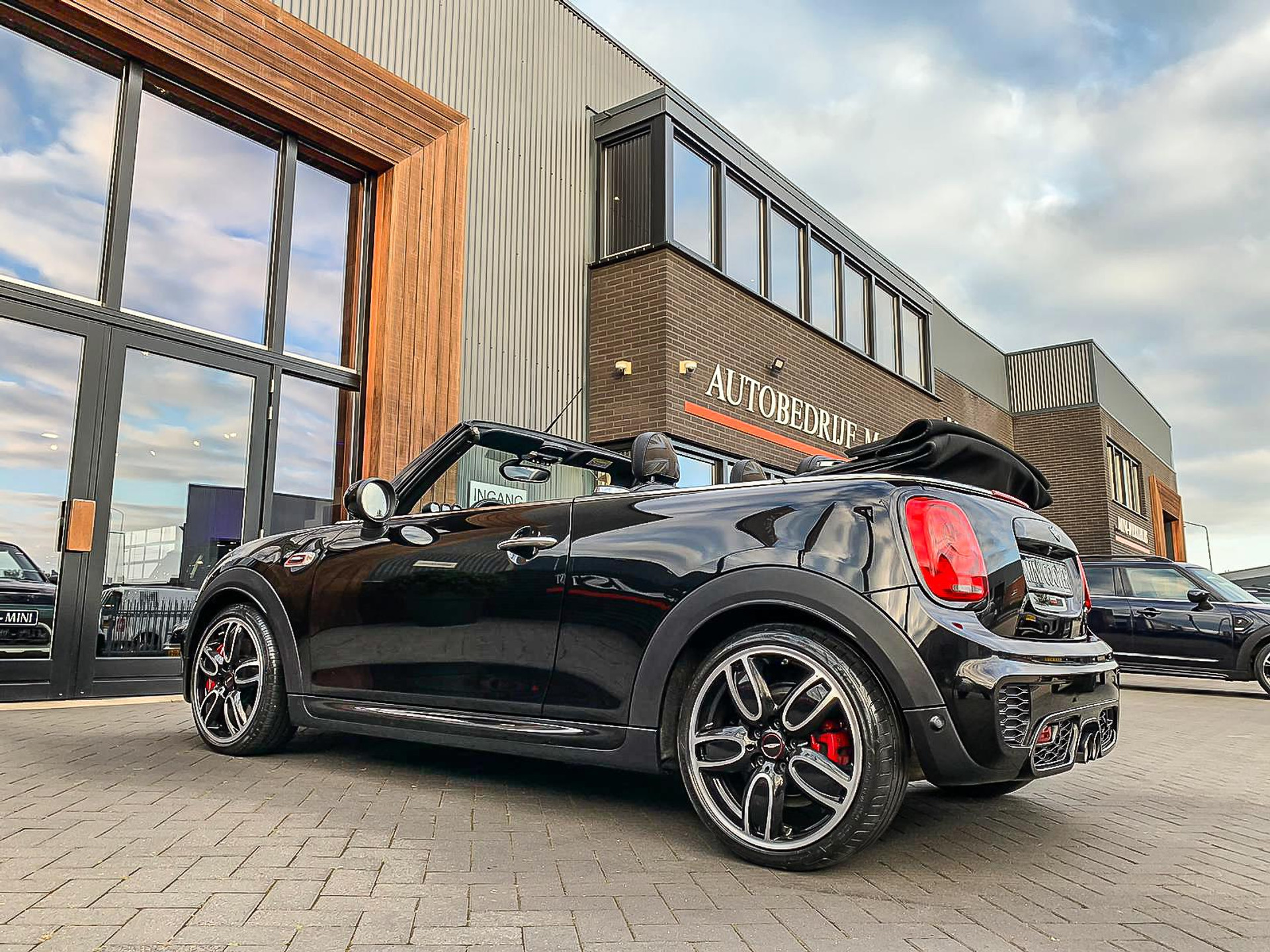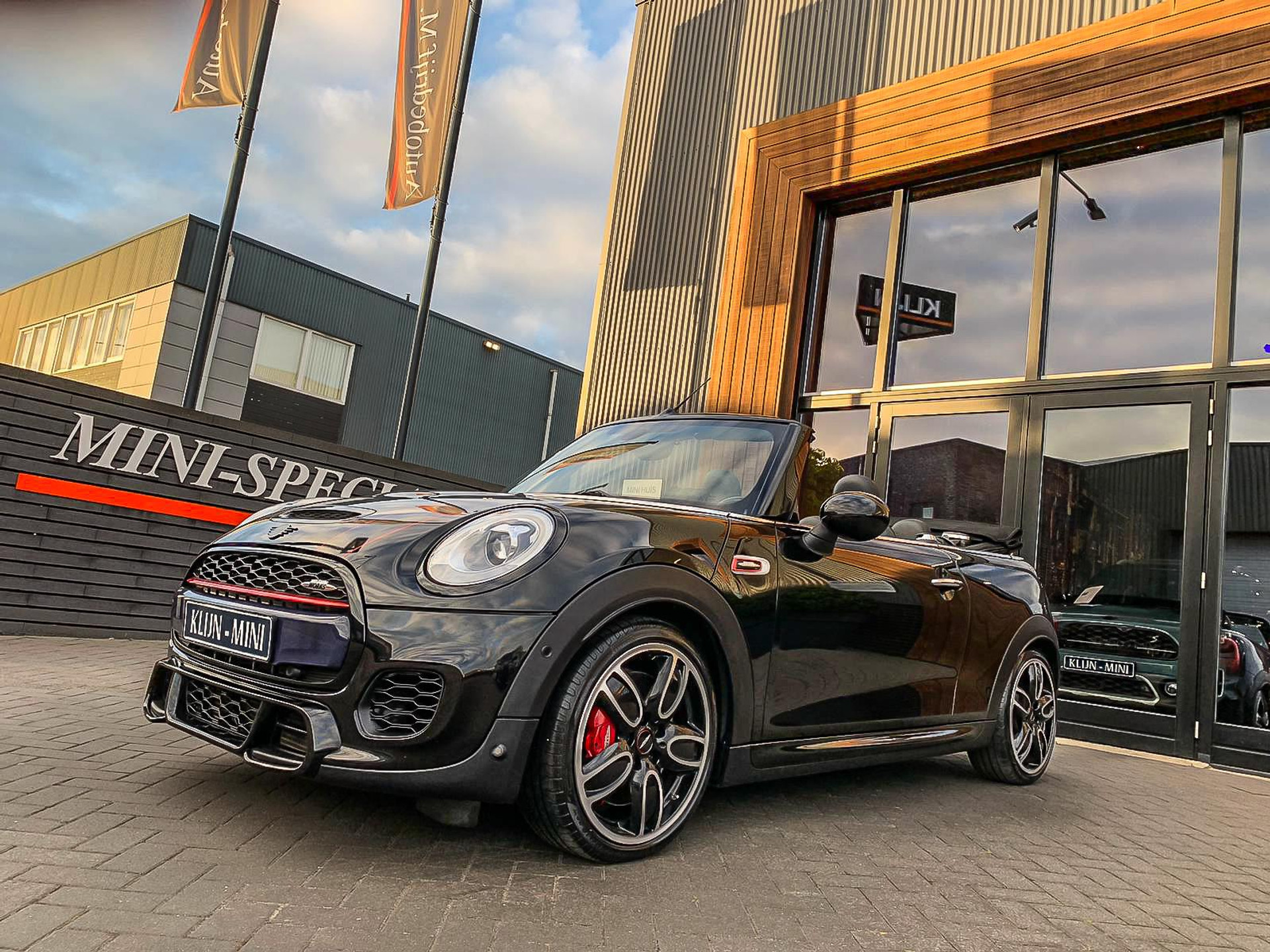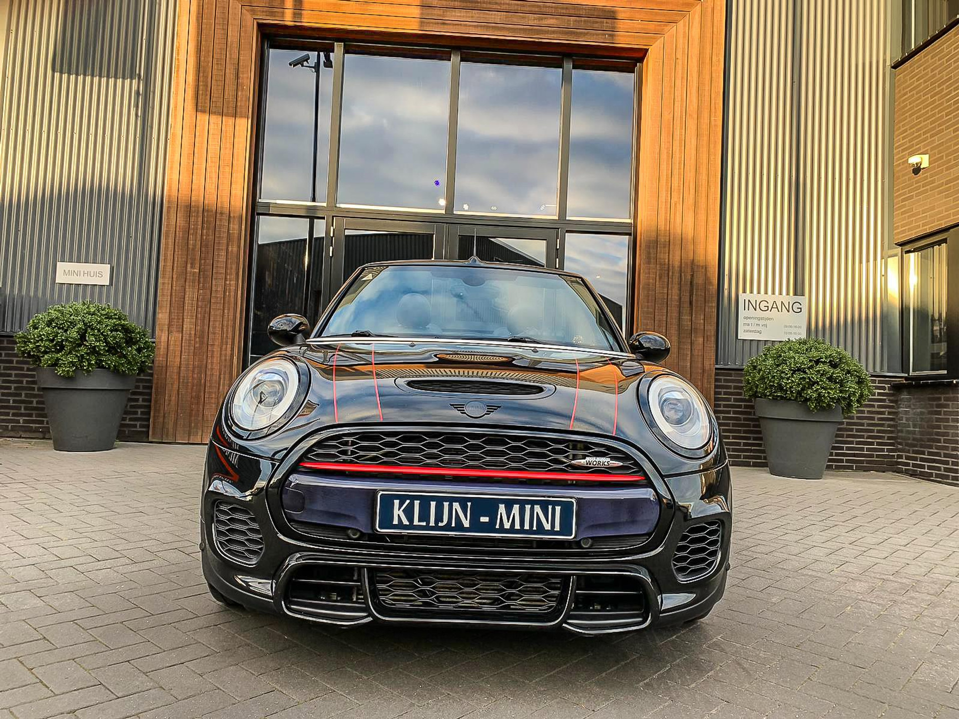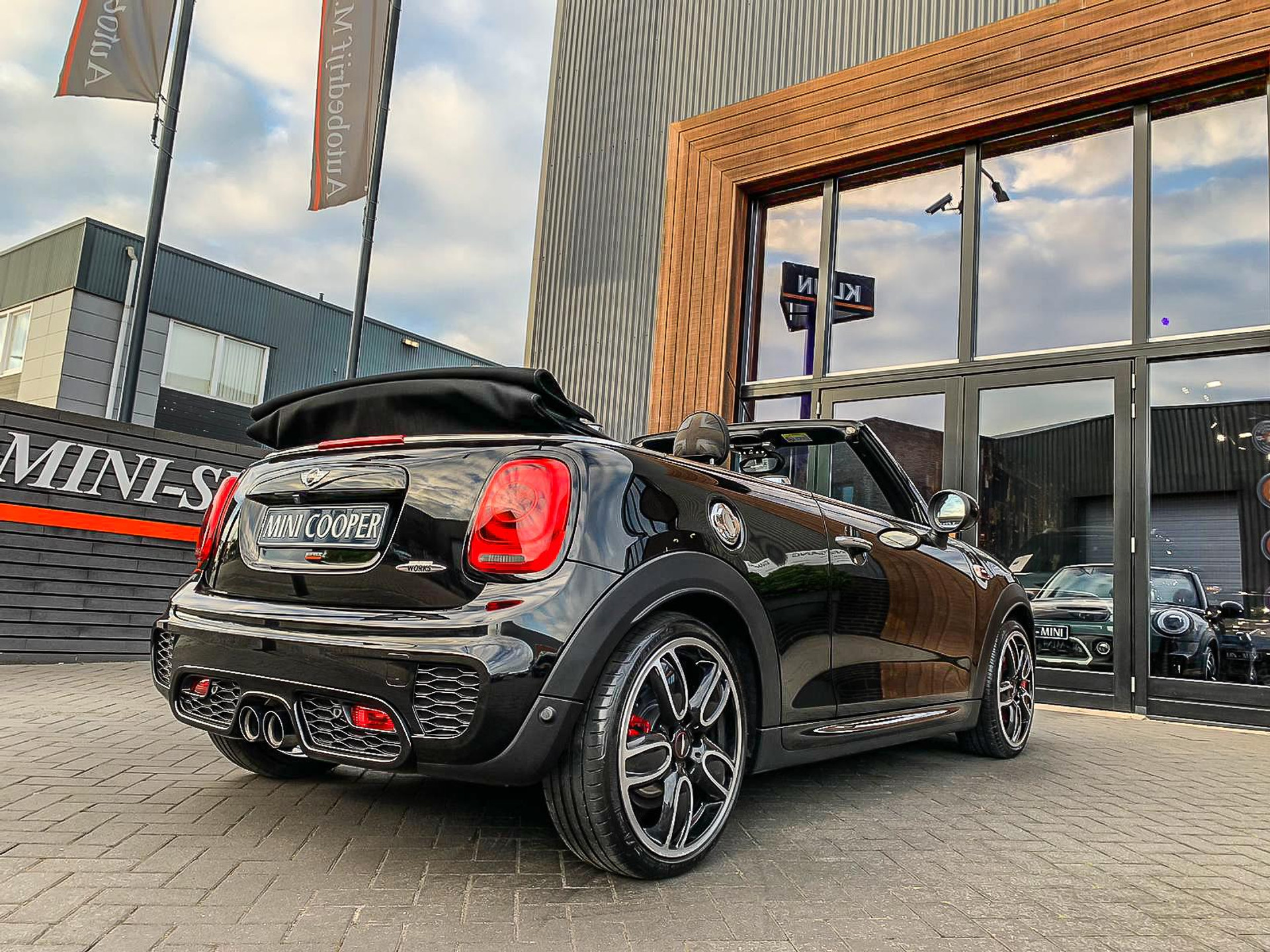 Unieke handgeschakelde Mini John Cooper Works cabrio met een 231pk motor in de prachtige kleur Midnightblack metallic.Deze schitterende Mini is uitgerust met alle denkbare opties:Climate control,vollederen interieur Yours lounge,sportstoelen,stoelverwarming,navigatie,Mini connected XL,Harman Kardon soundsystem,dab tuner,achteruitrijcamera,cockpitchrono pakket,tel,usb,performence control,Mini driving modus,elektrische cabriokap,lederen Jcw sportstuur,mf stuur,automatisch dimmende binnenspiegel, regensensor,blackline, voetgangersbeveiliging,dtc,elektrisch inklapbare spiegels,parkeersensoren voor en achter,park assist(Mini parkeert zelf in),led koplampen met uitgebreide functies,18 inch JCW cup velgen,lichtpakket met Mini logo's,gezichtspakket,chili 2 pakket,51.000km origineel,nieuwprijs 56.000euro.Prachtig uitgevoerde Mini Jcw in concoursstaat voor de echte liefhebber.