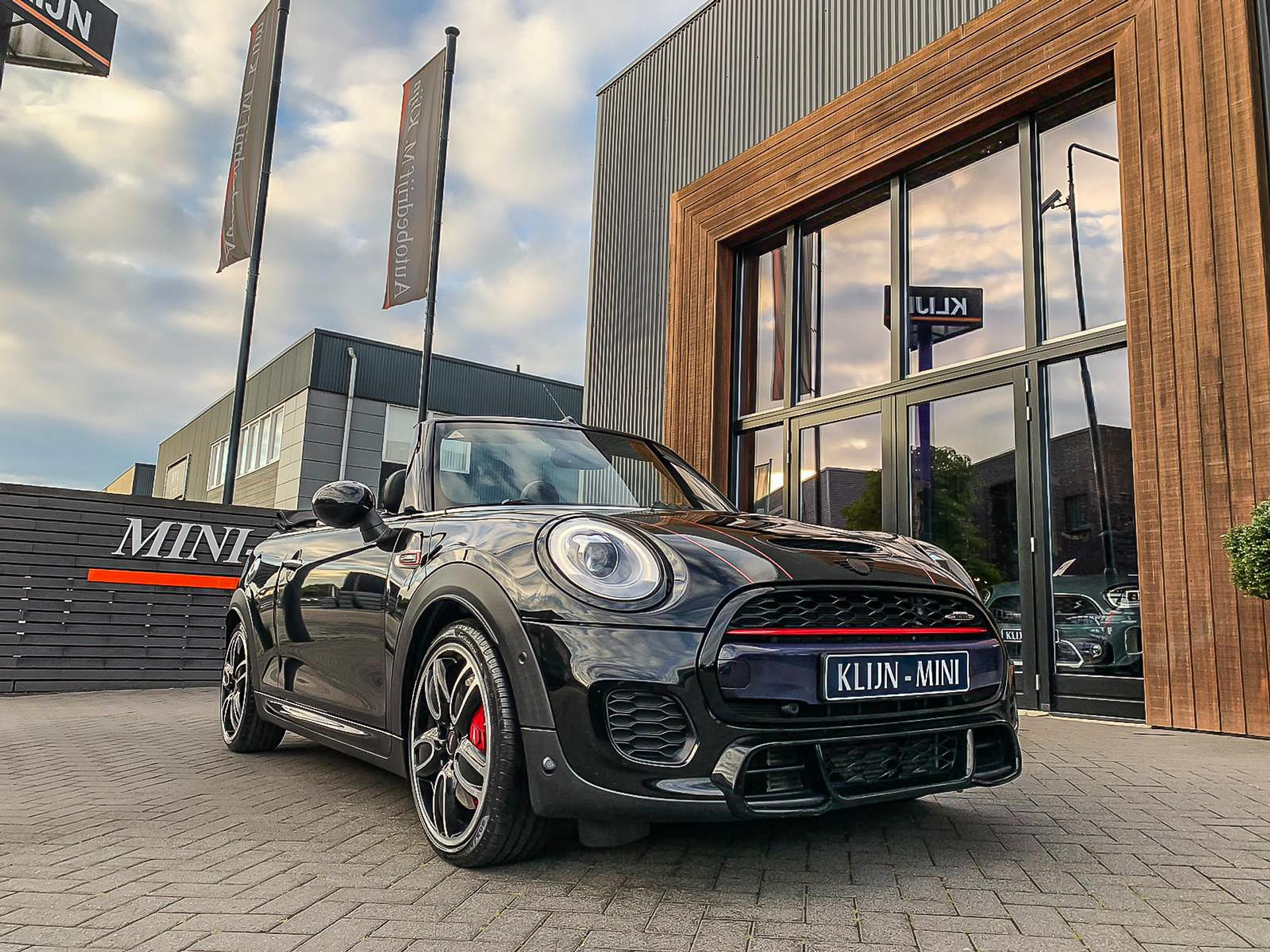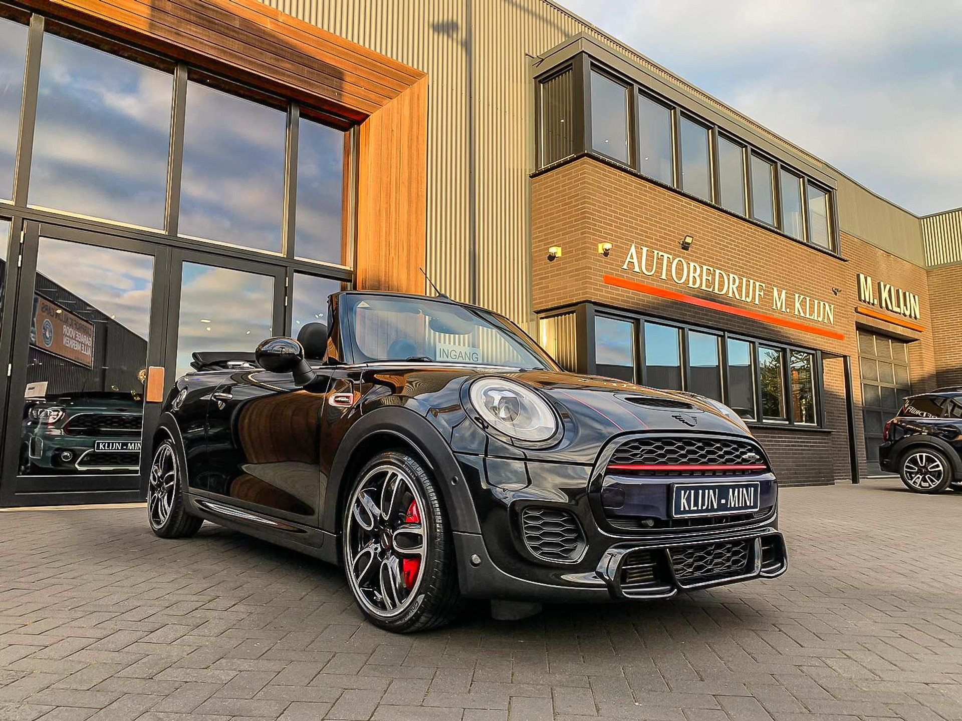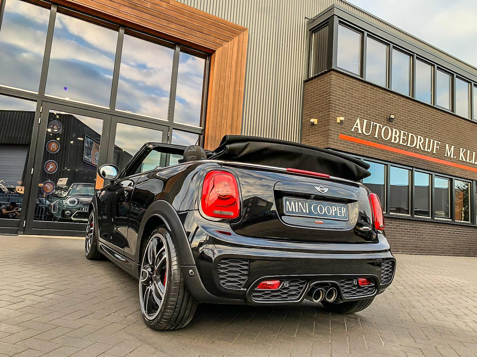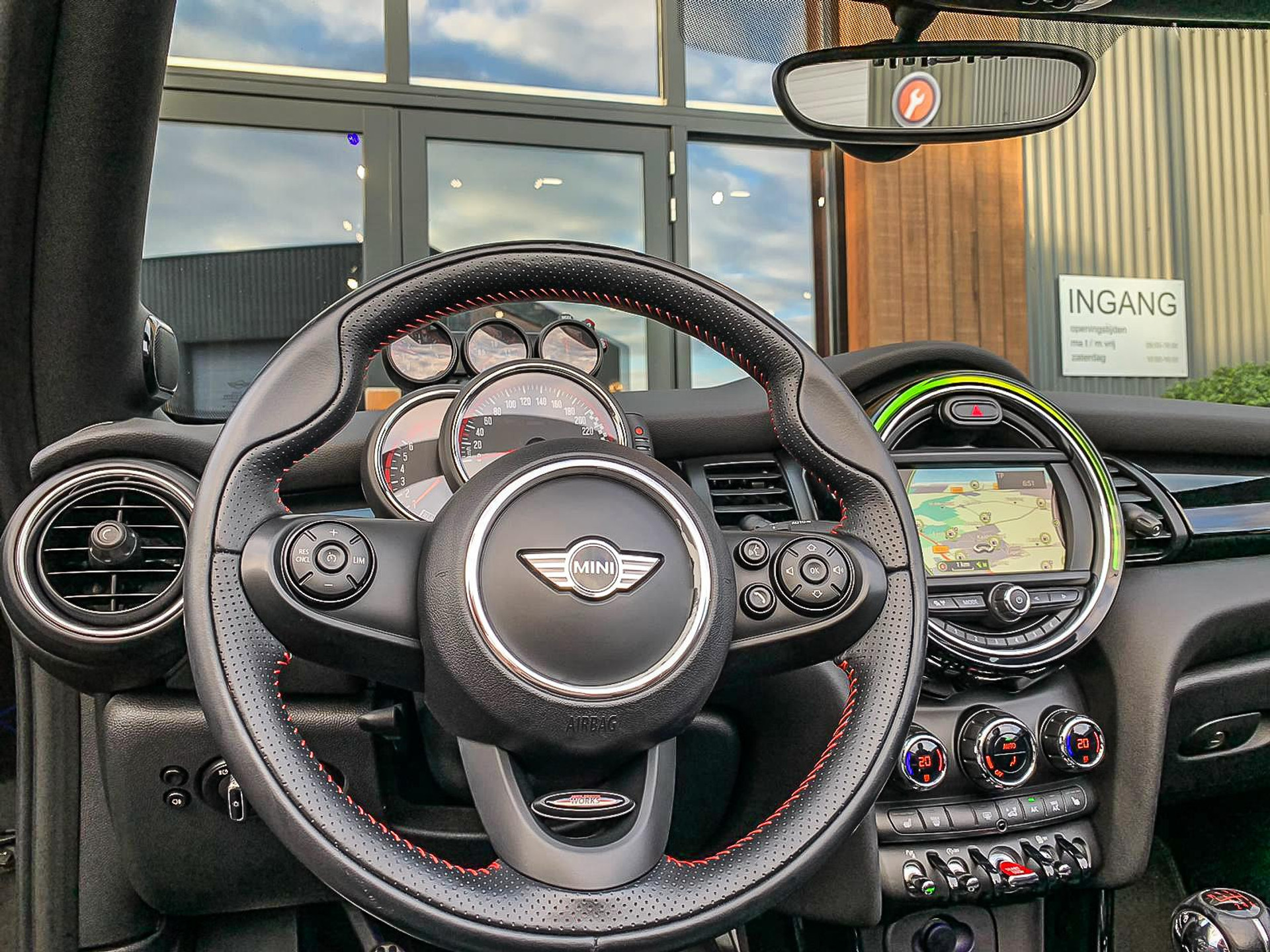 Unieke handgeschakelde Mini John Cooper Works cabrio met een 231pk motor in de prachtige kleur Midnightblack metallic.Deze schitterende Mini is uitgerust met alle denkbare opties:Climate control,vollederen interieur Yours lounge,sportstoelen,stoelverwarming,navigatie,Mini connected XL,Harman Kardon soundsystem,dab tuner,achteruitrijcamera,cockpitchrono pakket,tel,usb,performence control,Mini driving modus,elektrische cabriokap,lederen Jcw sportstuur,mf stuur,automatisch dimmende binnenspiegel, regensensor,blackline, voetgangersbeveiliging,dtc,elektrisch inklapbare spiegels,parkeersensoren voor en achter,park assist(Mini parkeert zelf in),led koplampen met uitgebreide functies,18 inch JCW cup velgen,lichtpakket met Mini logo's,gezichtspakket,chili 2 pakket,51.000km origineel,nieuwprijs 56.000euro.Prachtig uitgevoerde Mini Jcw in concoursstaat voor de echte liefhebber.