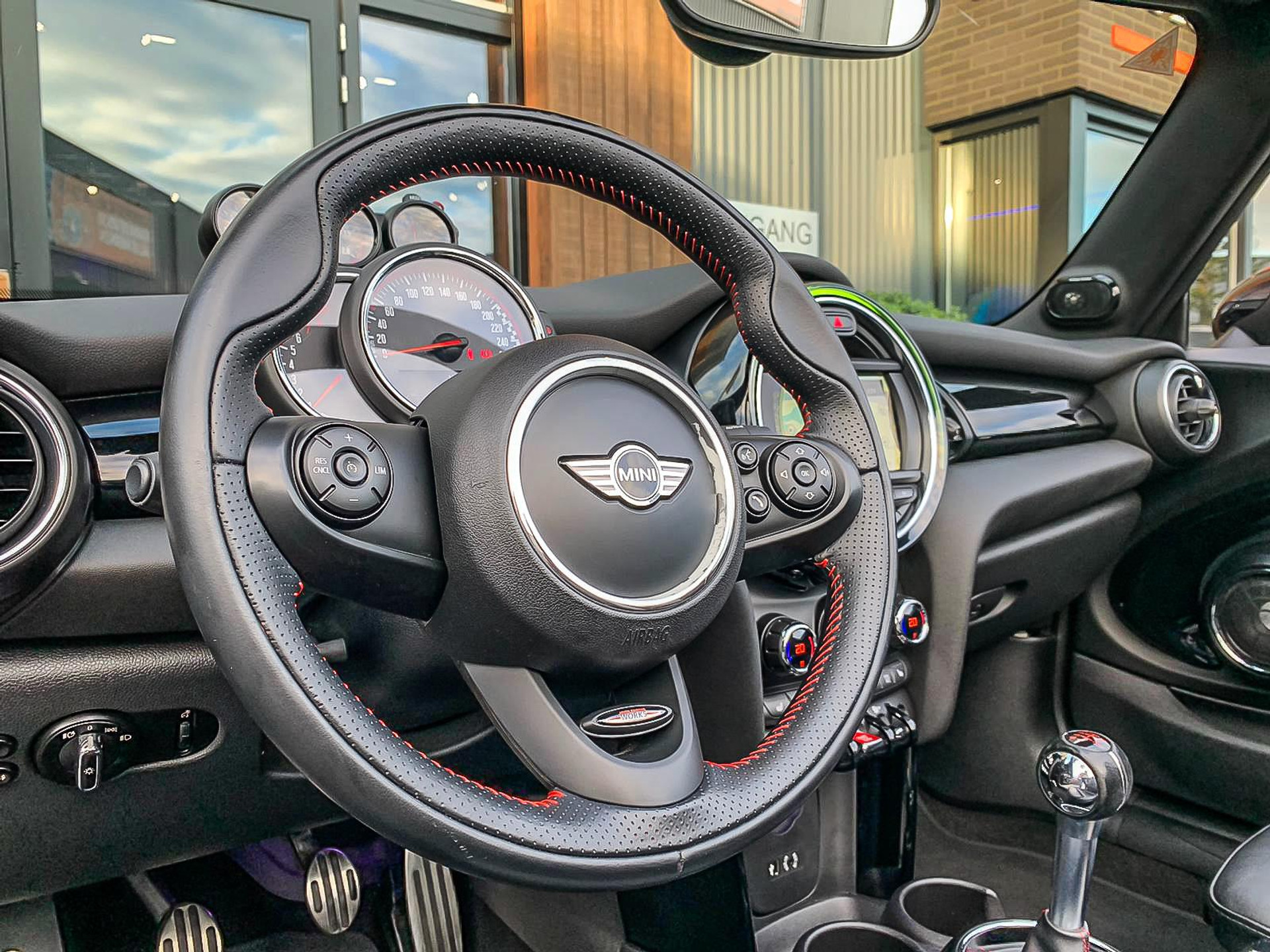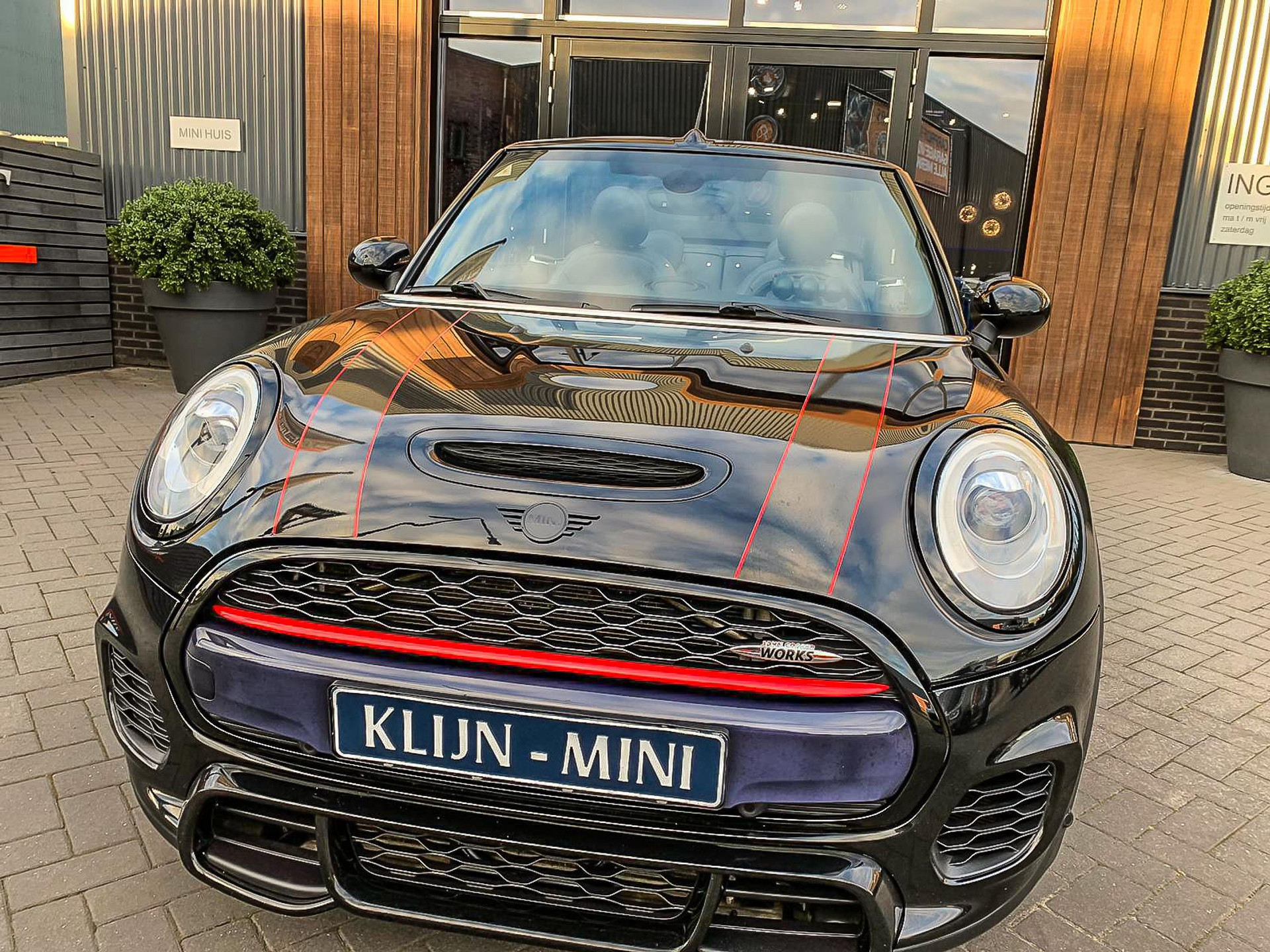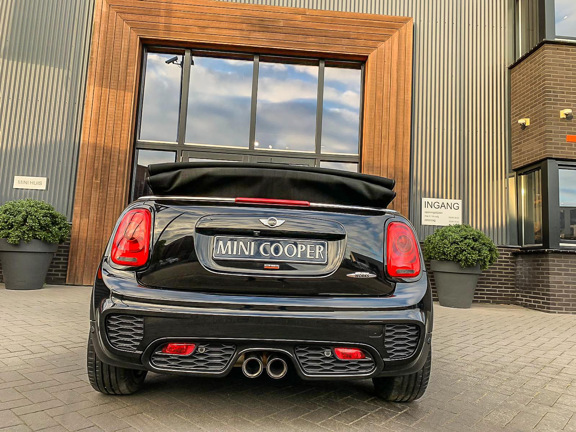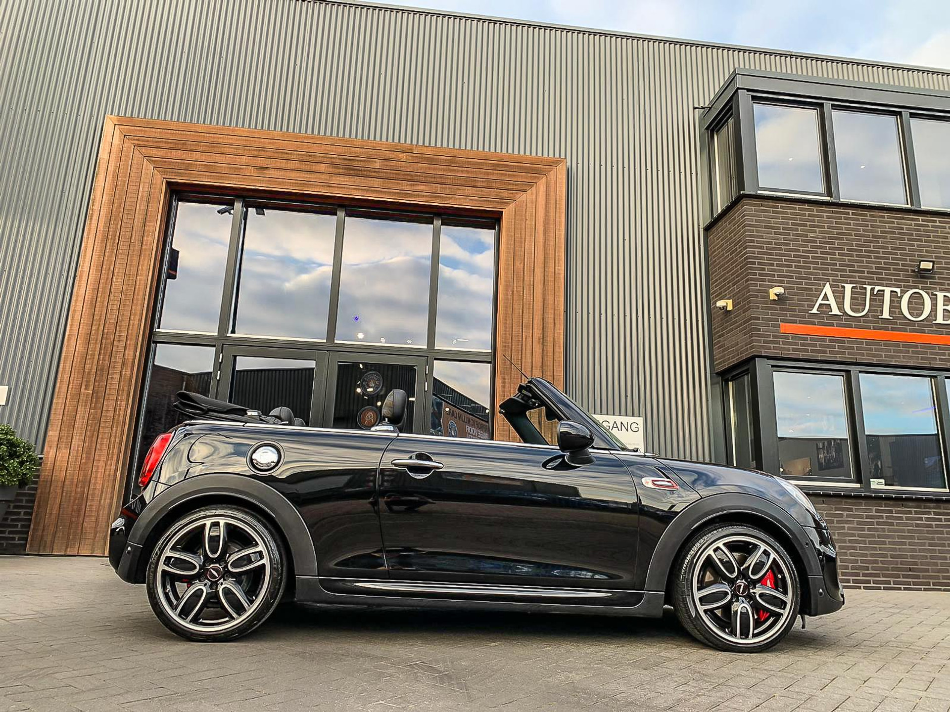 Unieke handgeschakelde Mini John Cooper Works cabrio met een 231pk motor in de prachtige kleur Midnightblack metallic.Deze schitterende Mini is uitgerust met alle denkbare opties:Climate control,vollederen interieur Yours lounge,sportstoelen,stoelverwarming,navigatie,Mini connected XL,Harman Kardon soundsystem,dab tuner,achteruitrijcamera,cockpitchrono pakket,tel,usb,performence control,Mini driving modus,elektrische cabriokap,lederen Jcw sportstuur,mf stuur,automatisch dimmende binnenspiegel, regensensor,blackline, voetgangersbeveiliging,dtc,elektrisch inklapbare spiegels,parkeersensoren voor en achter,park assist(Mini parkeert zelf in),led koplampen met uitgebreide functies,18 inch JCW cup velgen,lichtpakket met Mini logo's,gezichtspakket,chili 2 pakket,51.000km origineel,nieuwprijs 56.000euro.Prachtig uitgevoerde Mini Jcw in concoursstaat voor de echte liefhebber.