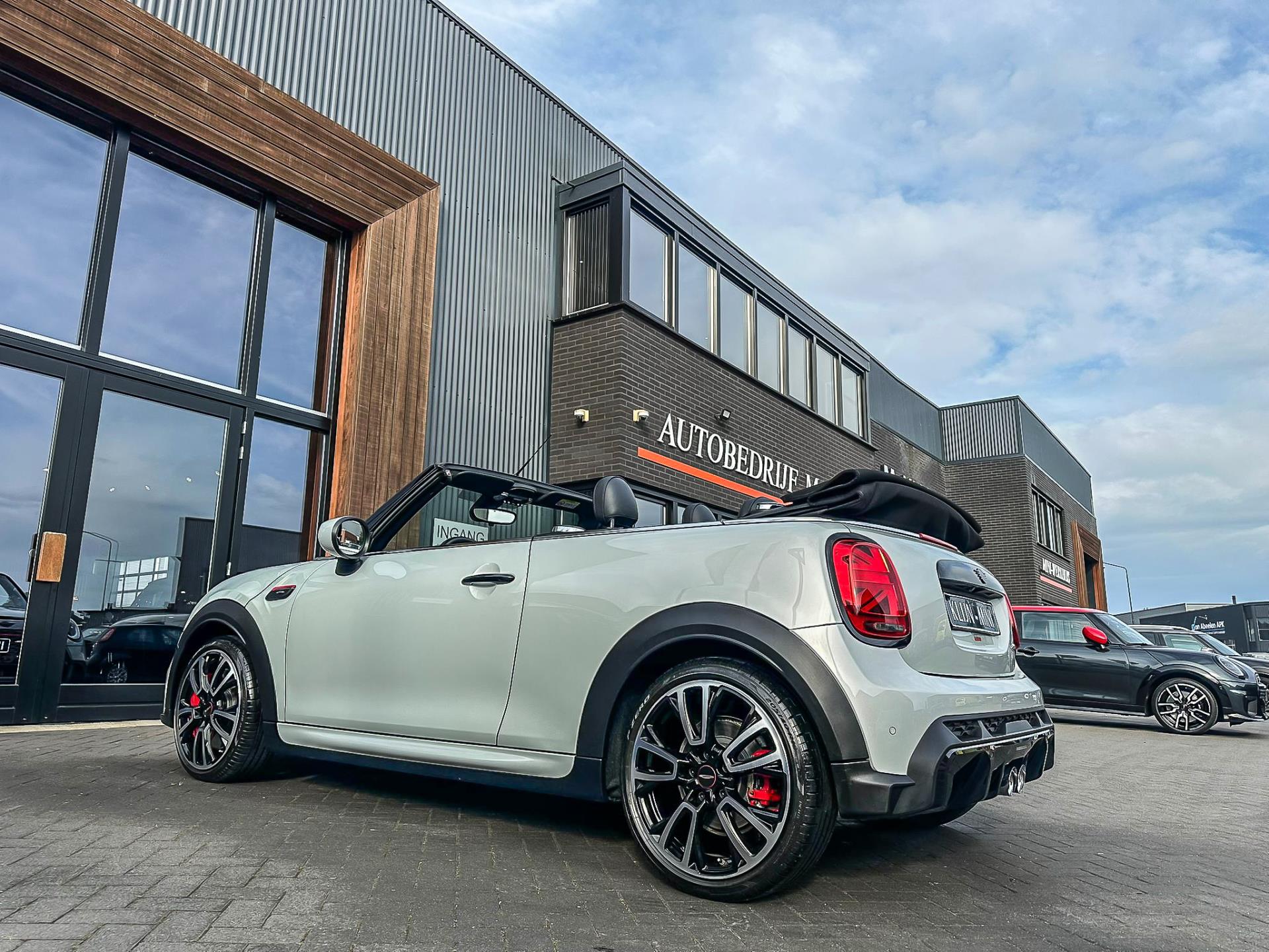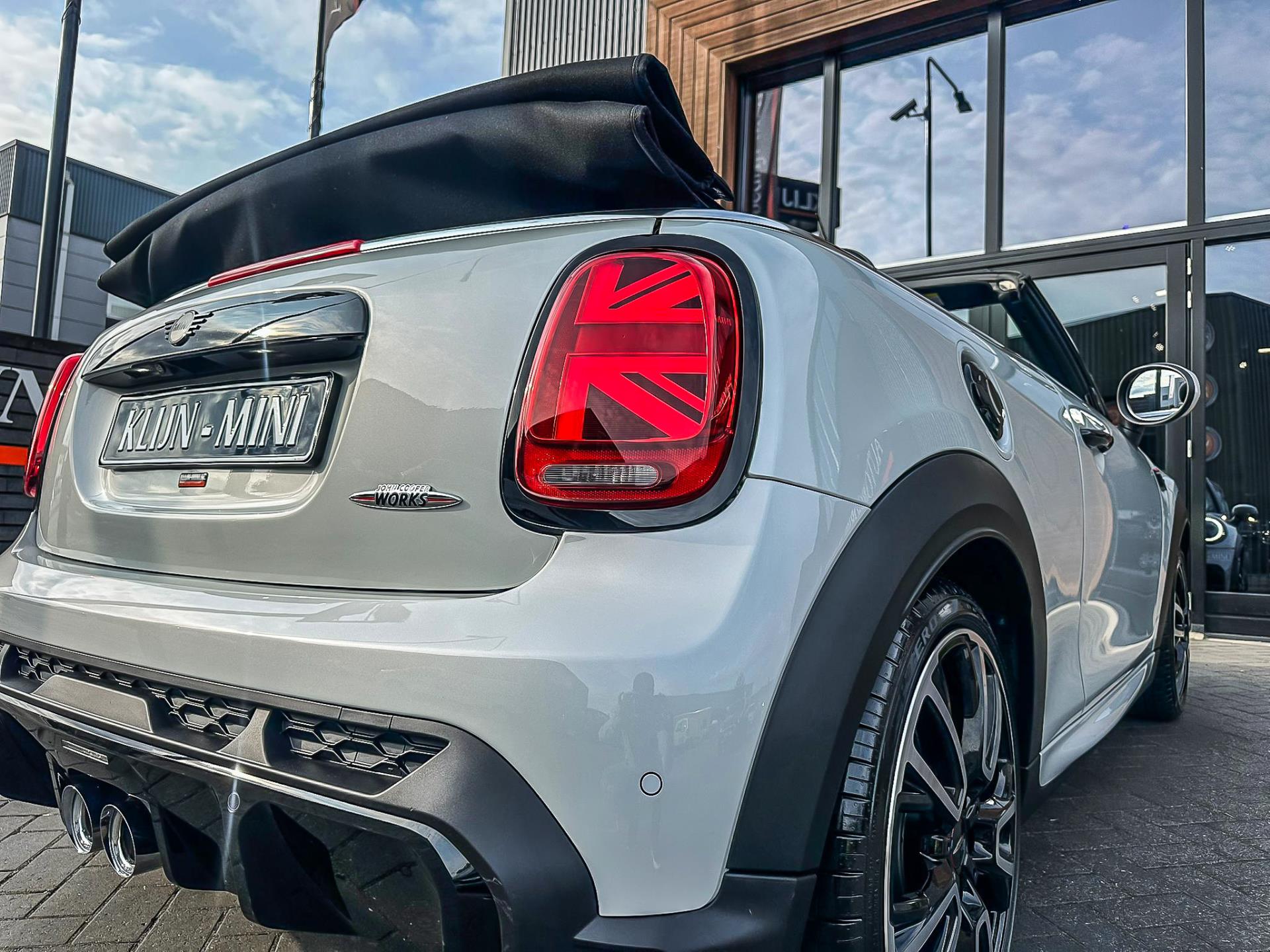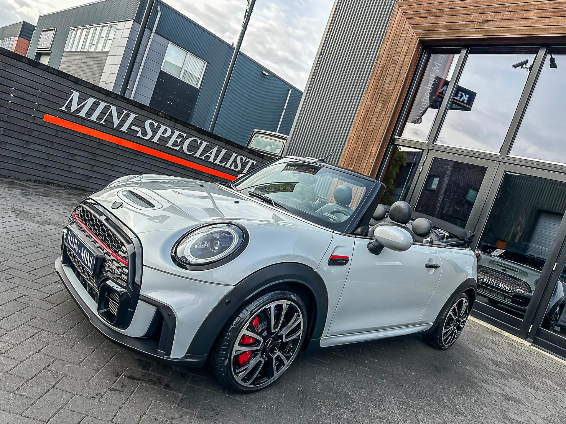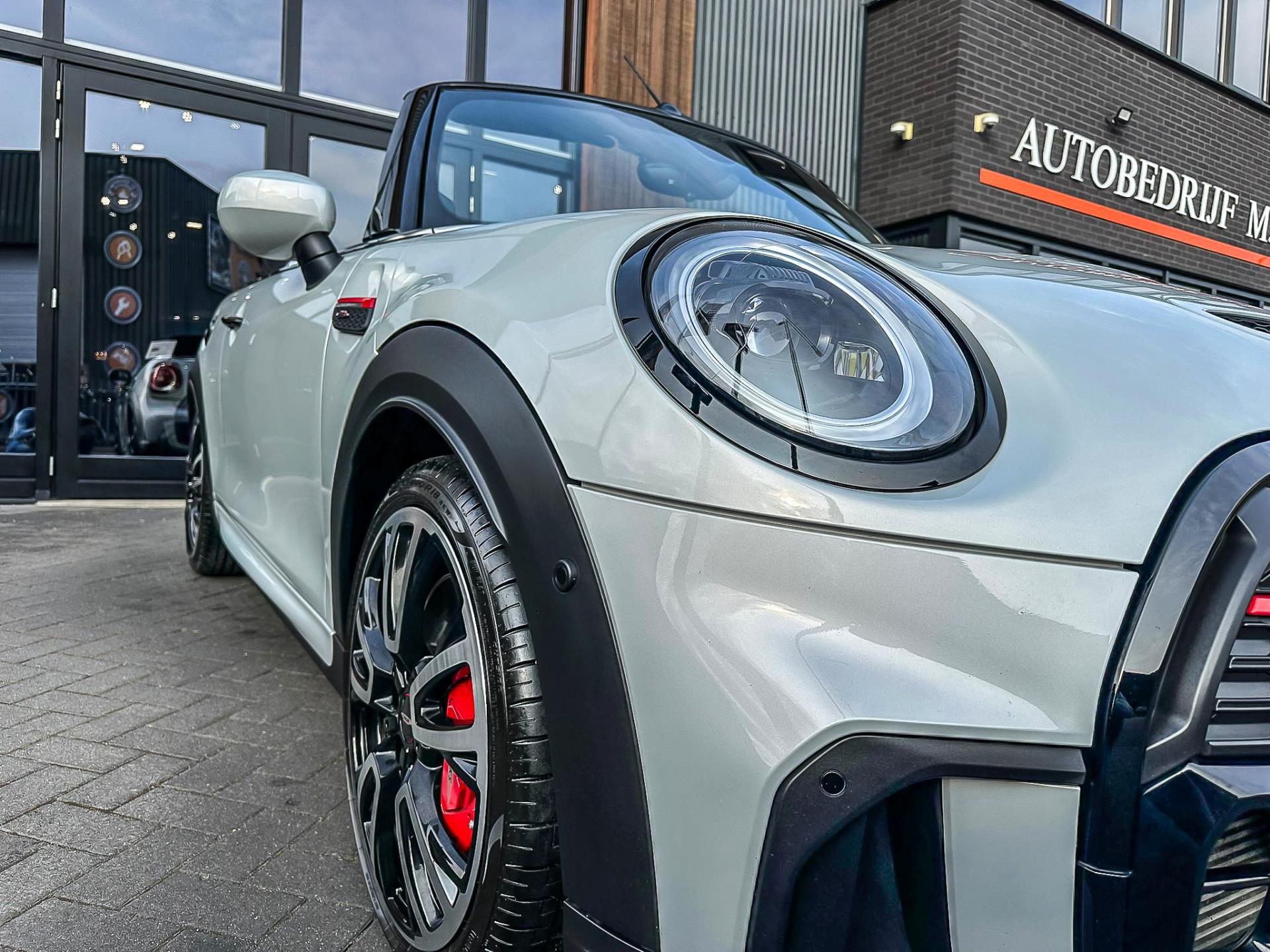 Unieke facelift Mini John Cooper Works cabrio Blackline F1 sportautomaat met een 231pk motor in de prachtige kleur whitesilver metallic.Deze schitterende Mini is uitgerust met alle maar dan ook alle denkbare opties:Climate control,vollederen interieur Yours lounge,sportstoelen,stoelverwarming,verwarmd stuurwiel,digitaal dashbord,breedbeeld navigatie,Mini connected,achteruitrijcamera,Harman Kardon soundsystem,head up display,adaptieve cruise control,dab tuner,tel,usb,performence control,apple carplay,Mini driving modus,elektrische cabriokap,lederen Jcw sportstuur met flipperschakel,mf stuur,automatisch dimmende binnenspiegel, regensensor,verwarmde voorruit,facelift,blackline, voetgangersbeveiliging,dtc,elektrisch inklapbare spiegels, parkeersensoren voor en achter,parkassist(Mini parkeert zelf in),union Jack achterlichten,led koplampen met uitgebreide functies,18 inch JCW Circuit Spoke velgen,lichtpakket met Mini logo's,gezichtspakket,Btw auto,61.000km origineel,nieuwprijs 63.000euro.Prachtig uitgevoerde Mini Jcw in concoursstaat voor de echte liefhebber