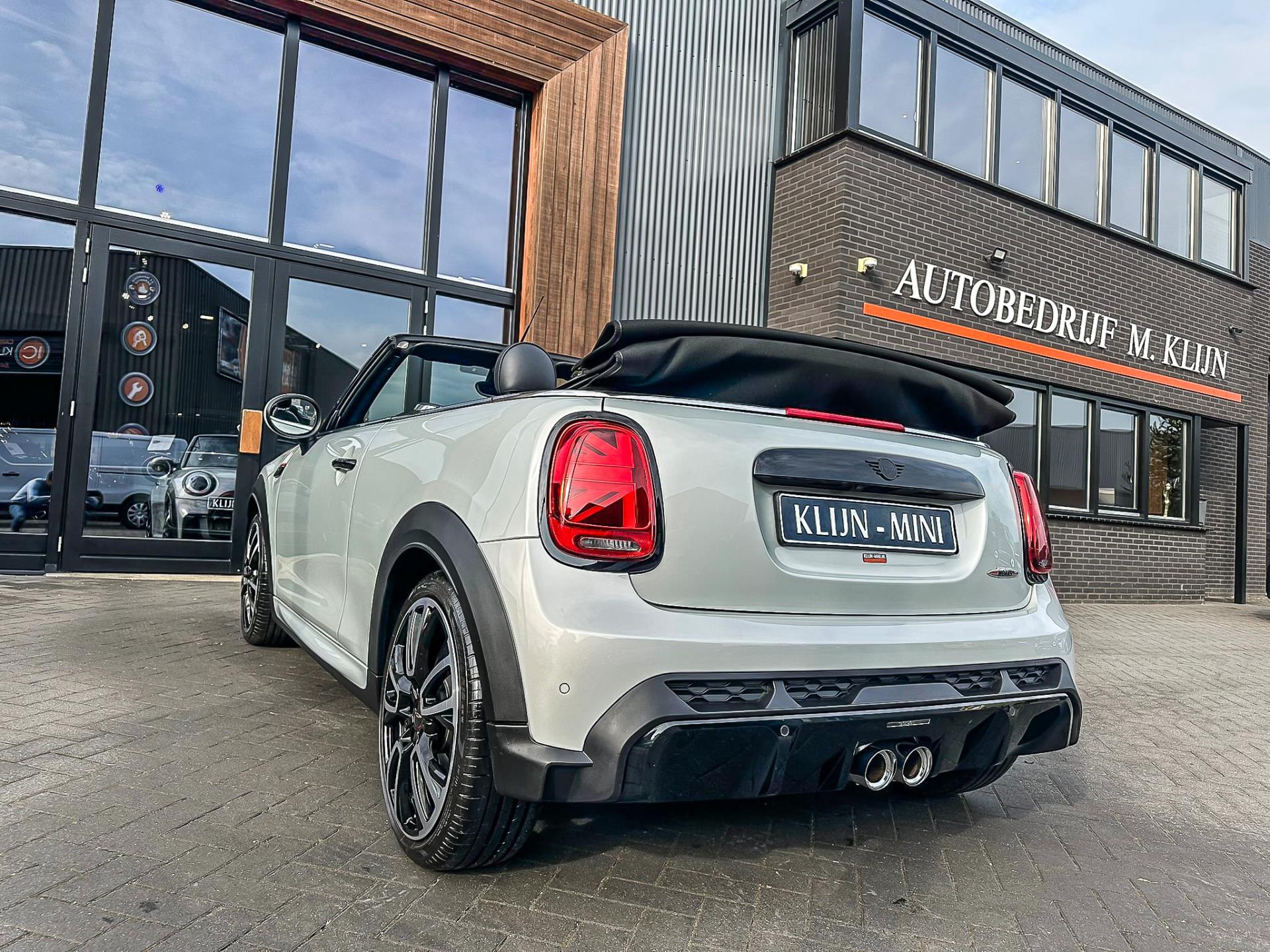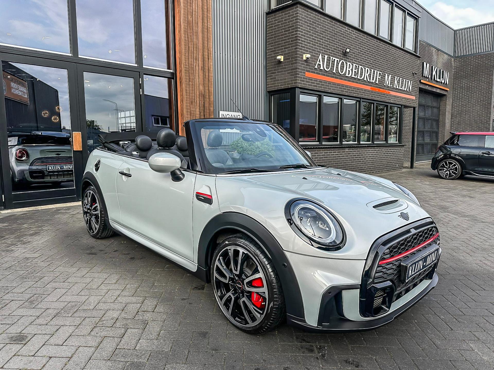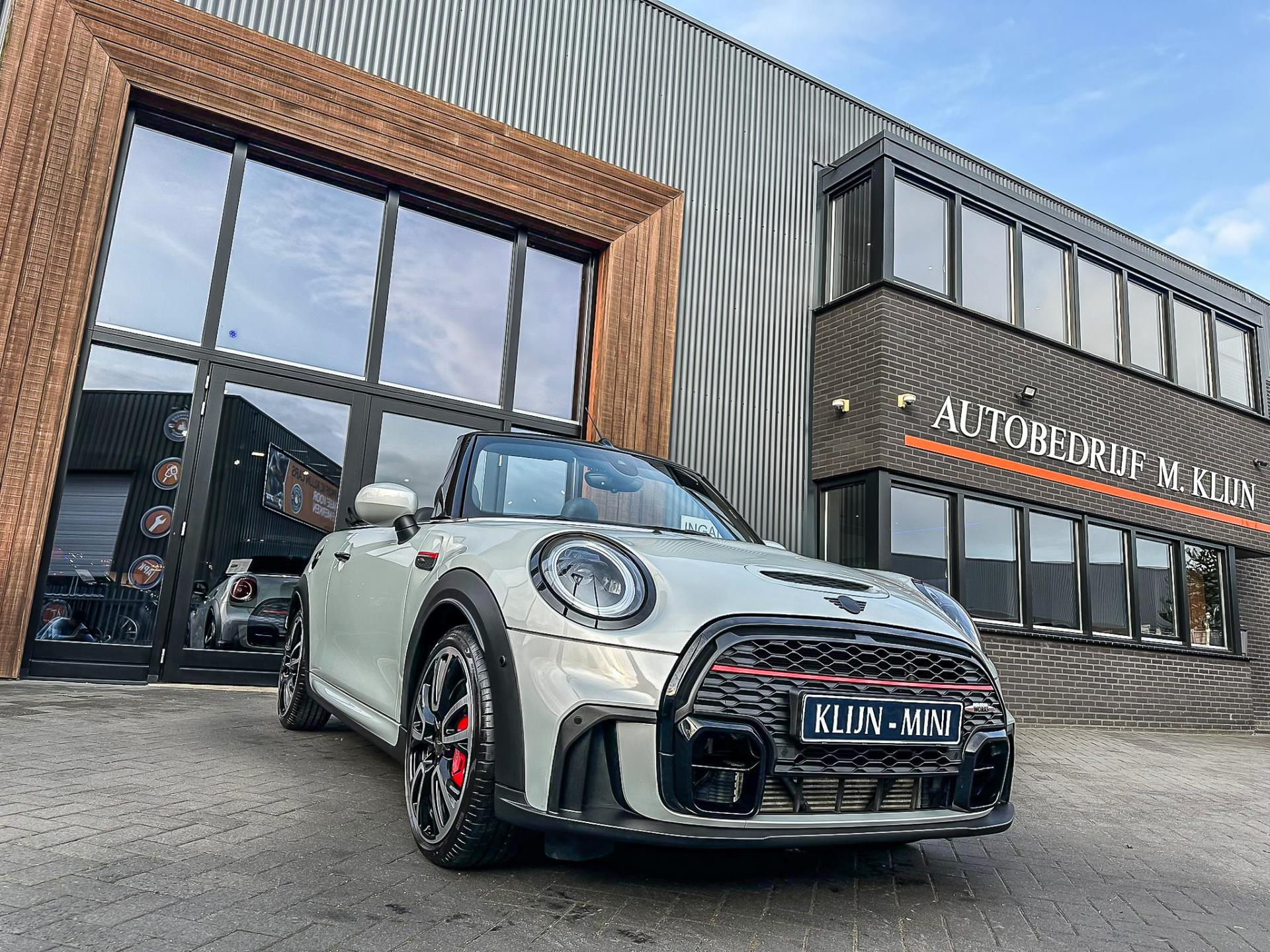Unieke facelift Mini John Cooper Works cabrio Blackline F1 sportautomaat met een 231pk motor in de prachtige kleur whitesilver metallic.Deze schitterende Mini is uitgerust met alle maar dan ook alle denkbare opties:Climate control,vollederen interieur Yours lounge,sportstoelen,stoelverwarming,verwarmd stuurwiel,digitaal dashbord,breedbeeld navigatie,Mini connected,achteruitrijcamera,Harman Kardon soundsystem,head up display,adaptieve cruise control,dab tuner,tel,usb,performence control,apple carplay,Mini driving modus,elektrische cabriokap,lederen Jcw sportstuur met flipperschakel,mf stuur,automatisch dimmende binnenspiegel, regensensor,verwarmde voorruit,facelift,blackline, voetgangersbeveiliging,dtc,elektrisch inklapbare spiegels, parkeersensoren voor en achter,parkassist(Mini parkeert zelf in),union Jack achterlichten,led koplampen met uitgebreide functies,18 inch JCW Circuit Spoke velgen,lichtpakket met Mini logo's,gezichtspakket,Btw auto,61.000km origineel,nieuwprijs 63.000euro.Prachtig uitgevoerde Mini Jcw in concoursstaat voor de echte liefhebber