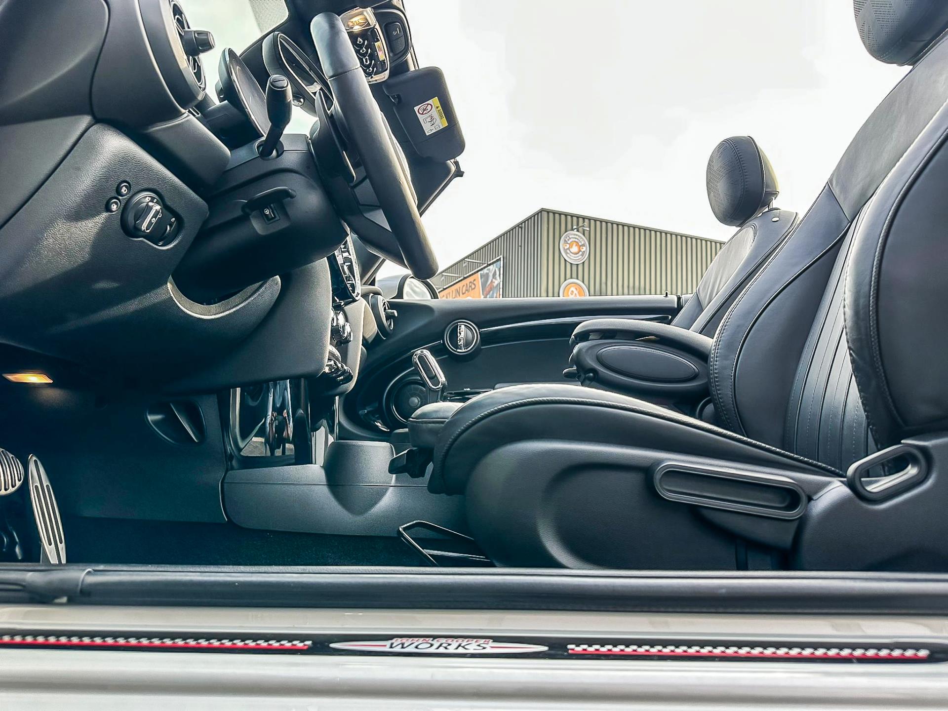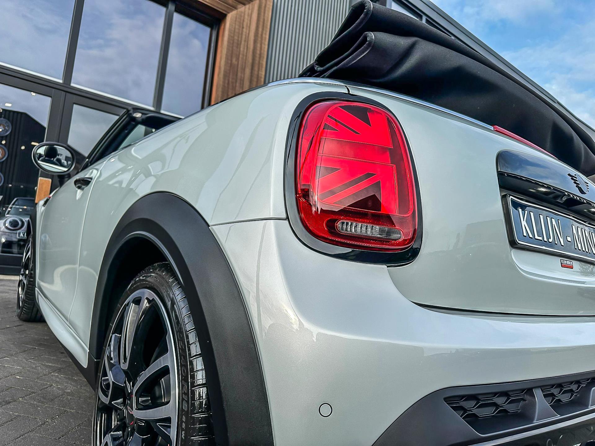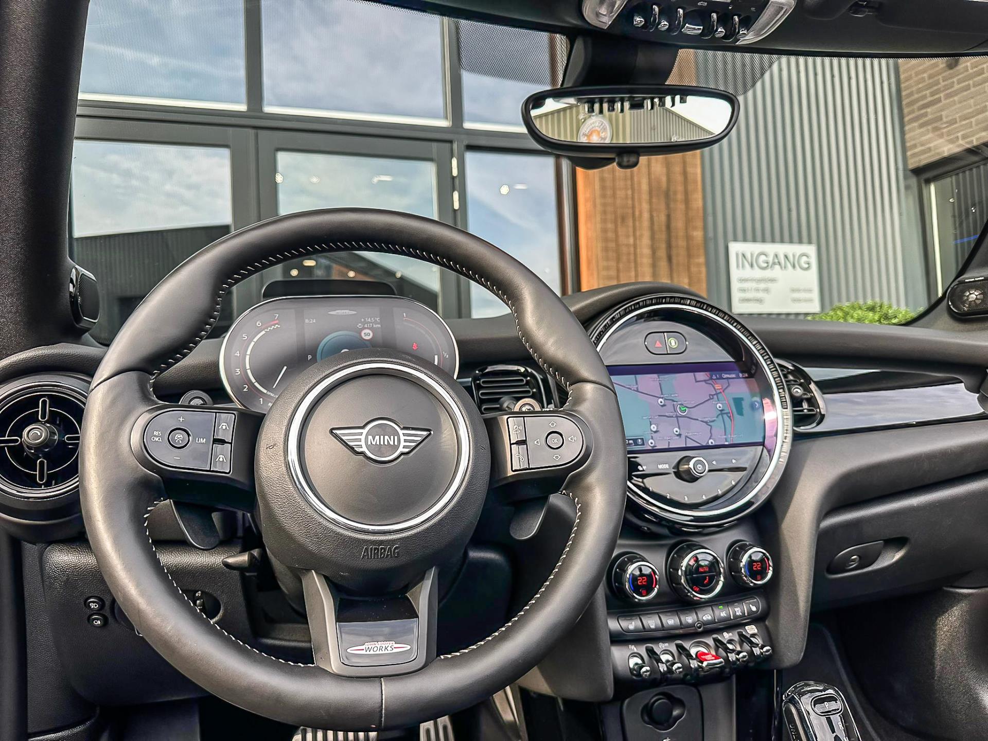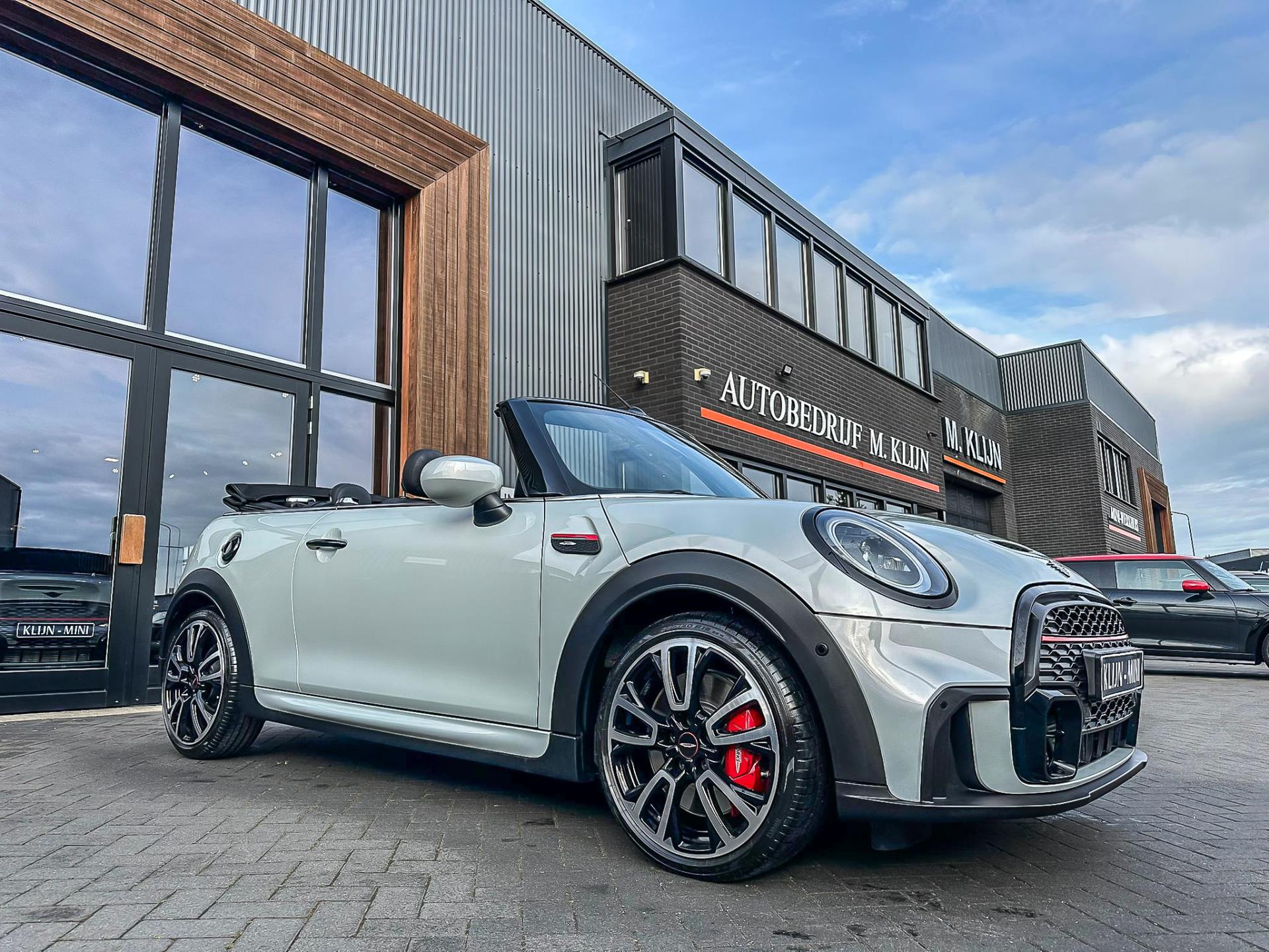 Unieke facelift Mini John Cooper Works cabrio Blackline F1 sportautomaat met een 231pk motor in de prachtige kleur whitesilver metallic.Deze schitterende Mini is uitgerust met alle maar dan ook alle denkbare opties:Climate control,vollederen interieur Yours lounge,sportstoelen,stoelverwarming,verwarmd stuurwiel,digitaal dashbord,breedbeeld navigatie,Mini connected,achteruitrijcamera,Harman Kardon soundsystem,head up display,adaptieve cruise control,dab tuner,tel,usb,performence control,apple carplay,Mini driving modus,elektrische cabriokap,lederen Jcw sportstuur met flipperschakel,mf stuur,automatisch dimmende binnenspiegel, regensensor,verwarmde voorruit,facelift,blackline, voetgangersbeveiliging,dtc,elektrisch inklapbare spiegels, parkeersensoren voor en achter,parkassist(Mini parkeert zelf in),union Jack achterlichten,led koplampen met uitgebreide functies,18 inch JCW Circuit Spoke velgen,lichtpakket met Mini logo's,gezichtspakket,Btw auto,61.000km origineel,nieuwprijs 63.000euro.Prachtig uitgevoerde Mini Jcw in concoursstaat voor de echte liefhebber