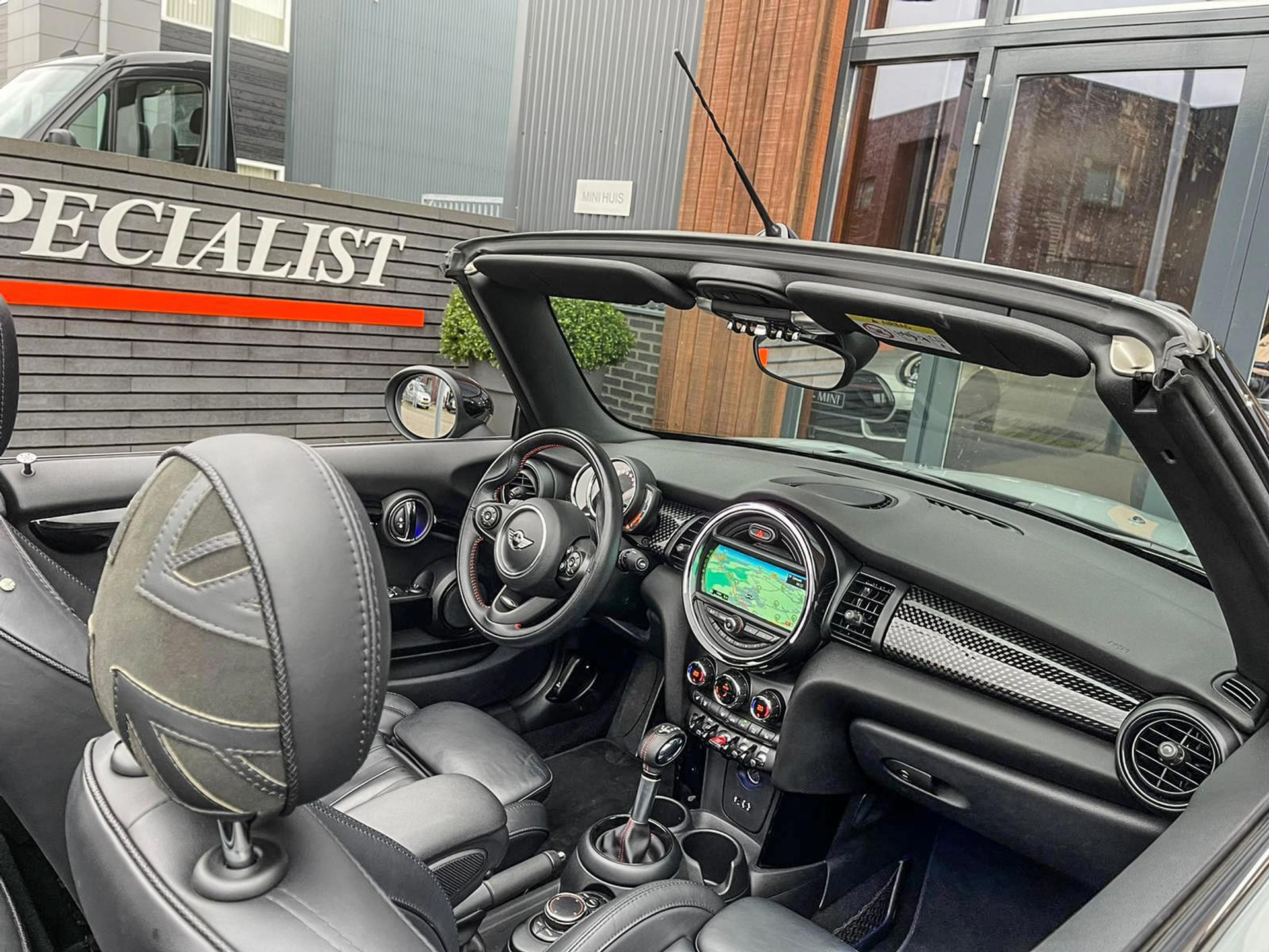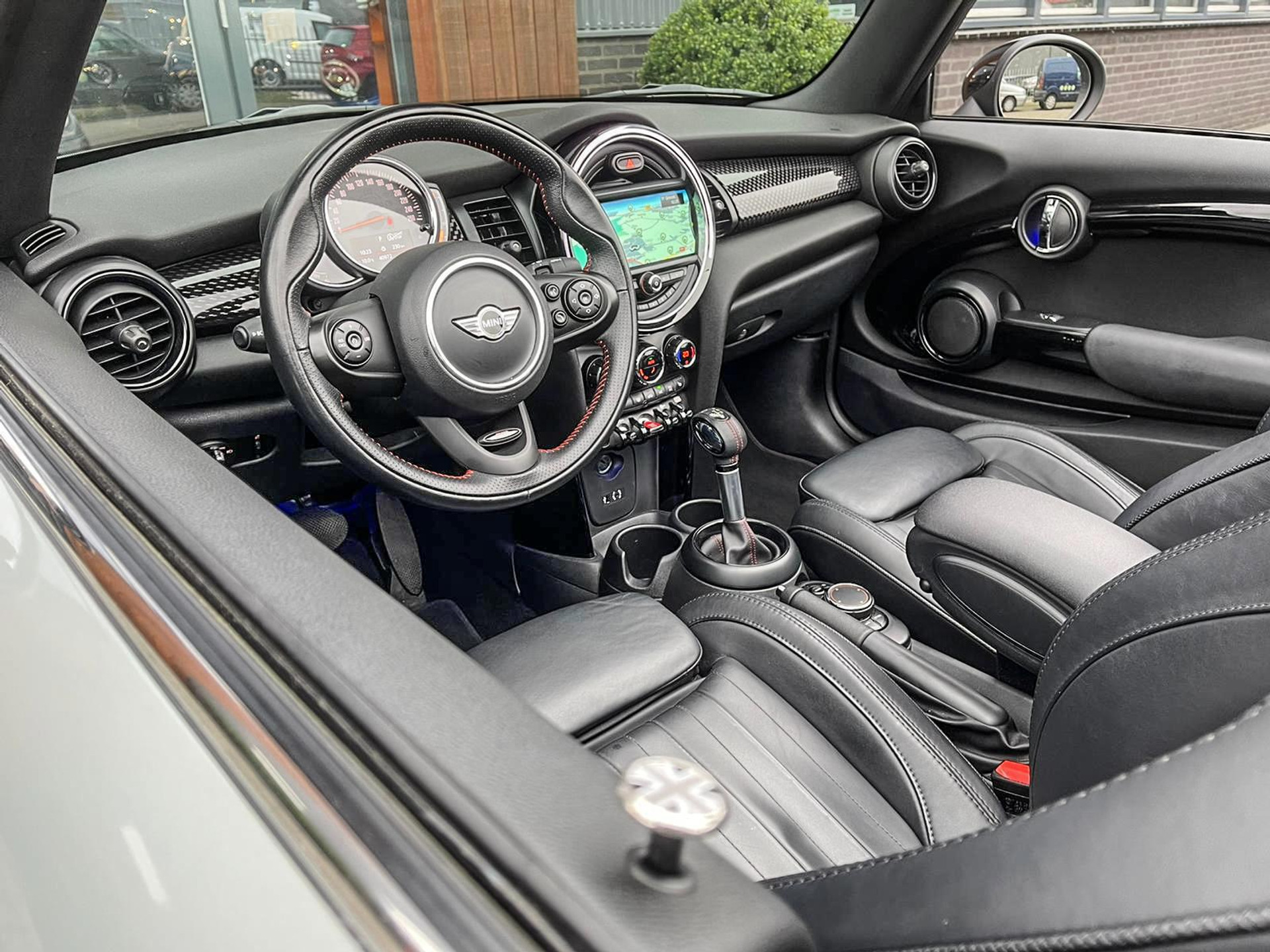 Schitterende Mini Cooper S Cabrio Blackline automaat met een 192pk motor in de prachtige kleur Moonwalkgrey(Nardo) en uitgevoerd met een Jcw sportpakket. Deze in werkelijk nieuwstaat verkerende Mini is volledig dealer onderhouden en uitgerust met vele opties:Climate control,vollederen interieur Yours lounge,sportstoelen,stoelverwarming,breedbeeld navigatie,Mini connected XL,achteruitrijcamera,elektrische cabriokap,18" JCW velgen,mf stuur,cruise control,lederen sportstuur,lichtpakket met Mini logo's,welcome pakket,Jcw sportpakket,parkeersensoren,metallic,elektrisch inklapbare spiegels,boordcomputer,regensensor,Blackline,alle boekjes+originele sleutels,59.000km origineel,nieuwprijs 52.000,-.Unieke Mini in topstaat voor de echte liefhebber.