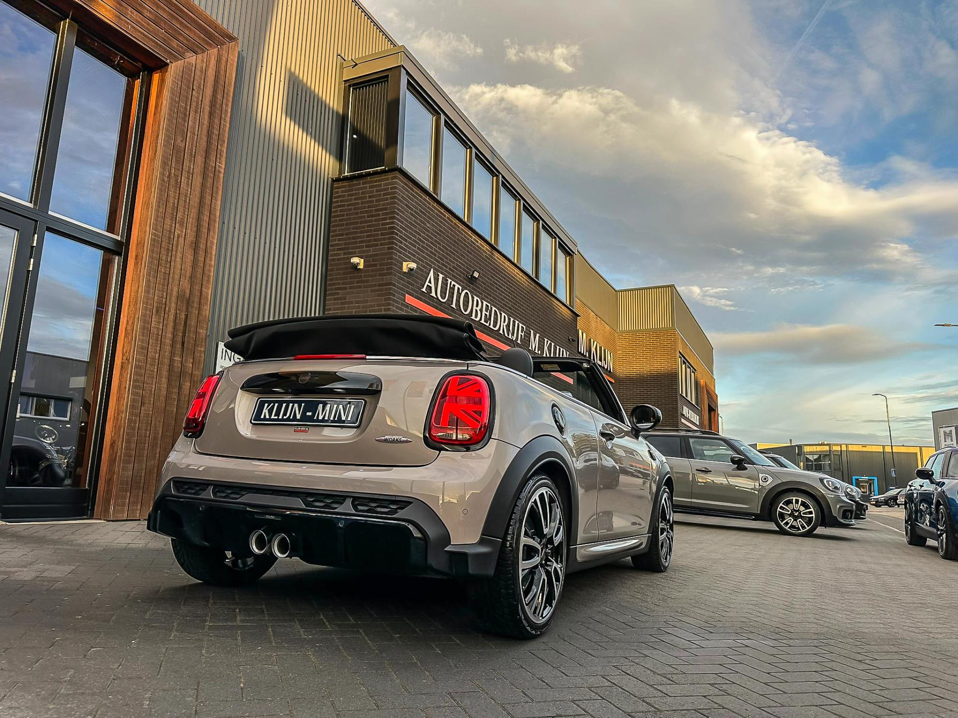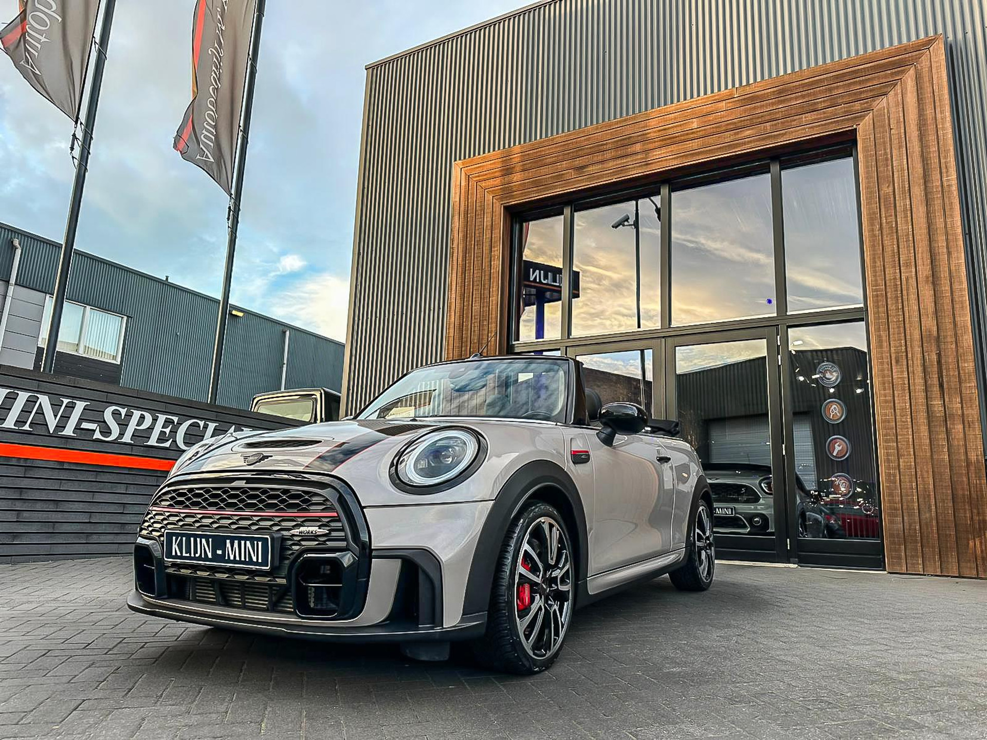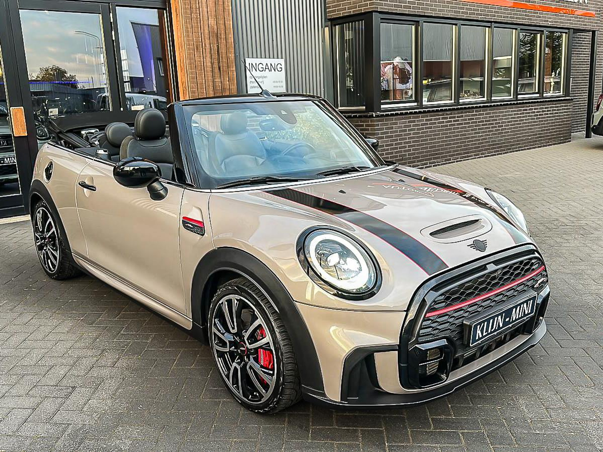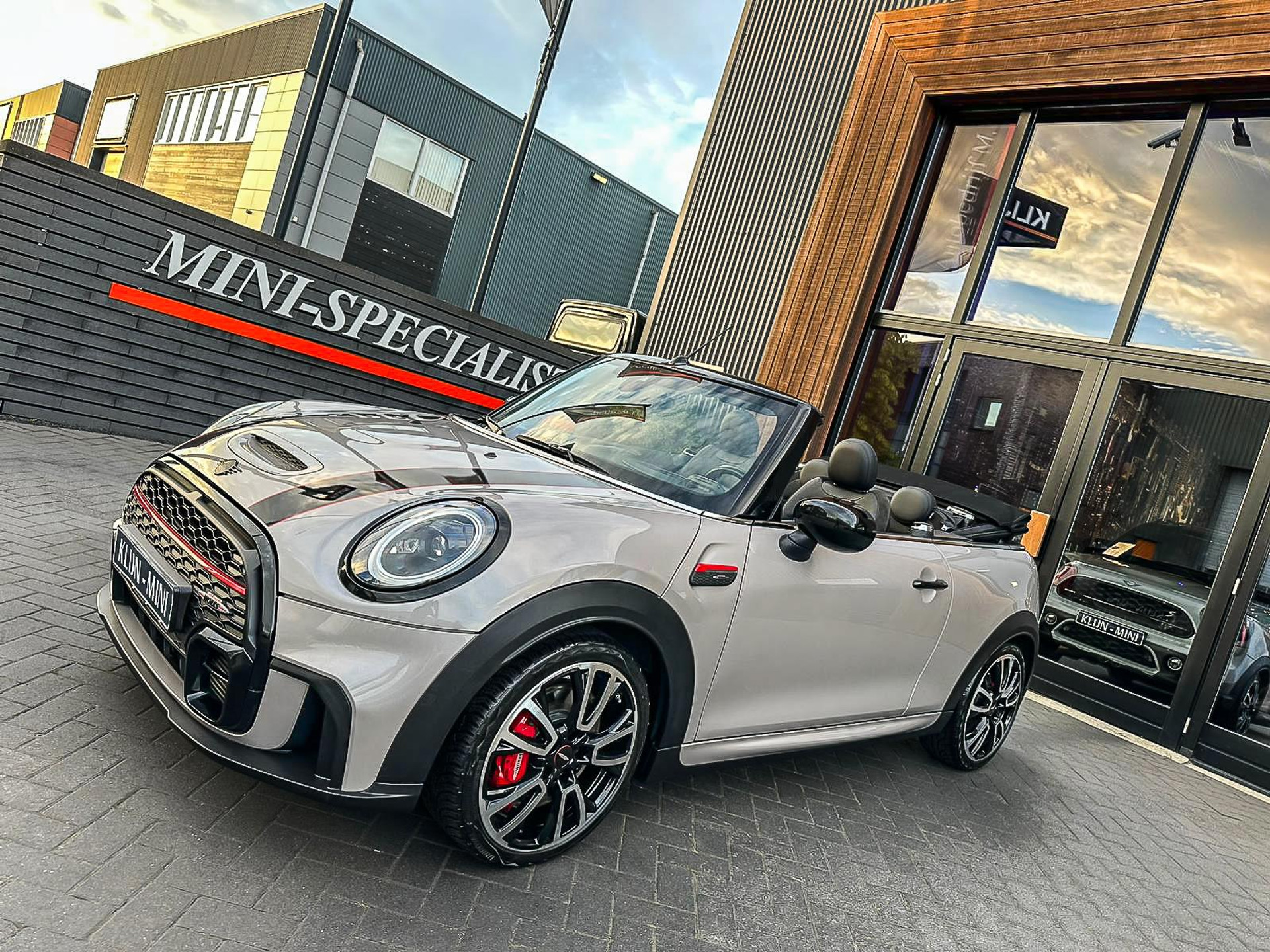 Schitterende en unieke Mini John Cooper Works Blackline cabriolet F1 sportautomaat met een 231pk motor uitgevoerd in de prachtige kleur Rooftopgrey metallic.Deze schitterende Mini is uitgerust met vele opties:Climate control,vollederen interieur carbon black,stoelverwarming,virtual cockpit,breedbeeld navigatie,Mini connected XL,achteruitrijcamera,Head up display,dab tuner,tel,usb,performence control,apple carplay,Mini driving modus,adaptieve cruise control,elektrisch cabriokap,lederen Jcw sportstuur met flipperschakel,mf stuur,automatisch dimmende binnenspiegel,regensensor,verwarmde voorruit,facelift,blackline,voetgangersbeveiliging,dtc,elektrisch inklapbare spiegels, parkeersensoren,dab radio,voetgangersbeveiliging,union Jack achterlichten,led koplampen met uitgebreide functies,18 inch JCW circuit spoke velgen,lichtpakket met Mini logo's,gezichtspakket,chili 2 pakket,63.000km origineel,btw auto,nieuwprijs 62.000euro.Prachtig uitgevoerde Mini Jcw in concoursstaat voor de echte liefhebber.