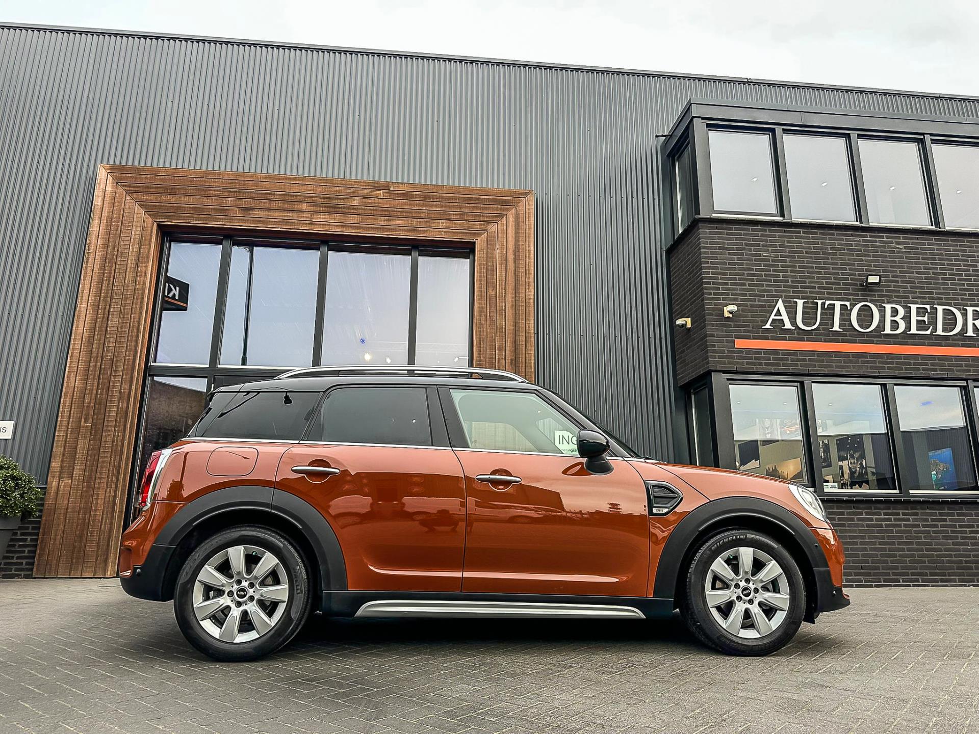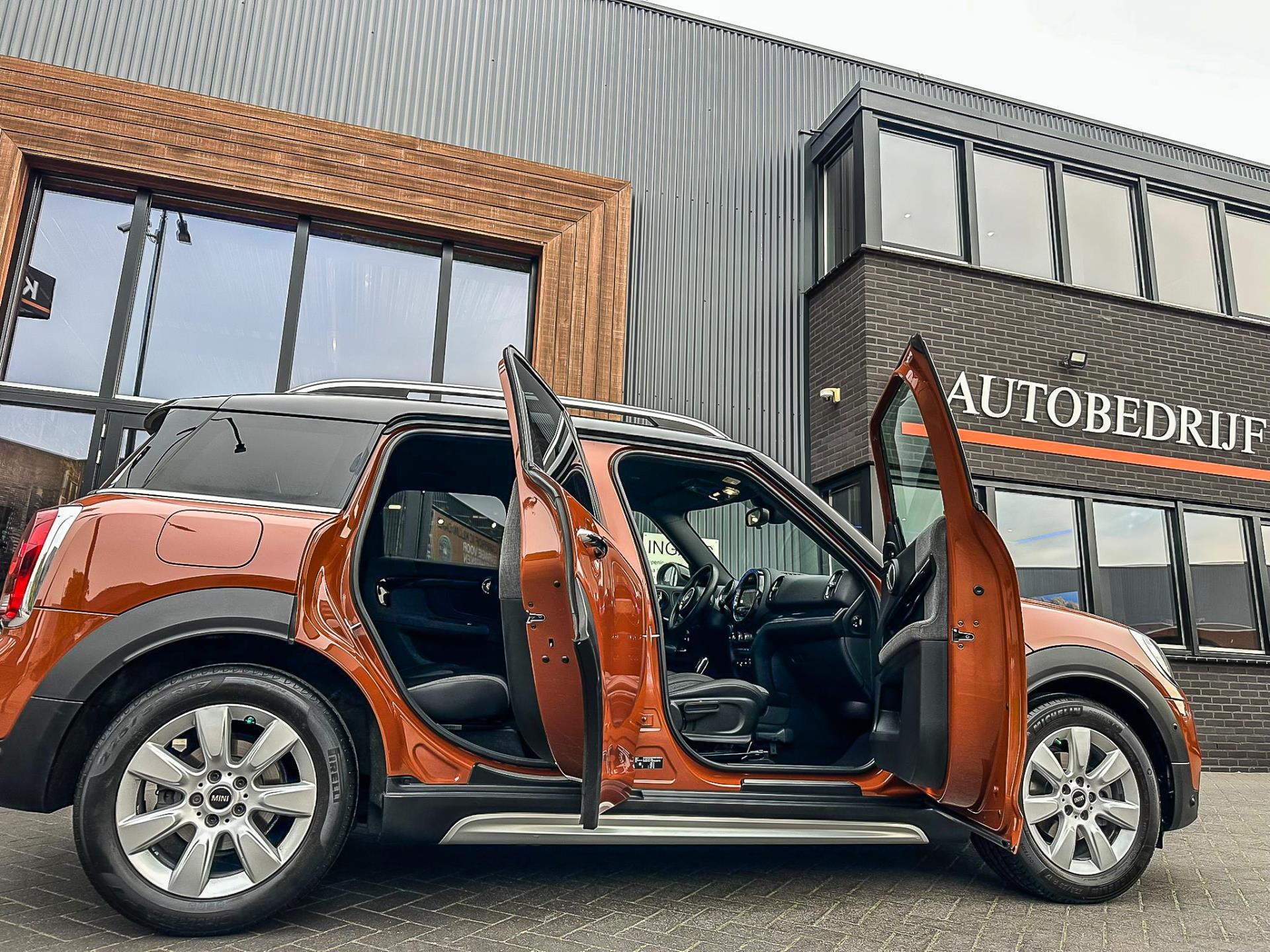 Origineel Hollandse Mini Countryman One Chili automaat met een 102pk motor in de prachtige kleur Chestnut brown.Deze in werkelijk nieuwstaat verkerende Mini is uitgerust met alle denkbare opties oa:Climate control,half lederen interieur Carbon black,stoelverwarming,sportstoelen,breedbeeld navigatie,Head up display,Harman Kardon soundsystem ,Mini Connected,achteruitrijcamera,adaptieve cruise control,17" S velgen,lederen Jcw sportstuur, led verlichting,parkassist(Mini parkeert zelf in),5 persoons,welcome pakket,parkeersensoren voor en achter,actieve voetgangersbeveiliging,mf stuur,dak en spiegelkappen zwart,Keyless Entry,boordcomputer,regensensor,lichtpakket met Mini logo's,regensensor,armsteun,chili pakket,alle boekjes+originele sleutels,127.000km origineel NAP,nieuwprijs 47.000.-.Schitterende Mini Countryman in concoursstaat voor de echte liefhebber.