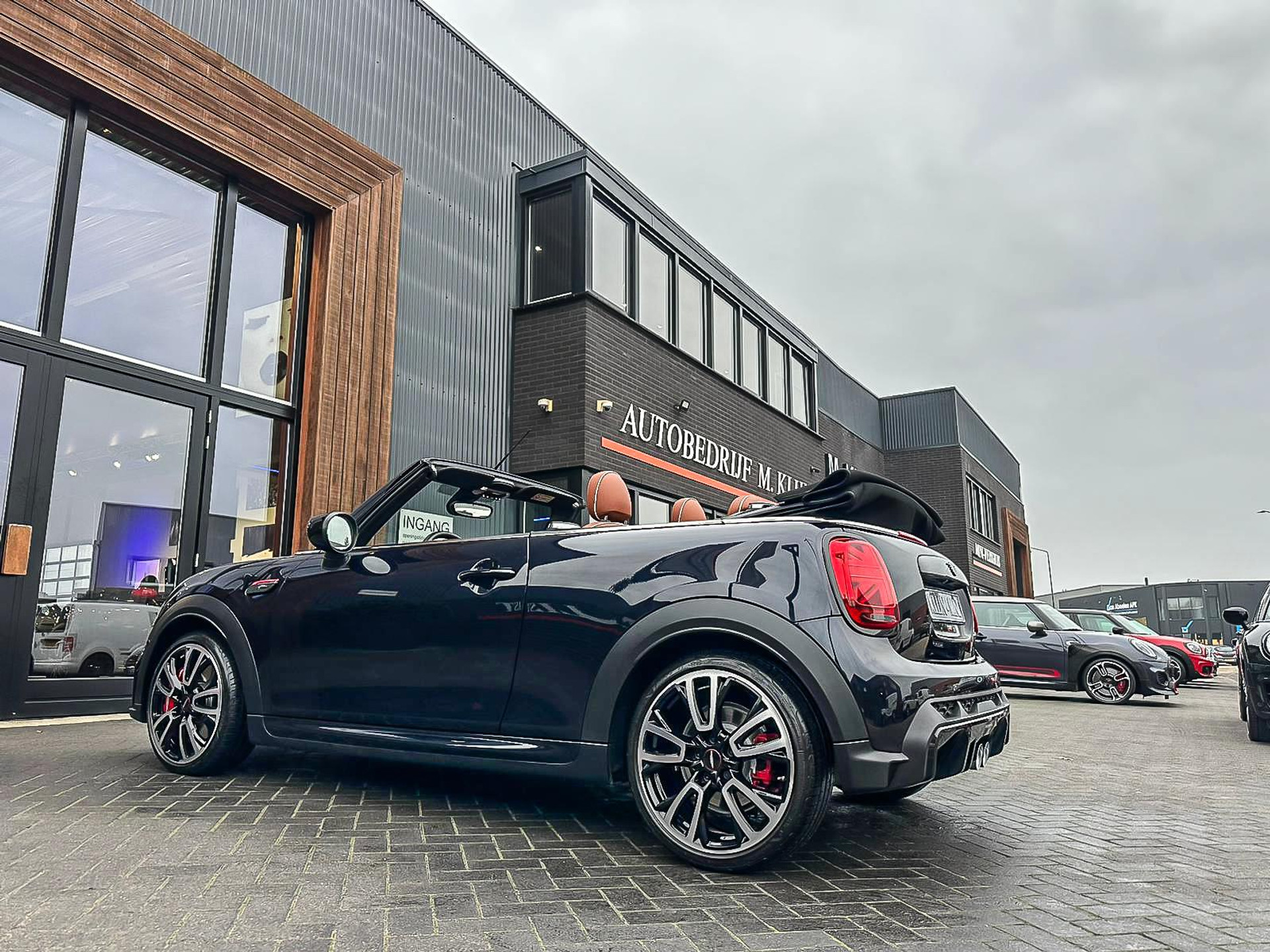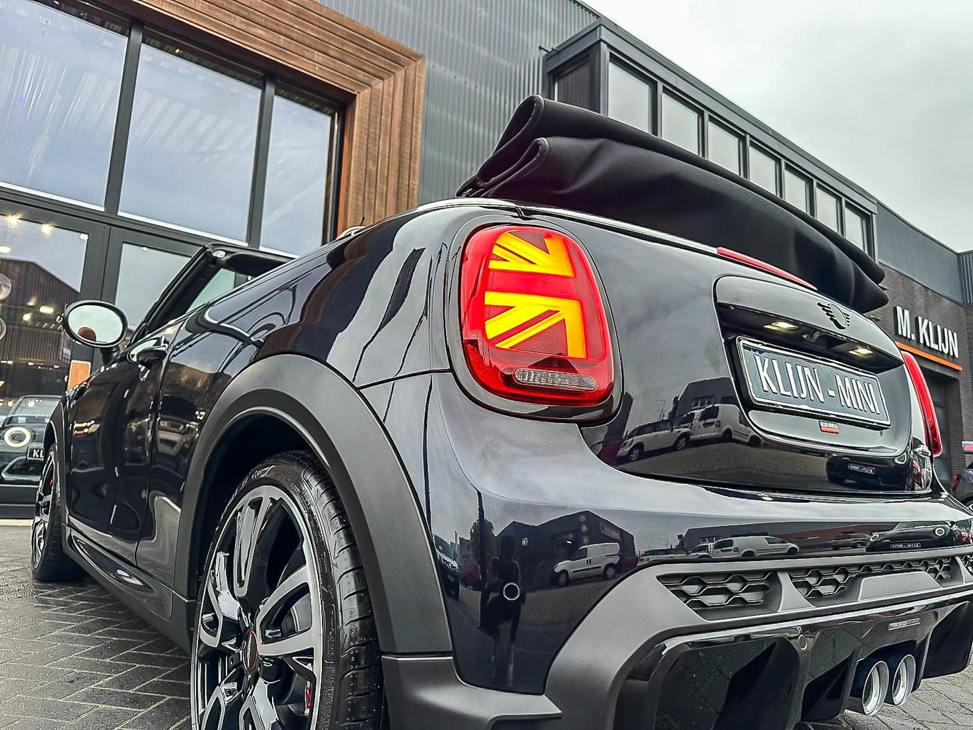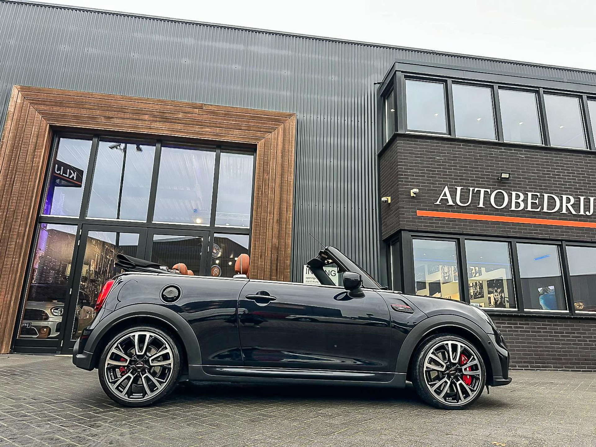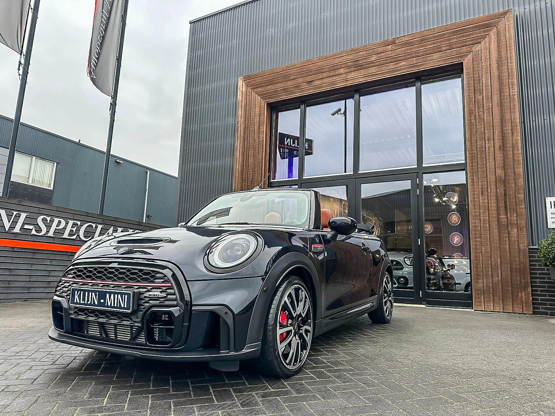 Unieke facelift Mini John Cooper Works cabrio Blackline F1 sportautomaat met een 231pk motor uitgevoerd in de prachtige kleurencombinatie van Enigmatic black en Chestermalt brown lederen interieur.Deze schitterende Mini is uitgerust met alle maar dan ook alle denkbare opties:Climate control,vollederen interieur chestermalt brown,sportstoelen,stoelverwarming,verwarmd stuurwiel,digitaal dashbord,breedbeeld navigatie,Mini connected XL,achteruitrijcamera,Harman Kardon soundsystem,adaptieve cruise control,dab tuner,tel,usb,performence control,apple carplay,Mini driving modus,elektrische cabriokap,lederen Jcw sportstuur met flipperschakel,mf stuur,automatisch dimmende binnenspiegel, regensensor,facelift,full blackpack, voetgangersbeveiliging,dtc,elektrisch inklapbare spiegels, parkeersensoren voor en achter,parkassist(Mini parkeert zelf in),union Jack achterlichten,led koplampen met uitgebreide functies,18 inch JCW velgen circuit spoke,lichtpakket met Mini logo's,actieve cruise control,gezichtspakket,chili 2 pakket,10.000km origineel,nieuwprijs 63.100euro.Prachtig uitgevoerde Mini Jcw in concoursstaat voor de echte liefhebber.