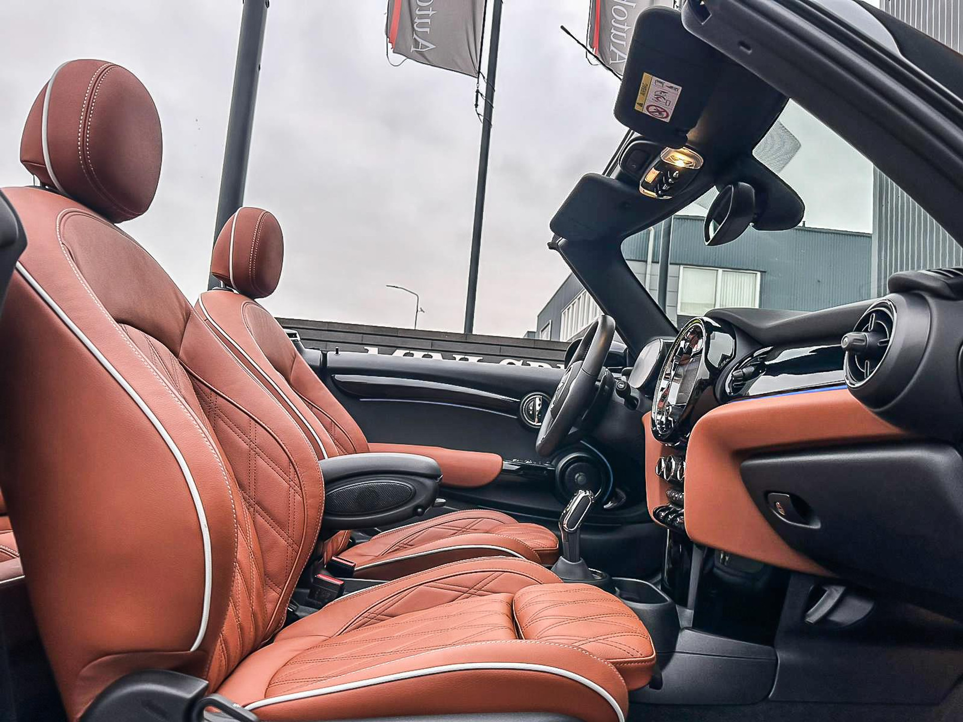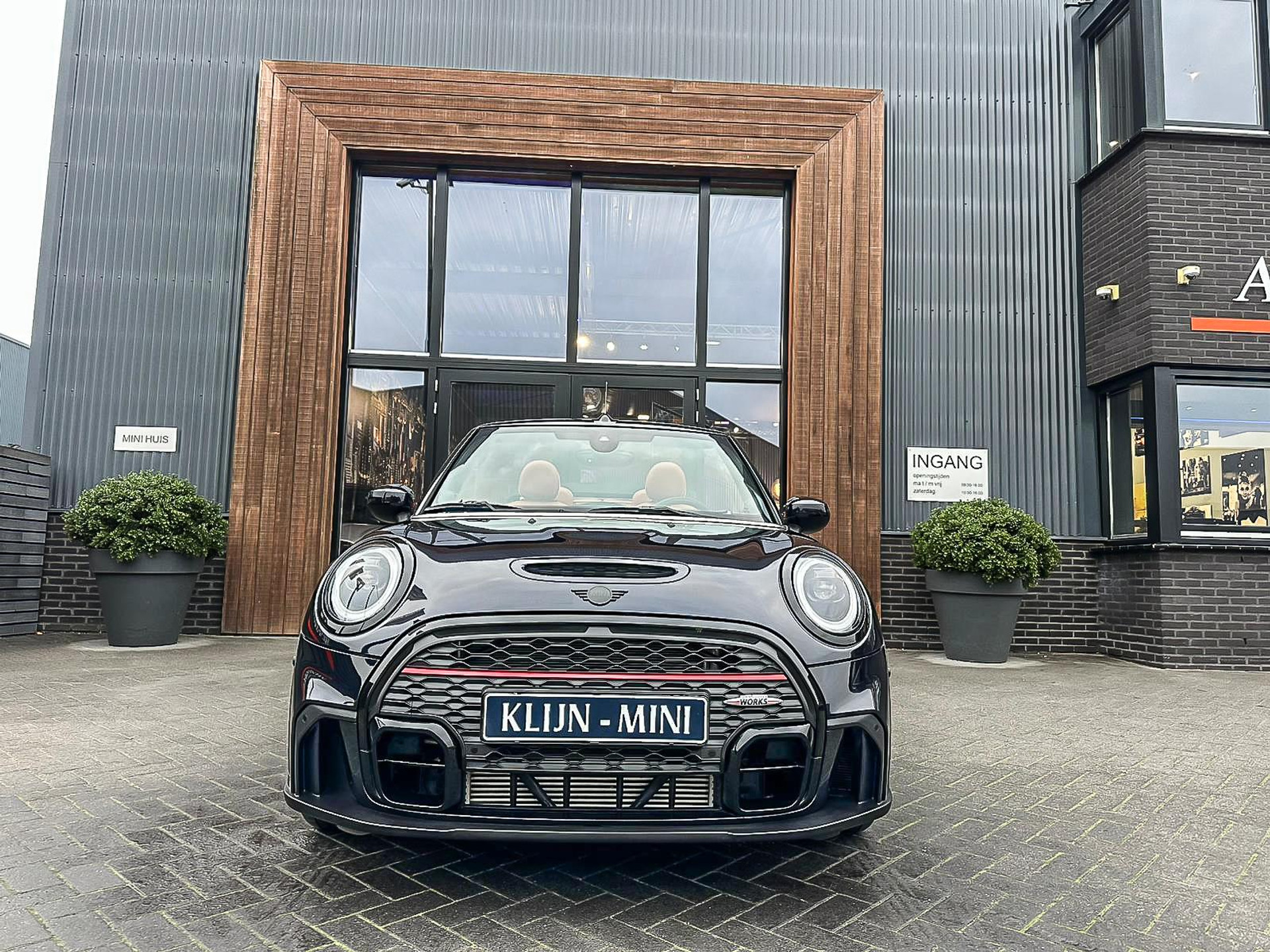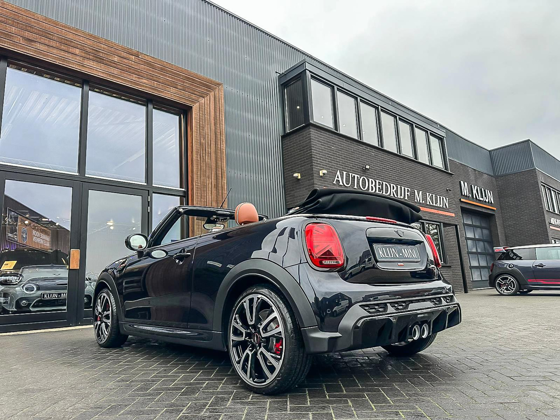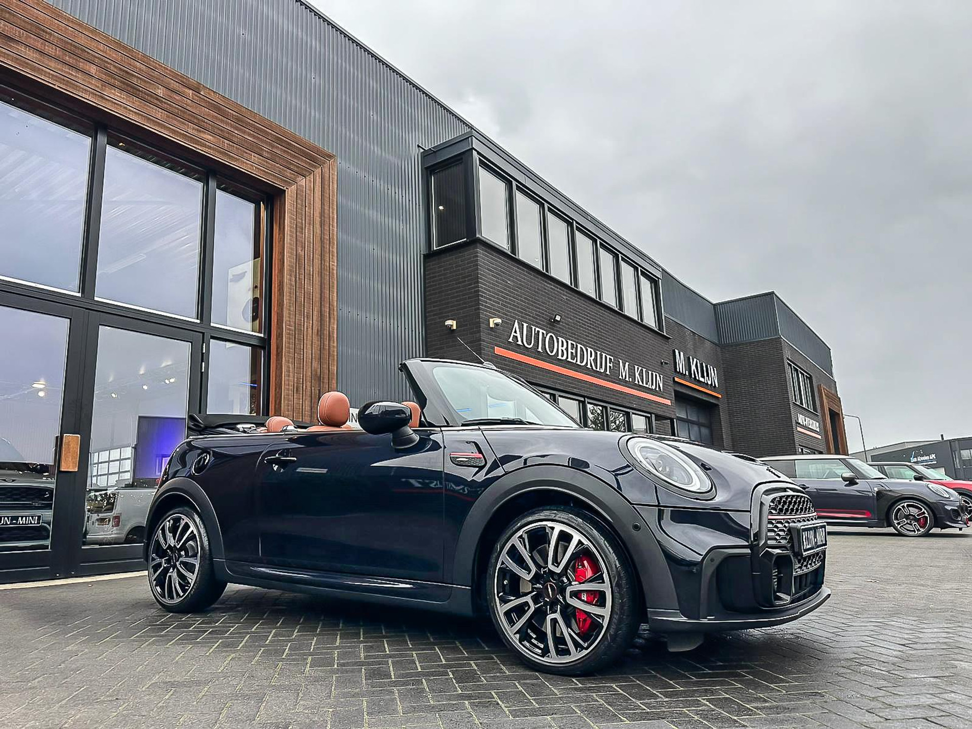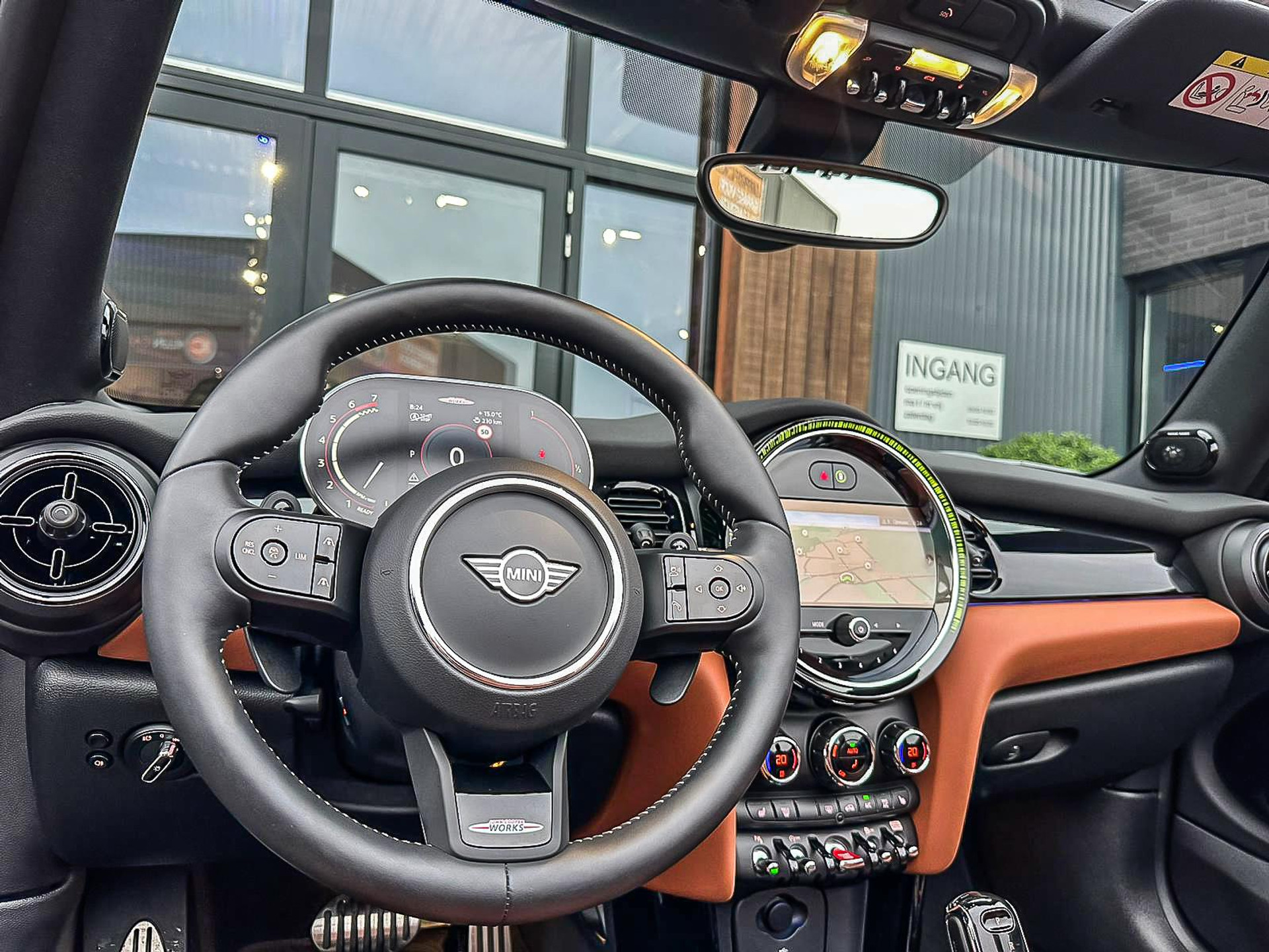 Unieke facelift Mini John Cooper Works cabrio Blackline F1 sportautomaat met een 231pk motor uitgevoerd in de prachtige kleurencombinatie van Enigmatic black en Chestermalt brown lederen interieur.Deze schitterende Mini is uitgerust met alle maar dan ook alle denkbare opties:Climate control,vollederen interieur chestermalt brown,sportstoelen,stoelverwarming,verwarmd stuurwiel,digitaal dashbord,breedbeeld navigatie,Mini connected XL,achteruitrijcamera,Harman Kardon soundsystem,adaptieve cruise control,dab tuner,tel,usb,performence control,apple carplay,Mini driving modus,elektrische cabriokap,lederen Jcw sportstuur met flipperschakel,mf stuur,automatisch dimmende binnenspiegel, regensensor,facelift,full blackpack, voetgangersbeveiliging,dtc,elektrisch inklapbare spiegels, parkeersensoren voor en achter,parkassist(Mini parkeert zelf in),union Jack achterlichten,led koplampen met uitgebreide functies,18 inch JCW velgen circuit spoke,lichtpakket met Mini logo's,actieve cruise control,gezichtspakket,chili 2 pakket,10.000km origineel,nieuwprijs 63.100euro.Prachtig uitgevoerde Mini Jcw in concoursstaat voor de echte liefhebber.