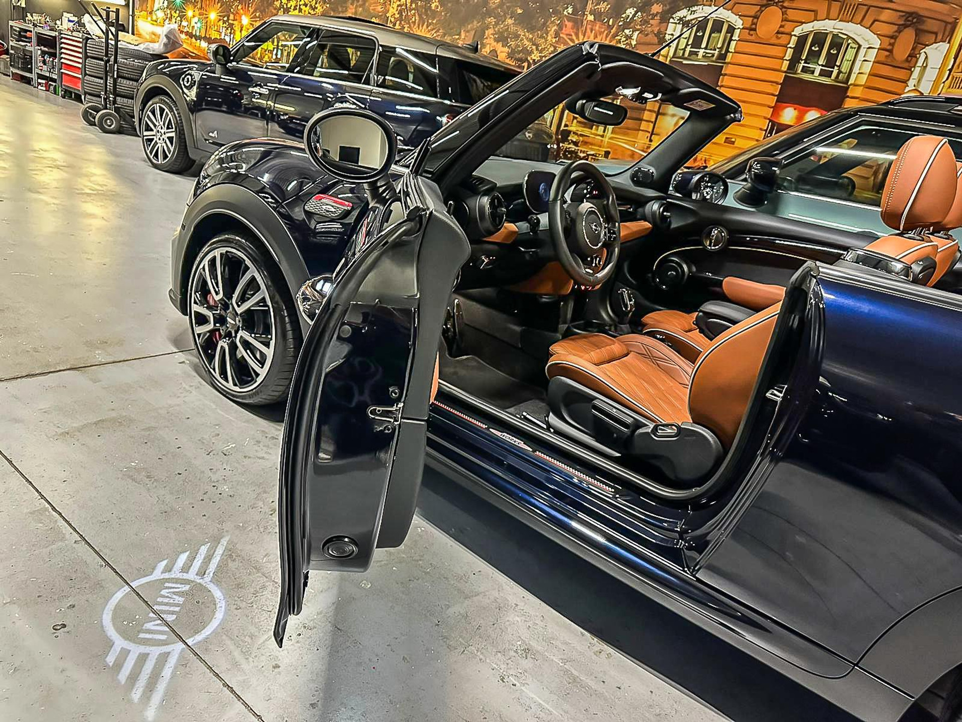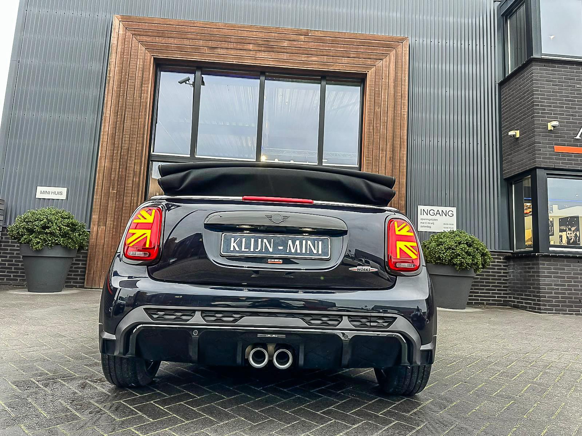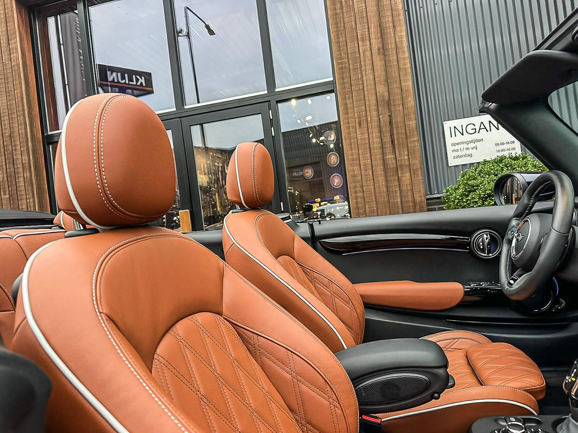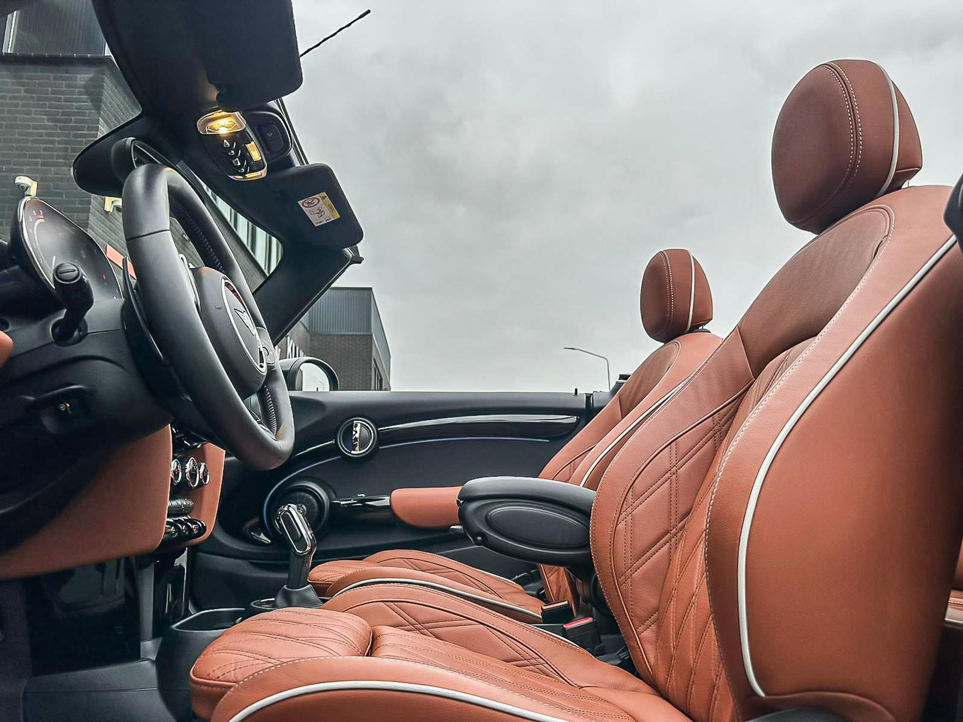 Unieke facelift Mini John Cooper Works cabrio Blackline F1 sportautomaat met een 231pk motor uitgevoerd in de prachtige kleurencombinatie van Enigmatic black en Chestermalt brown lederen interieur.Deze schitterende Mini is uitgerust met alle maar dan ook alle denkbare opties:Climate control,vollederen interieur chestermalt brown,sportstoelen,stoelverwarming,verwarmd stuurwiel,digitaal dashbord,breedbeeld navigatie,Mini connected XL,achteruitrijcamera,Harman Kardon soundsystem,adaptieve cruise control,dab tuner,tel,usb,performence control,apple carplay,Mini driving modus,elektrische cabriokap,lederen Jcw sportstuur met flipperschakel,mf stuur,automatisch dimmende binnenspiegel, regensensor,facelift,full blackpack, voetgangersbeveiliging,dtc,elektrisch inklapbare spiegels, parkeersensoren voor en achter,parkassist(Mini parkeert zelf in),union Jack achterlichten,led koplampen met uitgebreide functies,18 inch JCW velgen circuit spoke,lichtpakket met Mini logo's,actieve cruise control,gezichtspakket,chili 2 pakket,10.000km origineel,nieuwprijs 63.100euro.Prachtig uitgevoerde Mini Jcw in concoursstaat voor de echte liefhebber.