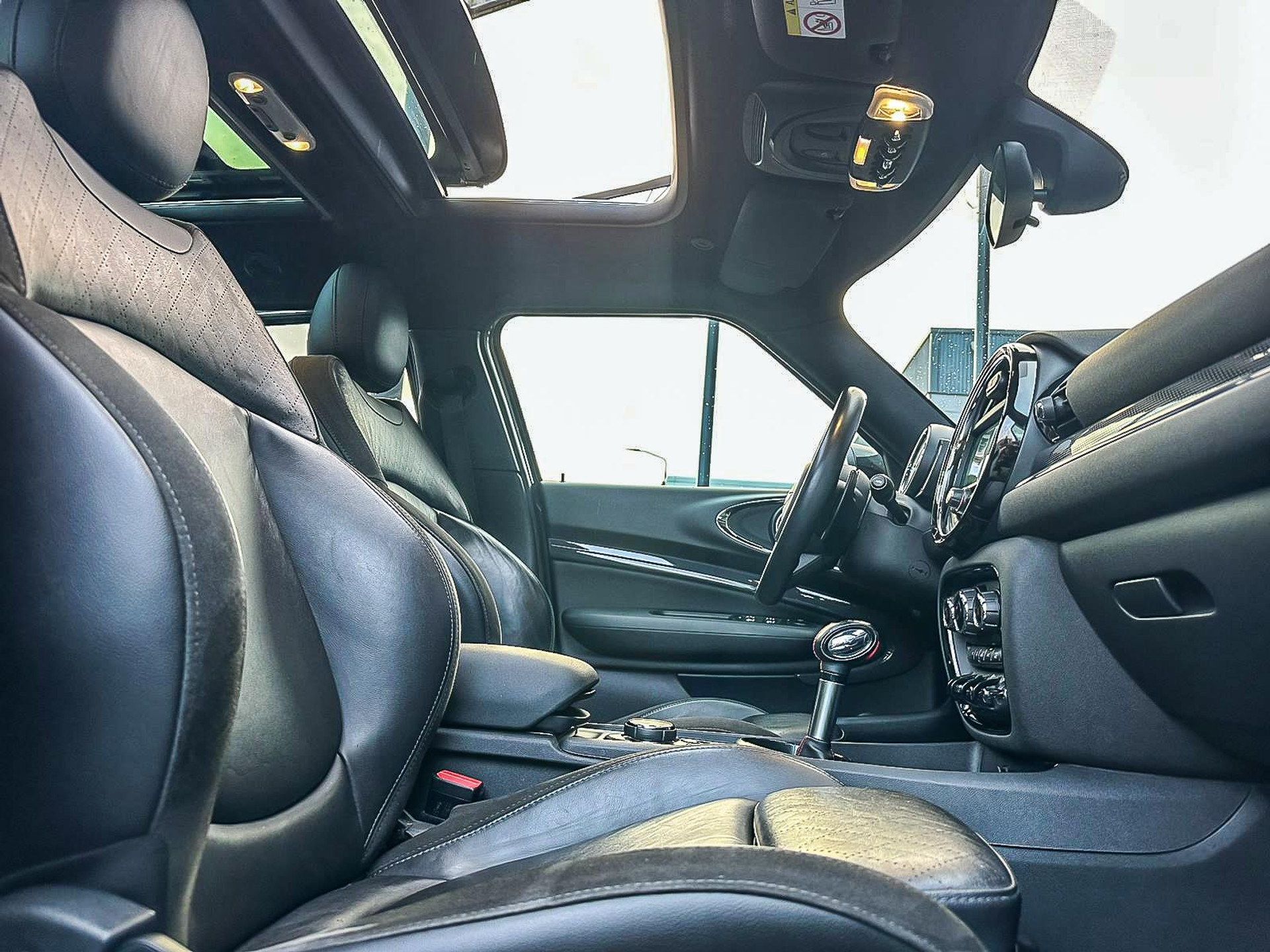 Zeer exclusieve en Unieke Mini Clubman John Cooper Works ALL4 F1 sportautomaat met een 231pk motor uitgevoerd in de prachtige kleur Thunder Grey.Deze in werkelijk nieuwstaat verkerende Mini is voorzien van alle denkbare opties oa:Climate control,vollederen interieur Carbon Black, stoelverwarming,sportstoelen,breedbeeld navigatie XL,Mini Connected XL,keyless go,19” Jcw cup velgen,sportpakket,vierwielaandrijving,led verlichting,elektrisch bedienbare glazen panoramadak,5 persoons,privacyglass,lederen sportstuur Jcw,Harman Kardon soundsystem,verwarmde voorruit,lichtpakket met Mini logo's,welcome pakket,parkeersensoren achter,F1 schakel op stuur,actieve voetgangersbeveiliging,active cruise control,Mini driving modus,donker dakhemel,mf stuur,boordcomputer,regensensor,armsteun,chili 2 pakket,alle boekjes+originele sleutels,1e eigenaar,nieuwprijs 62.000euro.Schitterende en unieke Mini Clubman Works in topstaat voor de echte liefhebber.