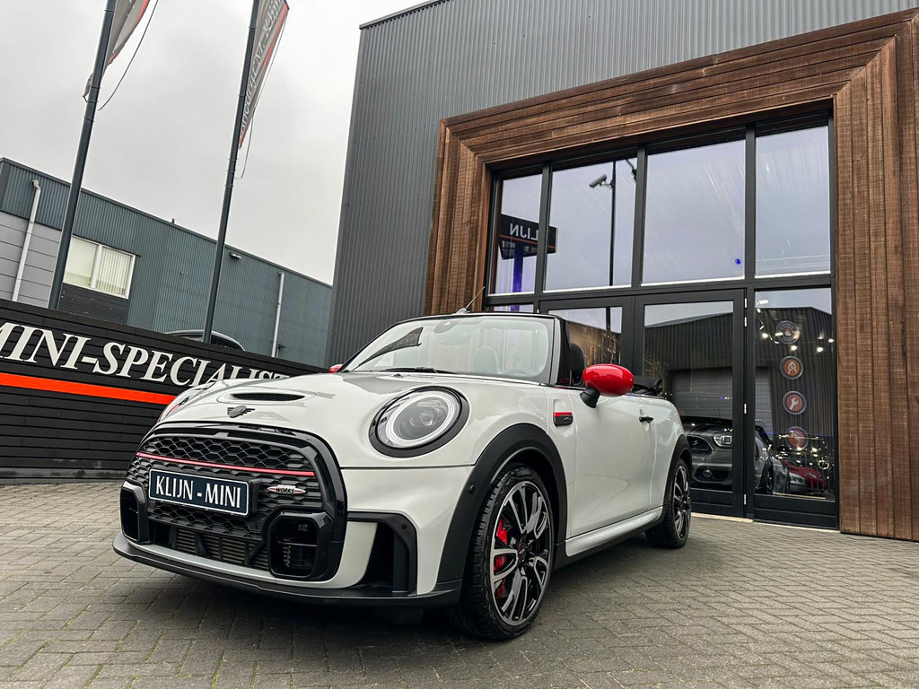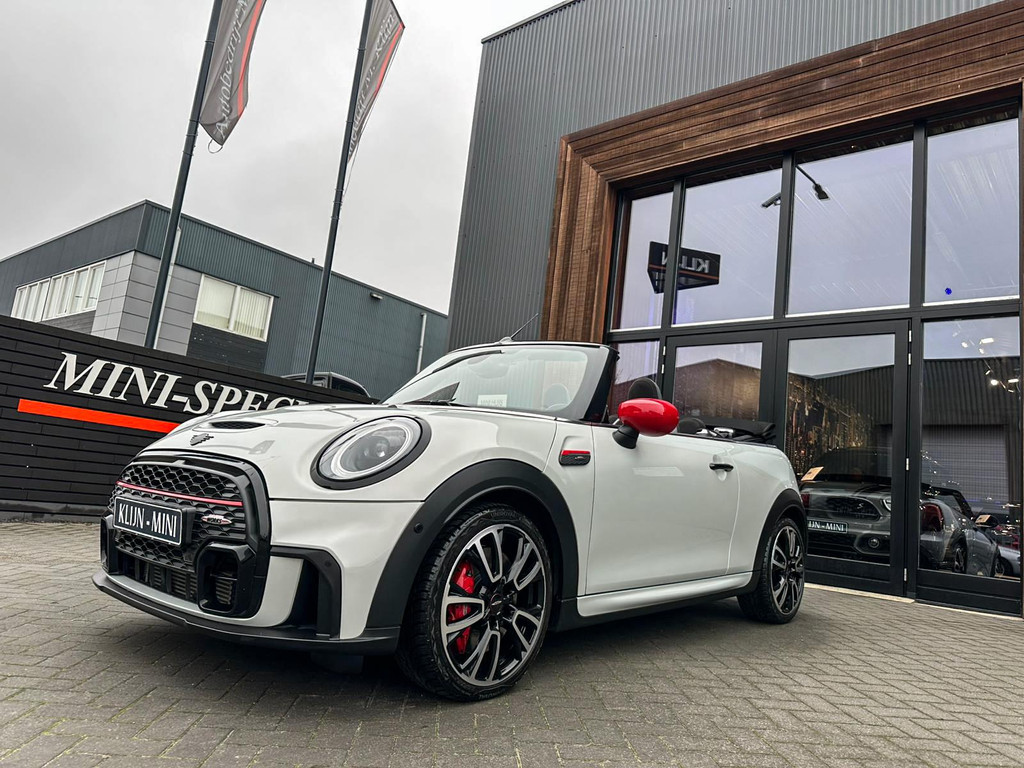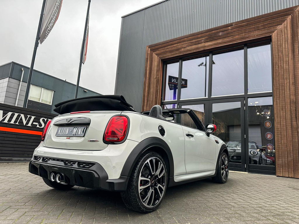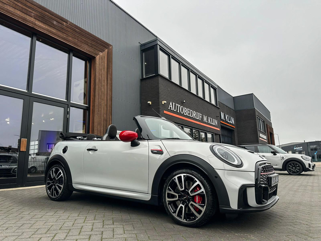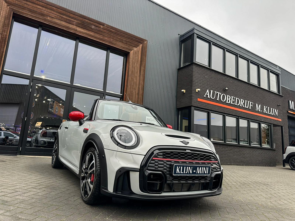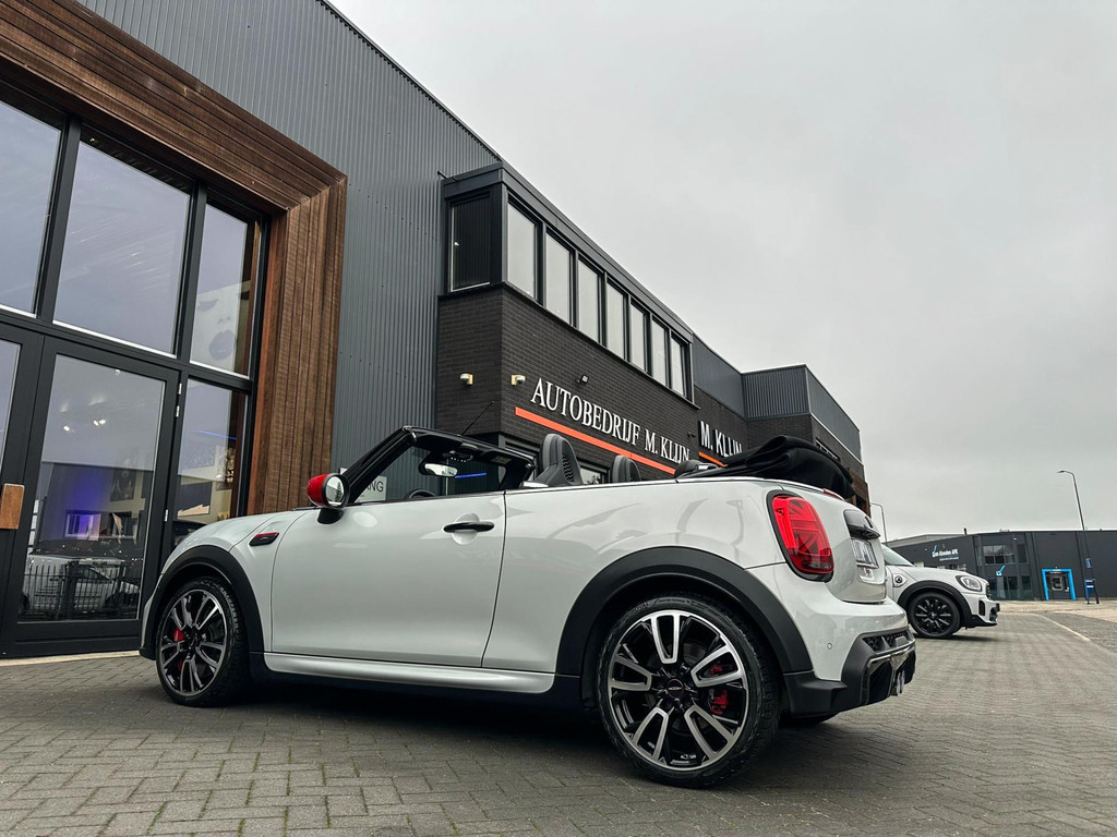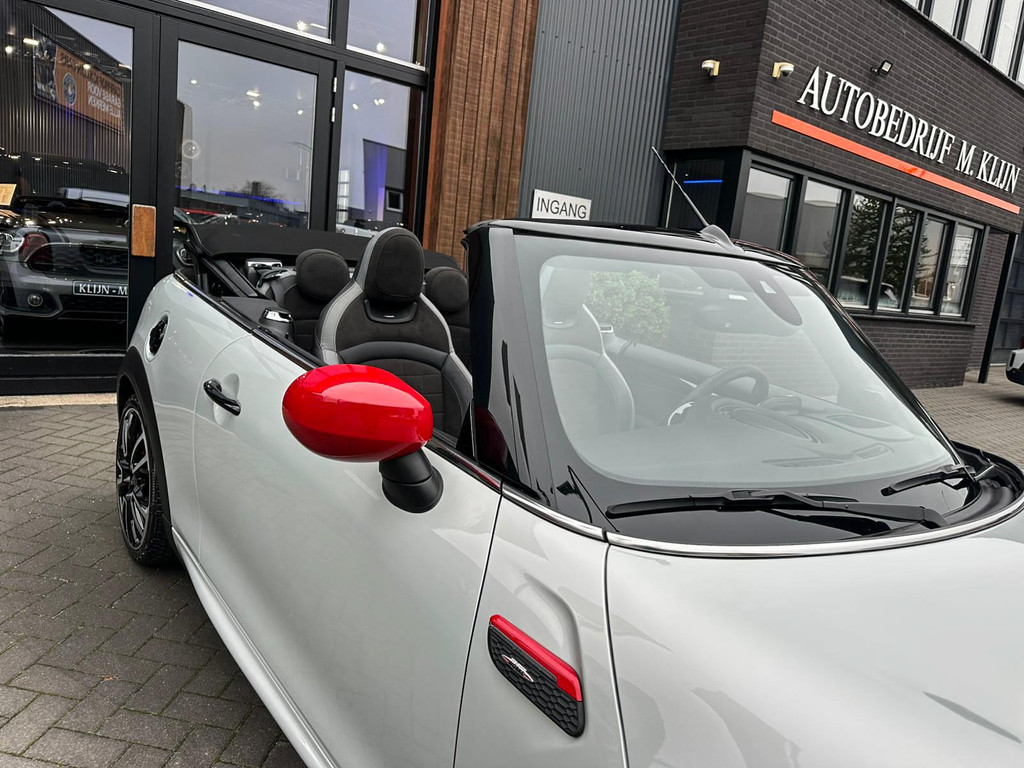 Unieke facelift Mini John Cooper Works cabrio Blackline F1 sportautomaat met een 231pk motor in de prachtige kleur whitesilver metallic.Deze schitterende Mini is uitgerust met alle maar dan ook alle denkbare opties:Climate control,lederen/alcantara Jcw interieur,sportstoelen,stoelverwarming,digitaal dashbord,breedbeeld navigatie,Mini connected,achteruitrijcamera,Harman Kardon soundsystem,head up display,adaptieve cruise control,dab tuner,tel,usb,performence control,apple carplay,Mini driving modus,elektrische cabriokap,lederen Jcw sportstuur met flipperschakel,mf stuur,automatisch dimmende binnenspiegel, regensensor,facelift,blackline, voetgangersbeveiliging,dtc,elektrisch inklapbare spiegels, parkeersensoren voor en achter,parkassist(Mini parkeert zelf in),union Jack achterlichten,led koplampen met uitgebreide functies,18 inch JCW Circuit Spoke velgen,lichtpakket met Mini logo's,gezichtspakket,22.000km origineel,nieuwprijs 63.000euro.Prachtig uitgevoerde Mini Jcw in concoursstaat voor de echte liefhebber