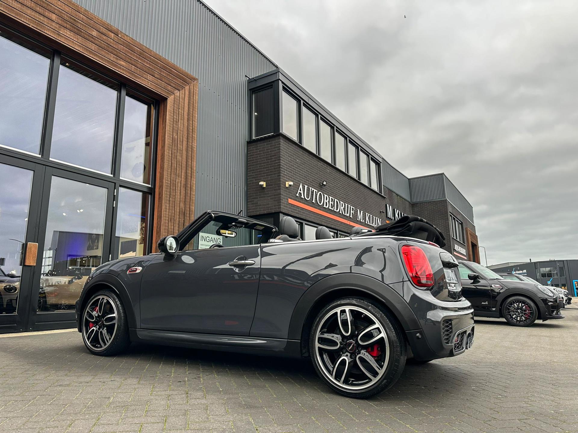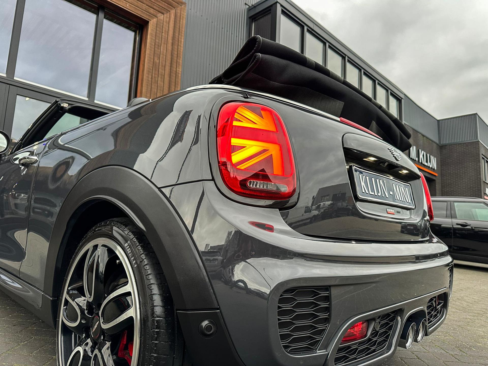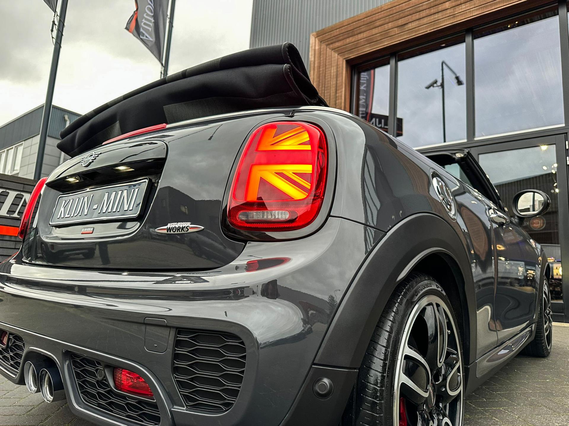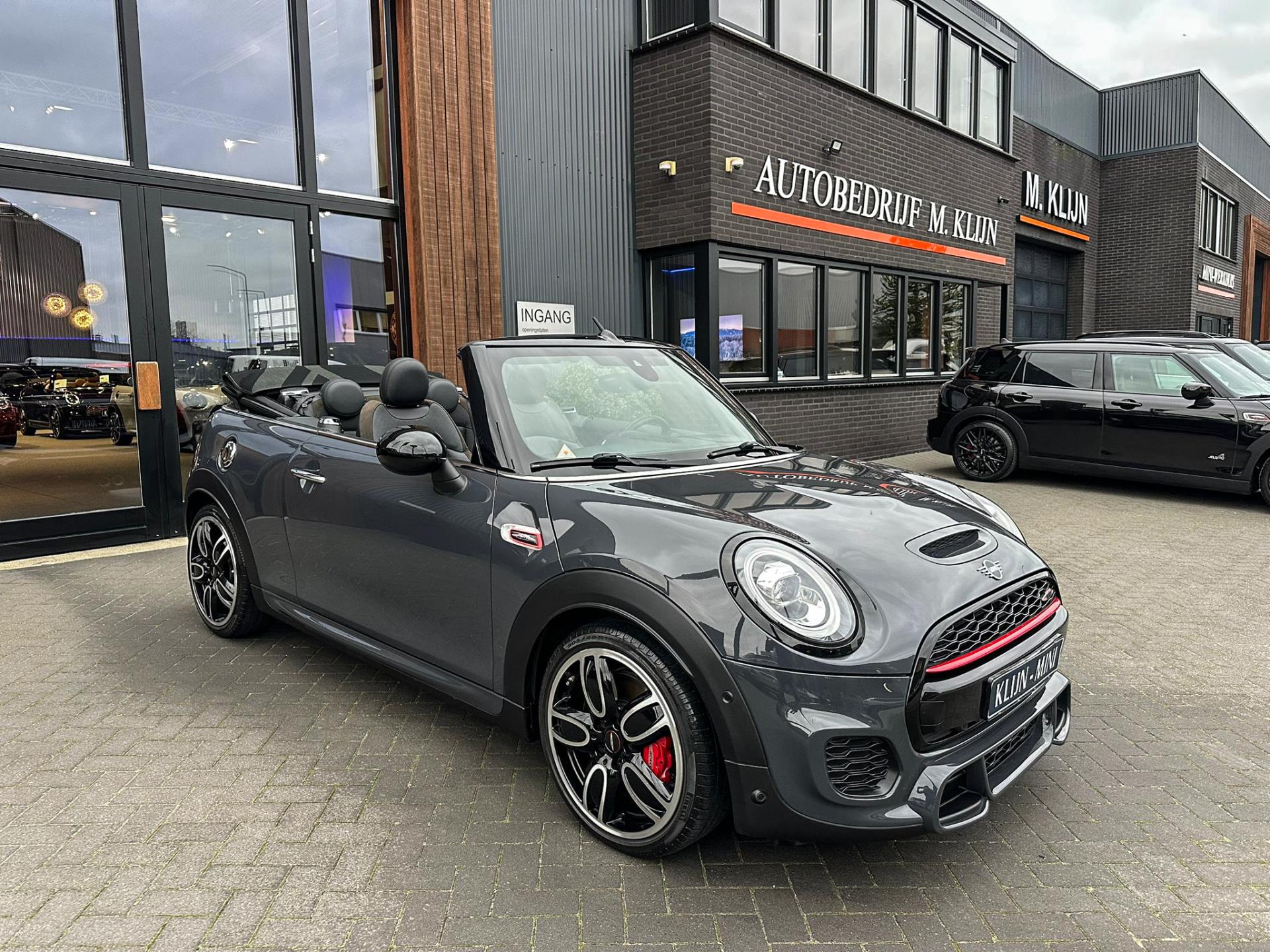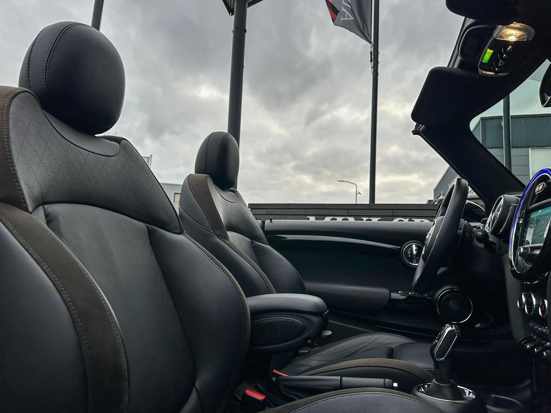 Unieke origineel Hollands geleverde Mini John Cooper Works cabrio Blackline F1 sportautomaat met een 231pk motor in de prachtige kleur Thundergrey metallic en uitgevoerd met een Union Jack cabriokap.Deze schitterende Mini is uitgerust met alle denkbare opties:Climate control,vollederen interieur carbon black,sportstoelen,stoelverwarming,breedbeeld navigatie,Mini connected XL,head up display,achteruitrijcamera,adaptieve cruise control,Harman Kardon soundsystem,dab tuner,tel,usb,performence control,apple carplay,Mini driving modus,elektrische cabriokap,Union Jack cabriokap,lederen Jcw sportstuur met flipperschakel,mf stuur,automatisch dimmende binnenspiegel,regensensor,facelift model,full black pack, voetgangersbeveiliging,dtc,elektrisch inklapbare spiegels, parkeersensoren voor en achter,parkassist(Mini parkeert zelf in),union Jack achterlichten,led koplampen met uitgebreide functies,18 inch JCW circuit spoke velgen,lichtpakket met Mini logo's,actieve cruise control,gezichtspakket,chili 2 pakket,68.000km origineel Nap,nieuwprijs 57.000euro.Prachtig uitgevoerde Mini Jcw in concoursstaat voor de echte liefhebber.