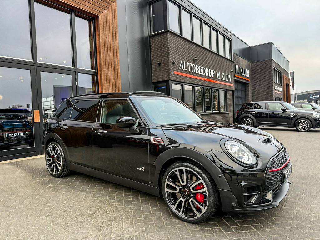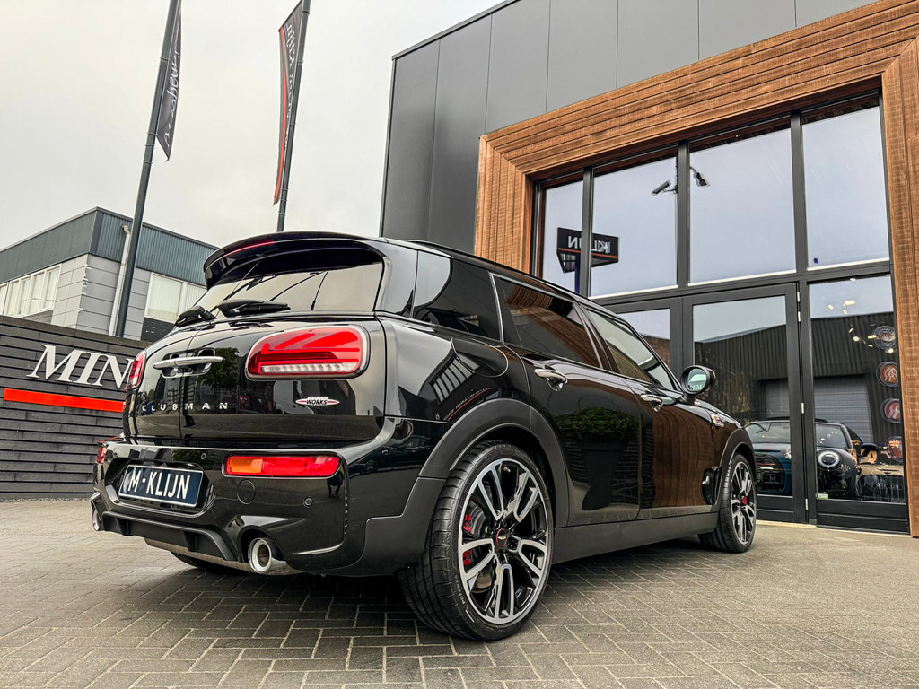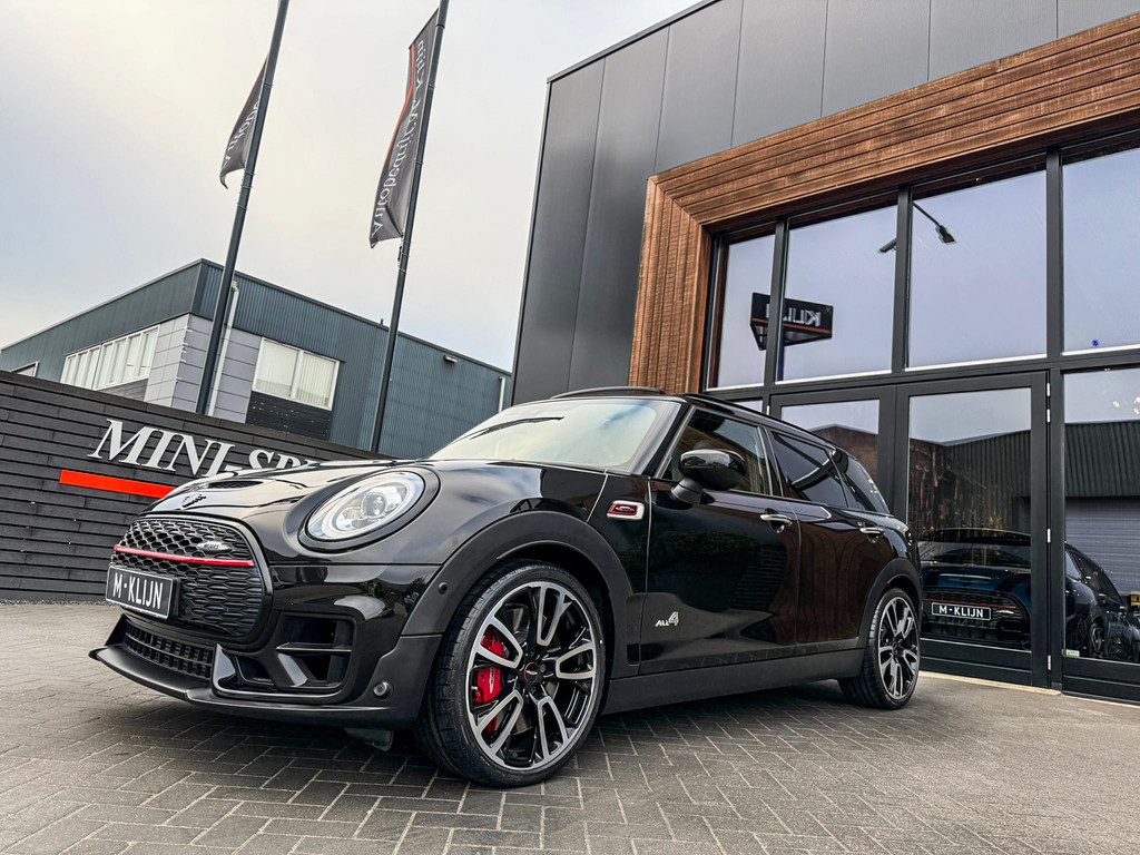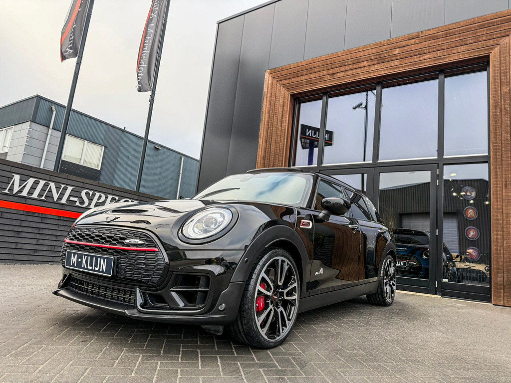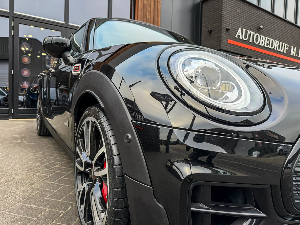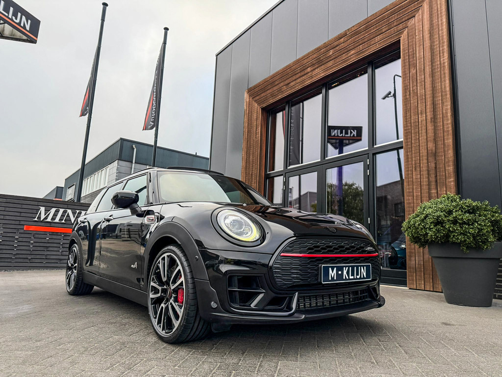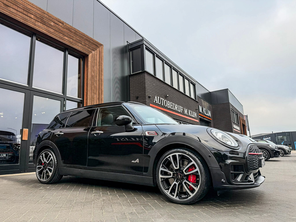 Zeer exclusieve facelift Mini Clubman John Cooper Works ALL4 F1 sportautomaat met een 306pk motor uitgevoerd in de prachtige kleur Midnightblack.Deze in werkelijk nieuwstaat verkerende Mini is uitgerust met alle maar dan ook alle denkbare opties oa:Climate control,vollederen interieur Carbon black,sportstoelen,stoelverwarming,virtual cockpit,breedbeeld dvd navigatie XL,Mini Connected XL,Harman Kardon soundsystem,head up display,adaptieve cruise control,keyless go,achteruitrijcamera,19" Jcw circuit spoke velgen,sportpakket,vierwielaandrijving,led verlichting,elektrisch bedienbare glazen panoramadak,5 persoons,privacyglass,lederen Jcw sportstuur met F1 flipperschakel,lichtpakket met Mini logo's,alarm,welcome pakket,dakrailing zwart,parkeersensoren voor en achter,parkassist(auto parkeert zelf in),F1 schakel op stuur,actieve voetgangersbeveiliging,lc scherm,virtual cockpit,Mini driving modus,donker dakhemel,mf stuur,Apple Carplay,dab radio,boordcomputer,blackline,regensensor,verwarmde voorruit,Union Jack achterlichten,vierwielaandrijving,armsteun,chili 2 pakket,alle boekjes+originele sleutels,Btw auto,1e eigenaar,85.000km origineel,nieuwprijs 71.900,-.Schitterende en unieke Mini Clubman Works in concoursstaat voor de echte liefhebber