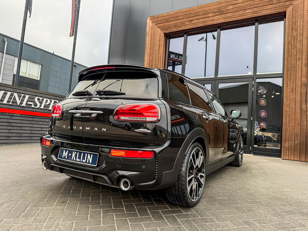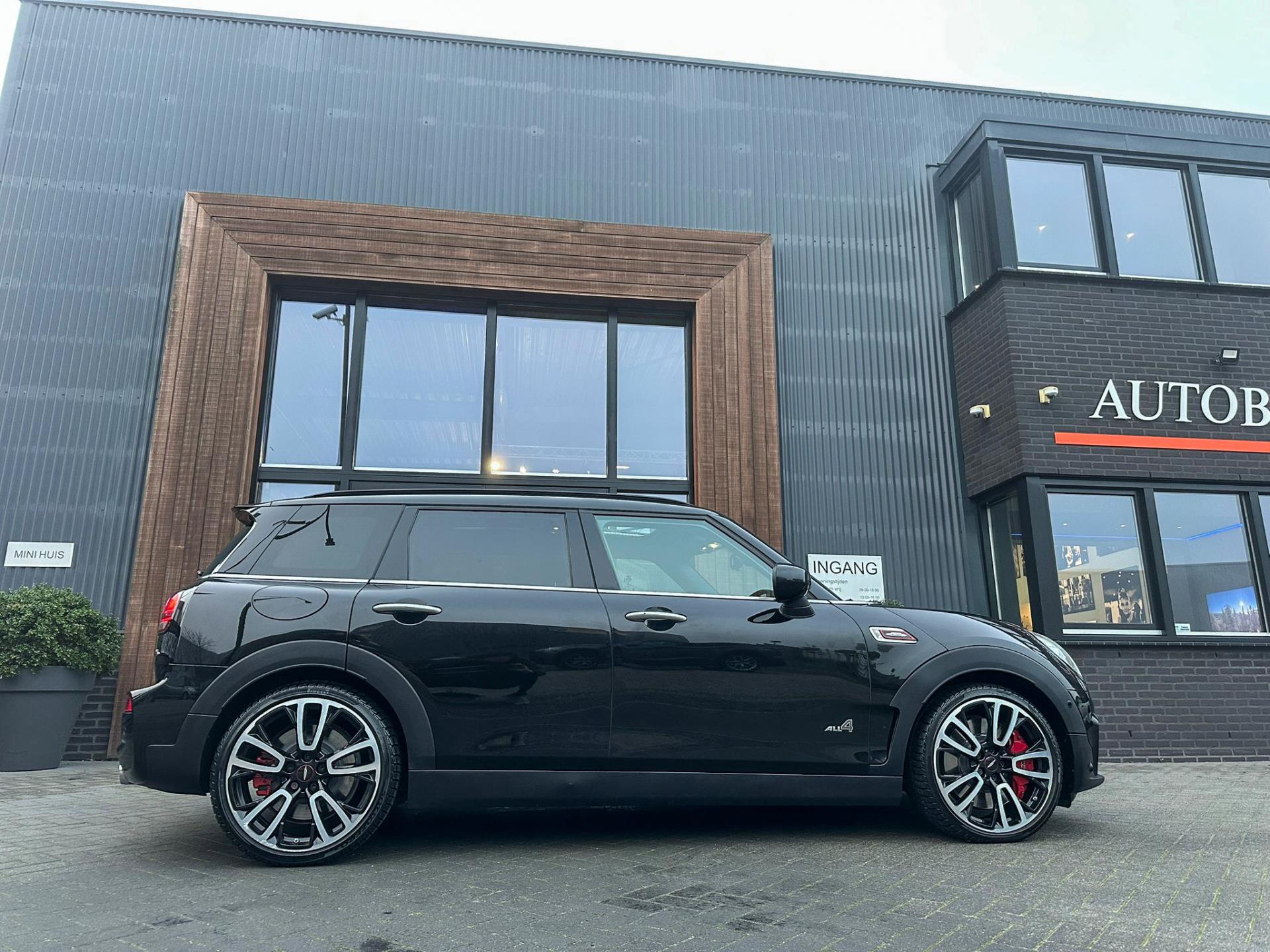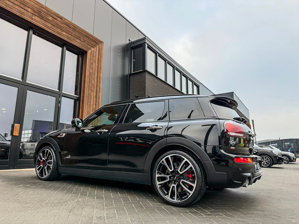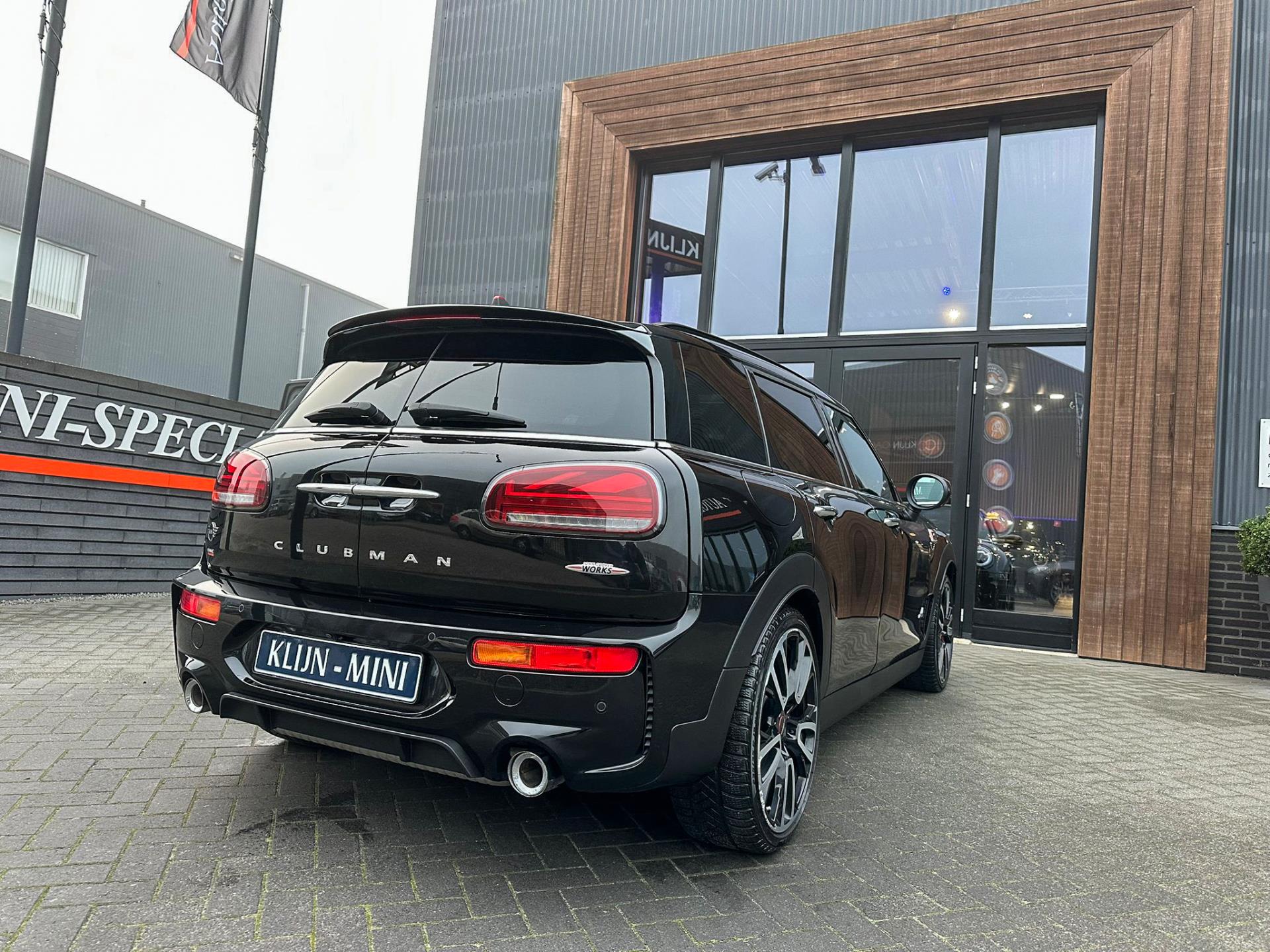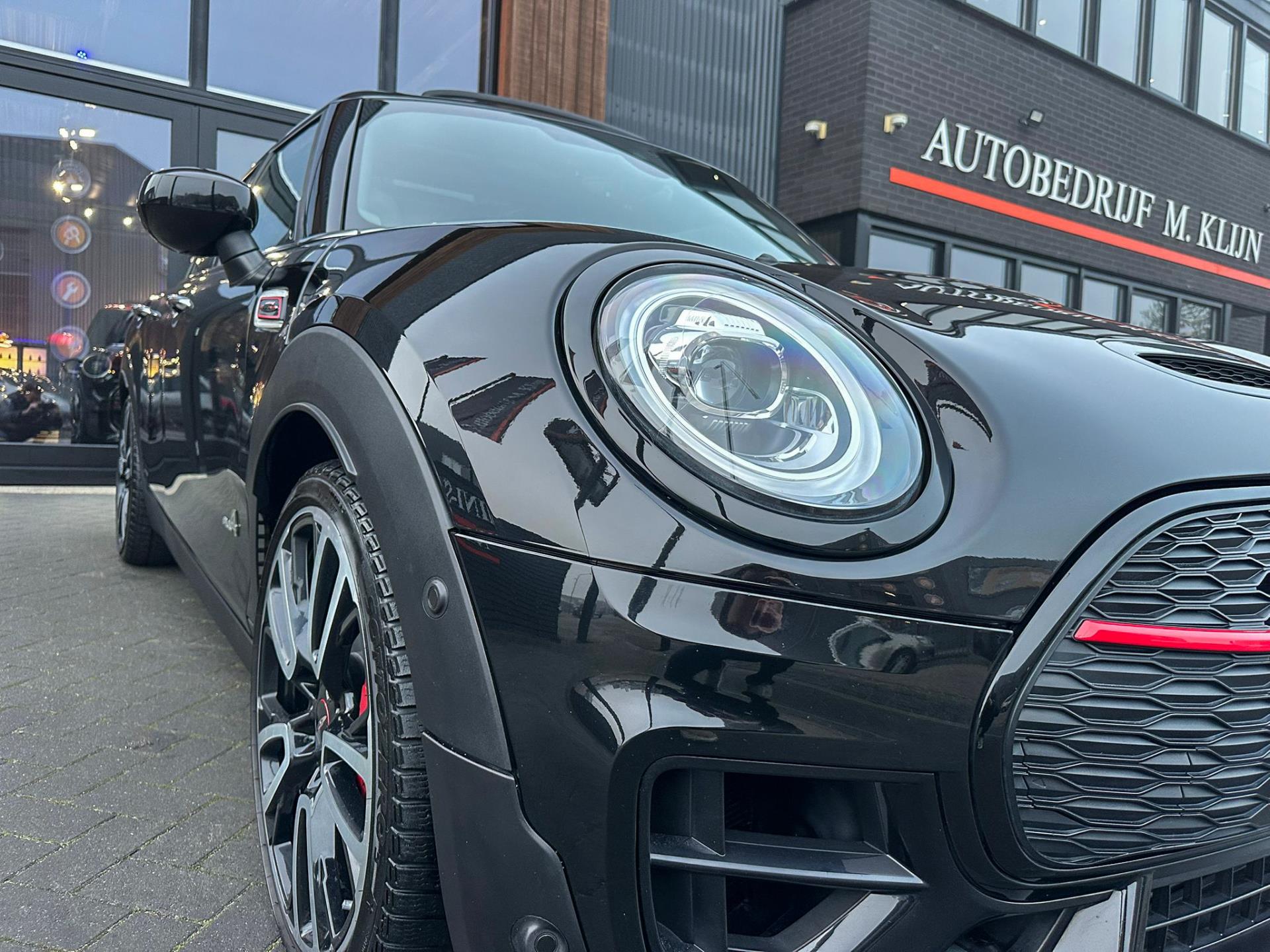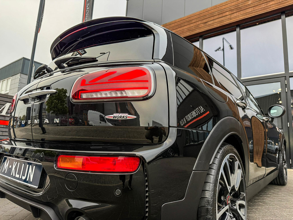 Zeer exclusieve facelift Mini Clubman John Cooper Works ALL4 F1 sportautomaat met een 306pk motor uitgevoerd in de prachtige kleur Midnightblack.Deze in werkelijk nieuwstaat verkerende Mini is uitgerust met alle maar dan ook alle denkbare opties oa:Climate control,vollederen interieur Carbon black,sportstoelen,stoelverwarming,virtual cockpit,breedbeeld dvd navigatie XL,Mini Connected XL,Harman Kardon soundsystem,head up display,adaptieve cruise control,keyless go,achteruitrijcamera,19" Jcw circuit spoke velgen,sportpakket,vierwielaandrijving,led verlichting,elektrisch bedienbare glazen panoramadak,5 persoons,privacyglass,lederen Jcw sportstuur met F1 flipperschakel,lichtpakket met Mini logo's,alarm,welcome pakket,dakrailing zwart,parkeersensoren voor en achter,parkassist(auto parkeert zelf in),F1 schakel op stuur,actieve voetgangersbeveiliging,lc scherm,virtual cockpit,Mini driving modus,donker dakhemel,mf stuur,Apple Carplay,dab radio,boordcomputer,blackline,regensensor,verwarmde voorruit,Union Jack achterlichten,vierwielaandrijving,armsteun,chili 2 pakket,alle boekjes+originele sleutels,Btw auto,1e eigenaar,85.000km origineel,nieuwprijs 71.900,-.Schitterende en unieke Mini Clubman Works in concoursstaat voor de echte liefhebber