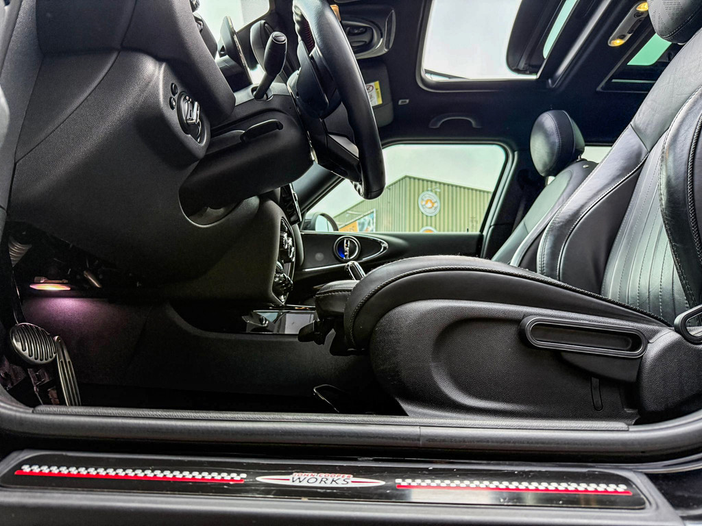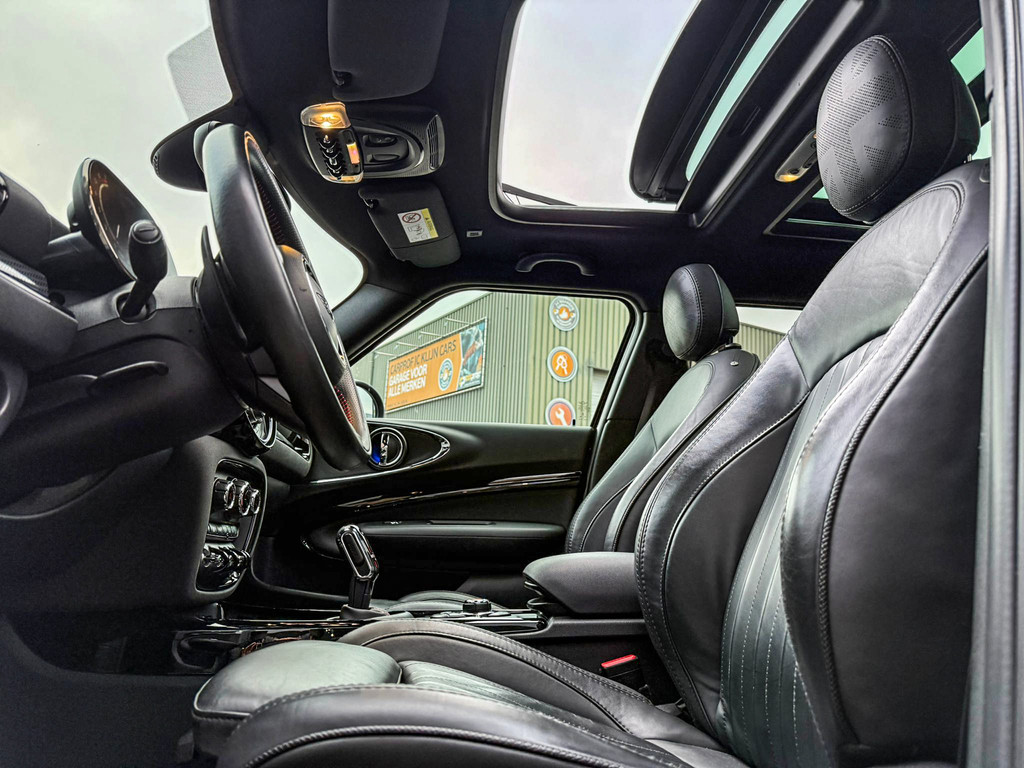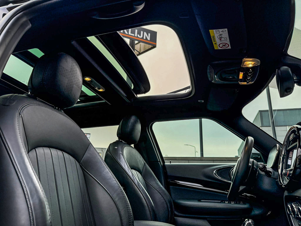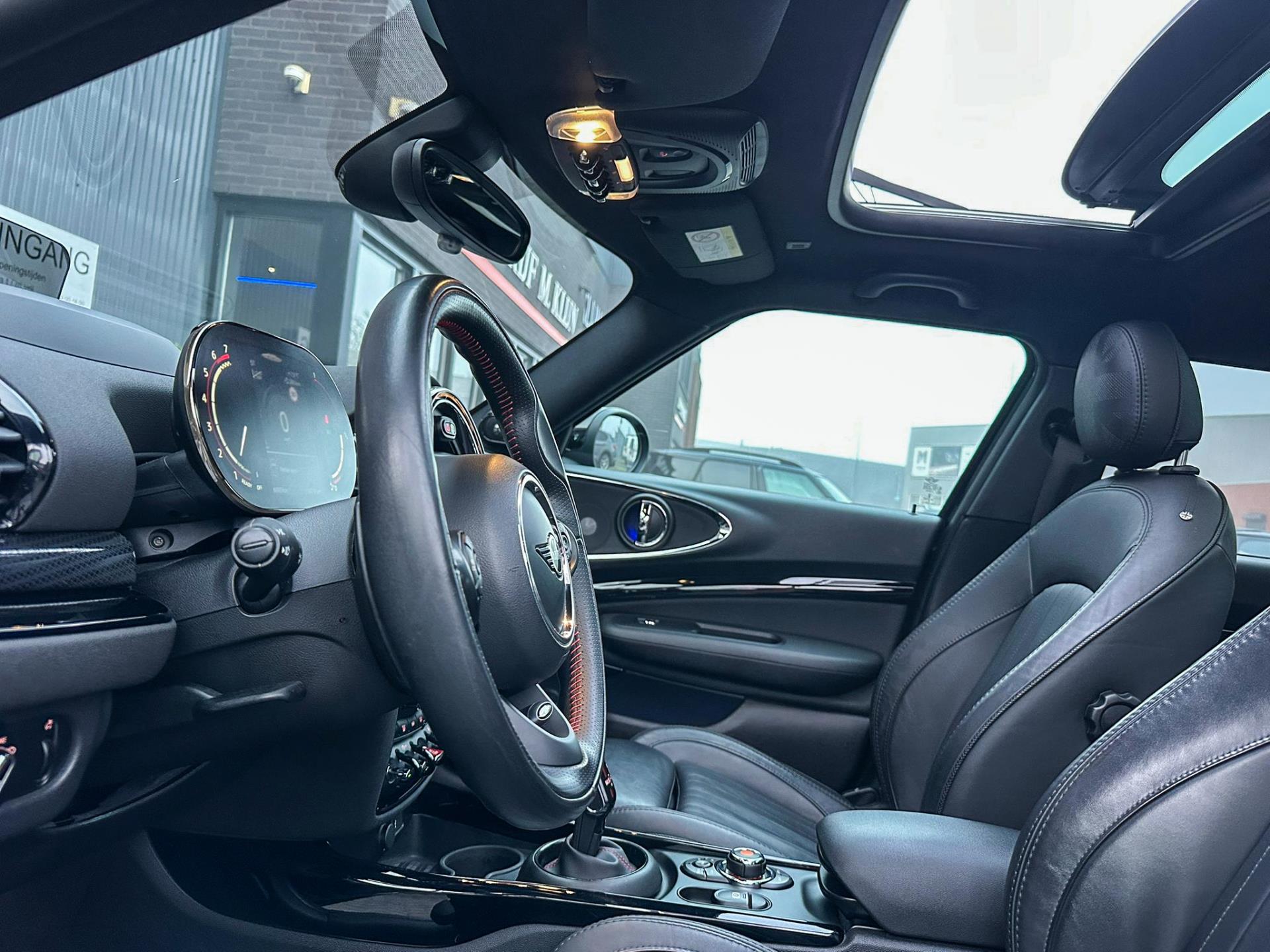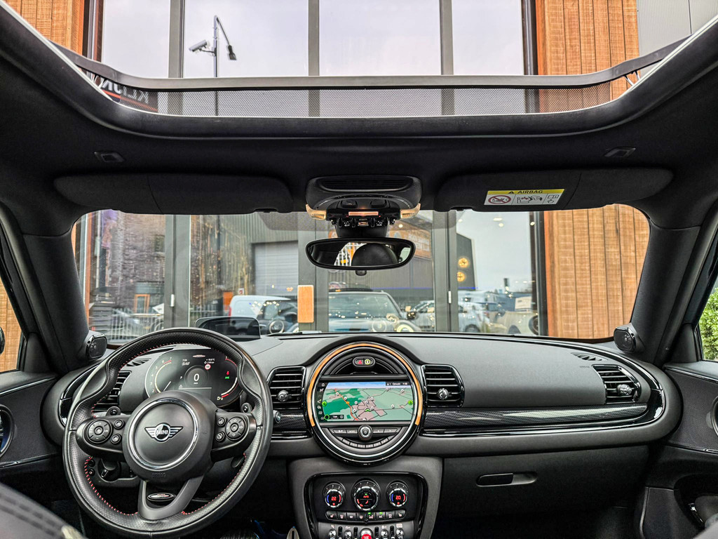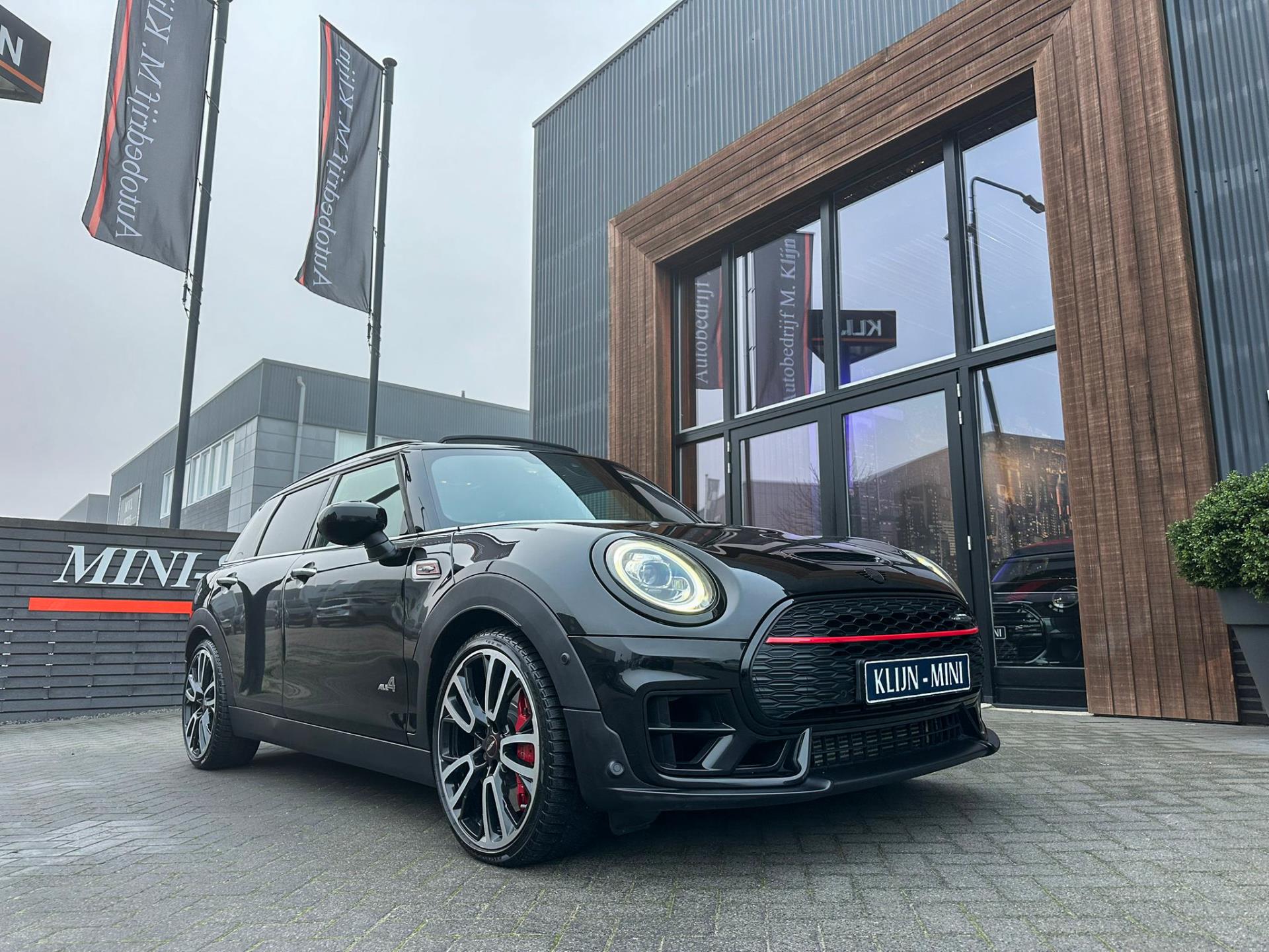 Zeer exclusieve facelift Mini Clubman John Cooper Works ALL4 F1 sportautomaat met een 306pk motor uitgevoerd in de prachtige kleur Midnightblack.Deze in werkelijk nieuwstaat verkerende Mini is uitgerust met alle maar dan ook alle denkbare opties oa:Climate control,vollederen interieur Carbon black,sportstoelen,stoelverwarming,virtual cockpit,breedbeeld dvd navigatie XL,Mini Connected XL,Harman Kardon soundsystem,head up display,adaptieve cruise control,keyless go,achteruitrijcamera,19" Jcw circuit spoke velgen,sportpakket,vierwielaandrijving,led verlichting,elektrisch bedienbare glazen panoramadak,5 persoons,privacyglass,lederen Jcw sportstuur met F1 flipperschakel,lichtpakket met Mini logo's,alarm,welcome pakket,dakrailing zwart,parkeersensoren voor en achter,parkassist(auto parkeert zelf in),F1 schakel op stuur,actieve voetgangersbeveiliging,lc scherm,virtual cockpit,Mini driving modus,donker dakhemel,mf stuur,Apple Carplay,dab radio,boordcomputer,blackline,regensensor,verwarmde voorruit,Union Jack achterlichten,vierwielaandrijving,armsteun,chili 2 pakket,alle boekjes+originele sleutels,Btw auto,1e eigenaar,85.000km origineel,nieuwprijs 71.900,-.Schitterende en unieke Mini Clubman Works in concoursstaat voor de echte liefhebber