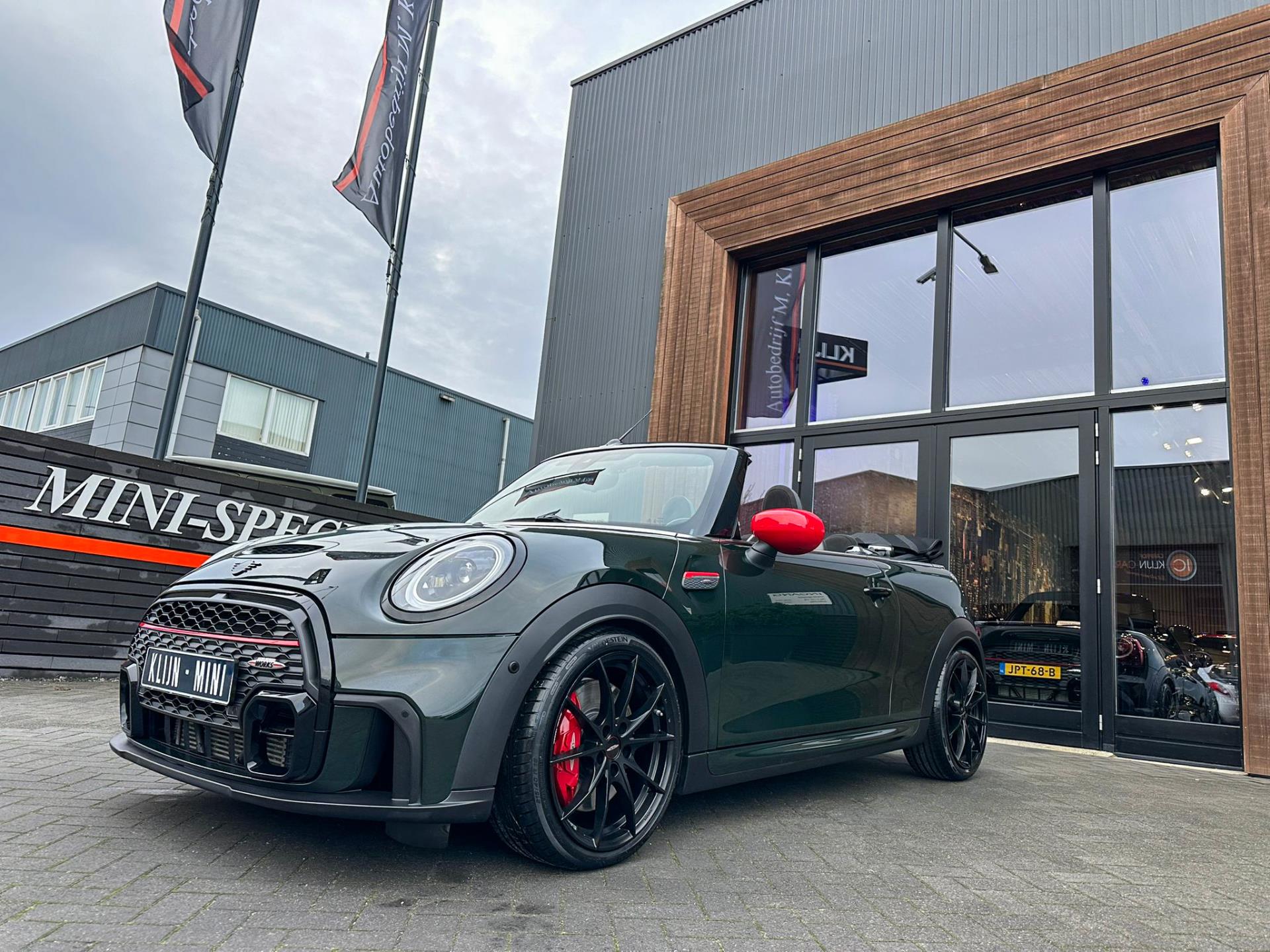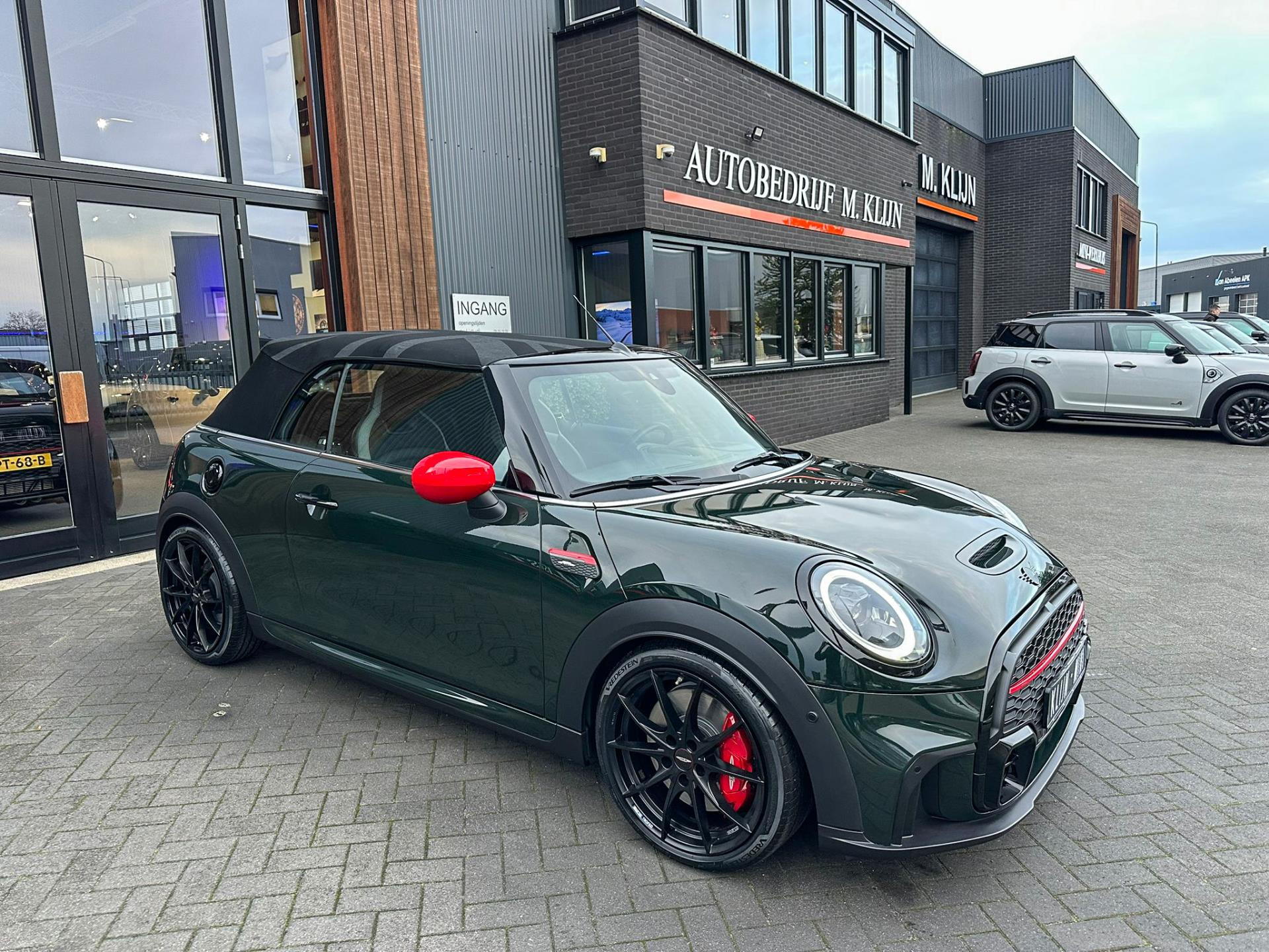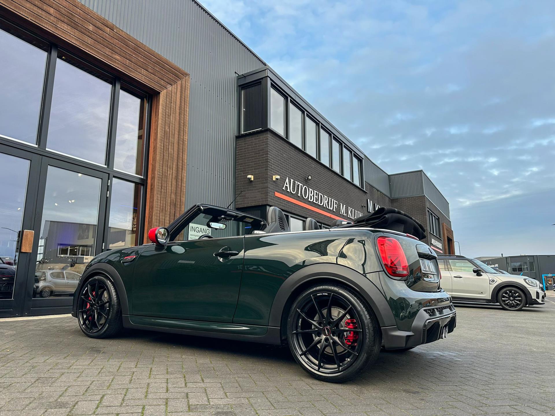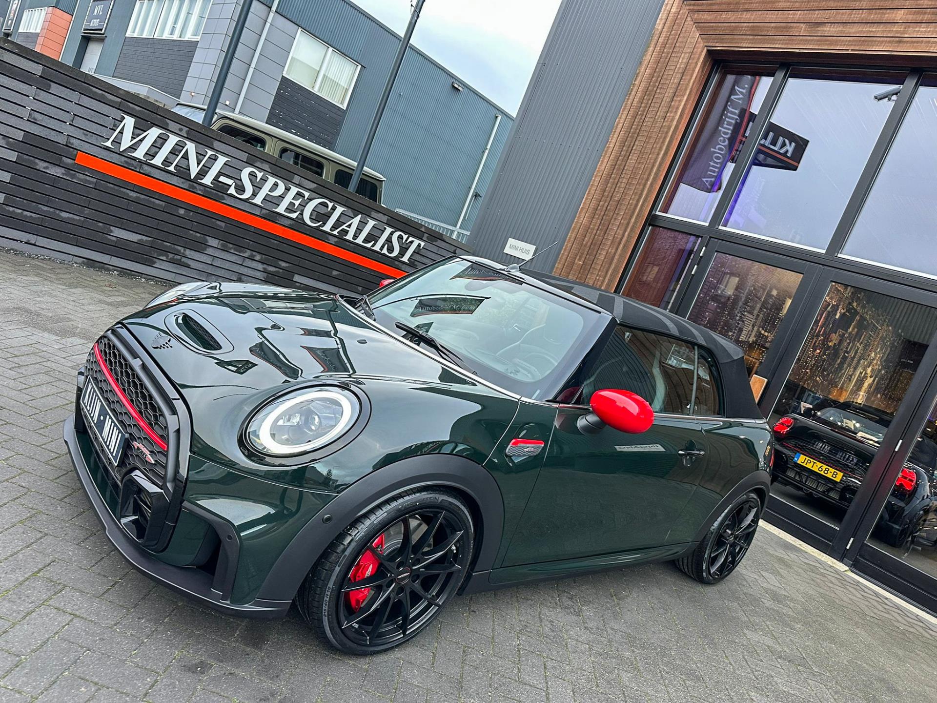 Unieke Mini John Cooper Works cabrio Blackline F1 sportautomaat met een 231pk motor in de prachtige kleur Rebel Green en uitgevoerd met een Union Jack cabriokap.Deze schitterende Mini is uitgerust met alle maar dan ook alle denkbare opties:Climate control,lederen/dinamica Jcw interieur,sportstoelen,stoelverwarming,stuurwiel verwarmd,virtual cockpit,breedbeeld navigatie,Mini connected XL,head up display,Harman Kardon soundsystem,achteruitrijcamera,adaptieve cruise control,dab tuner,tel,usb,performence control,apple carplay,Mini driving modus,elektrische cabriokap,Union Jack cabriokap,lederen Jcw sportstuur met flipperschakel,mf stuur,automatisch dimmende binnenspiegel, regensensor,verwarmde voorruit,facelift,full blackpack, voetgangersbeveiliging,dtc,elektrisch inklapbare spiegels, parkeersensoren voor en achter,alarm,parkassist(Mini parkeert zelf in),union Jack achterlichten,led koplampen met uitgebreide functies,18 inch Sparco Trofeo velgen,lichtpakket met Mini logo's,actieve cruise control,gezichtspakket,chili 2 pakket,43.000km origineel,nieuwprijs 63.000euro.Prachtig uitgevoerde Mini Jcw in concoursstaat voor de echte liefhebber