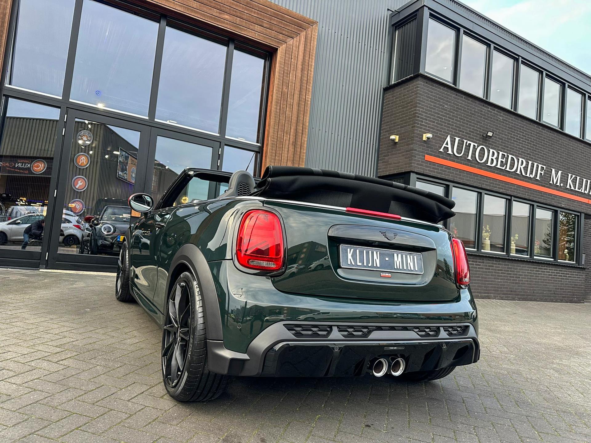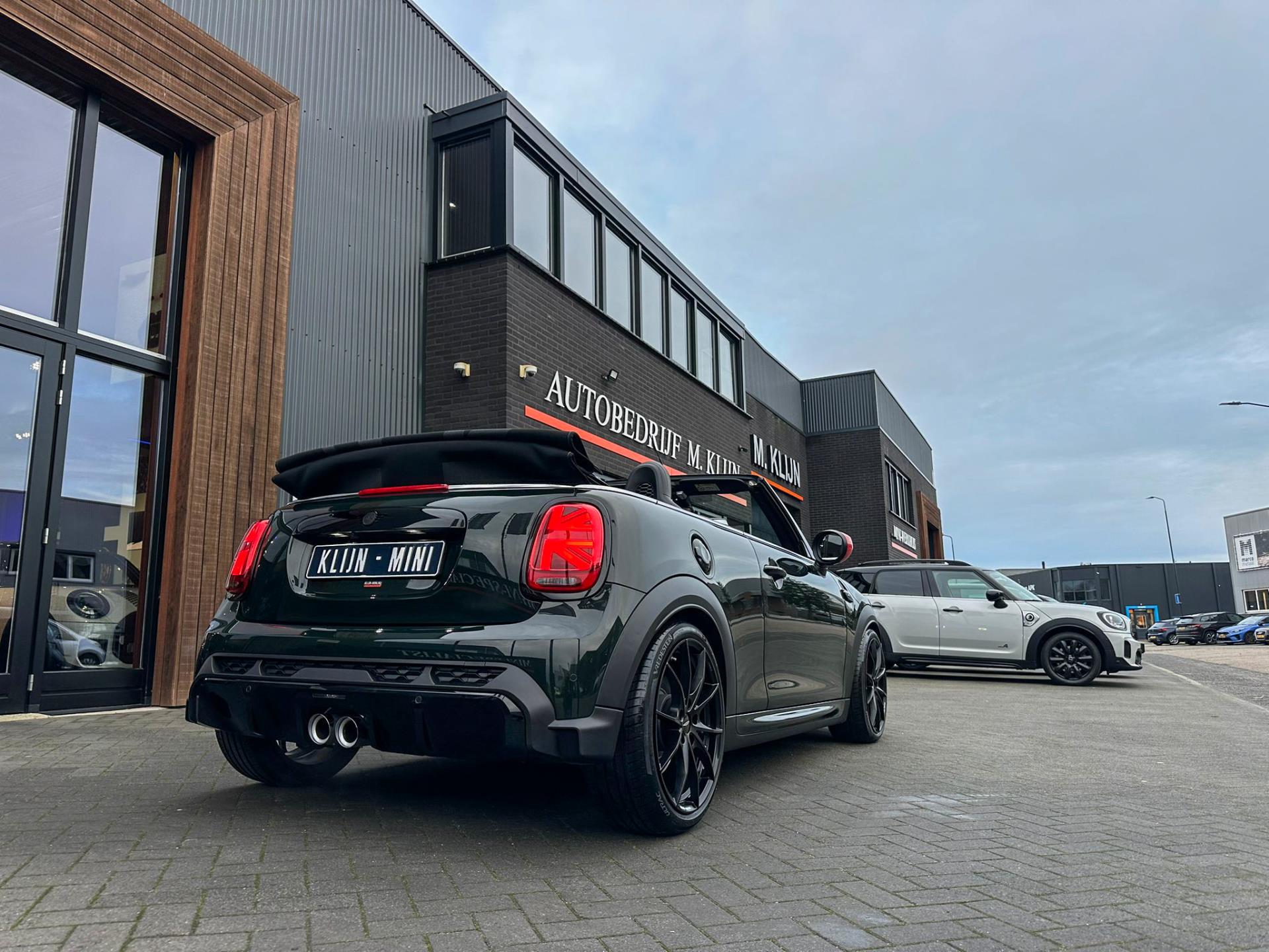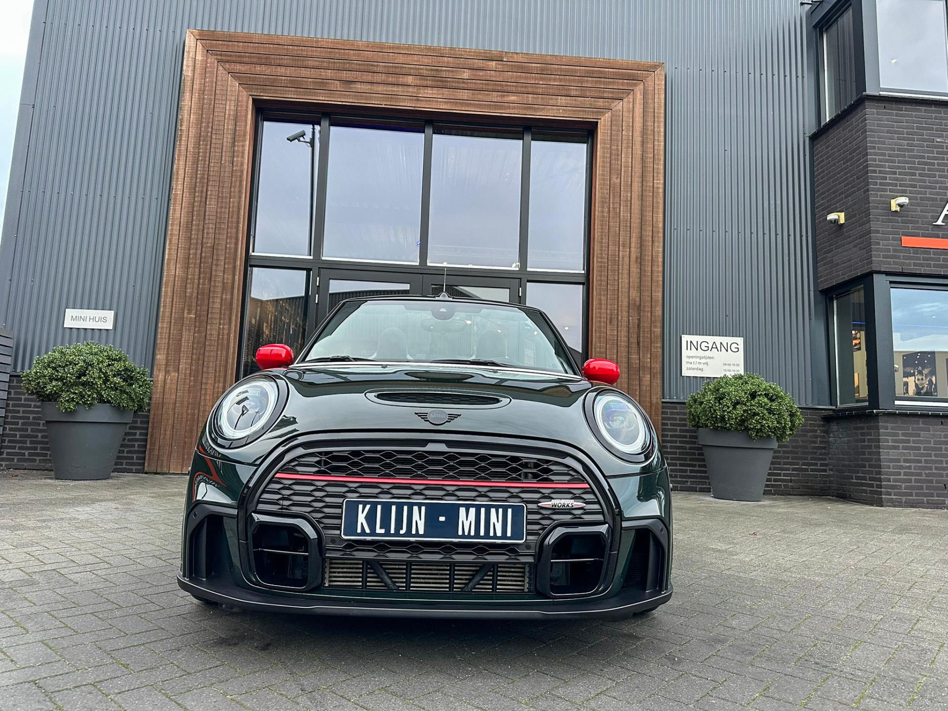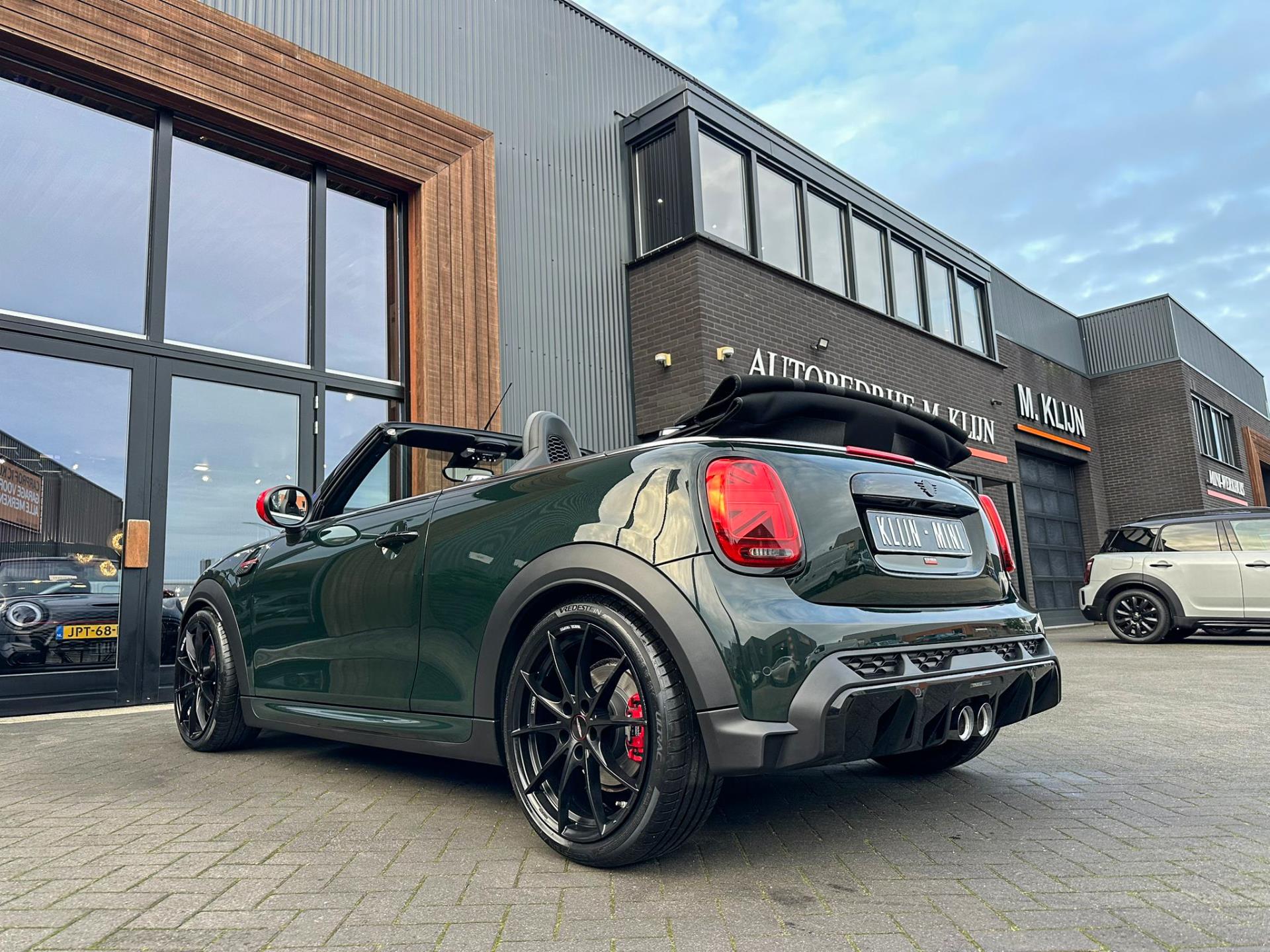 Unieke Mini John Cooper Works cabrio Blackline F1 sportautomaat met een 231pk motor in de prachtige kleur Rebel Green en uitgevoerd met een Union Jack cabriokap.Deze schitterende Mini is uitgerust met alle maar dan ook alle denkbare opties:Climate control,lederen/dinamica Jcw interieur,sportstoelen,stoelverwarming,stuurwiel verwarmd,virtual cockpit,breedbeeld navigatie,Mini connected XL,head up display,Harman Kardon soundsystem,achteruitrijcamera,adaptieve cruise control,dab tuner,tel,usb,performence control,apple carplay,Mini driving modus,elektrische cabriokap,Union Jack cabriokap,lederen Jcw sportstuur met flipperschakel,mf stuur,automatisch dimmende binnenspiegel, regensensor,verwarmde voorruit,facelift,full blackpack, voetgangersbeveiliging,dtc,elektrisch inklapbare spiegels, parkeersensoren voor en achter,alarm,parkassist(Mini parkeert zelf in),union Jack achterlichten,led koplampen met uitgebreide functies,18 inch Sparco Trofeo velgen,lichtpakket met Mini logo's,actieve cruise control,gezichtspakket,chili 2 pakket,43.000km origineel,nieuwprijs 63.000euro.Prachtig uitgevoerde Mini Jcw in concoursstaat voor de echte liefhebber