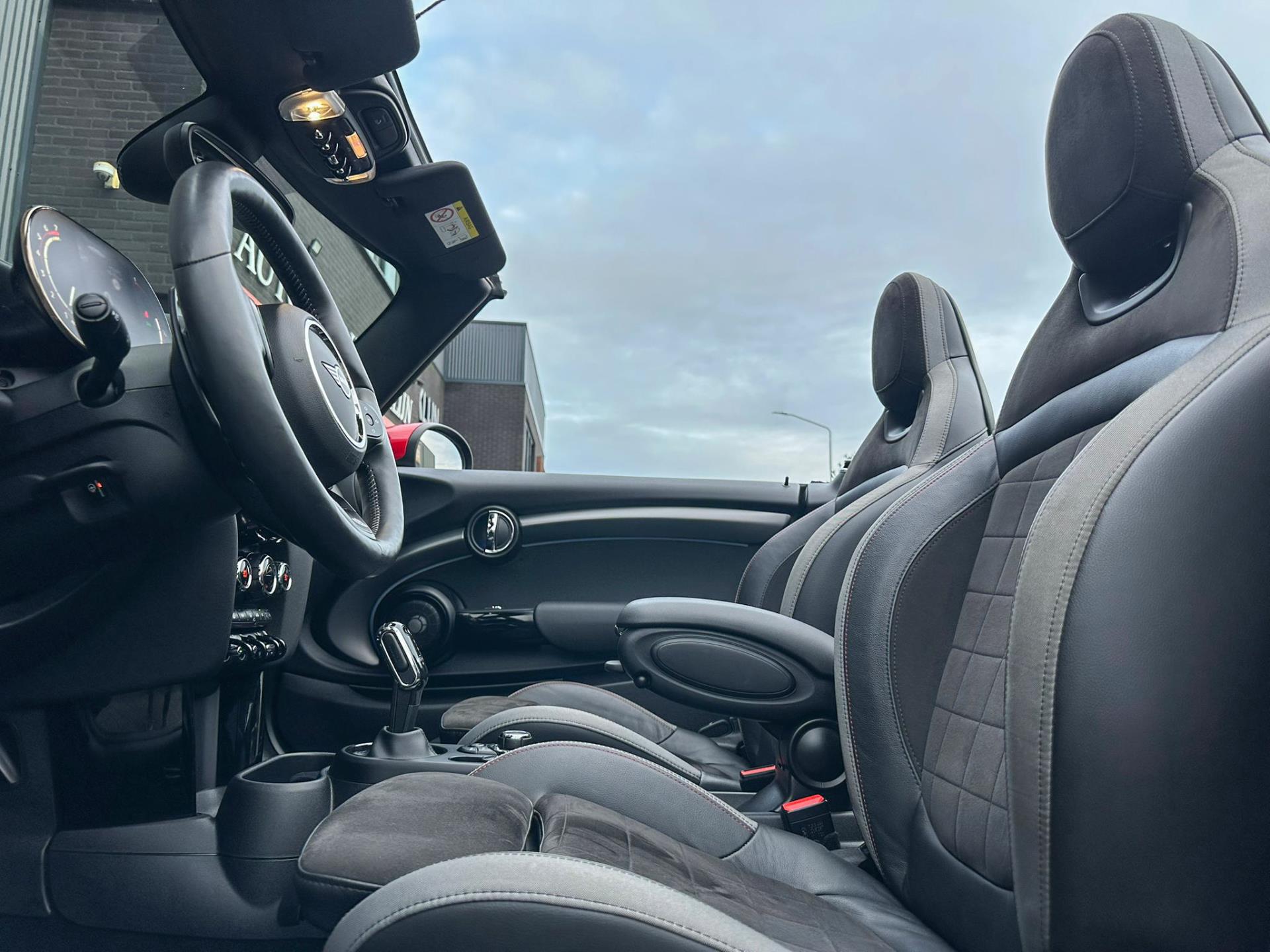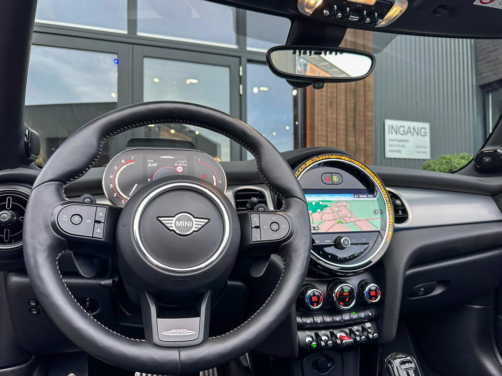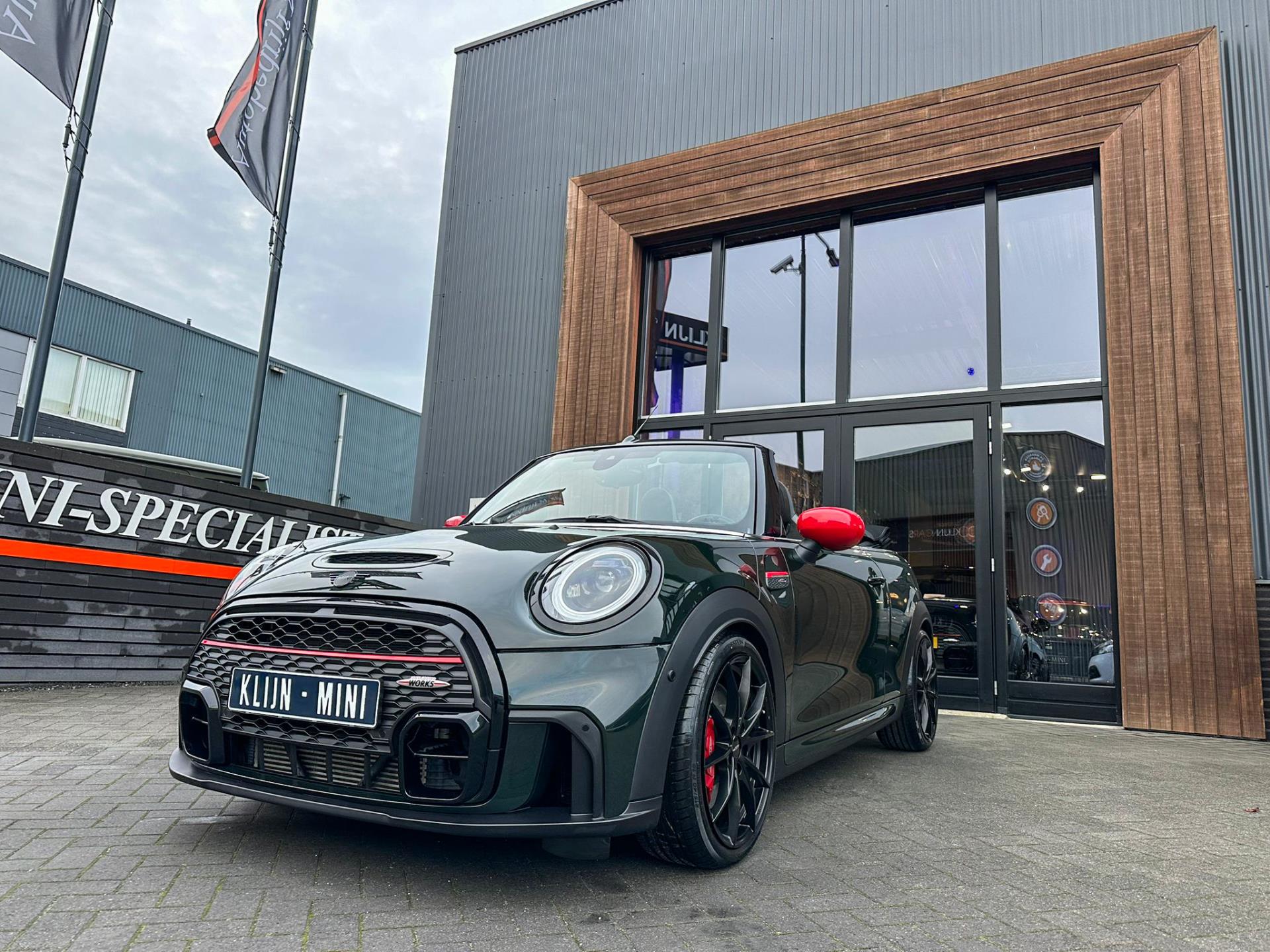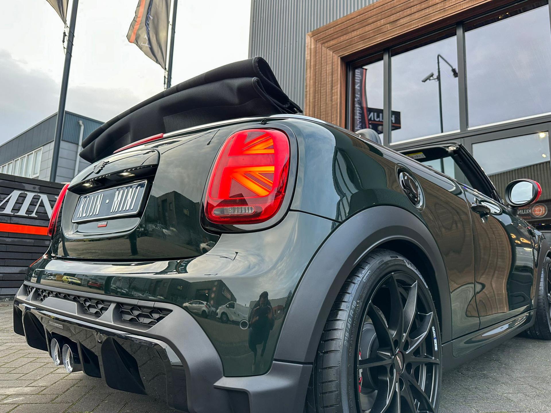 Unieke Mini John Cooper Works cabrio Blackline F1 sportautomaat met een 231pk motor in de prachtige kleur Rebel Green en uitgevoerd met een Union Jack cabriokap.Deze schitterende Mini is uitgerust met alle maar dan ook alle denkbare opties:Climate control,lederen/dinamica Jcw interieur,sportstoelen,stoelverwarming,stuurwiel verwarmd,virtual cockpit,breedbeeld navigatie,Mini connected XL,head up display,Harman Kardon soundsystem,achteruitrijcamera,adaptieve cruise control,dab tuner,tel,usb,performence control,apple carplay,Mini driving modus,elektrische cabriokap,Union Jack cabriokap,lederen Jcw sportstuur met flipperschakel,mf stuur,automatisch dimmende binnenspiegel, regensensor,verwarmde voorruit,facelift,full blackpack, voetgangersbeveiliging,dtc,elektrisch inklapbare spiegels, parkeersensoren voor en achter,alarm,parkassist(Mini parkeert zelf in),union Jack achterlichten,led koplampen met uitgebreide functies,18 inch Sparco Trofeo velgen,lichtpakket met Mini logo's,actieve cruise control,gezichtspakket,chili 2 pakket,43.000km origineel,nieuwprijs 63.000euro.Prachtig uitgevoerde Mini Jcw in concoursstaat voor de echte liefhebber