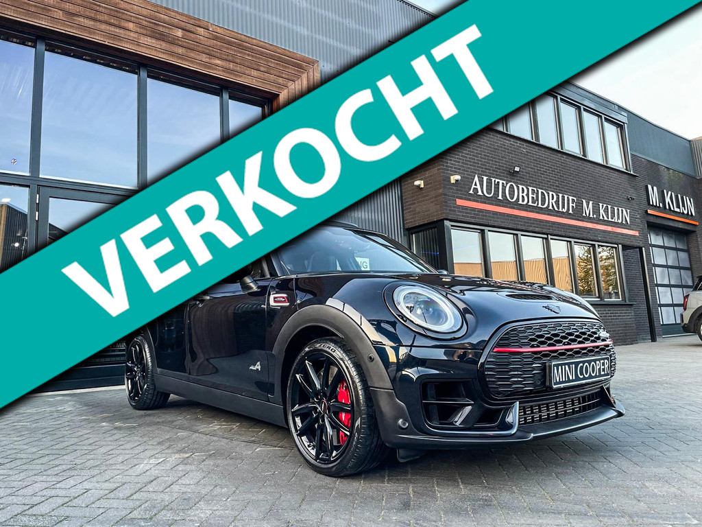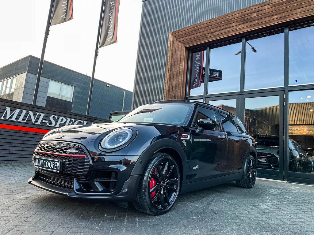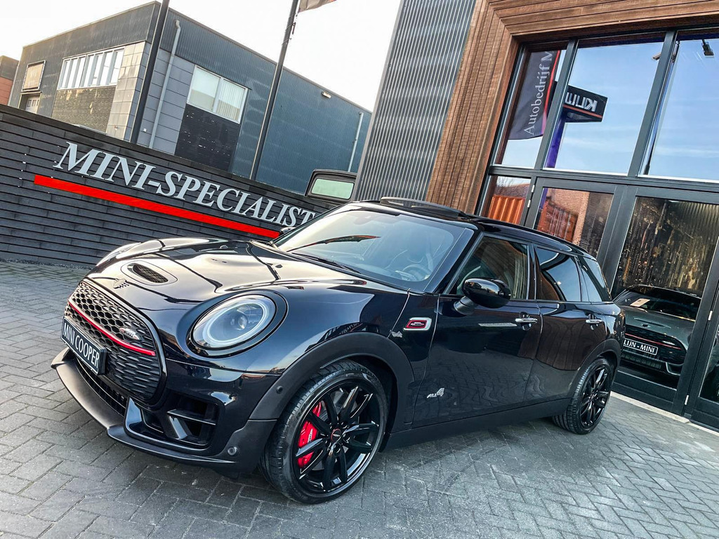 Zeer exclusieve facelift Mini Clubman John Cooper Works ALL4 F1 sportautomaat met een 306pk motor uitgevoerd in de prachtige kleur Enigmatic black metallic.Deze in werkelijk nieuwstaat verkerende Mini is uitgerust met alle maar dan ook alle denkbare opties oa:Climate control,leder/dinamica interieur,Jcw sportstoelen,stoelverwarming,virtual cockpit,breedbeeld dvd navigatie XL,Mini Connected XL,Harman Kardon soundsystem,head up display,adaptieve cruise control,keyless go,achteruitrijcamera,18" lichtmetalen velgen zwart,sportpakket,vierwielaandrijving,led verlichting,elektrisch bedienbare glazen panoramadak,5 persoons,privacyglass,lederen Jcw sportstuur met F1 flipperschakel,lichtpakket met Mini logo's,alarm,welcome pakket,parkeersensoren voor en achter,parkassist(auto parkeert zelf in),F1 schakel op stuur,actieve voetgangersbeveiliging,lc scherm,virtual cockpit,Mini driving modus,donker dakhemel,dakrailing zwart,mf stuur,Apple Carplay,dab radio,boordcomputer,blackline,verwarmde voorruit,regensensor,Union Jack achterlichten,vierwielaandrijving,armsteun,chili 2 pakket,alle boekjes+originele sleutels,1e eigenaar,62.000km origineel,Btw auto,nieuwprijs 72.800,-.Schitterende en unieke Mini Clubman Works in concoursstaat voor de echte liefhebber
