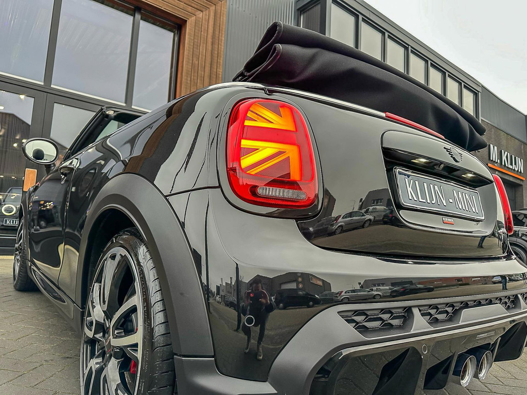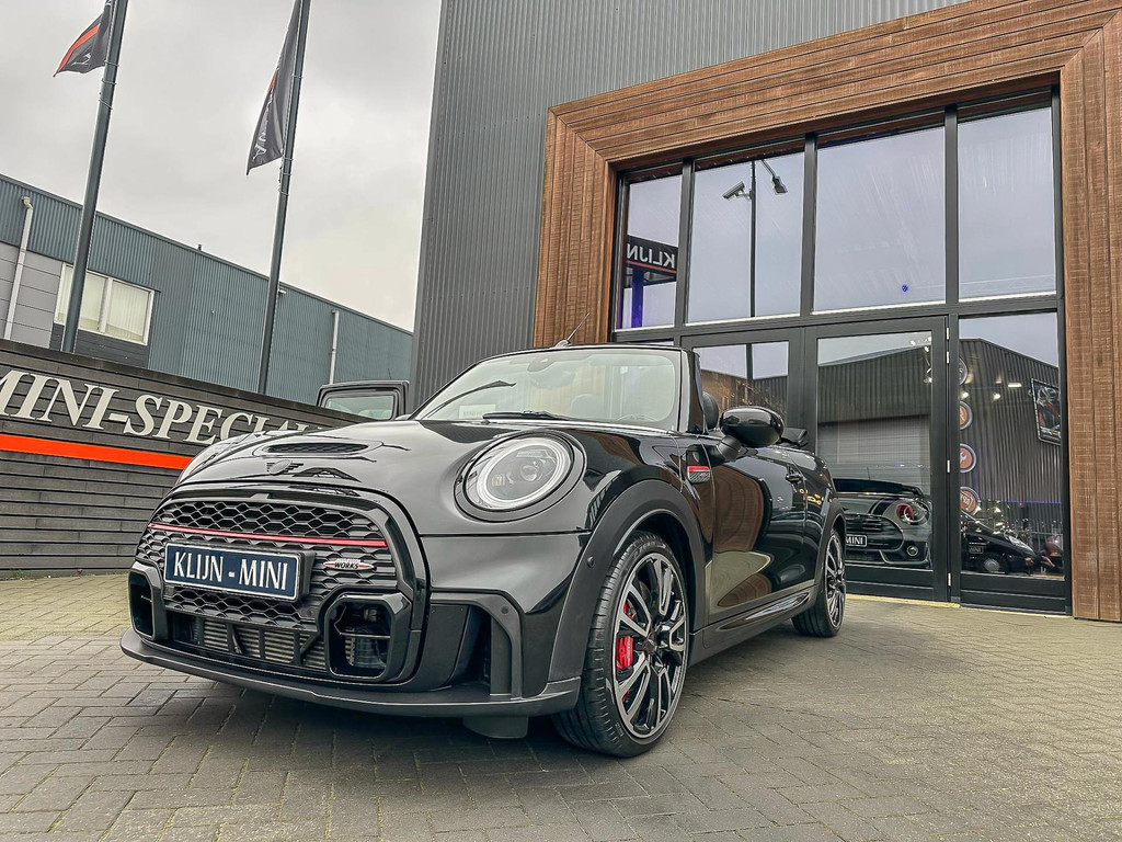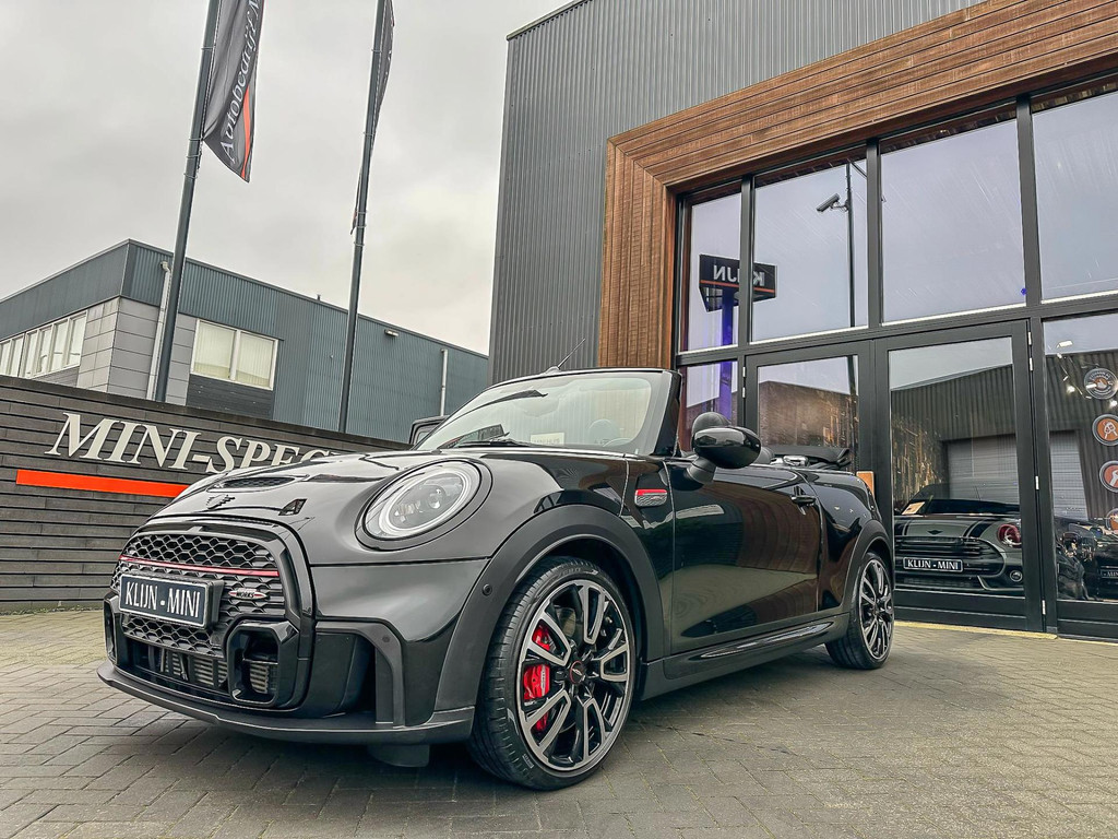 Unieke Mini John Cooper Works cabrio Blackline F1 sportautomaat met een 231pk motor in de prachtige kleur Midnightblack metallic.Deze schitterende Mini is uitgerust met alle maar dan ook alle denkbare opties:Climate control,vollederen interieur Yours lounge,sportstoelen,stoelverwarming,stuurverwarming,virtual cockpit,,breedbeeld navigatie,Mini connected XL,head up display,achteruitrijcamera,adaptieve cruise control,dab tuner,tel,usb,performence control,apple carplay,Mini driving modus,elektrische cabriokap,lederen Jcw sportstuur met flipperschakel,mf stuur,automatisch dimmende binnenspiegel, regensensor,verwarmde voorruit,facelift,blackline, voetgangersbeveiliging,dtc,elektrisch inklapbare spiegels, parkeersensoren voor en achter,parkassist(Mini parkeert zelf in),union Jack achterlichten,led koplampen met uitgebreide functies,digital cockpit,18 inch JCW Circuit Spoke velgen,lichtpakket met Mini logo's,gezichtspakket,chili 2 pakket,58.000km origineel,nieuwprijs 62.000euro.Prachtig uitgevoerde Mini Jcw in concoursstaat voor de echte liefhebber.