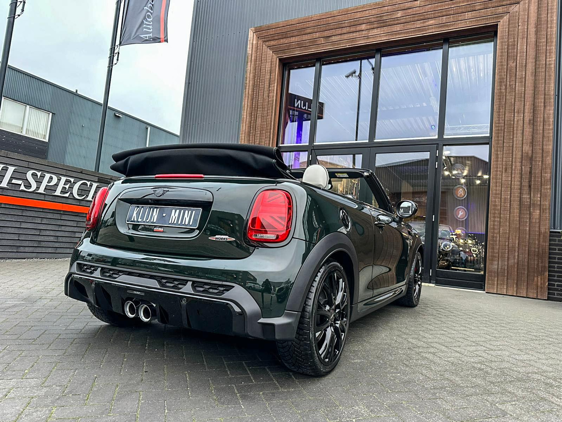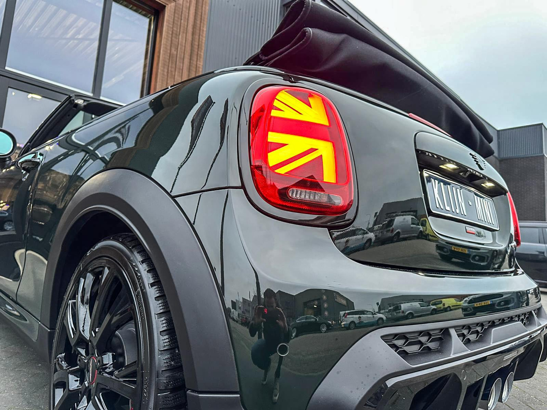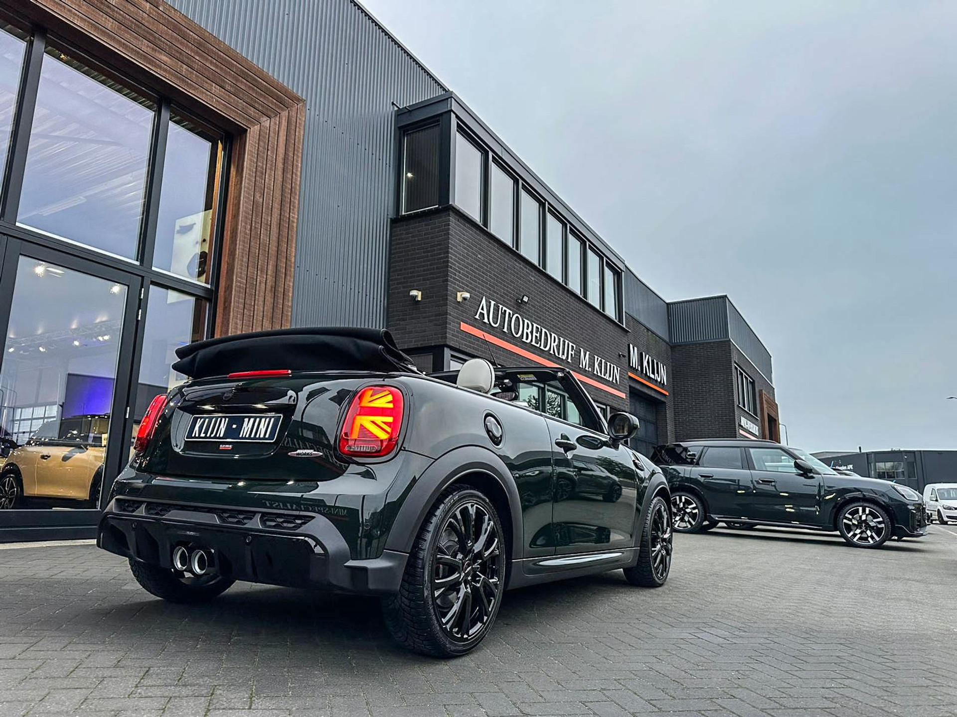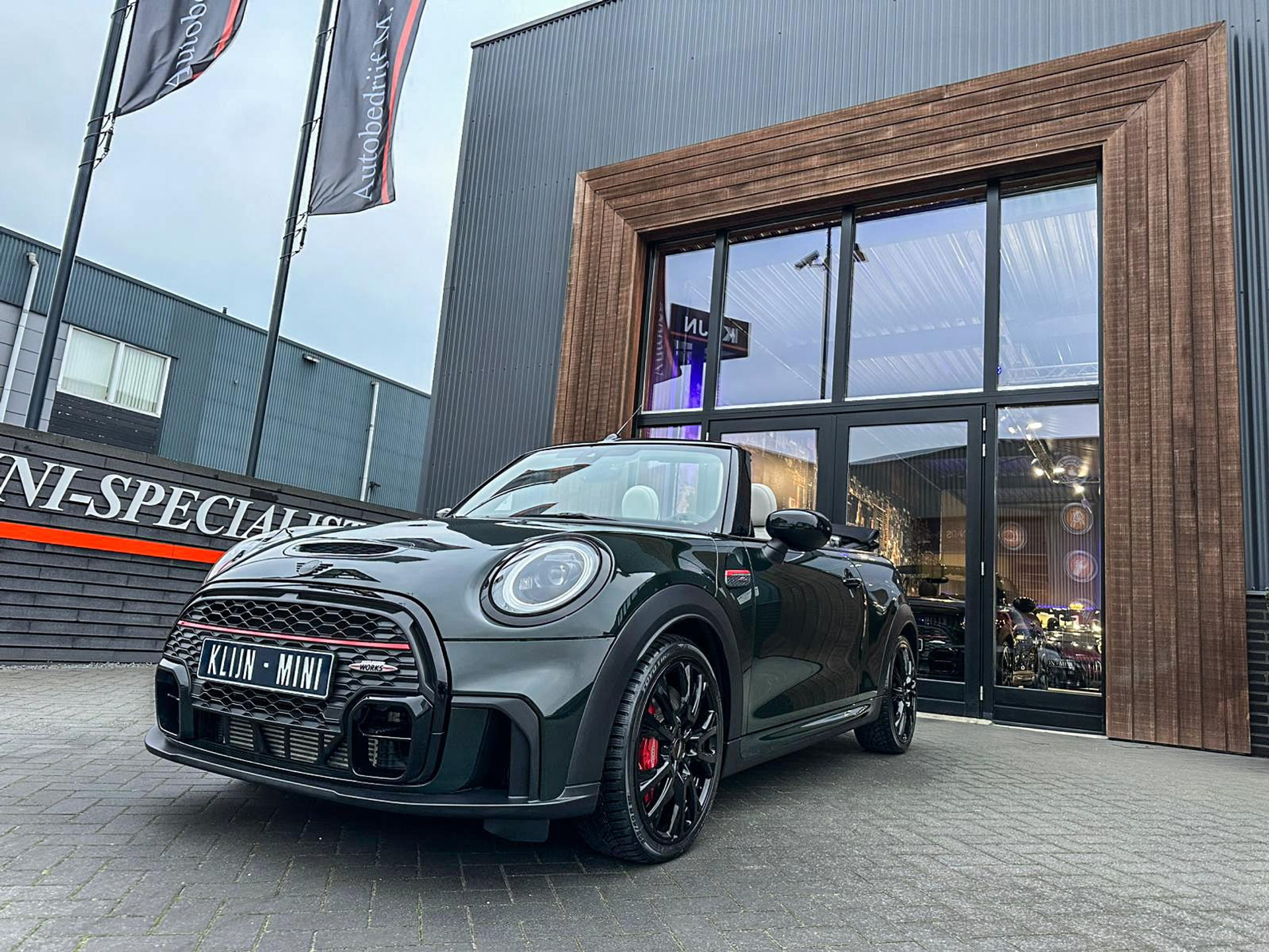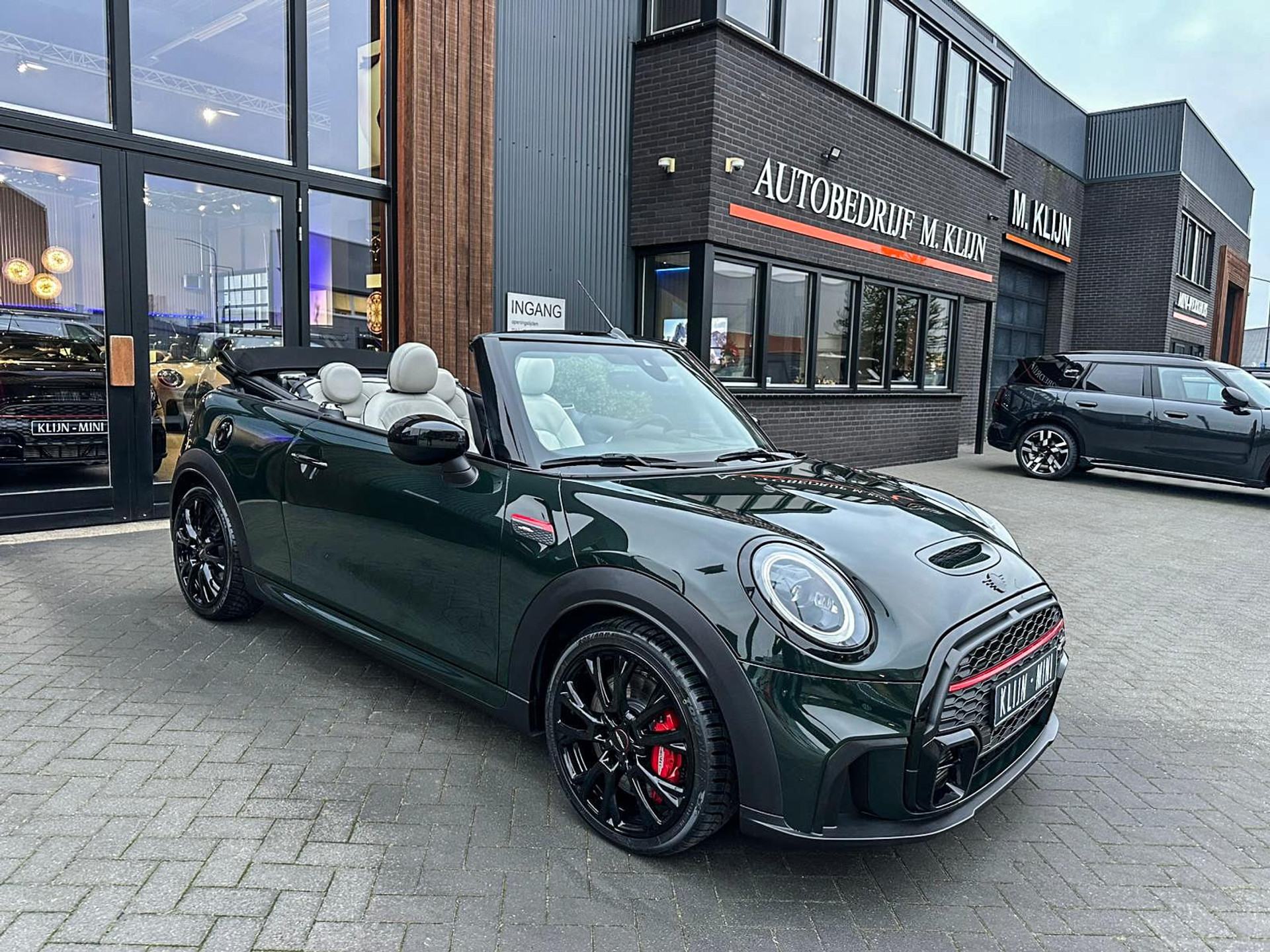Unieke Mini John Cooper Works cabrio Blackline F1 sportautomaat met een 231pk motor uitgevoerd in de prachtige kleurencombinatie van Rebelgreen en Chester Satelitte grey lederen interieur.Deze schitterende Mini is uitgerust met alle maar dan ook alle denkbare opties:Climate control,vollederen interieur chester Satelitte grey,sportstoelen,stoelverwarming,verwarmd stuurwiel,virtual cockpit,breedbeeld navigatie,Mini connected XL,achteruitrijcamera,dab tuner,head up display,Harman Kardon soundsystem,adaptieve cruise control,tel,usb,performence control,apple carplay,Mini driving modus,elektrische cabriokap,lederen Jcw sportstuur met flipperschakel,mf stuur,automatisch dimmende binnenspiegel,regensensor,verwarmde voorruit,facelift,full Black pack, voetgangersbeveiliging,dtc,elektrisch inklapbare spiegels, parkeersensoren,union Jack achterlichten,led koplampen met uitgebreide functies,18 inch JCW velgen circuit spoke,lichtpakket met Mini logo's,gezichtspakket,chili 2 pakket,22.000km origineel,Btw auto,nieuwprijs 63.000euro.Prachtig uitgevoerde Mini Jcw in concoursstaat voor de echte liefhebber.