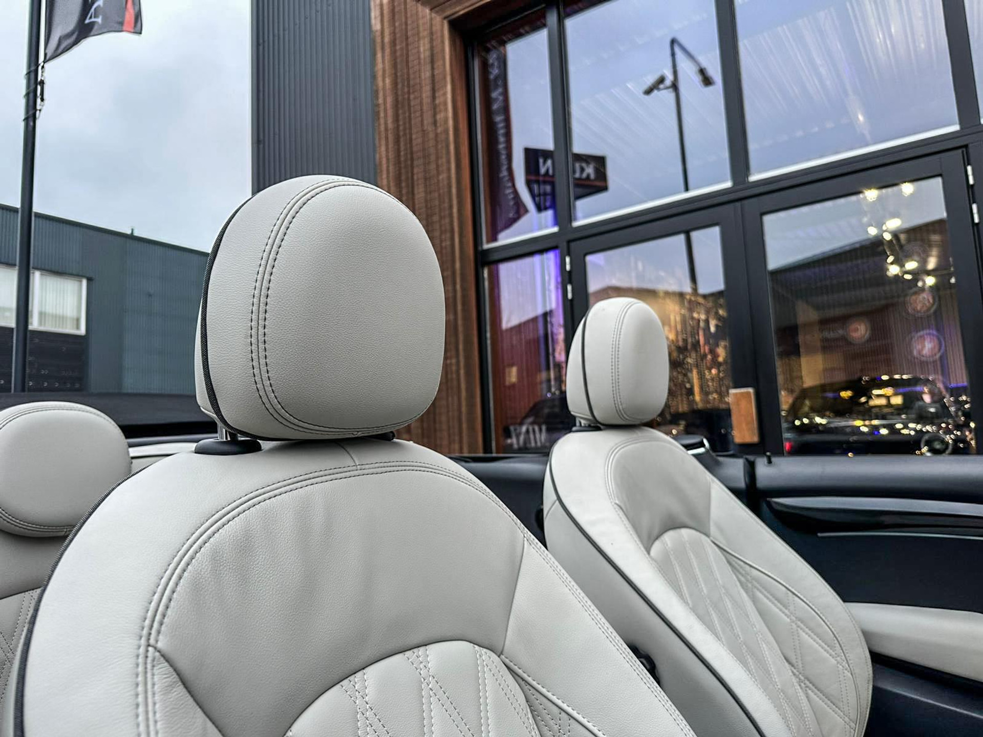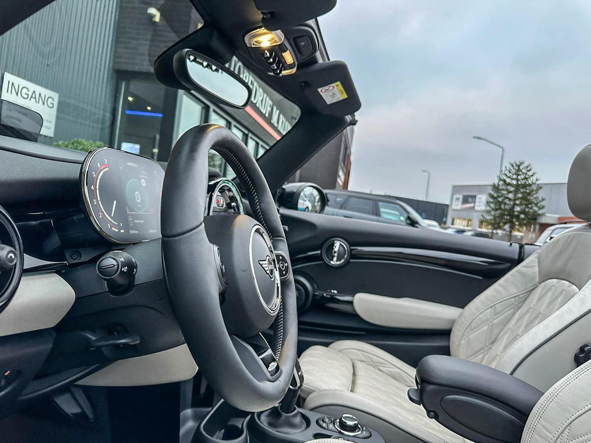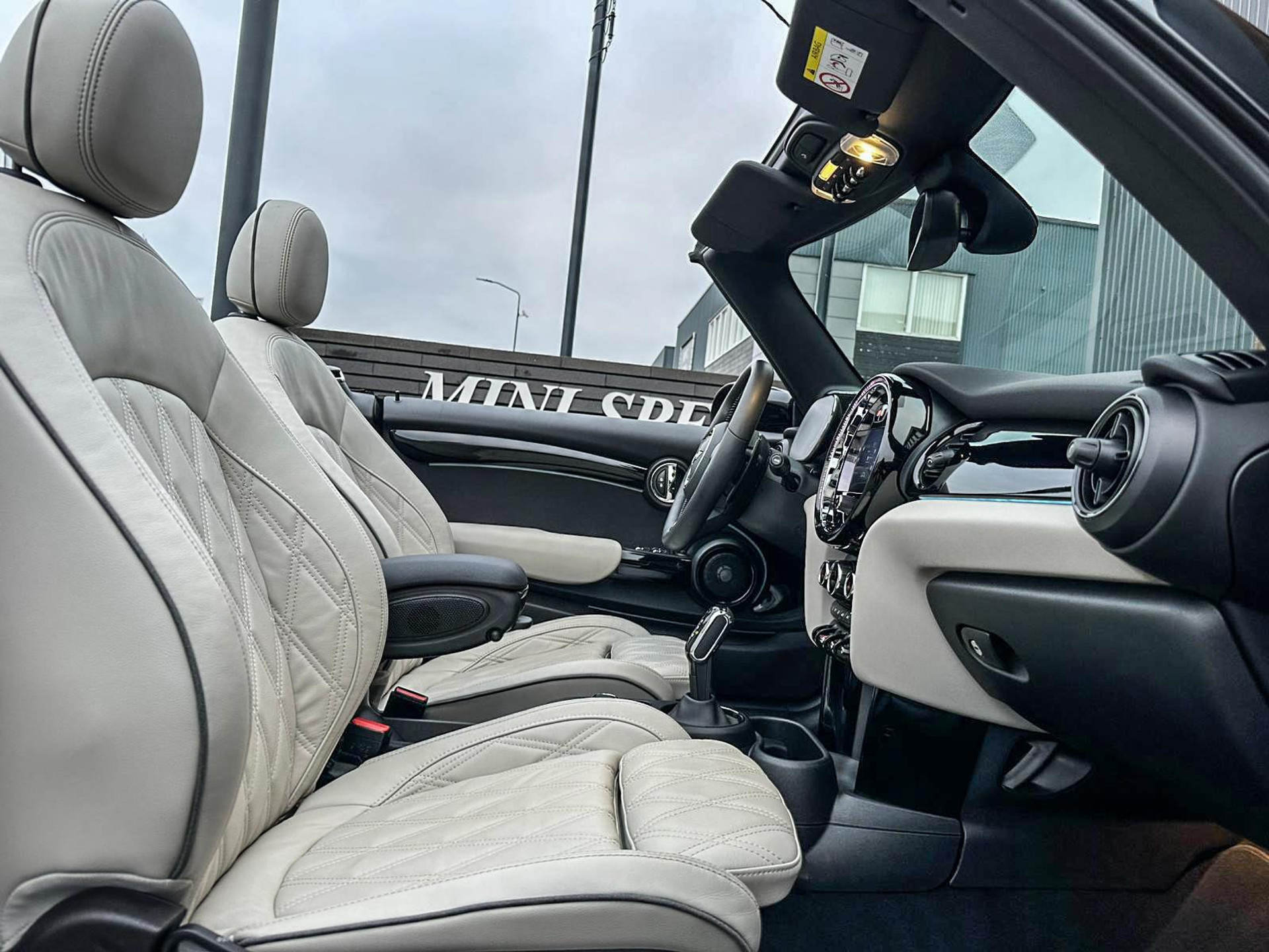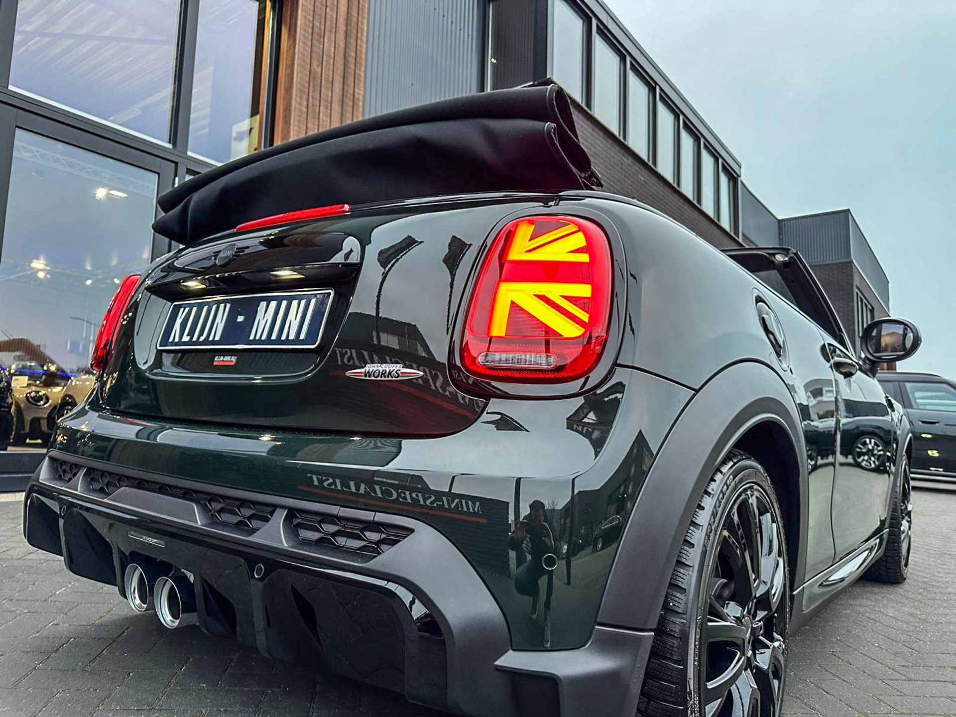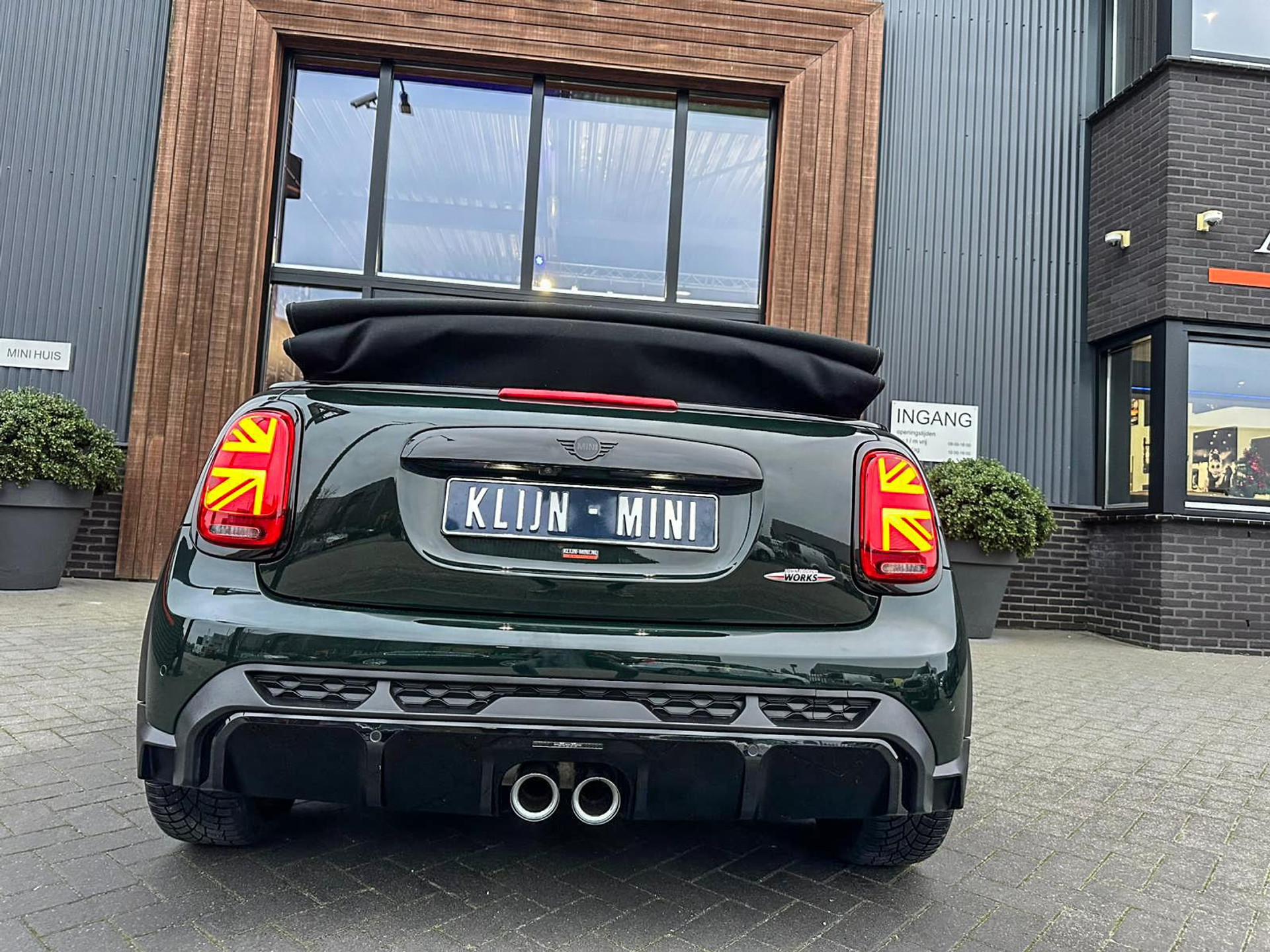 Unieke Mini John Cooper Works cabrio Blackline F1 sportautomaat met een 231pk motor uitgevoerd in de prachtige kleurencombinatie van Rebelgreen en Chester Satelitte grey lederen interieur.Deze schitterende Mini is uitgerust met alle maar dan ook alle denkbare opties:Climate control,vollederen interieur chester Satelitte grey,sportstoelen,stoelverwarming,verwarmd stuurwiel,virtual cockpit,breedbeeld navigatie,Mini connected XL,achteruitrijcamera,dab tuner,head up display,Harman Kardon soundsystem,adaptieve cruise control,tel,usb,performence control,apple carplay,Mini driving modus,elektrische cabriokap,lederen Jcw sportstuur met flipperschakel,mf stuur,automatisch dimmende binnenspiegel,regensensor,verwarmde voorruit,facelift,full Black pack, voetgangersbeveiliging,dtc,elektrisch inklapbare spiegels, parkeersensoren,union Jack achterlichten,led koplampen met uitgebreide functies,18 inch JCW velgen circuit spoke,lichtpakket met Mini logo's,gezichtspakket,chili 2 pakket,22.000km origineel,Btw auto,nieuwprijs 63.000euro.Prachtig uitgevoerde Mini Jcw in concoursstaat voor de echte liefhebber.