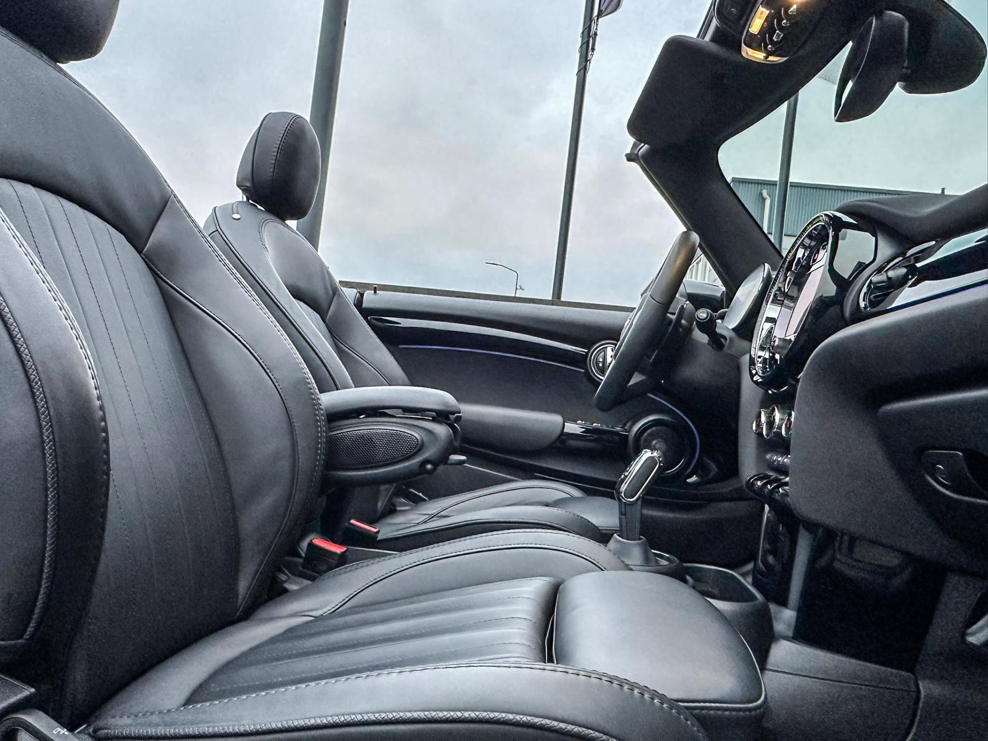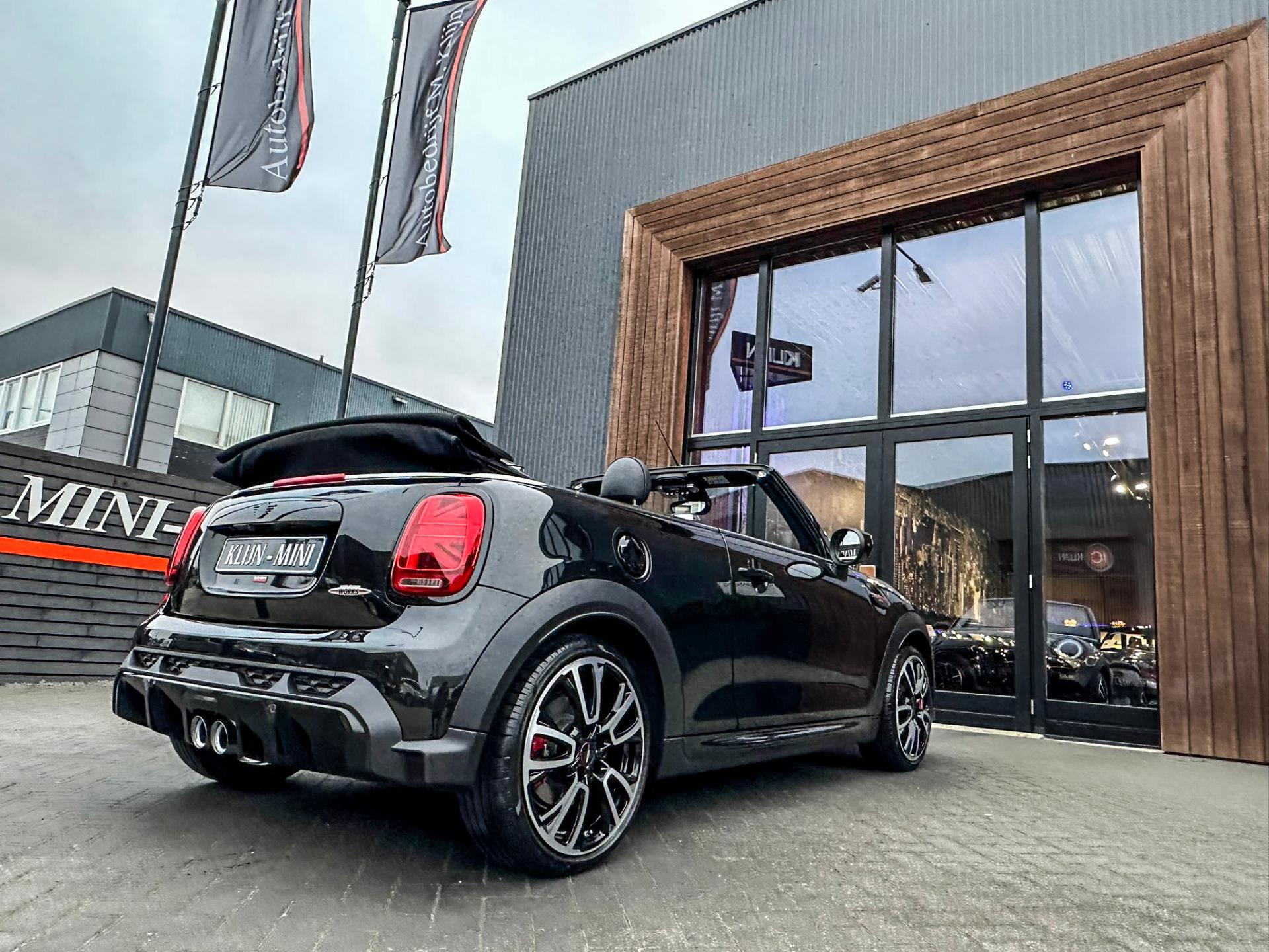 Unieke Mini John Cooper Works cabrio Blackline F1 sportautomaat met een 231pk motor in de prachtige kleur Midnightblack black metallic.Deze schitterende Mini is uitgerust met alle maar dan ook alle denkbare opties:Climate control,vollederen interieur Yours lounge,sportstoelen,stoelverwarming,stuurwiel verwarmd,digitaal dashbord,breedbeeld navigatie,Mini connected XL,head up display,Harman Kardon soundsystem,achteruitrijcamera,adaptieve cruise control,dab tuner,tel,usb,performence control,apple carplay,Mini driving modus,elektrische cabriokap,lederen Jcw sportstuur met flipperschakel,mf stuur,automatisch dimmende binnenspiegel, regensensor,verwarmde voorruit,facelift,full blackpack, voetgangersbeveiliging,dtc,elektrisch inklapbare spiegels, parkeersensoren voor en achter,parkassist(Mini parkeert zelf in),union Jack achterlichten,led koplampen met uitgebreide functies,18 inch JCW velgen circuit spoke,lichtpakket met Mini logo's,actieve cruise control,gezichtspakket,chili 2 pakket,19.000km origineel,nieuwprijs 63.000euro.Prachtig uitgevoerde Mini Jcw in concoursstaat voor de echte liefhebber.