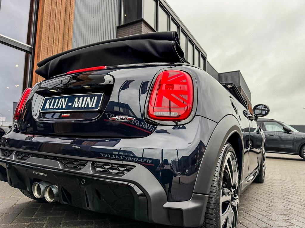 Unieke Mini John Cooper Works cabrio Blackline F1 sportautomaat met een 231pk motor in de prachtige kleur Enigmatic black black metallic .Deze schitterende Mini is uitgerust met alle maar dan ook alle denkbare opties:Climate control,vollederen interieur Yours lounge,sportstoelen,stoelverwarming,stuurwiel verwarmd,digitaal dashbord,breedbeeld navigatie,Mini connected XL,head up display,Harman Kardon soundsystem,achteruitrijcamera,adaptieve cruise control,dab tuner,tel,usb,performence control,apple carplay,Mini driving modus,elektrische cabriokap,lederen Jcw sportstuur met F1 flipperschakel,mf stuur,automatisch dimmende binnenspiegel, regensensor,facelift,full black pack, voetgangersbeveiliging,dtc,elektrisch inklapbare spiegels, parkeersensoren voor en achter,parkassist(Mini parkeert zelf in),union Jack achterlichten,led koplampen met uitgebreide functies,18 inch JCW velgen circuit spoke,lichtpakket met Mini logo's,actieve cruise control,gezichtspakket,chili 2 pakket,36.000km origineel,nieuwprijs 63.000euro.Prachtig uitgevoerde Mini Jcw in concoursstaat voor de echte liefhebber.