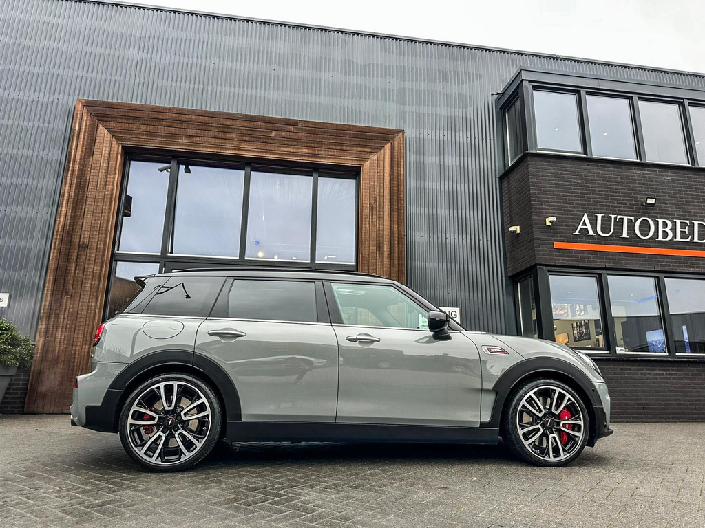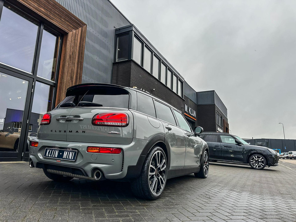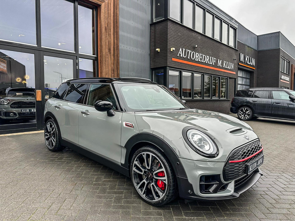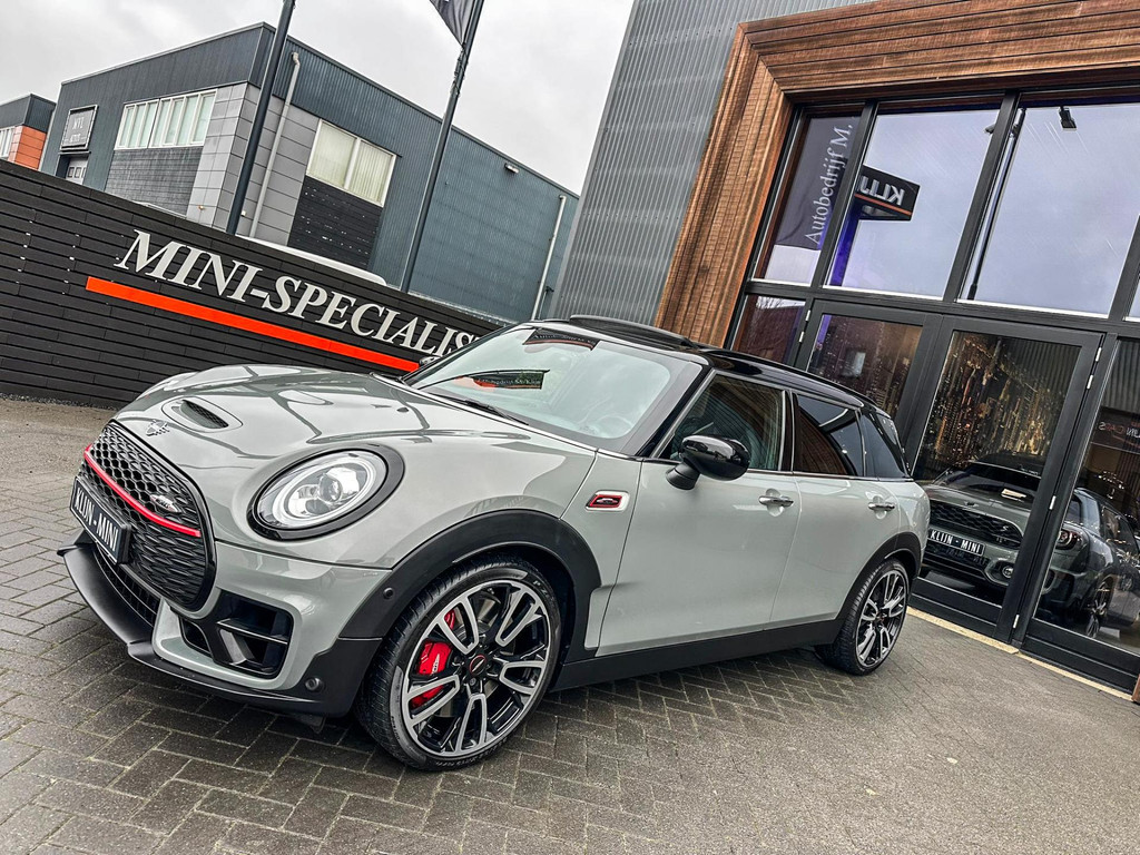 Unieke Mini Clubman John Cooper Works ALL4 F1 sportautomaat met een 306pk motor uitgevoerd in de prachtige kleur Moonwalkgrey(Nardo) metallic.Deze in werkelijk nieuwstaat verkerende Mini is uitgerust met alle maar dan ook alle denkbare opties oa:Climate control,lederen/dinamica Jcw interieur,sportstoelen,stoelverwarming,classic display km(op wens aan te vragen optie bij model 2021)breedbeeld navigatie XL,Mini Connected XL,Head up display,achteruitrijcamera,Harman Kardon soundsystem,keyless go,19” Jcw spoke velgen,sportpakket,vierwielaandrijving,led verlichting,elektrisch bedienbare glazen panoramadak,5 persoons,privacyglass,adaptieve cruise control,lederen Jcw sportstuur met F1 flipperschakel,lichtpakket met Mini logo's,welcome pakket,parkeersensoren voor en achter,parkassist(auto parkeert zelf in),F1 schakel op stuur,actieve voetgangersbeveiliging,dakrailing zwart,lc scherm,Mini driving modus,donker dakhemel,mf stuur,Apple Carplay,dab radio,boordcomputer,blackline,regensensor,verwarmde voorruit,Union Jack achterlichten,vierwielaandrijving,armsteun,chili 2 pakket,alle boekjes+originele sleutels,1e eigenaar,41.000km,nieuwprijs 71.500,-.Schitterende en unieke Mini Clubman Works in concoursstaat voor de echte liefhebber