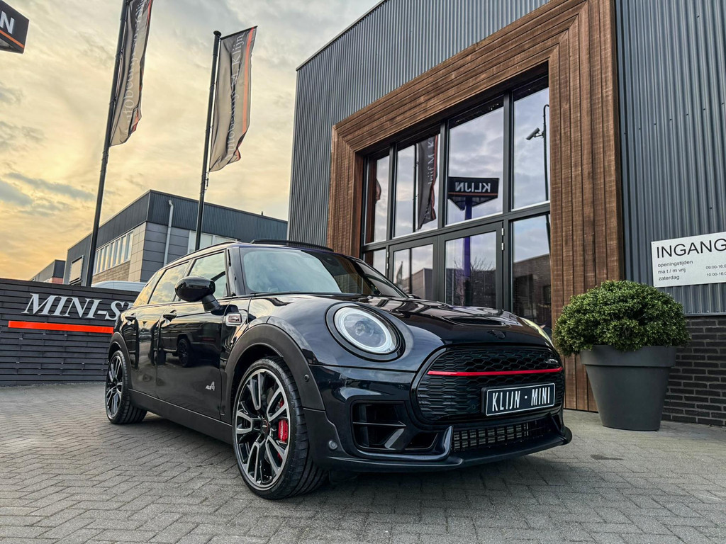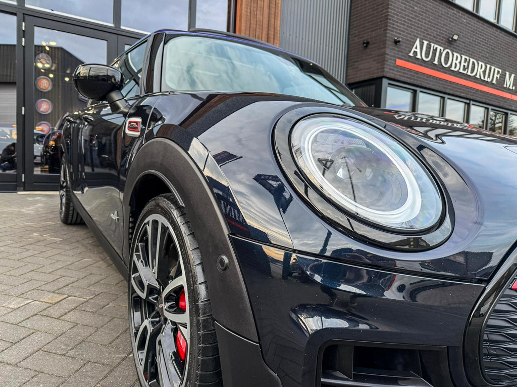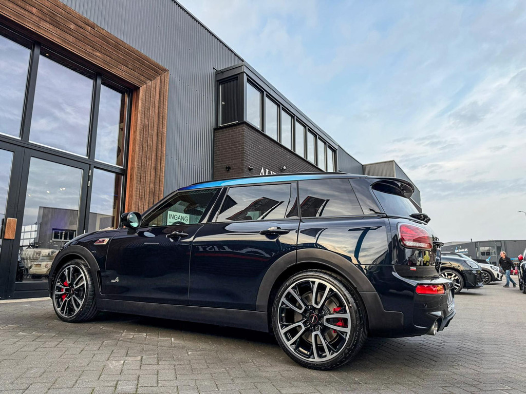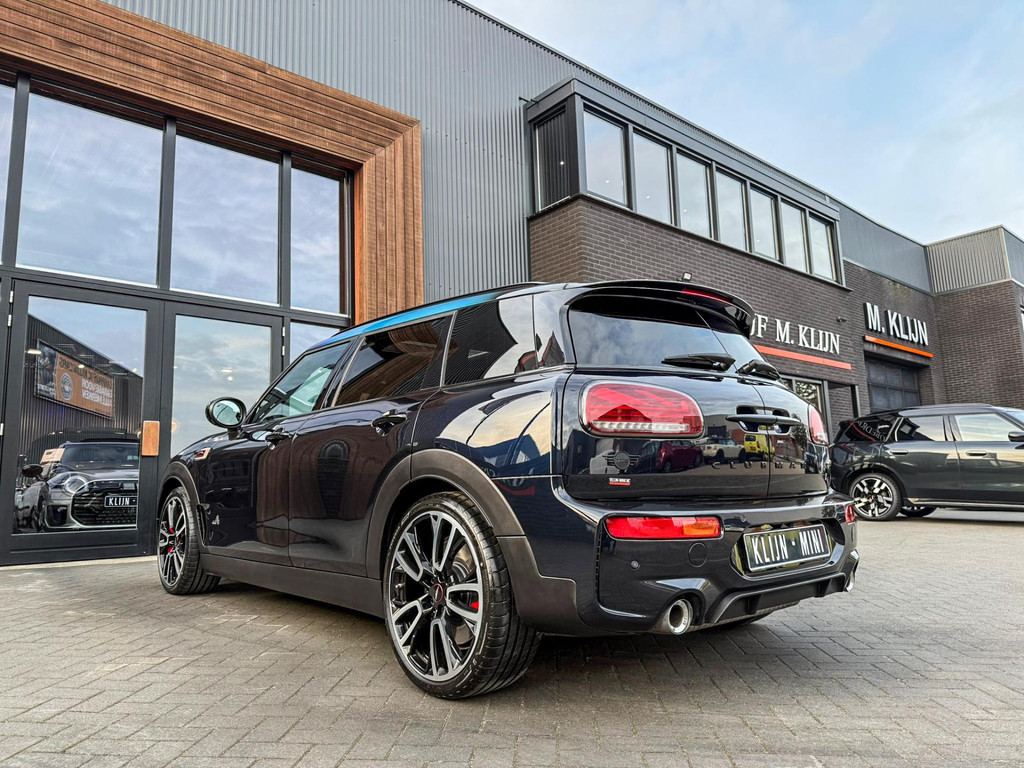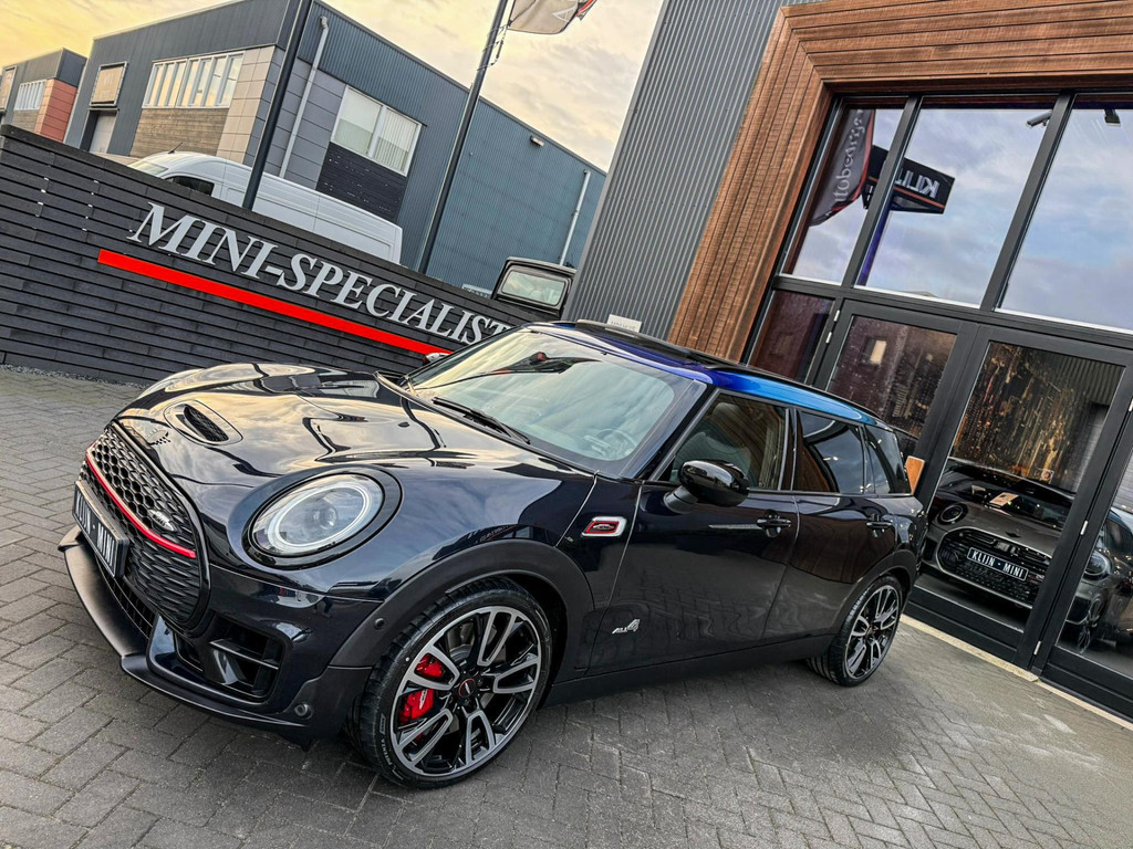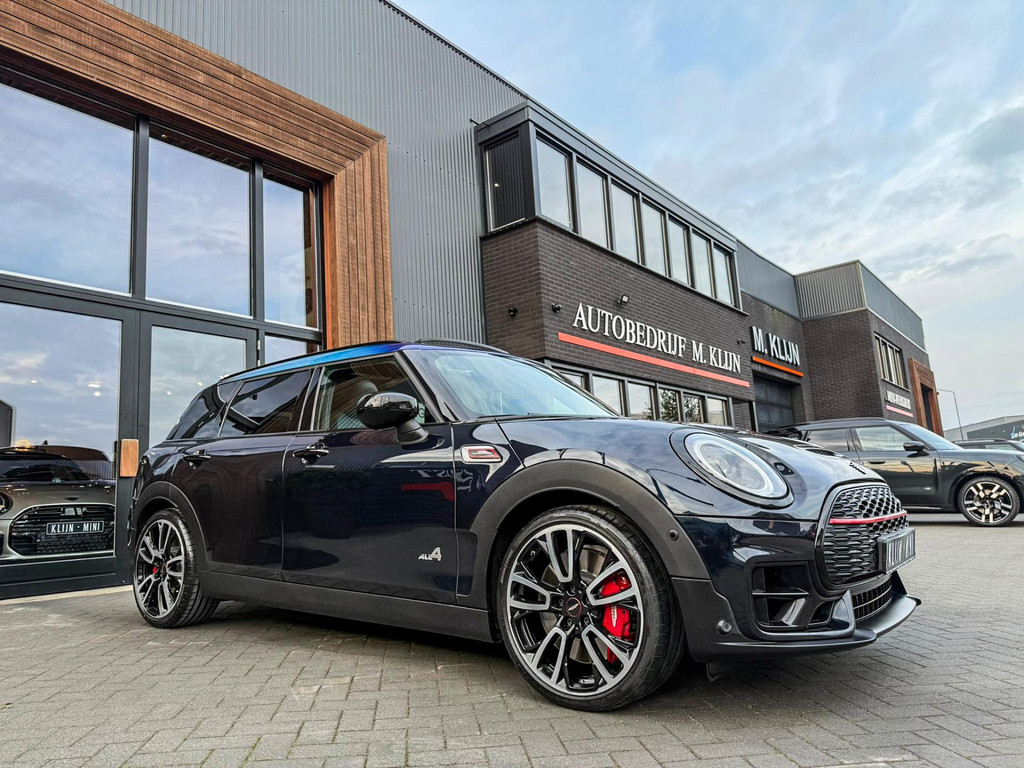 Zeer exclusieve facelift(nieuwste model) Mini Clubman John Cooper Works ALL4 F1 sportautomaat met een 306pk motor uitgevoerd in de prachtige kleur Enigmatic black.Deze in werkelijk nieuwstaat verkerende Mini is voorzien van een multitone dak vanaf fabriek en uitgerust met alle denkbare opties oa:Climate control,vollederen interieur Carbon Black,sportstoelen, stoelverwarming,verwarmd stuurwiel,virtual cockpit,breedbeeld dvd navigatie XL,Mini Connected XL,keyless go,achteruitrijcamera,19” Jcw cup velgen,head up display,Harman Kardon soundsystem,sportpakket,vierwielaandrijving,led verlichting,elektrisch bedienbare glazen panoramadak,5 persoons,privacyglass,multitone dak origineel vanaf fabriek,lederen Jcw sportstuur met F1 flipperschakel,lichtpakket met Mini logo's,welcome pakket,parkeersensoren voor en achter,parkassist(auto parkeert zelf in),F1 schakel op stuur,actieve voetgangersbeveiliging,dakrailing zwart,lc scherm,Mini driving modus,donker dakhemel,mf stuur,Apple Carplay,dab radio,boordcomputer,blackline,nieuw model,regensensor,verwarmde voorruit,Union Jack achterlichten,vierwielaandrijving,armsteun,chili 2 pakket,alle boekjes+originele sleutels,1e eigenaar,58.000km origineel,Btw auto,nieuwprijs 72.200,-.Schitterende en unieke Mini Clubman Works in concoursstaat voor de echte liefhebber.
