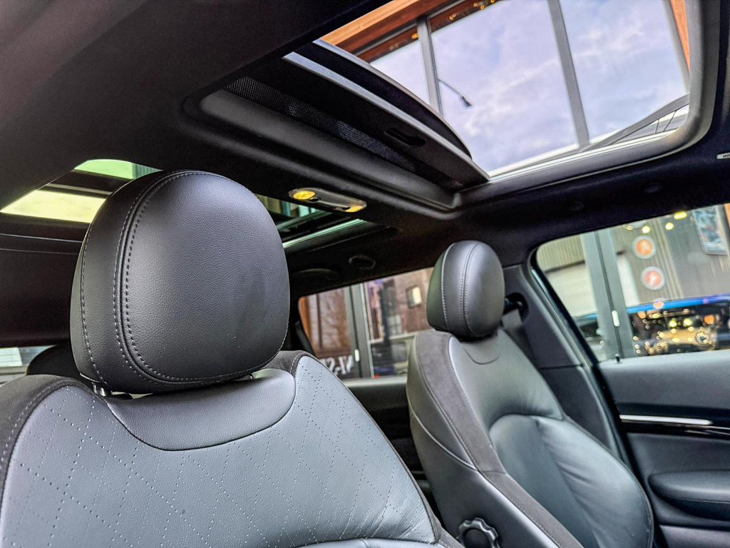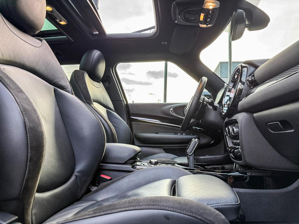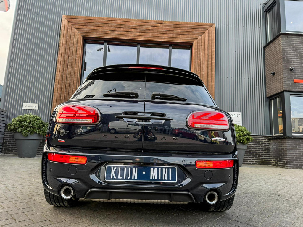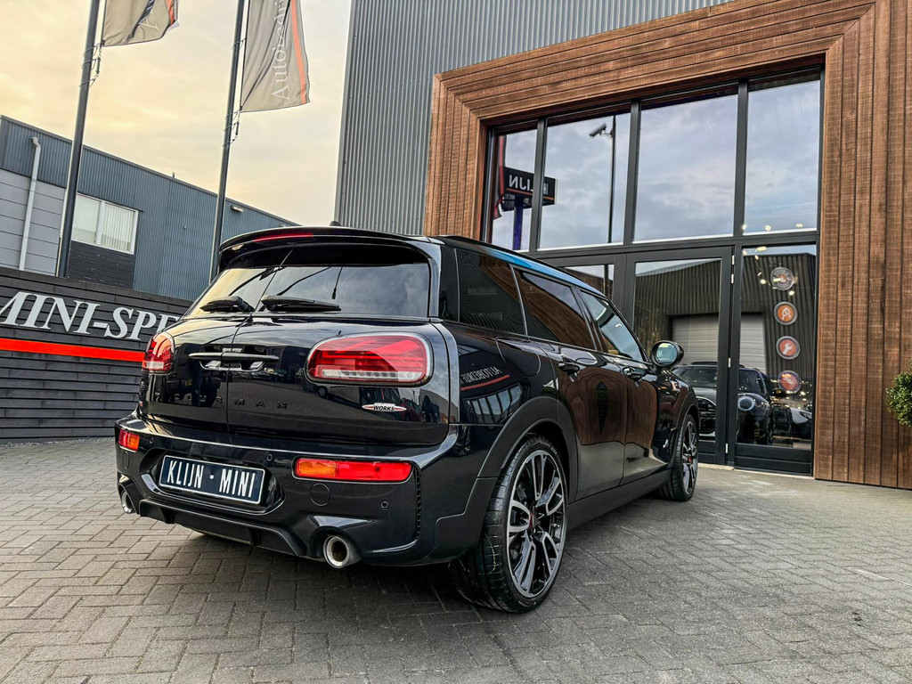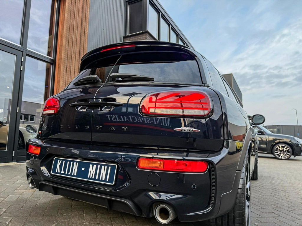 Zeer exclusieve facelift(nieuwste model) Mini Clubman John Cooper Works ALL4 F1 sportautomaat met een 306pk motor uitgevoerd in de prachtige kleur Enigmatic black.Deze in werkelijk nieuwstaat verkerende Mini is voorzien van een multitone dak vanaf fabriek en uitgerust met alle denkbare opties oa:Climate control,vollederen interieur Carbon Black,sportstoelen, stoelverwarming,verwarmd stuurwiel,virtual cockpit,breedbeeld dvd navigatie XL,Mini Connected XL,keyless go,achteruitrijcamera,19” Jcw cup velgen,head up display,Harman Kardon soundsystem,sportpakket,vierwielaandrijving,led verlichting,elektrisch bedienbare glazen panoramadak,5 persoons,privacyglass,multitone dak origineel vanaf fabriek,lederen Jcw sportstuur met F1 flipperschakel,lichtpakket met Mini logo's,welcome pakket,parkeersensoren voor en achter,parkassist(auto parkeert zelf in),F1 schakel op stuur,actieve voetgangersbeveiliging,dakrailing zwart,lc scherm,Mini driving modus,donker dakhemel,mf stuur,Apple Carplay,dab radio,boordcomputer,blackline,nieuw model,regensensor,verwarmde voorruit,Union Jack achterlichten,vierwielaandrijving,armsteun,chili 2 pakket,alle boekjes+originele sleutels,1e eigenaar,58.000km origineel,Btw auto,nieuwprijs 72.200,-.Schitterende en unieke Mini Clubman Works in concoursstaat voor de echte liefhebber.