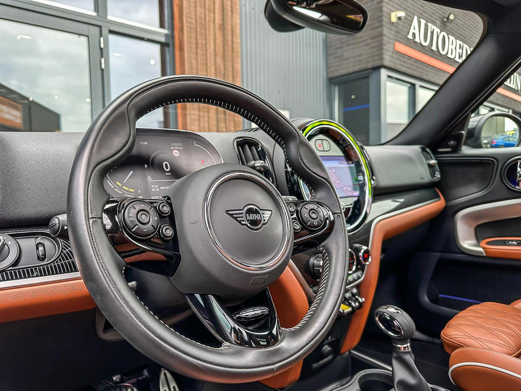 Zeer exclusieve Mini Countryman Se John Cooper Works hybrid ALL4 automaat met een 220pk elektro/benzine motor uitgevoerd in een prachtige kleurencombinatie van Thundergrey metallic en Chester malt brown leder.Deze in werkelijk nieuwstaat verkerende Mini is uitgerust met alle maar dan ook alle denkbare opties oa:Climate control,vollederen interieur Chester malt brown,stoelverwarming,sportstoelen,virtual cockpit,breedbeeld dvd navigatie XL,Mini Connected XL,Harman Kardon soundsystem,keyless go,achteruitrijcamera,adaptieve cruise control,19” Jcw circuit spoke velgen,vierwielaandrijving,John Cooper Works sportpakket,led verlichting,elektrisch bedienbare glazen panoramadak,5 persoons,privacyglass,parkassist(auto parkeert zelf in)lederen Jcw Yours sporstuur,lichtpakket met Mini logo's,welcome pakket,parkeersensoren voor en achter,dakrailing zwart,full black pack,actieve voetgangersbeveiliging,active cruise control,Mini driving modus,Union Jack achterlichten,donker dakhemel,mf stuur,boordcomputer,apple carplay,elektrische kofferbaksluiting,dab radio,regensensor,verwarmde voorruit,faceliftmodel,vierwielaandrijving,armsteun,chili 2 pakket,alle boekjes+originele sleutels,1e eigenaar,62.000km origineel,nieuwprijs 60.400.-.Schitterende Mini Countryman SE Hybrid in concoursstaat voor de echte liefhebber.
