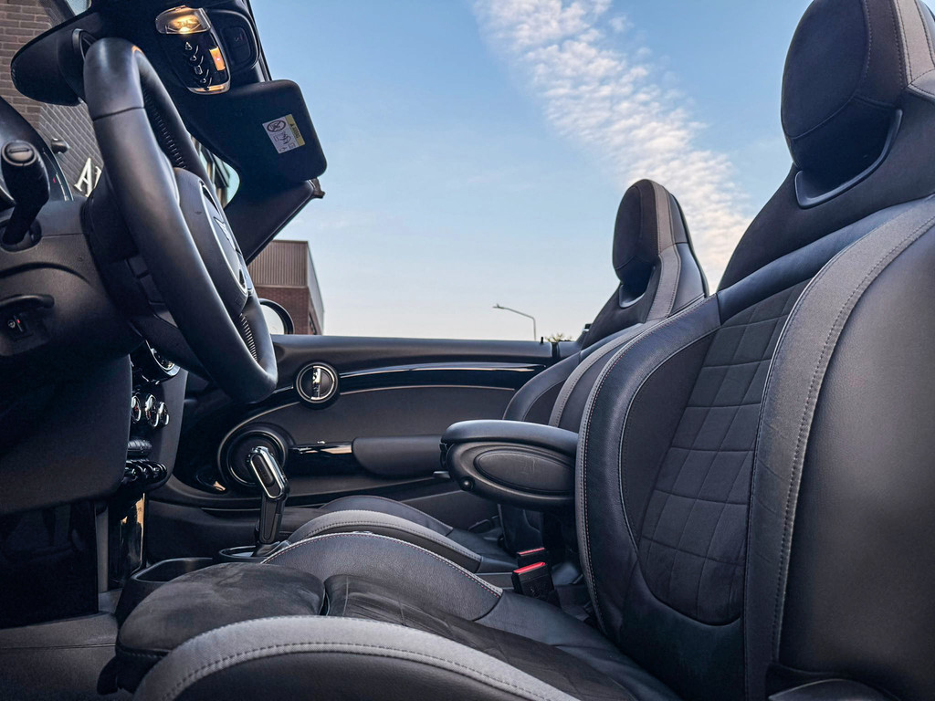 Unieke facelift Mini Cooper S John Cooper Works cabrio automaat met een 178pk motor in de prachtige kleur Rooftop grey metallic.Deze schitterende Mini is uitgerust met alle denkbare opties:Climate control,leder/dinamica Jcw stoelen,sportstoelen,stoelverwarming,verwarmd stuurwiel,virtual cockpit,breedbeeld navigatie,Mini connected XL,achteruitrijcamera,dab tuner,tel,usb,performence control,Jcw sportpakket,Head up display,apple carplay,Mini driving modus,elektrische cabriokap,adaptieve cruise control,lederen Jcw sportstuur,mf stuur,automatisch dimmende binnenspiegel, regensensor,voetgangersbeveiliging,elektrisch inklapbare spiegels, parkeersensoren voor en achter,parkassist(Mini parkeert zelf in),blackline,union Jack achterlichten,led koplampen met uitgebreide functies,18" Jcw circuit spoke velgen,lichtpakket met Mini logo's,actieve cruise control,gezichtspakket,chili 2 pakket,47.000km origineel,12 maanden garantie,nieuwprijs 54.700euro.Prachtig uitgevoerde Mini Cooper S in concoursstaat voor de echte liefhebber.