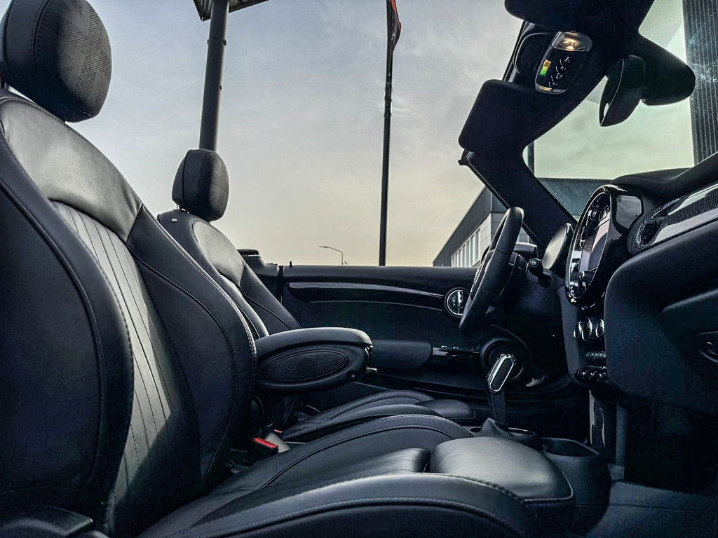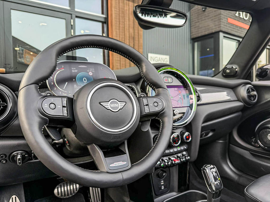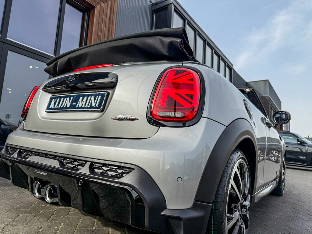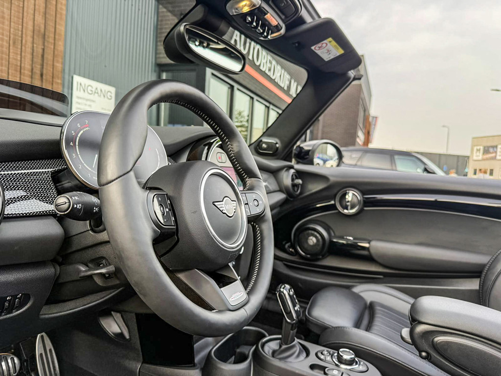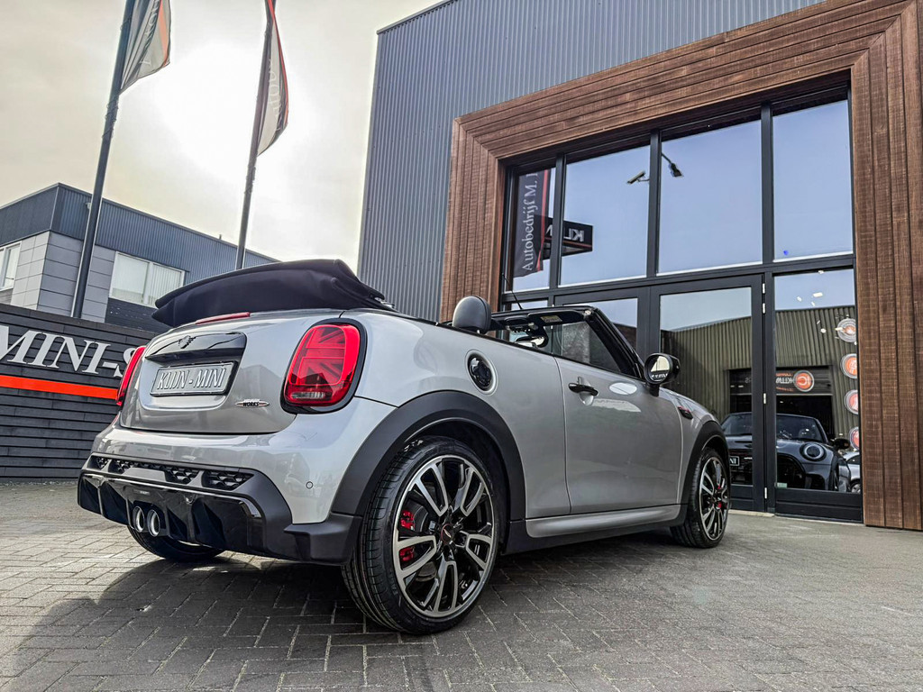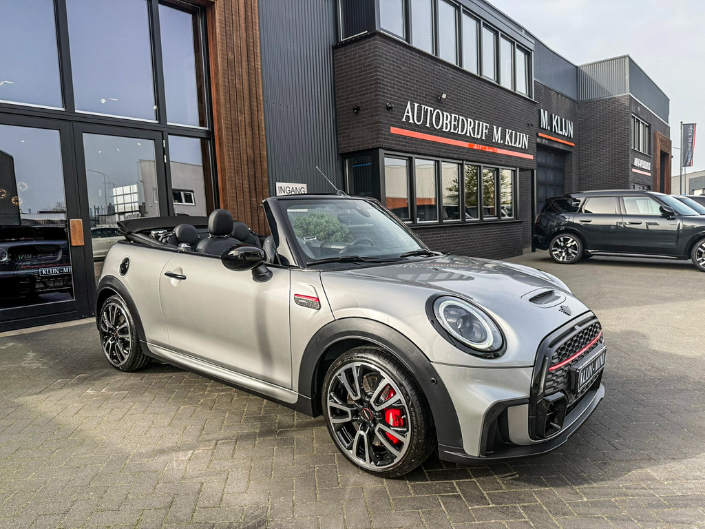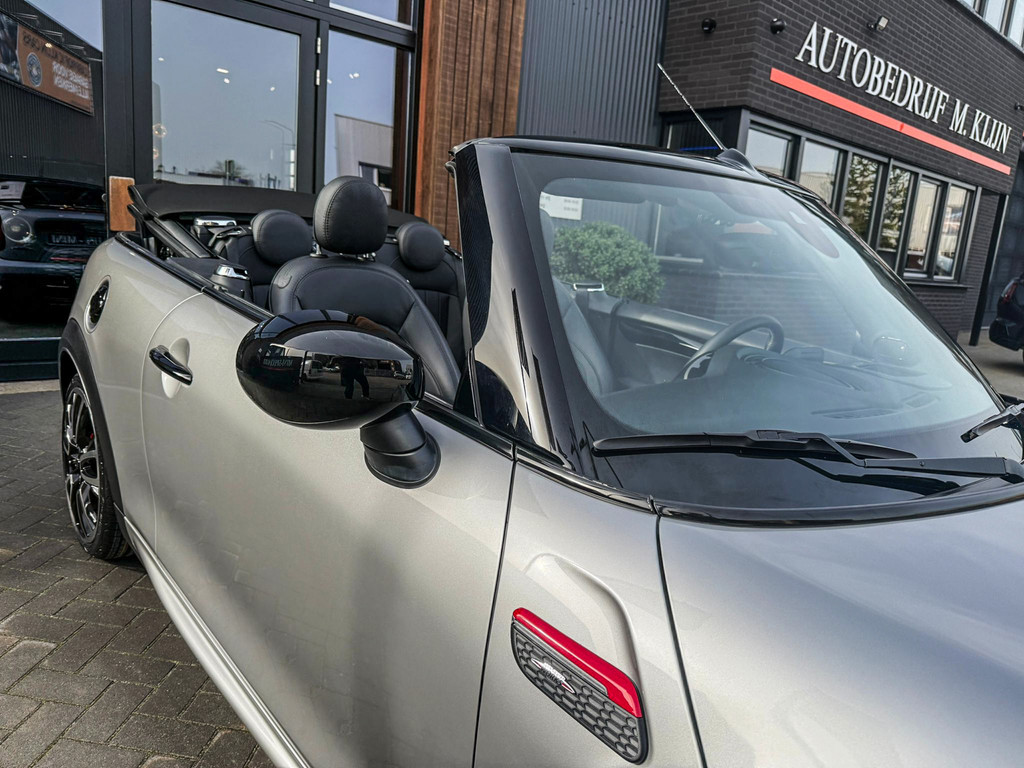 Schitterende en unieke Mini John Cooper Works Blackline cabriolet F1 sportautomaat met een 231pk motor uitgevoerd in de prachtige kleur Meltingsilver 2.Deze schitterende Mini is uitgerust met alle maar dan ook alle denkbare opties:Climate control,vollederen interieur Yours lounge,stoelverwarming,verwarmd stuurwiel,virtual cockpit,breedbeeld navigatie,Mini connected XL,achteruitrijcamera,dab tuner,head up display,Harman Kardon soundsystem,tel,usb,performence control,apple carplay,Mini driving modus,elektrisch cabriokap,lederen Jcw sportstuur met flipperschakel,mf stuur,automatisch dimmende binnenspiegel,regensensor,verwarmde voorruit,adaptieve cruise control,facelift,blackline,voetgangersbeveiliging,dtc,elektrisch inklapbare spiegels, parkeersensoren voor en achter,voetgangersbeveiliging,parkassist(Mini parkeert zelf in),union Jack achterlichten,led koplampen met uitgebreide functies,18 inch JCW circuit spoke velgen,lichtpakket met Mini logo's,gezichtspakket,chili 2 pakket,47.000km origineel,nieuwprijs 63.000euro.Prachtig uitgevoerde Mini Jcw in concoursstaat voor de echte liefhebber.