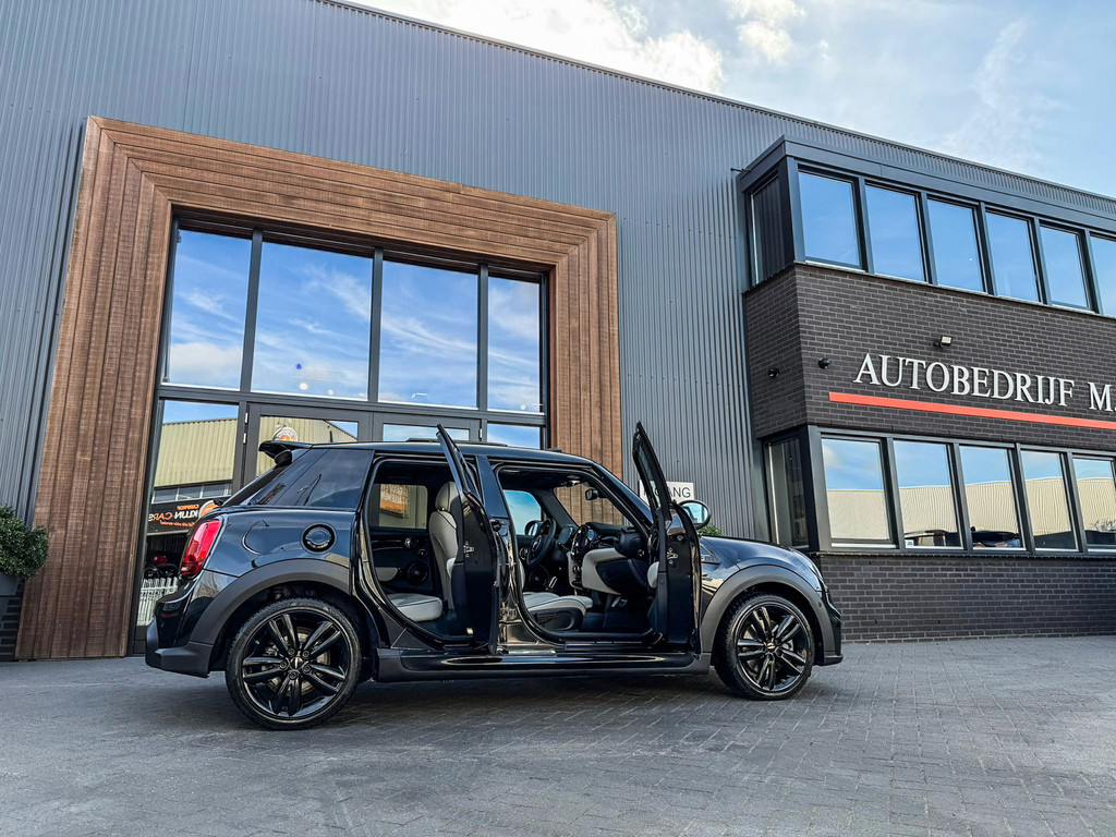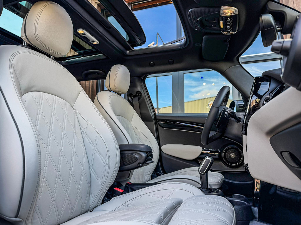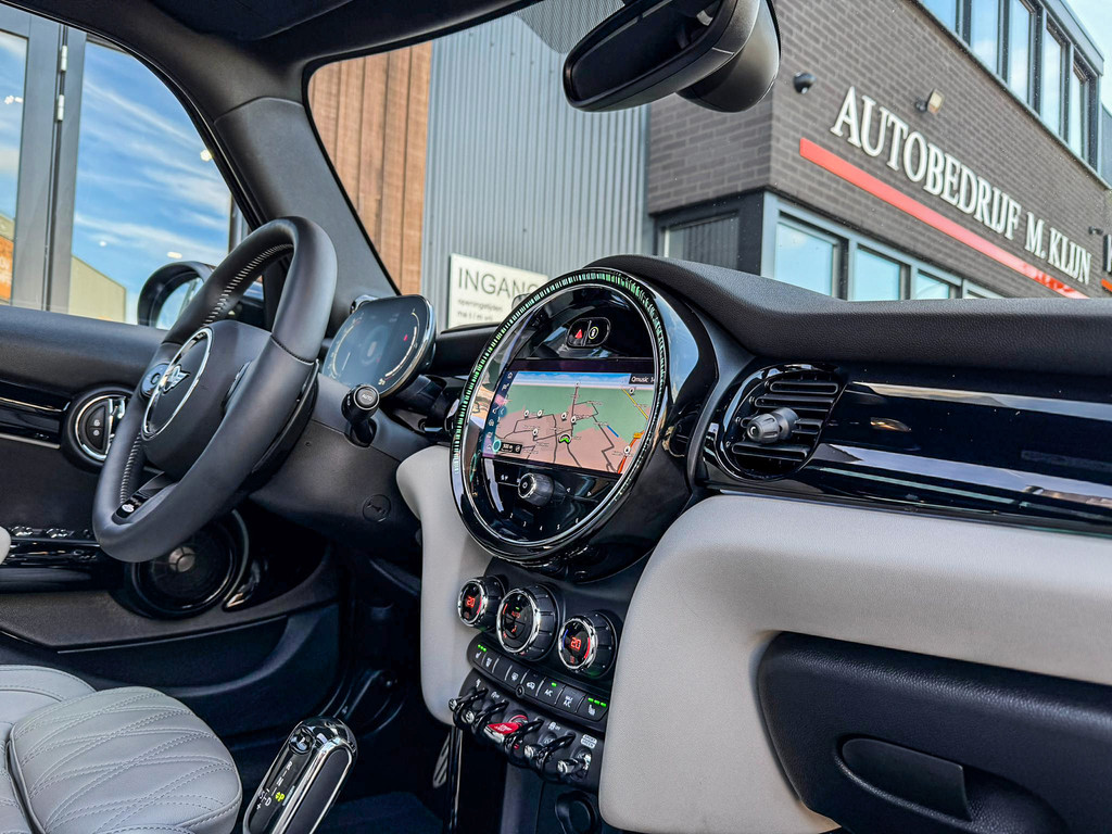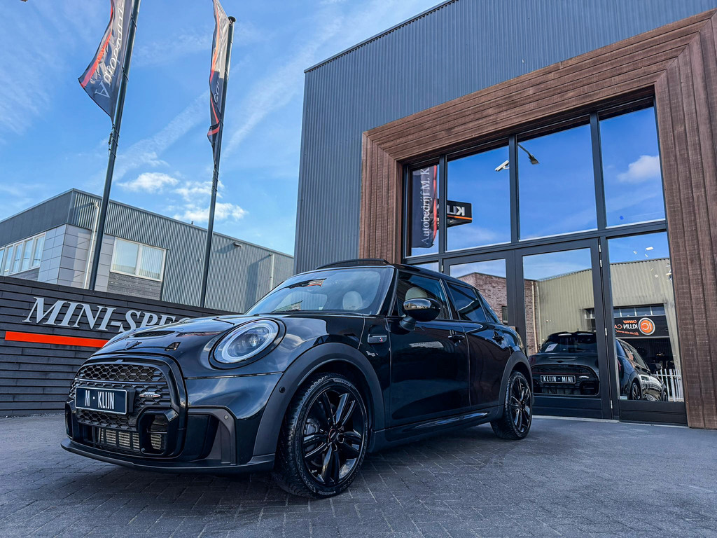 Unieke Mini Cooper S John Cooper Works 5drs F1 sportautomaat uitgevoerd in de prachtige kleurencombinatie van Midnight black metallic metallic en Chester Satellite grey lederen interieur. Deze in werkelijk nieuwstaat verkerende Mini is dealer onderhouden en uitgerust met alle denkbare opties o.a.:Climate control,vollederen interieur Chester satellite grey,sportstoelen,stoelverwarming,virtual cockpit,breedbeeld navigatie,Harman Kardon soundsystem,Mini connected XL,head up display,achteruitrijcamera,elektrisch bedienbare glazen panoramadak,Jcw sportpakket,led verlichting,elektrische ramen+spiegels,lederen Jcw sportstuur met F1 flippers,full black pack,regensensor,17” Jcw velgen zwart,donker dakhemel,parkeersensoren voor en achter,parkassist(Mini parkeert zelf in),Apple CarPlay,keyless go,62.000km origineel.Schitterende Mini in topstaat voor de echte liefhebber.