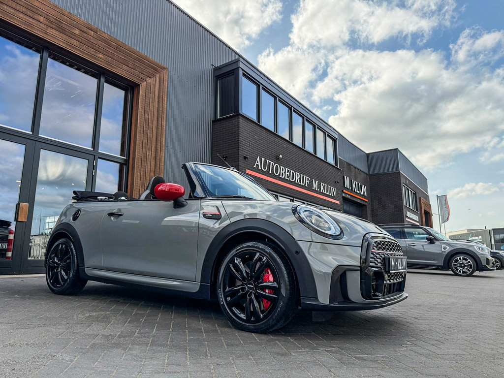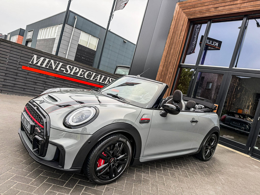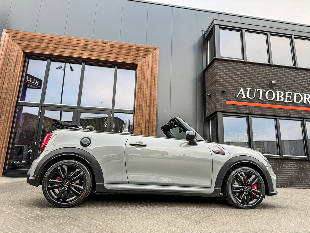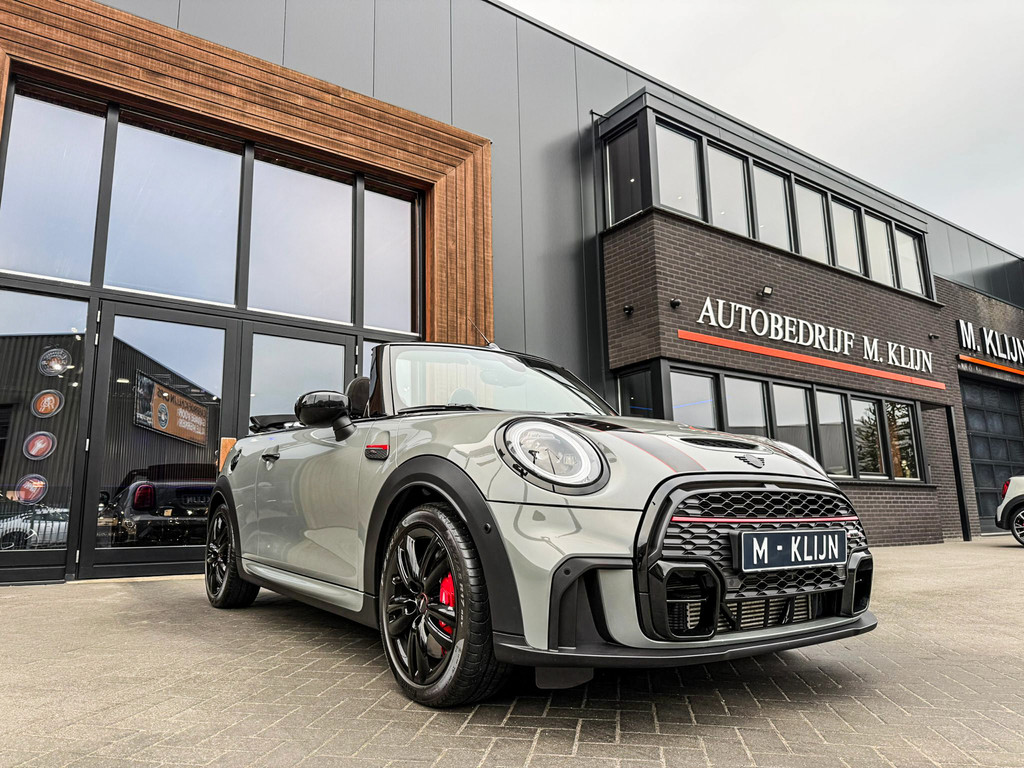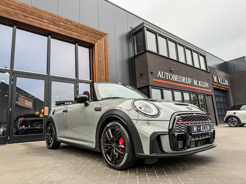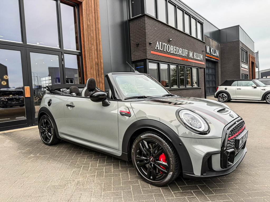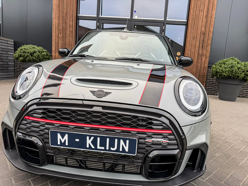 Unieke Mini John Cooper Works cabrio Blackline F1 sportautomaat met een 231pk motor in de prachtige kleur Moonwalkgrey(Nardo)metallic.Deze schitterende Mini is uitgerust met alle maar dan ook alle denkbare opties:Climate control,lederen/dinamica interieur,Jcw sportstoelen,stoelverwarming,verwarmd stuurwiel,virtual display,breedbeeld navigatie,Mini connected XL,head up display,Harman Kardon soundsystem,achteruitrijcamera,dab tuner,tel,usb,performence control,apple carplay,Mini driving modus,adaptieve cruise control,elektrische cabriokap,lederen Jcw sportstuur met flipperschakel,mf stuur,automatisch dimmende binnenspiegel, regensensor,verwarmde voorruit,facelift,full blackpack, voetgangersbeveiliging,dtc,elektrisch inklapbare spiegels, parkeersensoren voor en achter,parkassist(Mini parkeert zelf in),union Jack achterlichten,led koplampen met uitgebreide functies,17 inch JCW velgen zwart,lichtpakket met Mini logo's,actieve cruise control,gezichtspakket,chili 2 pakket,59.000km origineel,nieuwprijs 63.000euro.Prachtig uitgevoerde Mini Jcw in concoursstaat voor de echte liefhebber.
