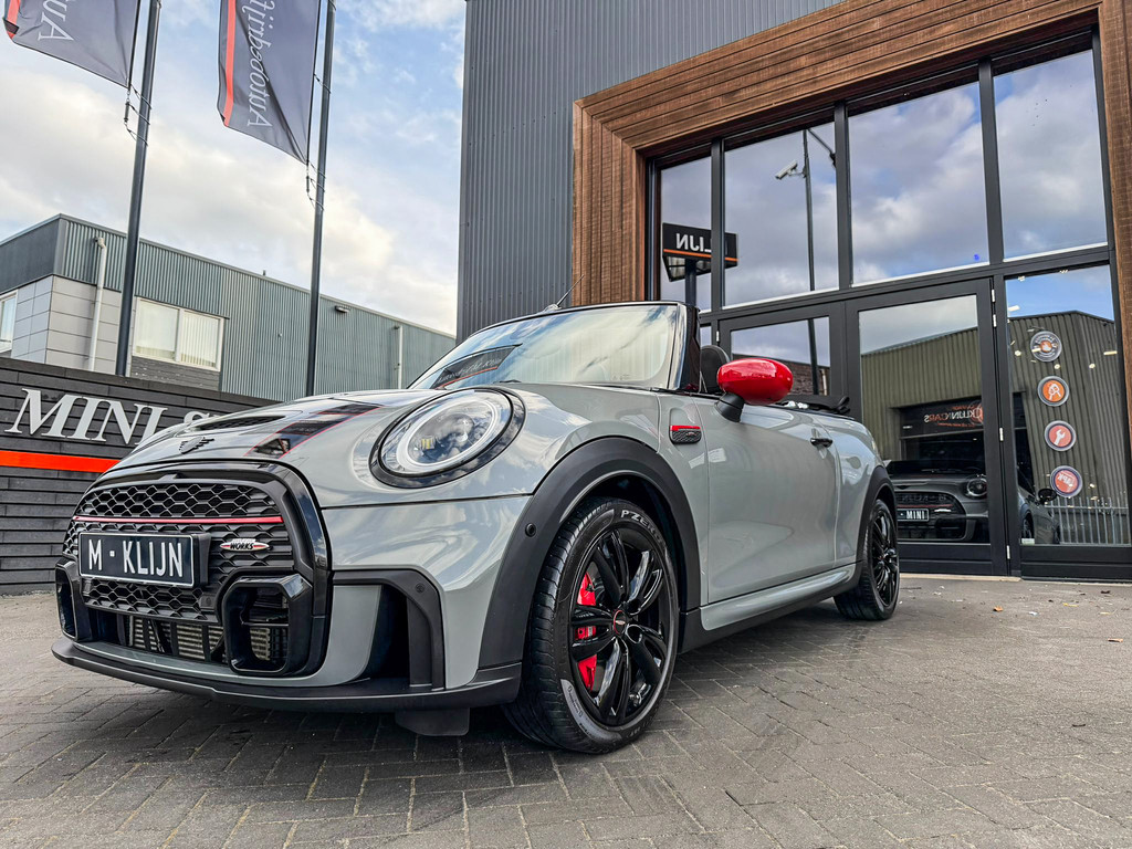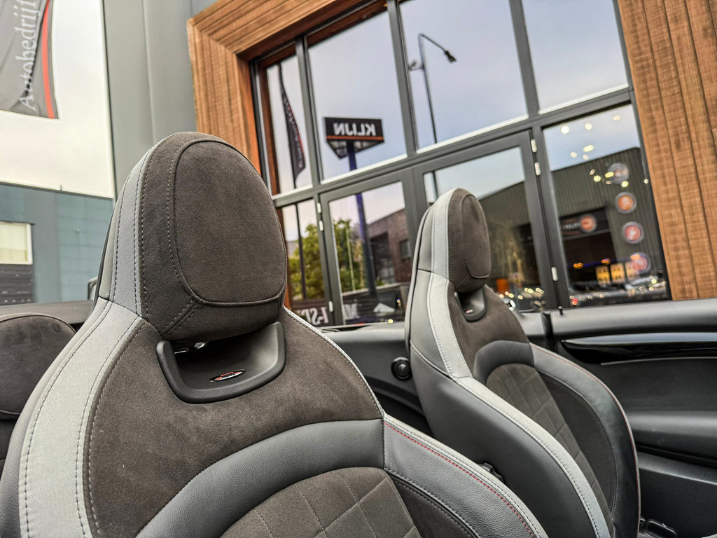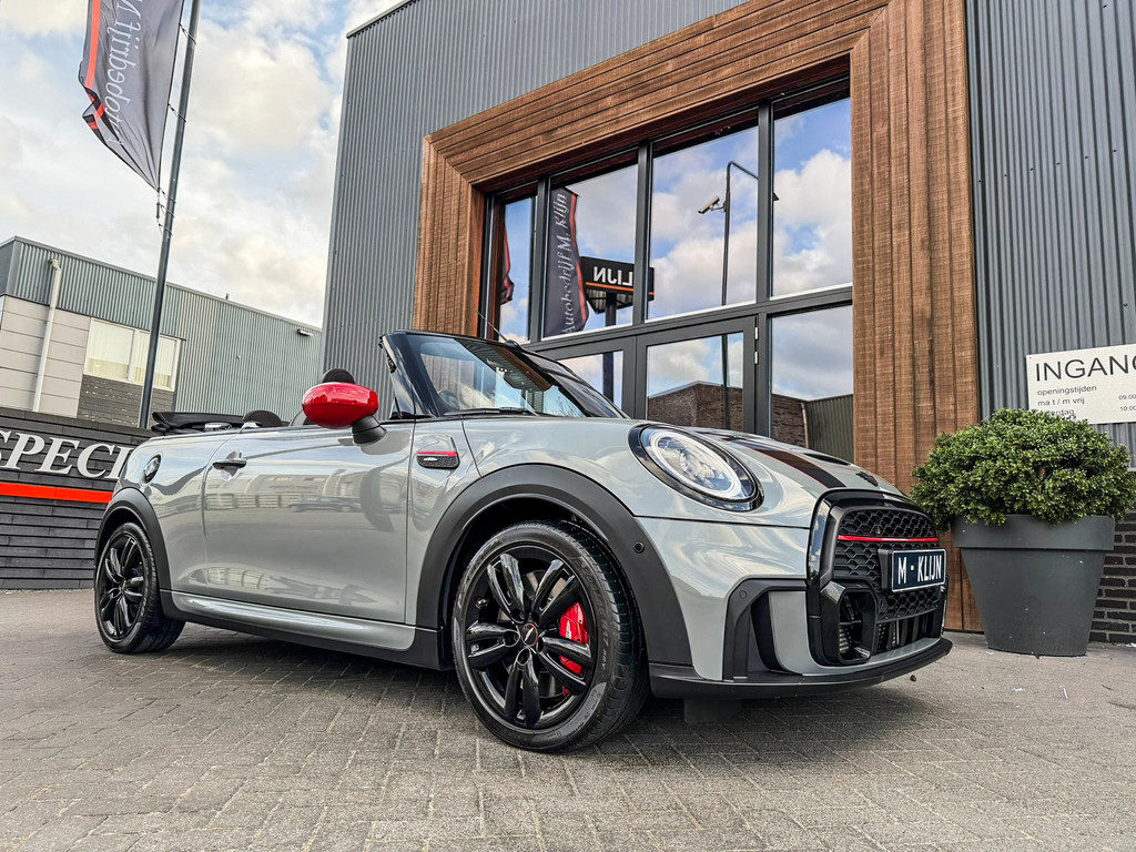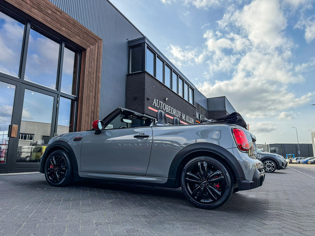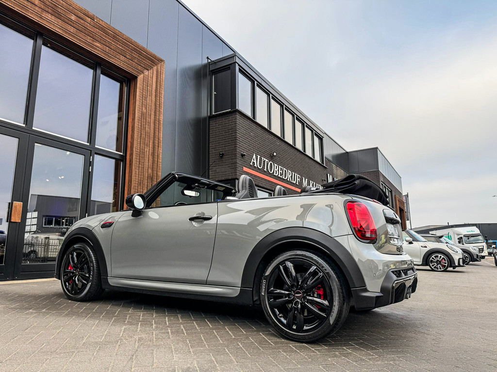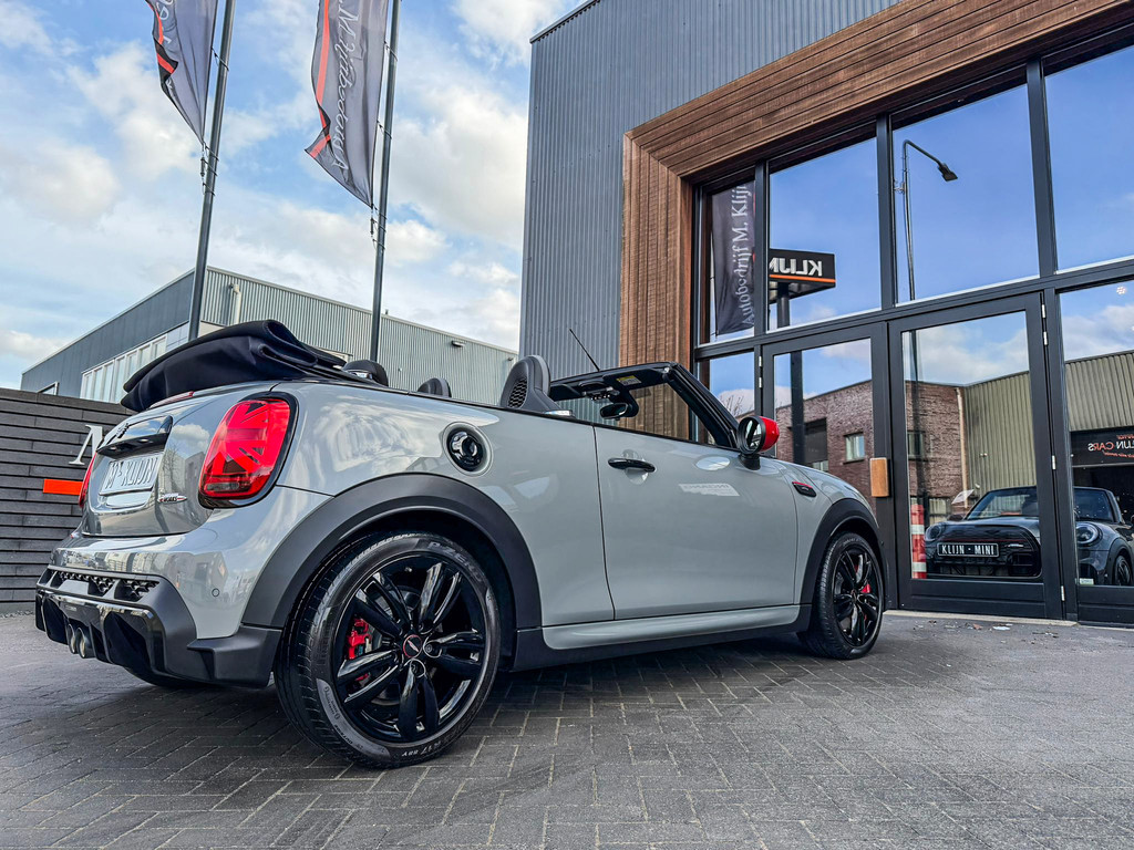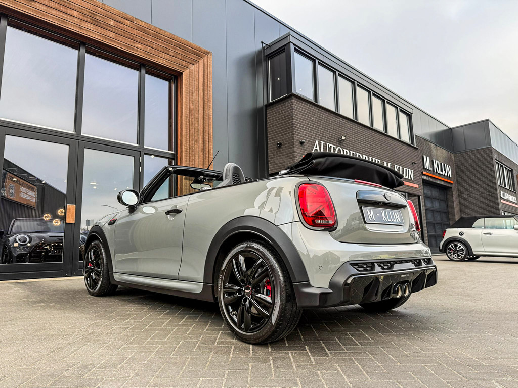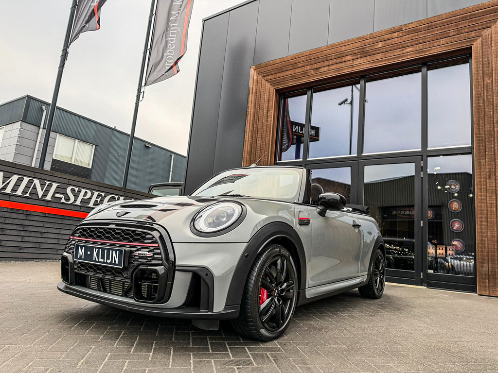 Unieke Mini John Cooper Works cabrio Blackline F1 sportautomaat met een 231pk motor in de prachtige kleur Moonwalkgrey(Nardo)metallic.Deze schitterende Mini is uitgerust met alle maar dan ook alle denkbare opties:Climate control,lederen/dinamica interieur,Jcw sportstoelen,stoelverwarming,verwarmd stuurwiel,virtual display,breedbeeld navigatie,Mini connected XL,head up display,Harman Kardon soundsystem,achteruitrijcamera,dab tuner,tel,usb,performence control,apple carplay,Mini driving modus,adaptieve cruise control,elektrische cabriokap,lederen Jcw sportstuur met flipperschakel,mf stuur,automatisch dimmende binnenspiegel, regensensor,verwarmde voorruit,facelift,full blackpack, voetgangersbeveiliging,dtc,elektrisch inklapbare spiegels, parkeersensoren voor en achter,parkassist(Mini parkeert zelf in),union Jack achterlichten,led koplampen met uitgebreide functies,17 inch JCW velgen zwart,lichtpakket met Mini logo's,actieve cruise control,gezichtspakket,chili 2 pakket,59.000km origineel,nieuwprijs 63.000euro.Prachtig uitgevoerde Mini Jcw in concoursstaat voor de echte liefhebber.