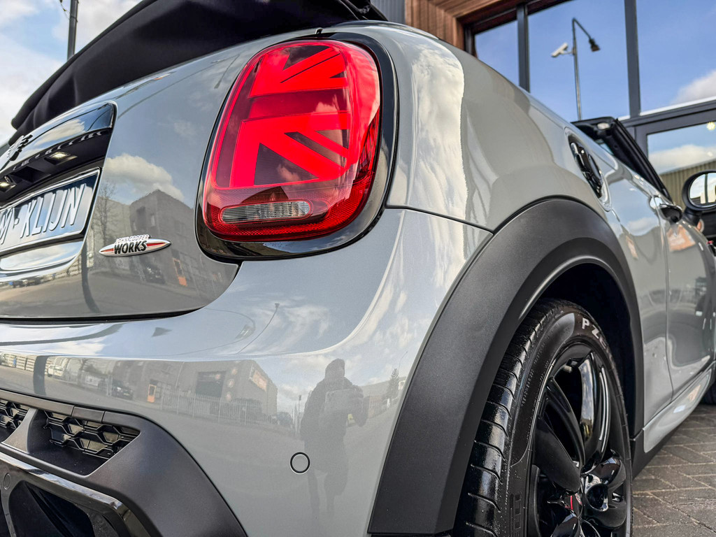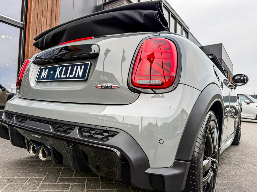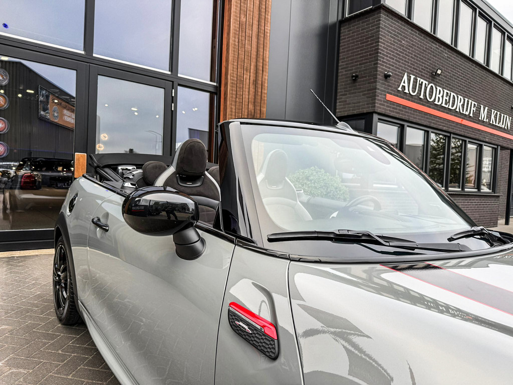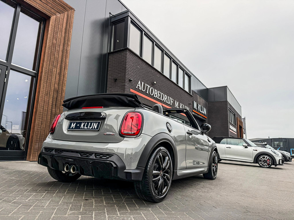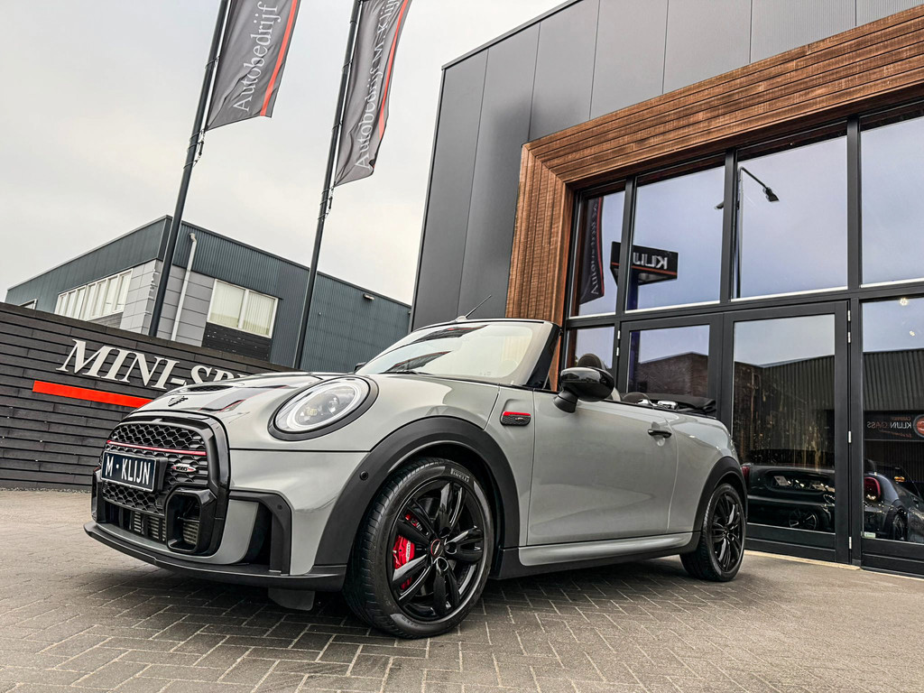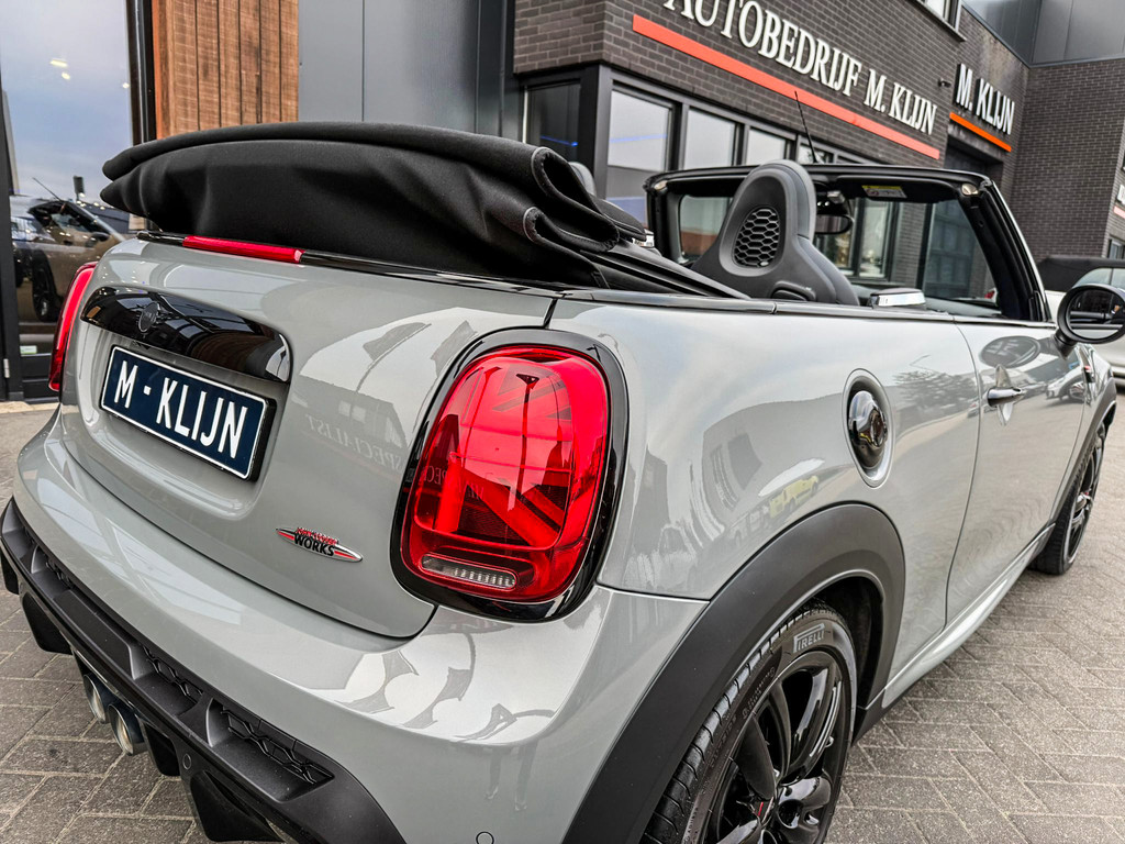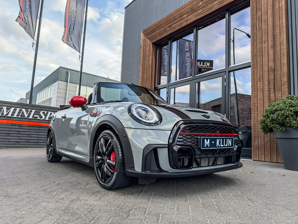 Unieke Mini John Cooper Works cabrio Blackline F1 sportautomaat met een 231pk motor in de prachtige kleur Moonwalkgrey(Nardo)metallic.Deze schitterende Mini is uitgerust met alle maar dan ook alle denkbare opties:Climate control,lederen/dinamica interieur,Jcw sportstoelen,stoelverwarming,verwarmd stuurwiel,virtual display,breedbeeld navigatie,Mini connected XL,head up display,Harman Kardon soundsystem,achteruitrijcamera,dab tuner,tel,usb,performence control,apple carplay,Mini driving modus,adaptieve cruise control,elektrische cabriokap,lederen Jcw sportstuur met flipperschakel,mf stuur,automatisch dimmende binnenspiegel, regensensor,verwarmde voorruit,facelift,full blackpack, voetgangersbeveiliging,dtc,elektrisch inklapbare spiegels, parkeersensoren voor en achter,parkassist(Mini parkeert zelf in),union Jack achterlichten,led koplampen met uitgebreide functies,17 inch JCW velgen zwart,lichtpakket met Mini logo's,actieve cruise control,gezichtspakket,chili 2 pakket,59.000km origineel,nieuwprijs 63.000euro.Prachtig uitgevoerde Mini Jcw in concoursstaat voor de echte liefhebber.