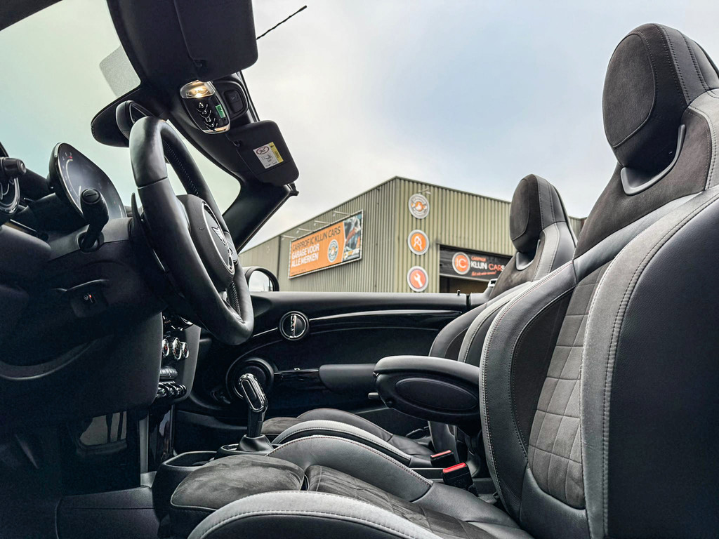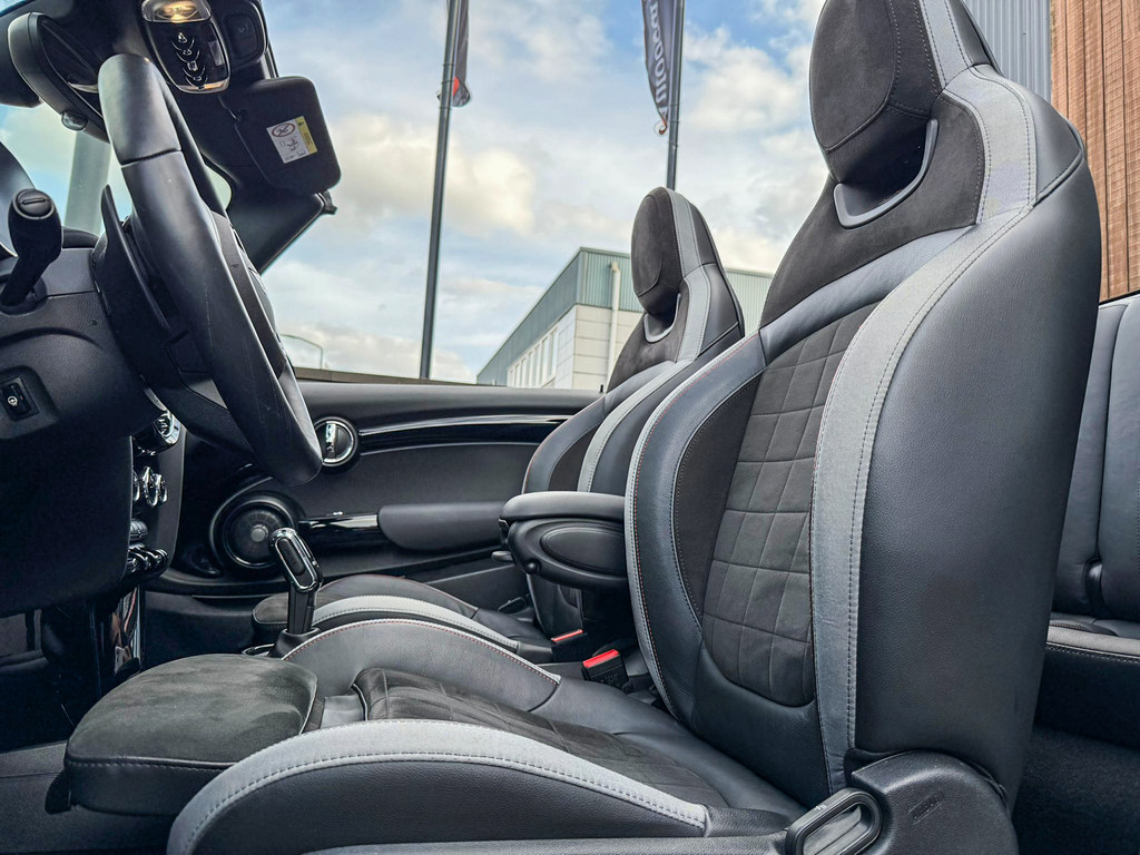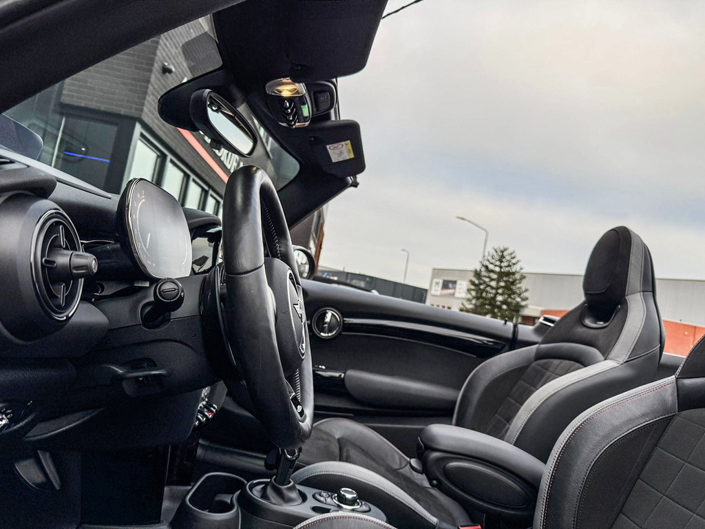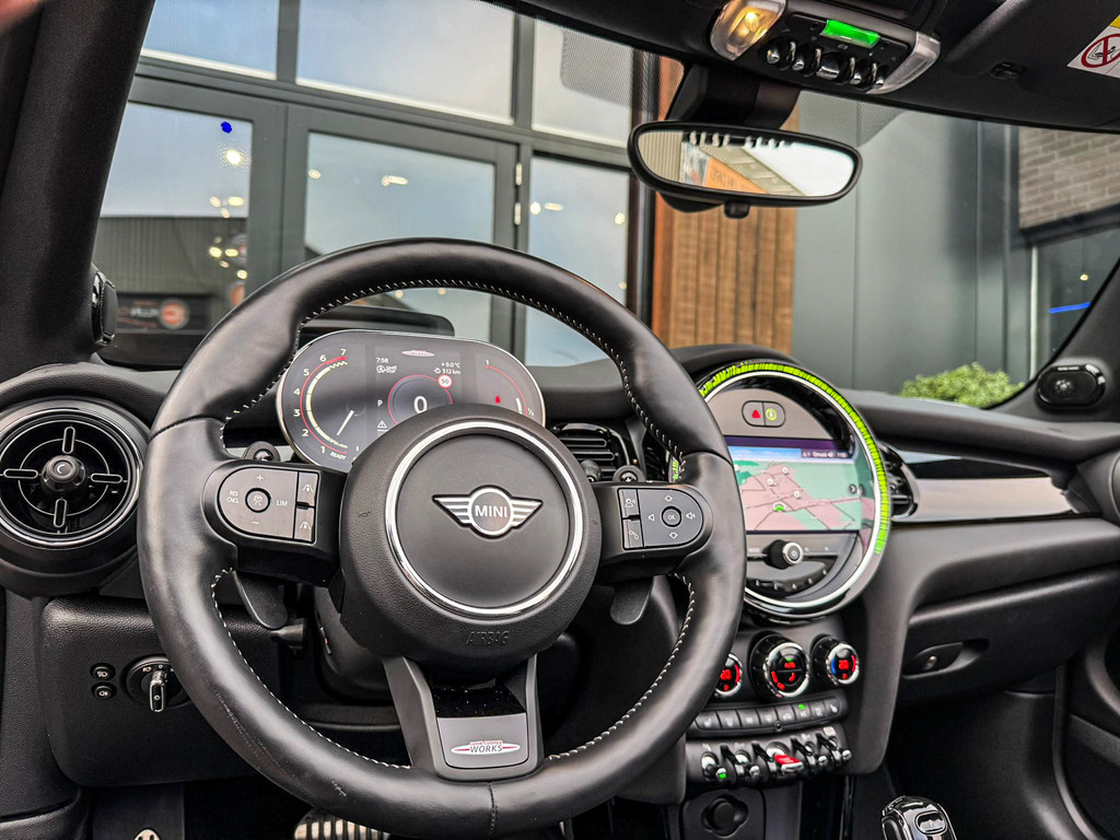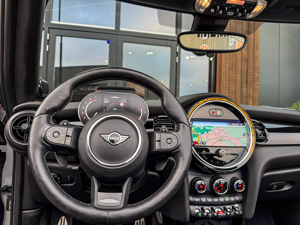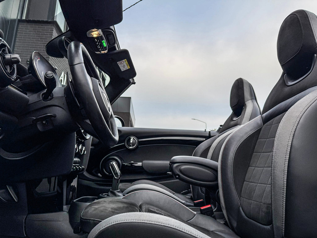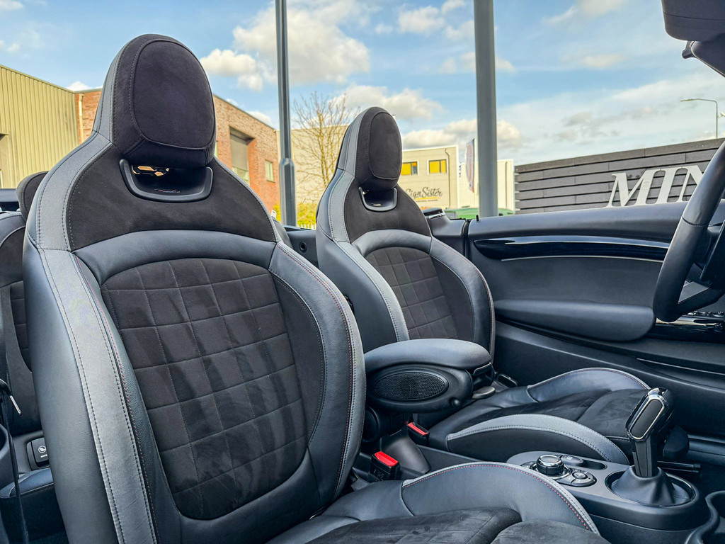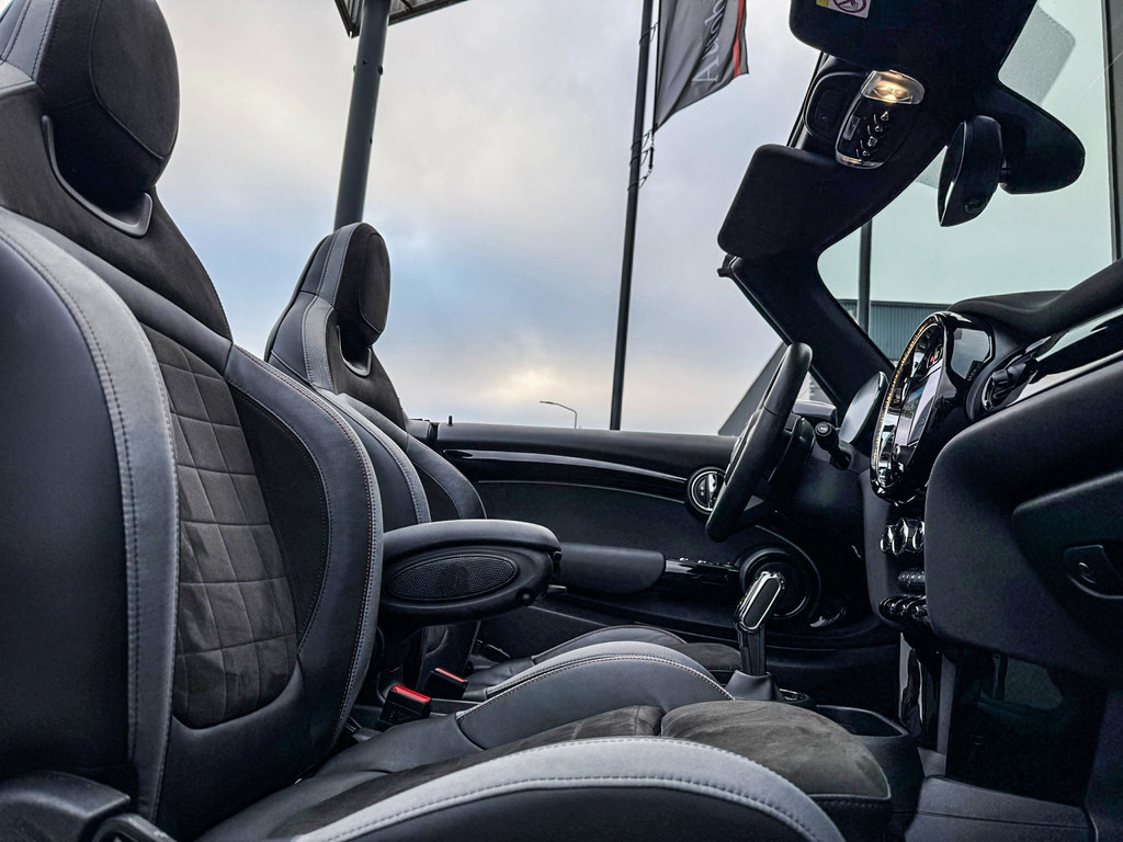 Unieke Mini John Cooper Works cabrio Blackline F1 sportautomaat met een 231pk motor in de prachtige kleur Moonwalkgrey(Nardo)metallic.Deze schitterende Mini is uitgerust met alle maar dan ook alle denkbare opties:Climate control,lederen/dinamica interieur,Jcw sportstoelen,stoelverwarming,verwarmd stuurwiel,virtual display,breedbeeld navigatie,Mini connected XL,head up display,Harman Kardon soundsystem,achteruitrijcamera,dab tuner,tel,usb,performence control,apple carplay,Mini driving modus,adaptieve cruise control,elektrische cabriokap,lederen Jcw sportstuur met flipperschakel,mf stuur,automatisch dimmende binnenspiegel, regensensor,verwarmde voorruit,facelift,full blackpack, voetgangersbeveiliging,dtc,elektrisch inklapbare spiegels, parkeersensoren voor en achter,parkassist(Mini parkeert zelf in),union Jack achterlichten,led koplampen met uitgebreide functies,17 inch JCW velgen zwart,lichtpakket met Mini logo's,actieve cruise control,gezichtspakket,chili 2 pakket,59.000km origineel,nieuwprijs 63.000euro.Prachtig uitgevoerde Mini Jcw in concoursstaat voor de echte liefhebber.