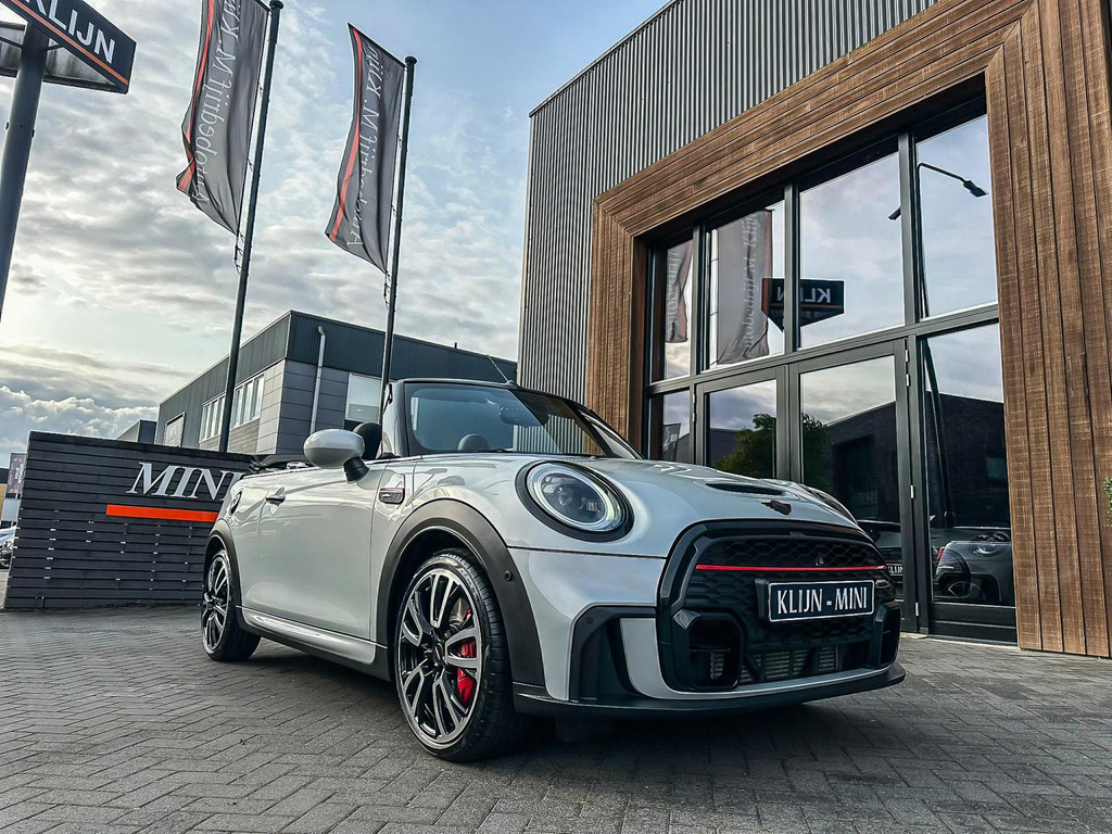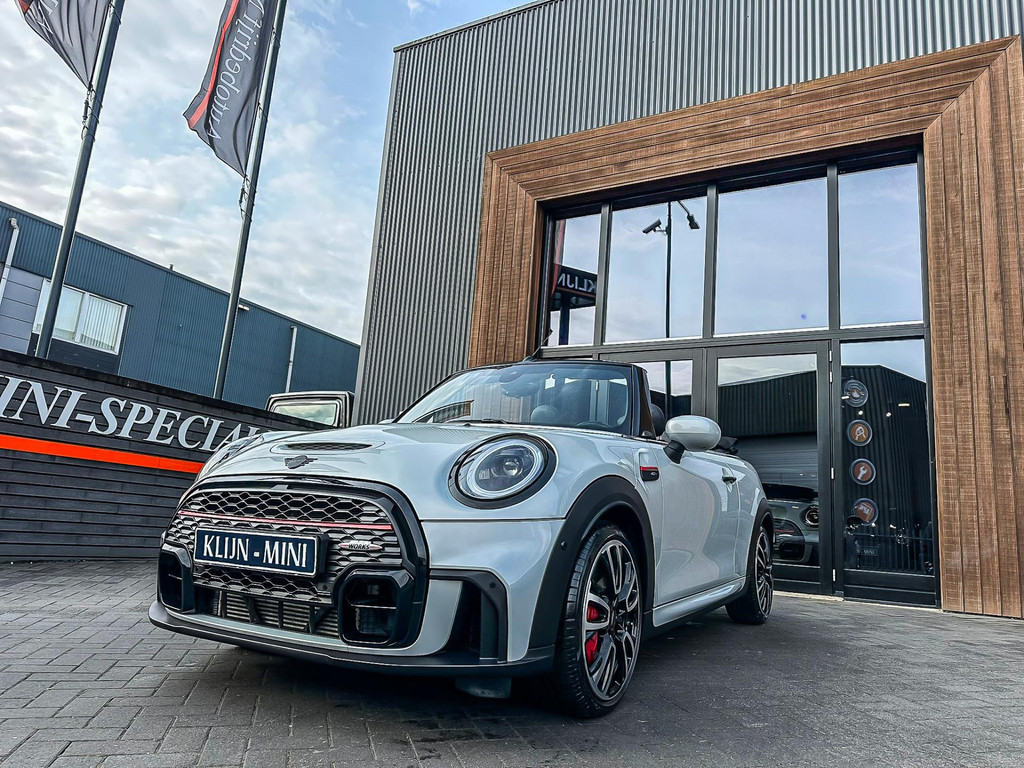 Unieke facelift Mini John Cooper Works cabrio Blackline F1 sportautomaat met een 231pk motor in de prachtige kleur whitesilver metallic.Deze schitterende Mini is uitgerust met alle maar dan ook alle denkbare opties:Climate control,vollederen interieur Yours lounge carbon black,sportstoelen,stoelverwarming,verwarmd stuurwiel,digitaal dashbord,breedbeeld navigatie,Mini connected,achteruitrijcamera,Harman Kardon soundsystem,head up display,adaptieve cruise control,dab tuner,tel,usb,performence control,apple carplay,Mini driving modus,elektrische cabriokap,lederen Jcw sportstuur met flipperschakel,mf stuur,automatisch dimmende binnenspiegel, regensensor,verwarmde voorruit,facelift,blackline, voetgangersbeveiliging,dtc,elektrisch inklapbare spiegels, parkeersensoren voor en achter,parkassist(Mini parkeert zelf in),union Jack achterlichten,led koplampen met uitgebreide functies,18 inch JCW Circuit Spoke velgen,lichtpakket met Mini logo's,gezichtspakket,64.000km origineel,nieuwprijs 63.000euro.Prachtig uitgevoerde Mini Jcw in concoursstaat voor de echte liefhebber