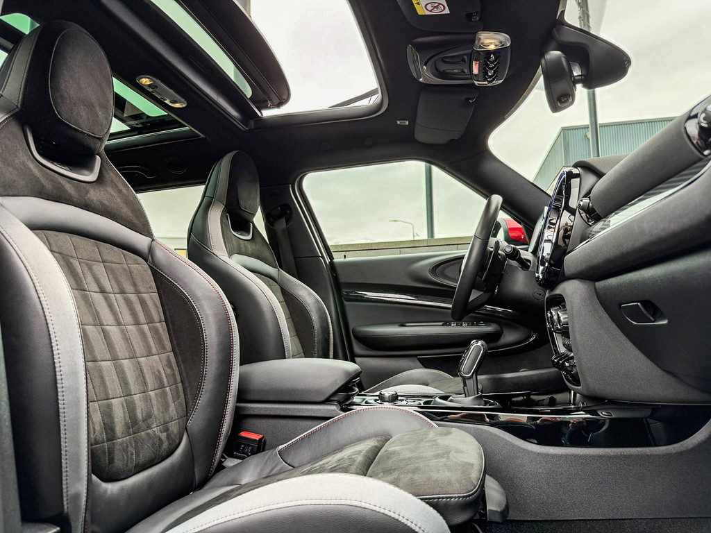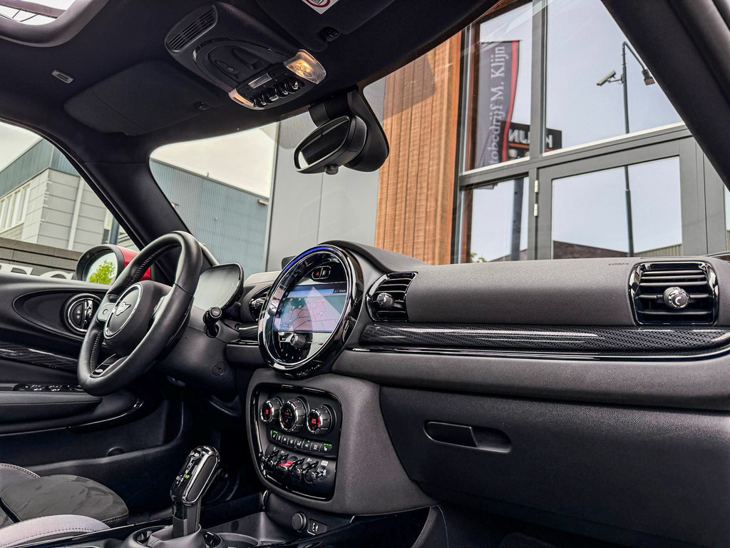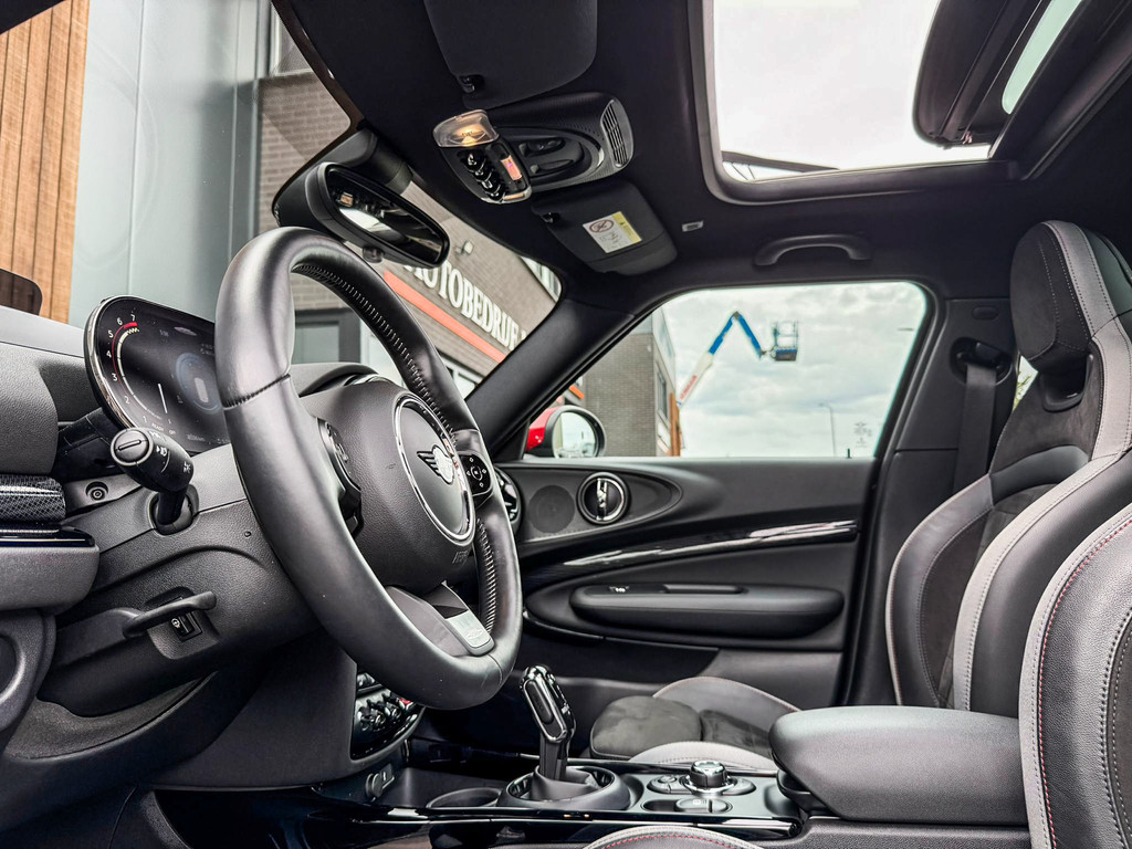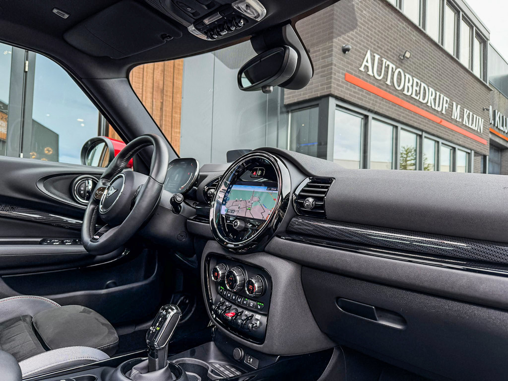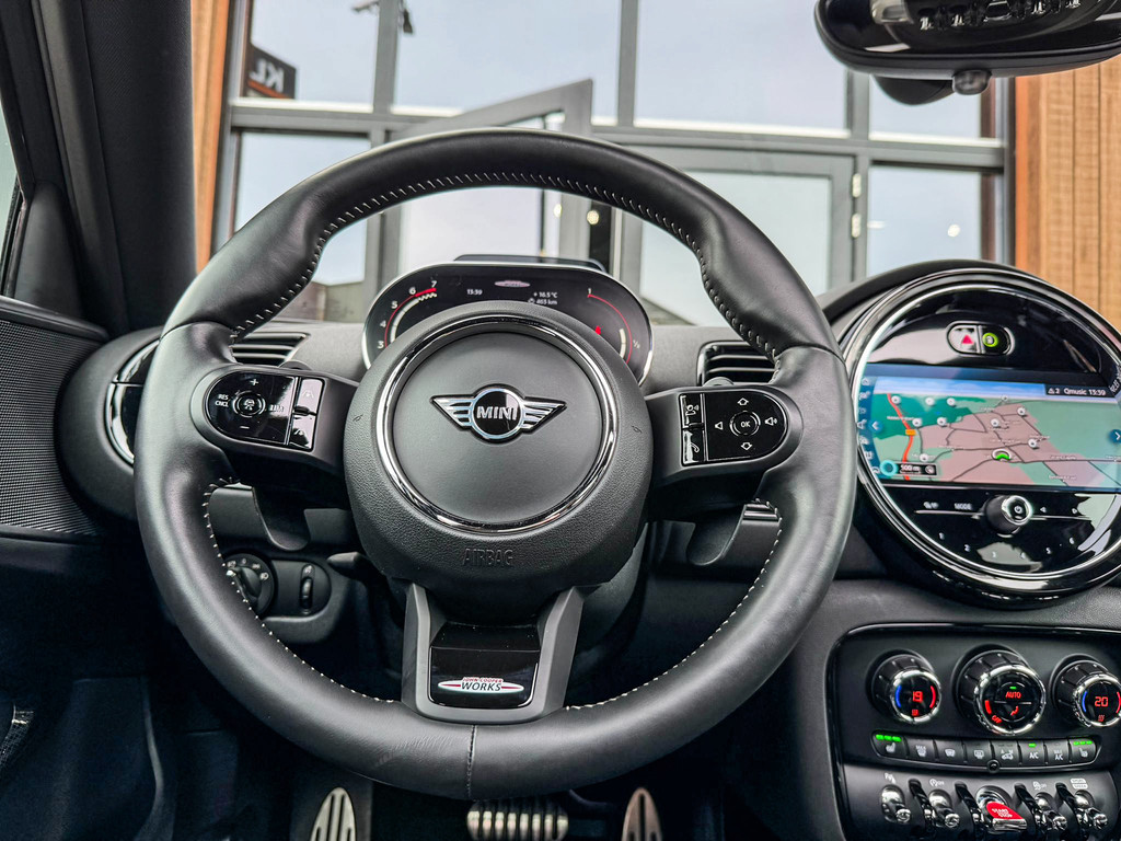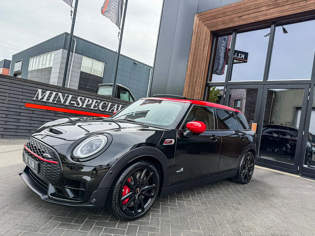 Zeer exclusieve Mini Clubman John Cooper Works ALL4 F1 sportautomaat met een 306pk motor uitgevoerd in de prachtige kleur Midnightblack.Deze in werkelijk nieuwstaat verkerende Mini is uitgerust met alle maar dan ook alle denkbare opties oa:Climate control,lederen/dinamica Jcw interieur,sportstoelen,stoelverwarming,verwarmd stuurwiel,virtual cockpit,breedbeeld dvd navigatie XL,Mini Connected XL,head up display,adaptieve cruise control,keyless go,achteruitrijcamera,18" Jcw velgen zwart,sportpakket,vierwielaandrijving,led verlichting,elektrisch bedienbare glazen panoramadak,5 persoons,privacyglass,lederen Jcw sportstuur met F1 flipperschakel,lichtpakket met Mini logo's,welcome pakket,parkeersensoren voor en achter,parkassist(auto parkeert zelf in),F1 schakel op stuur,actieve voetgangersbeveiliging,lc scherm,virtual cockpit,Mini driving modus,donker dakhemel,mf stuur,Apple Carplay,dab radio,boordcomputer,blackline,regensensor,verwarmde voorruit,Union Jack achterlichten,vierwielaandrijving,armsteun,facelift,alle boekjes+originele sleutels,1e eigenaar,57.000km origineel,btw auto,nieuwprijs 71.900,-.Schitterende en unieke Mini Clubman Works in concoursstaat voor de echte liefhebber
