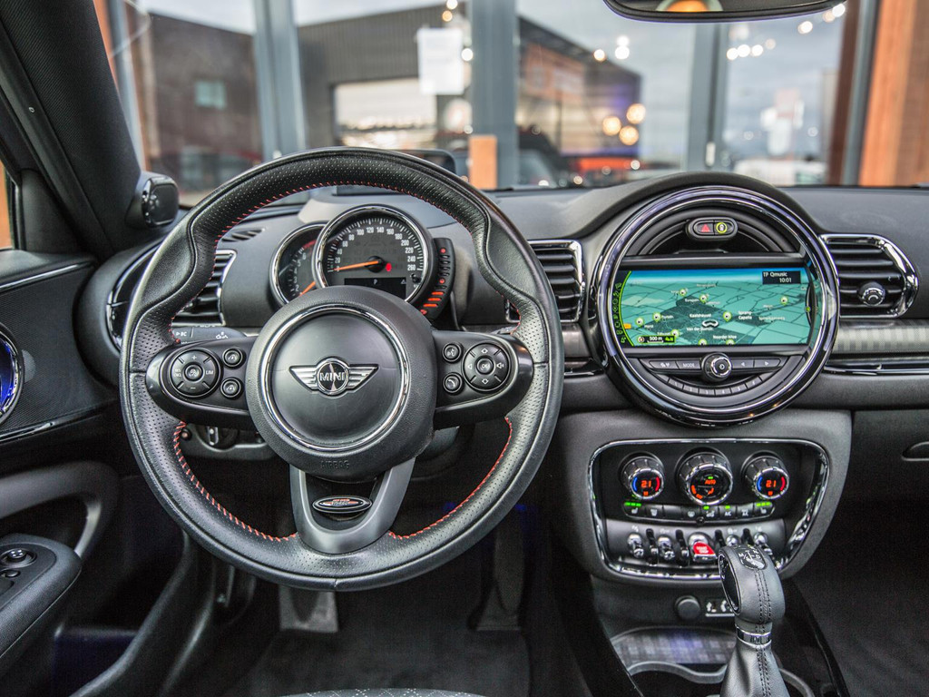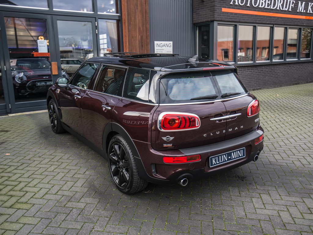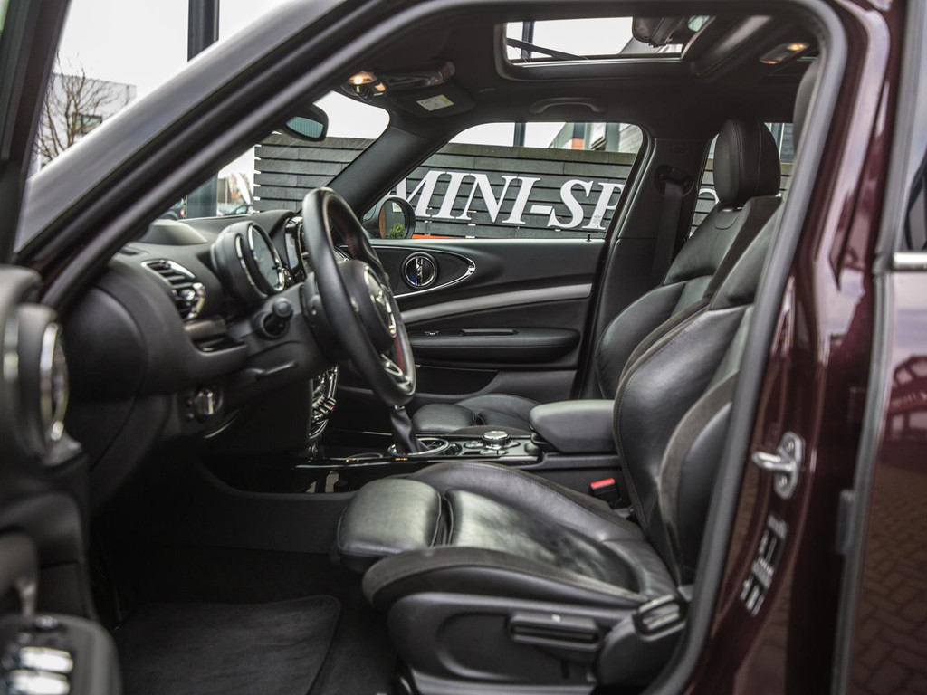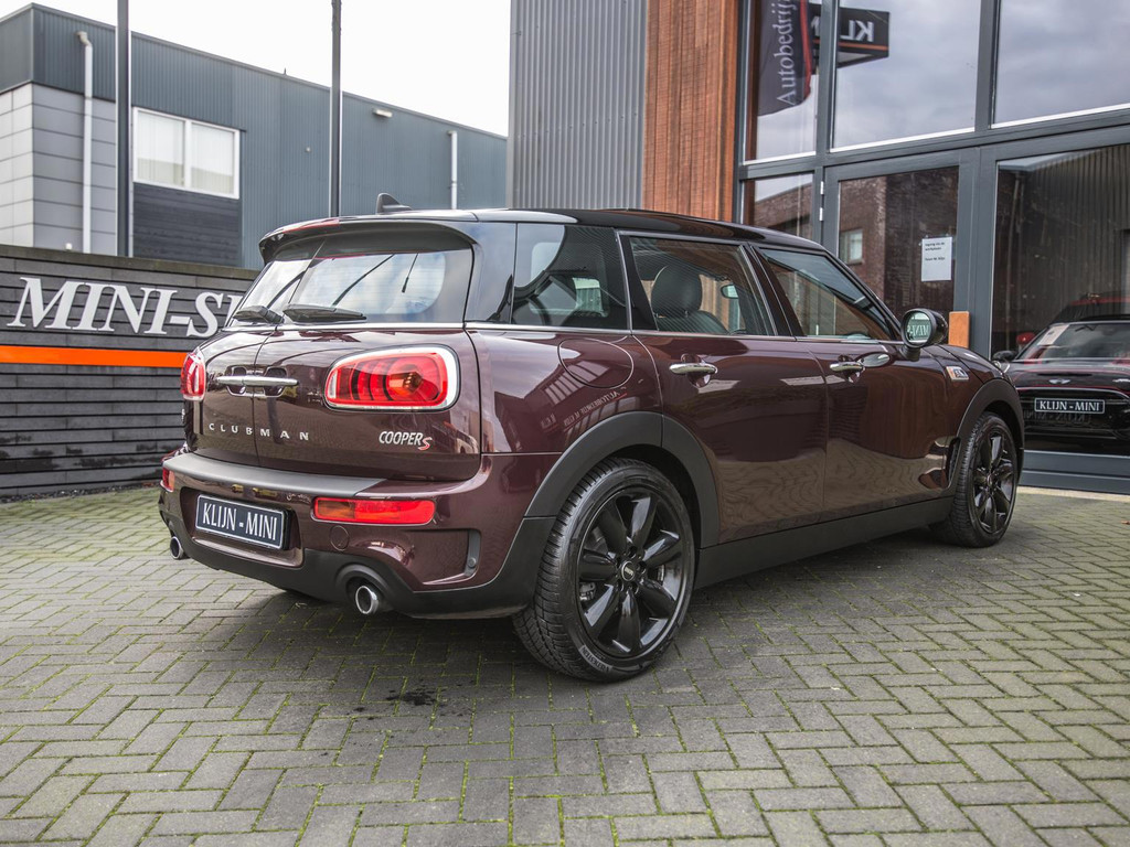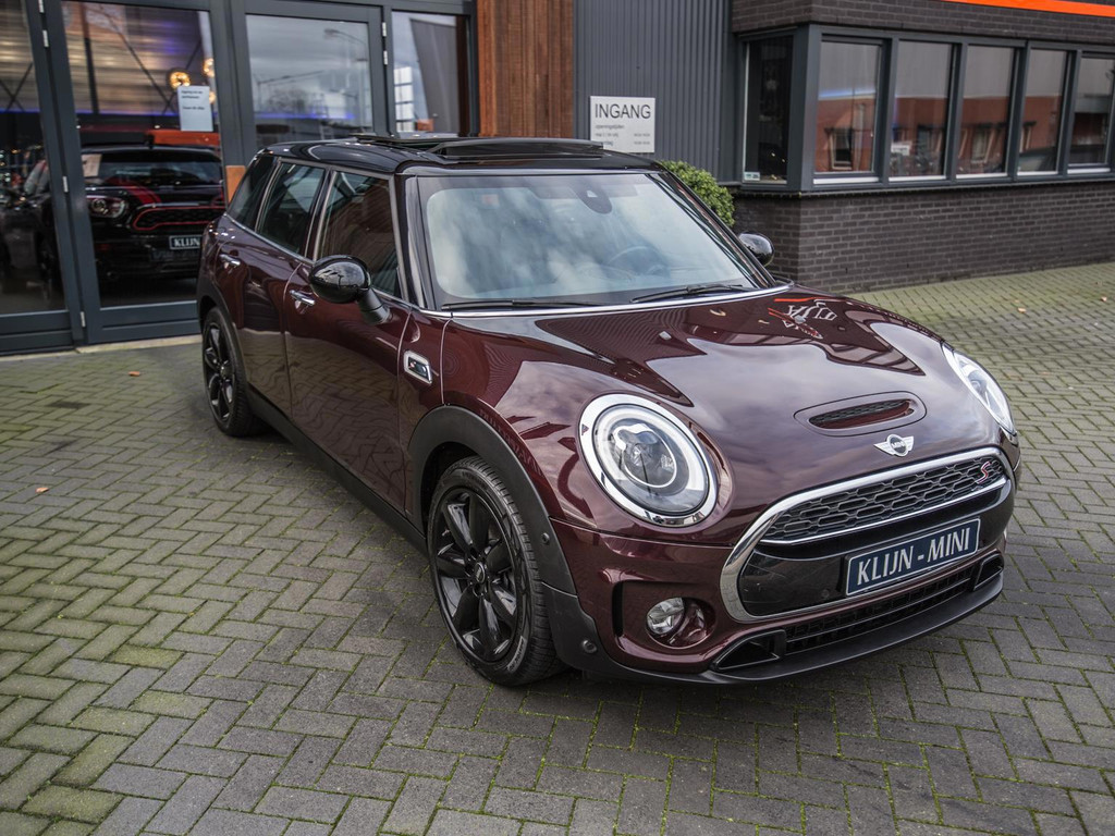 Unieke Mini Cooper S Clubman automaat met een 192pk motor uitgevoerd in de prachtige kleur Burgundy red met een zwarte dak en spiegels. Deze in werkelijk nieuwstaat verkerende Mini is voorzien van alle denkbare opties oa:Climate control,vollederen interieur carbon black,sportstoelen,stoelverwarming,breedbeeld navigatie,Mini Connected XL,keyless go,18” S velgen zwart,head up display,led verlichting,elektrisch bedienbare glazen panoramadak,5 persoons,parkassist(auto parkeert zelf in)lederen sporstuur,lichtpakket,Harman Kardon soundsystem,parkeersensoren voor en achter,actieve voetgangersbeveiliging, adaptive cruise control,Mini driving modus,donker dakhemel,mf stuur,boordcomputer,regensensor,97.000km origineel.N.p. 53.000euro.Schitterende en unieke Mini Clubman in topstaat voor de echte liefhebber.