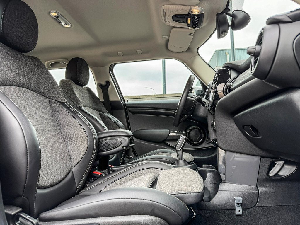 Zeer mooie origineel Hollandse Mini Cooper Chili 5drs automaat met een 136pk motor uitgevoerd in de prachtige kleur Moonwalkgrey(Nardo).Deze in nieuwstaat verkerende Mini is dealer onderhouden en uitgerust met vele opties oa:Volautomatische airco,halflederen interieur carbon black,sportstoelen,navigatie,Mini connected,led verlichting,keyless go,parkeersensoren,elektrische ramen+spiegels,regensensor,cruise control,16" lm velgen zwart,metallic,lederen stuurwiel,5 Deurs,bandenspanningscontrole,boordcomputer,centrale deurvergrendeling op afstand,108.000km origineel Nap.Schitterende Mini in topstaat voor de echte liefhebber.