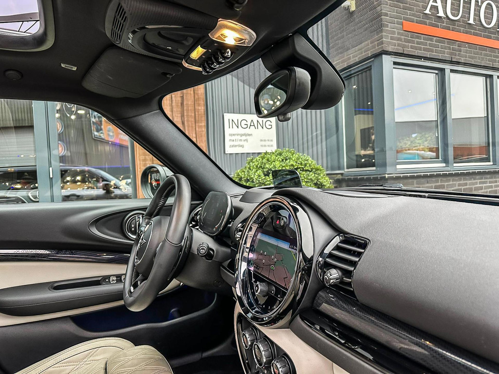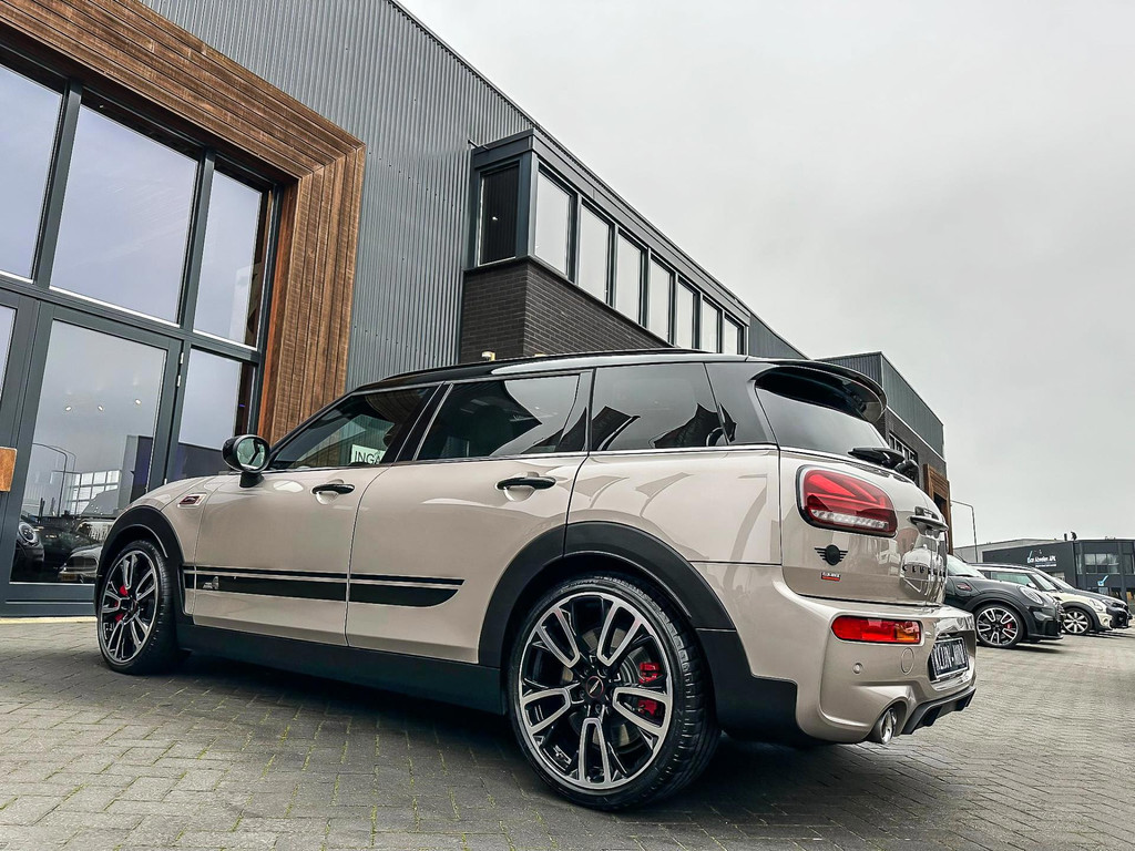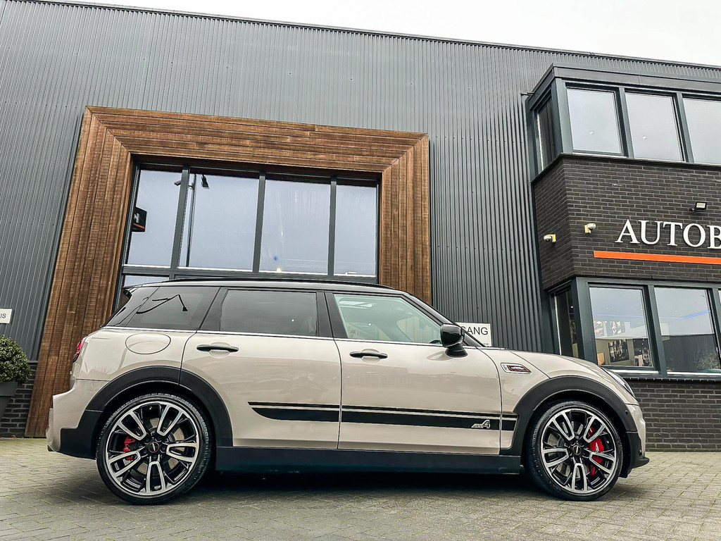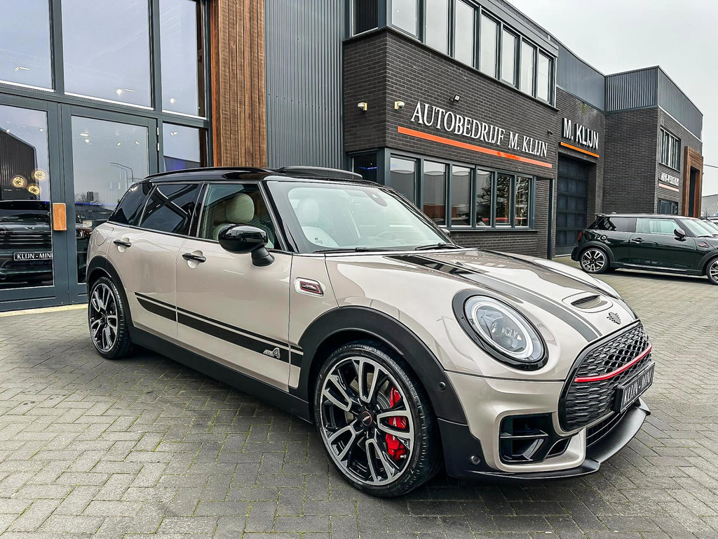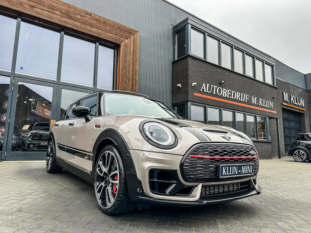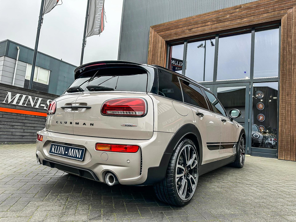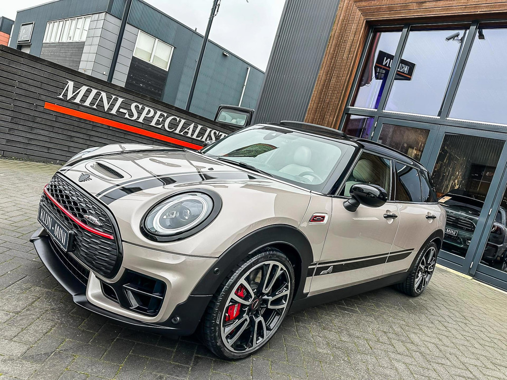 Zeer exclusieve facelift(nieuwste model) Mini Clubman John Cooper Works ALL4 F1 sportautomaat met een 306pk motor uitgevoerd in de prachtige kleurencombinatie van Rooftopgrey metallic en Satelittegrey lederen interieur.Deze in werkelijk nieuwstaat verkerende Mini is uitgerust met alle maar dan ook alle denkbare opties oa:Climate control,vollederen interieur satelitte grey,elektrische stoelen met memory,sportstoelen, stoelverwarming,verwarmd stuurwiel,digital cockpit,breedbeeld dvd navigatie XL,Mini Connected XL,keyless go,achteruitrijcamera,19” Jcw cup velgen,head up display,adaptieve cruise control,sportpakket,vierwielaandrijving,led verlichting,elektrisch bedienbare glazen panoramadak,5 persoons,privacyglass,lederen Jcw sportstuur met F1 flipperschakel,lichtpakket met Mini logo's,welcome pakket,parkeersensoren voor en achter,parkassist(auto parkeert zelf in),F1 schakel op stuur,actieve voetgangersbeveiliging,lc scherm,alarm,Mini driving modus,donker dakhemel,dakrailing zwart,mf stuur,Apple Carplay,dab radio,boordcomputer,blackline,nieuw model,regensensor,Union Jack achterlichten,vierwielaandrijving,armsteun,chili 2 pakket,alle boekjes+originele sleutels,1e eigenaar,67.000km origineel,,nieuwprijs 71.800,-.Schitterende en unieke Mini Clubman Works in concoursstaat voor de echte liefhebber.